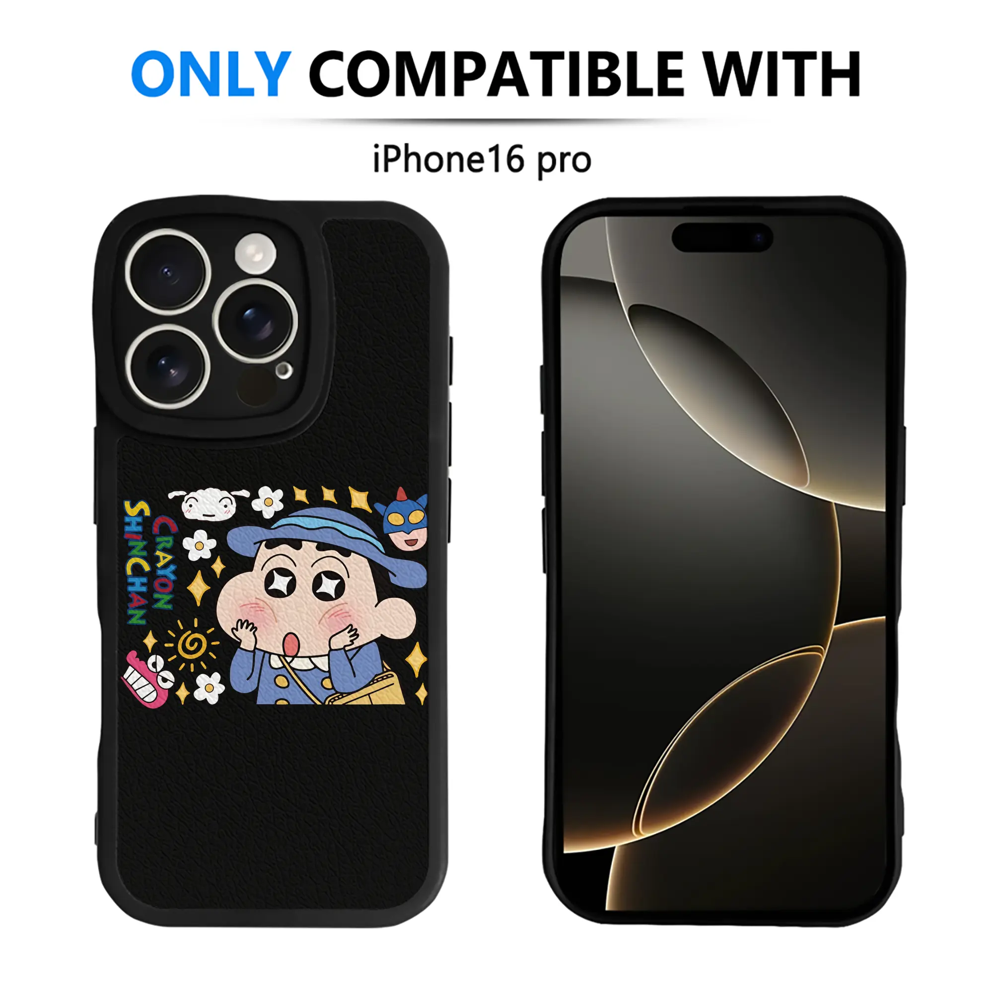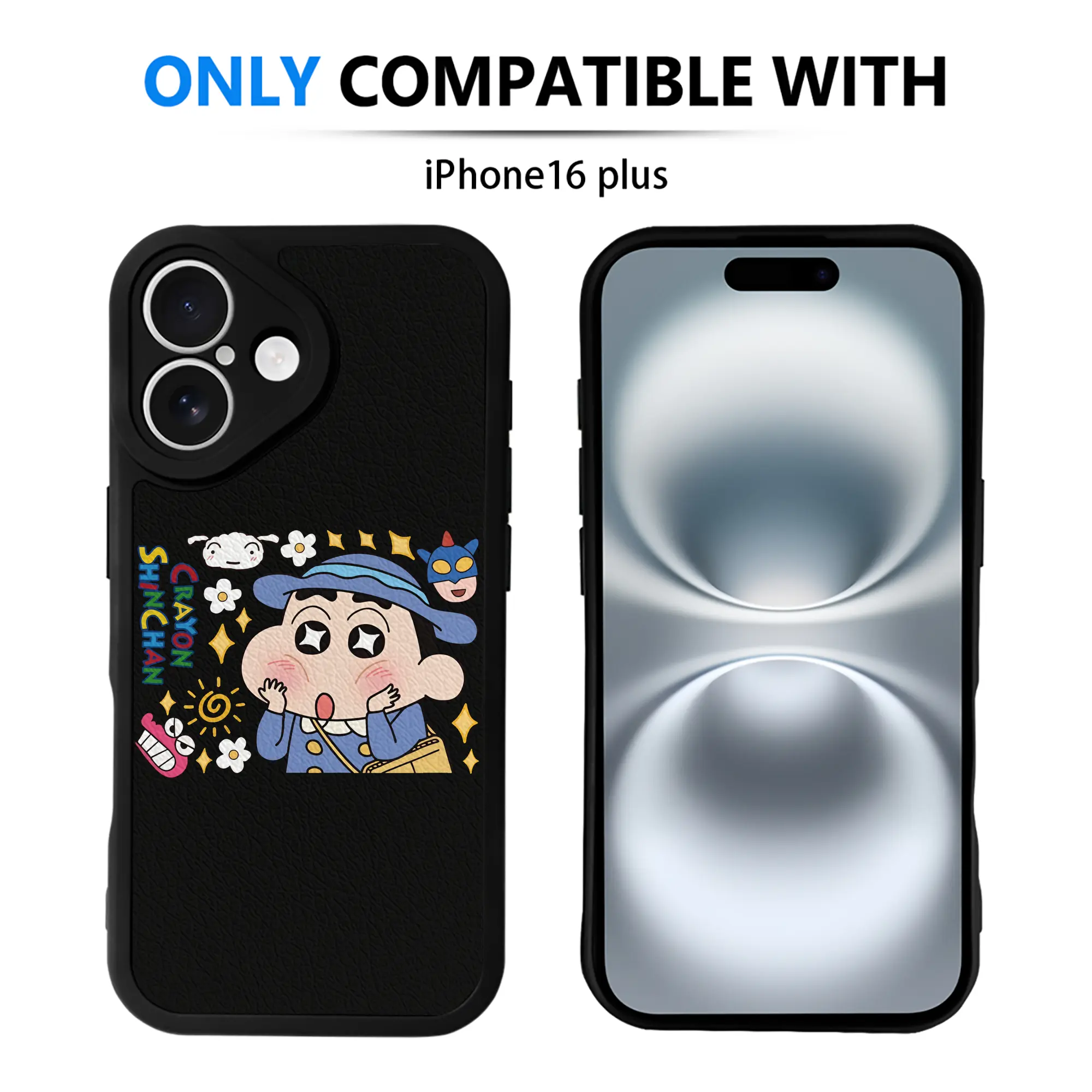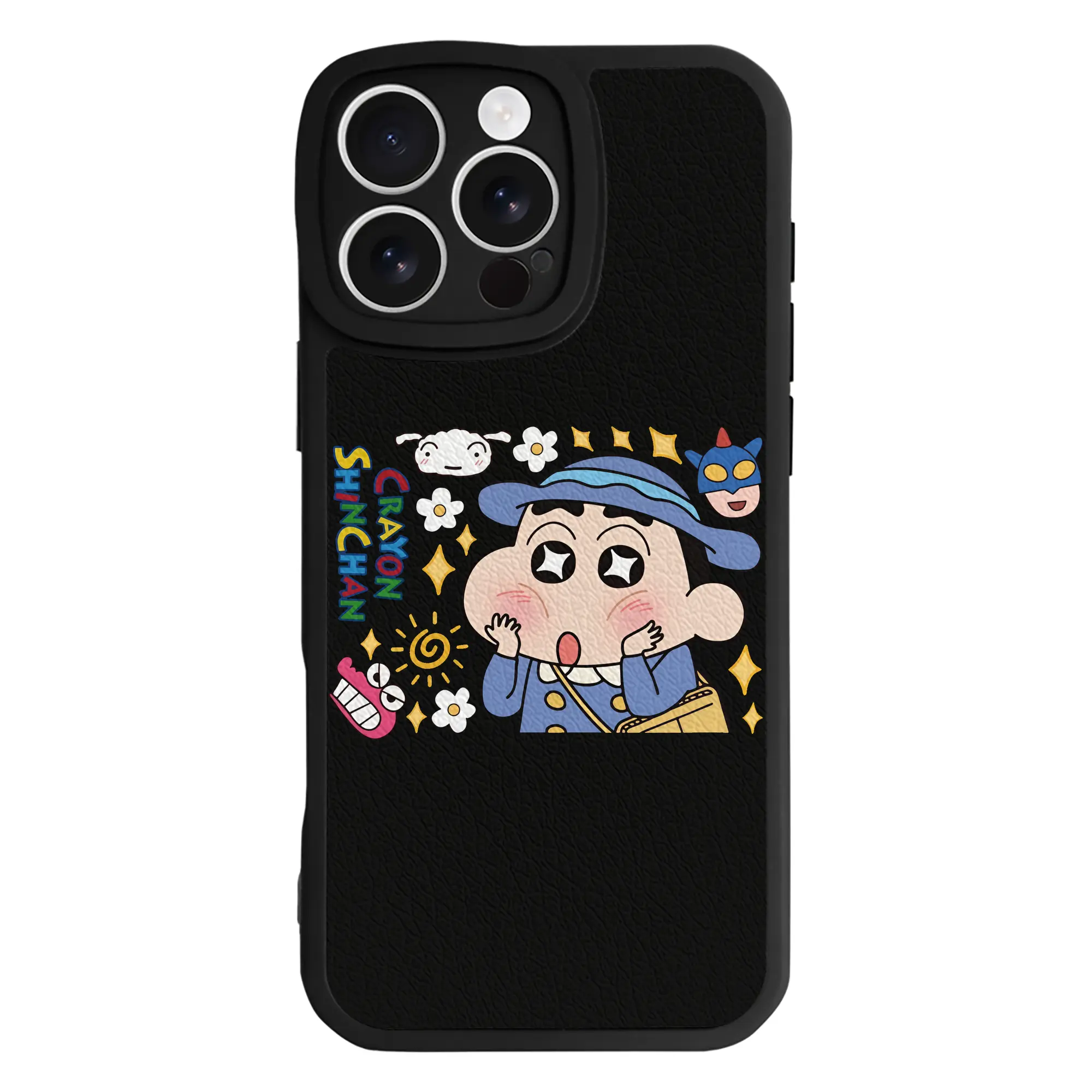 クレヨンしんちゃん グッズ 野原 しんのすけ - IPhone 16シリーズ対応 ・ シリコンスマホケース ・ レザー調 ・ 高精度フィット ・ 耐衝撃 ・ ワイヤレス充電対応 ・ 精密カット