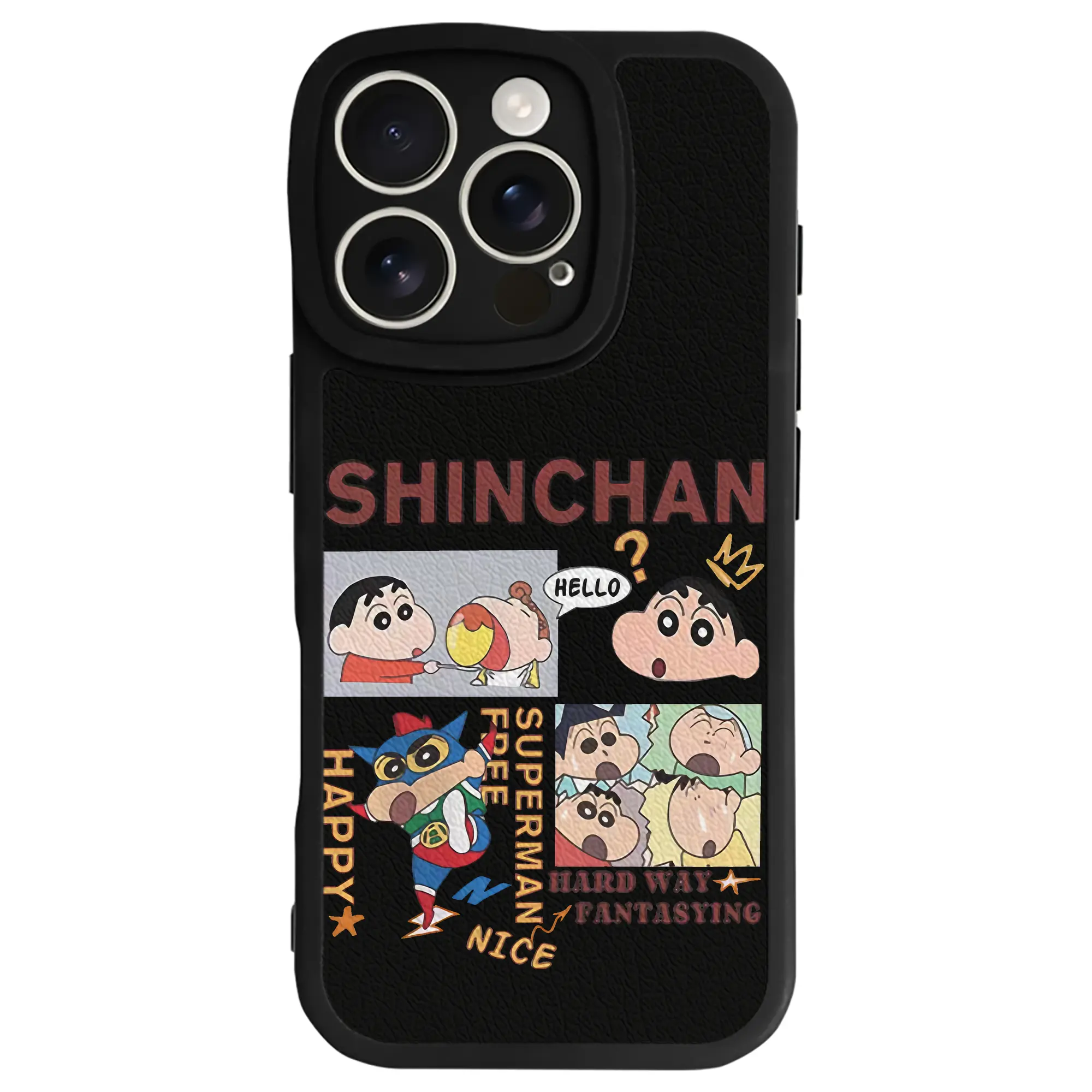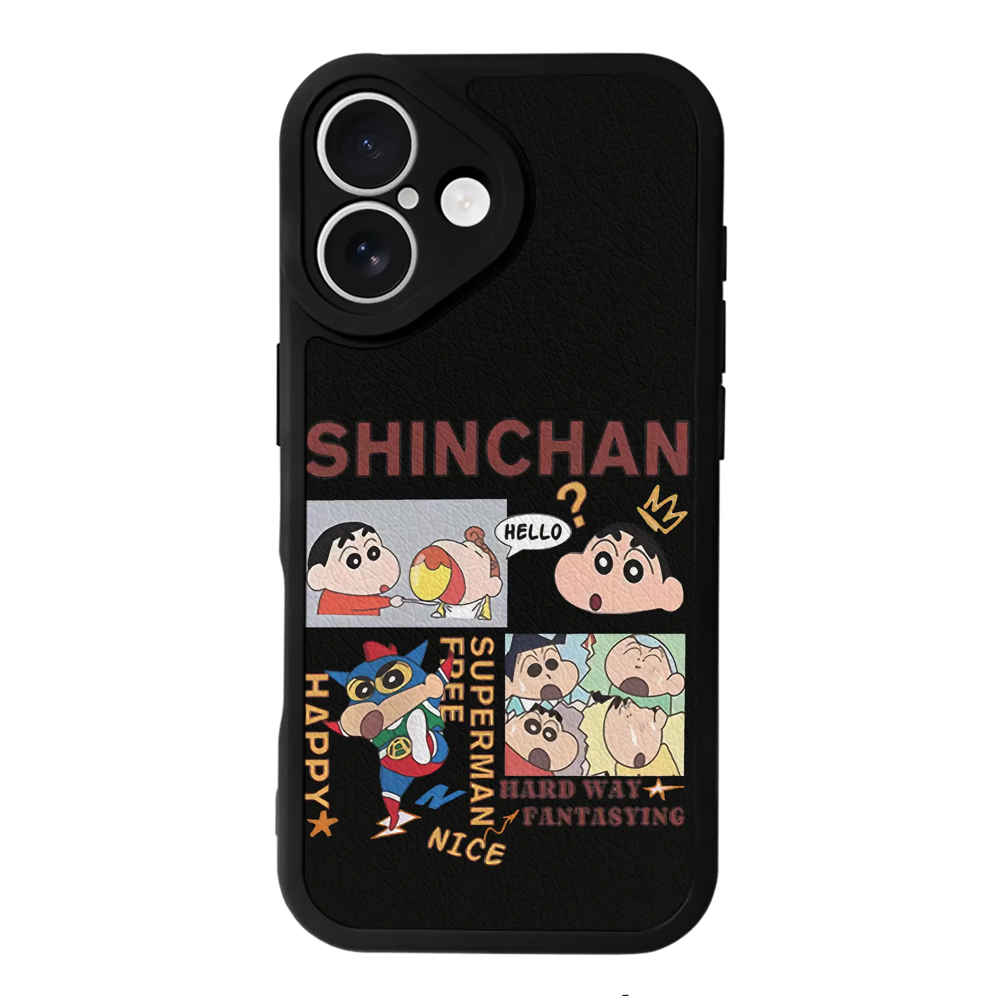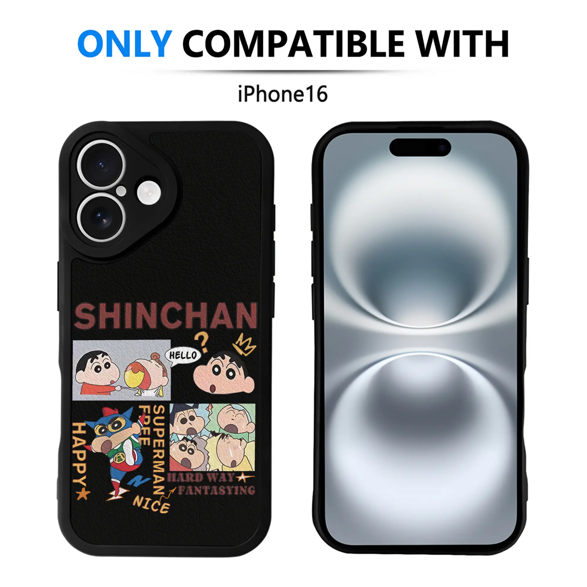 クレヨンしんちゃん グッズ 野原 しんのすけ - IPhone 16シリーズ対応 ・ シリコンスマホケース ・ レザー調 ・ 高精度フィット ・ 耐衝撃 ・ ワイヤレス充電対応 ・ 精密カット