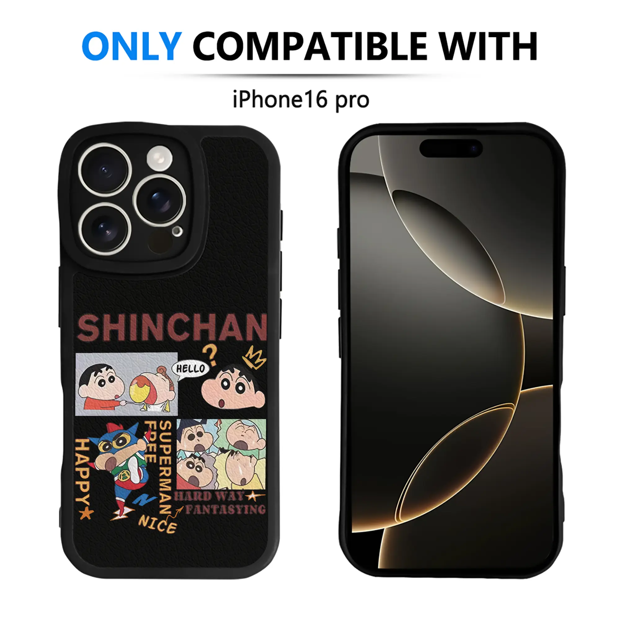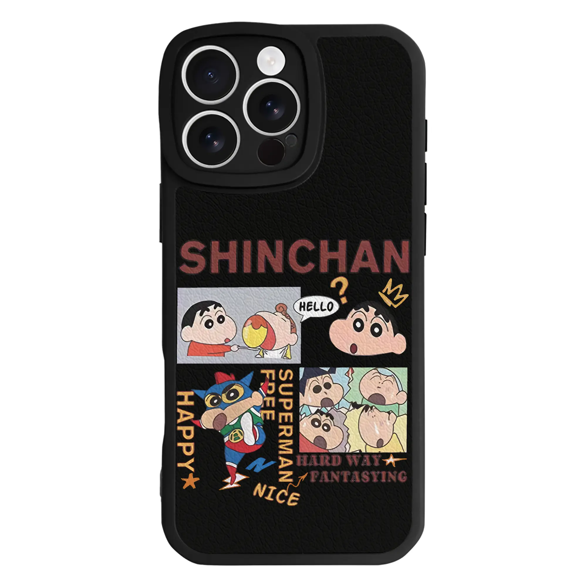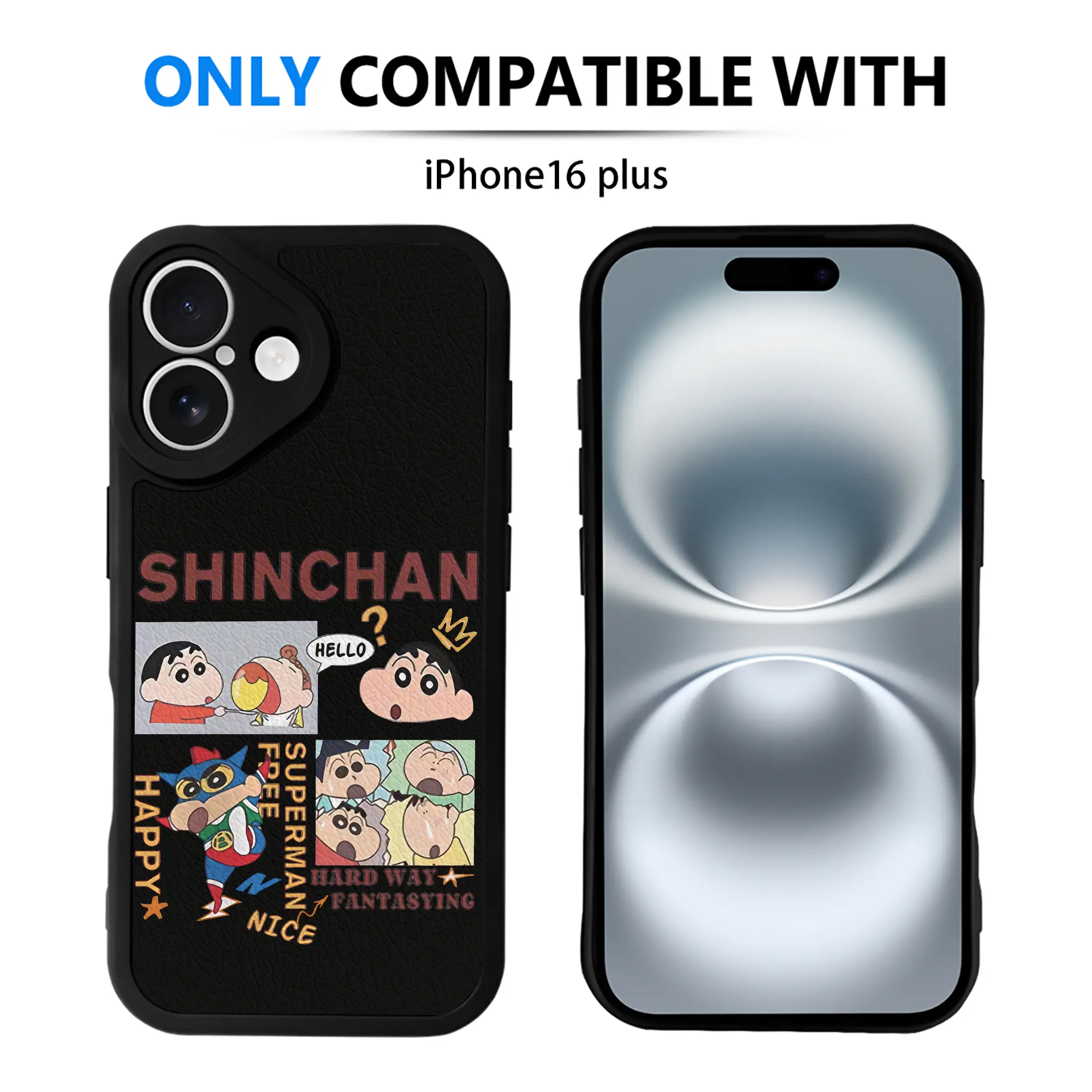 クレヨンしんちゃん グッズ 野原 しんのすけ - IPhone 16シリーズ対応 ・ シリコンスマホケース ・ レザー調 ・ 高精度フィット ・ 耐衝撃 ・ ワイヤレス充電対応 ・ 精密カット
