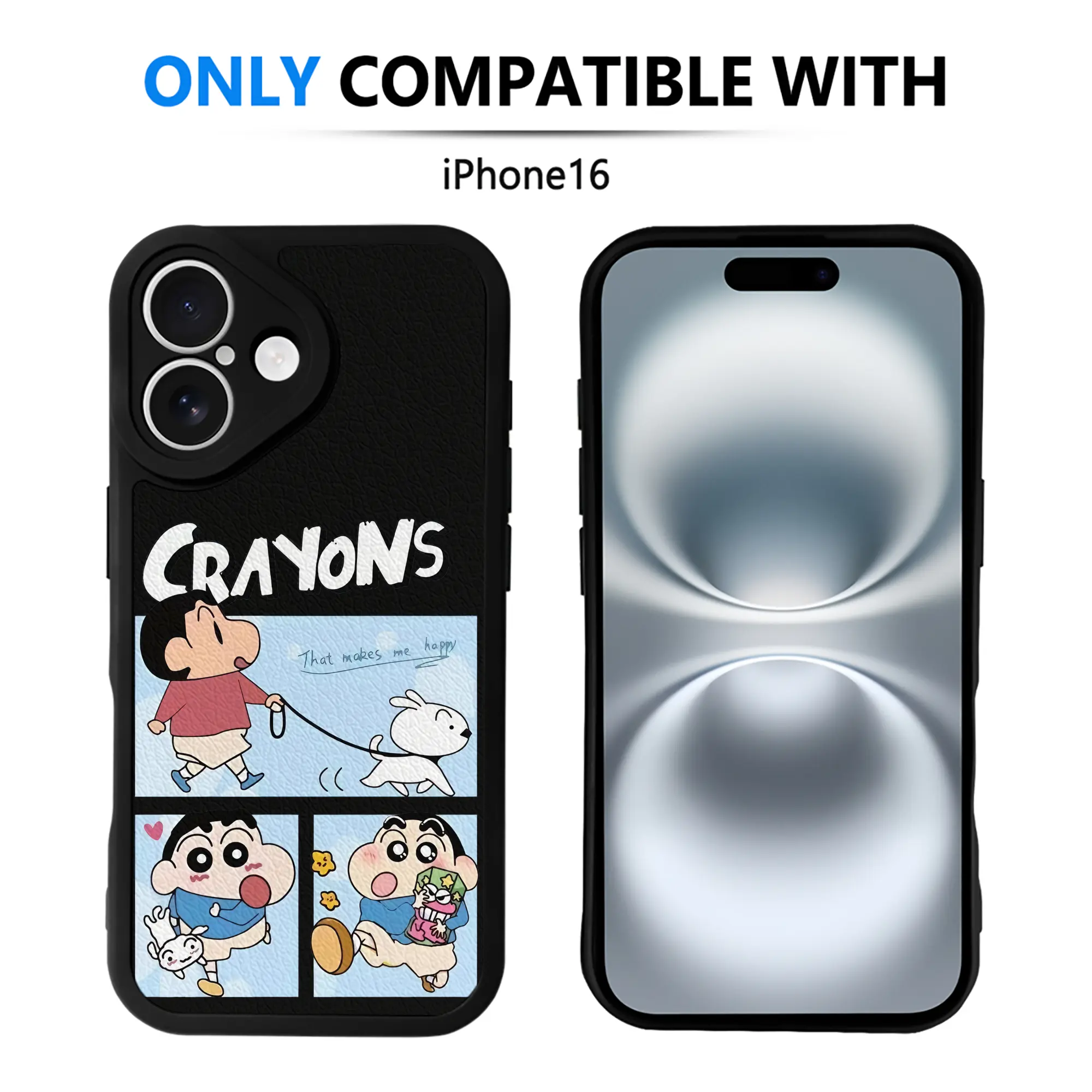 クレヨンしんちゃん グッズ 野原 しんのすけ - IPhone 16シリーズ対応 ・ シリコンスマホケース ・ レザー調 ・ 高精度フィット ・ 耐衝撃 ・ ワイヤレス充電対応 ・ 精密カット