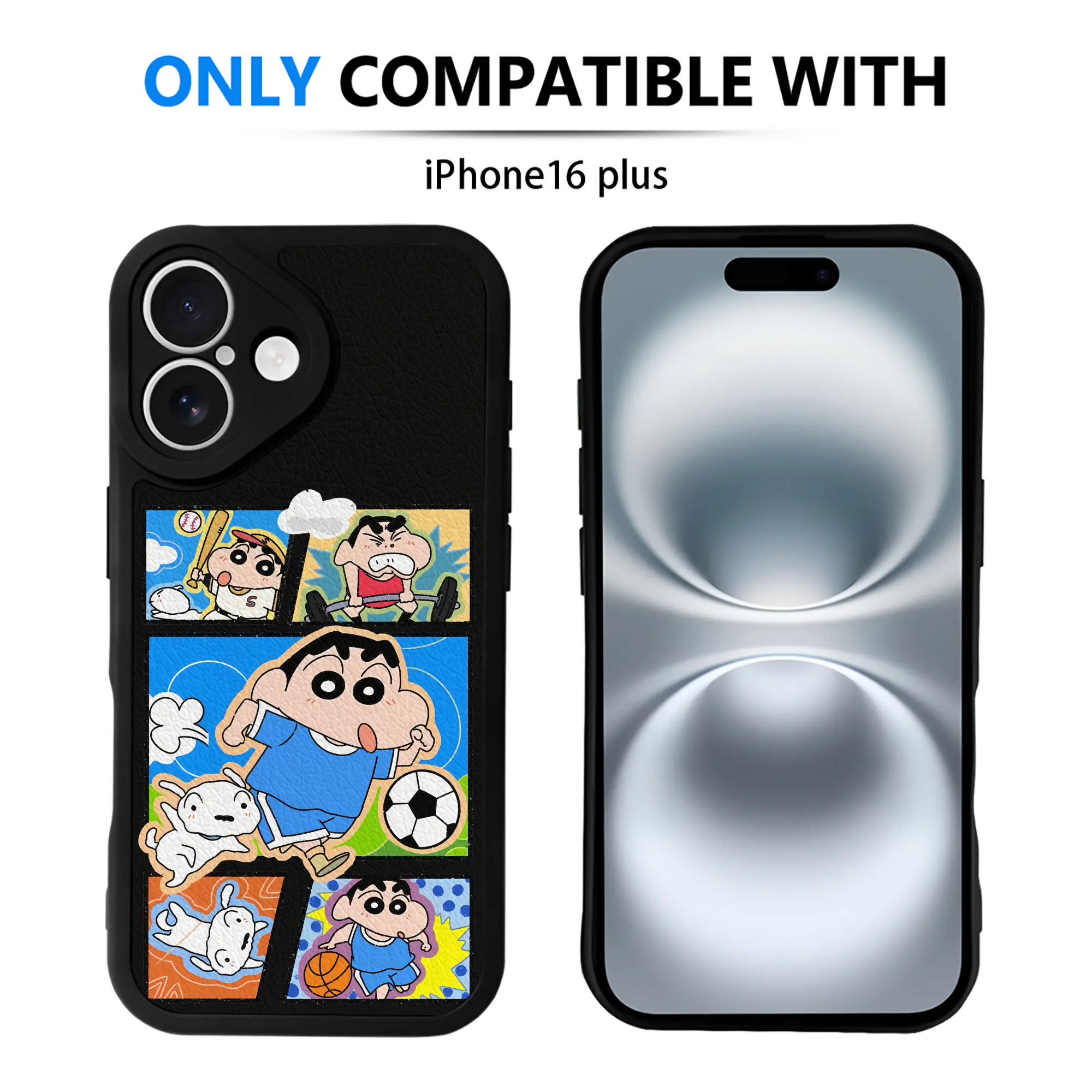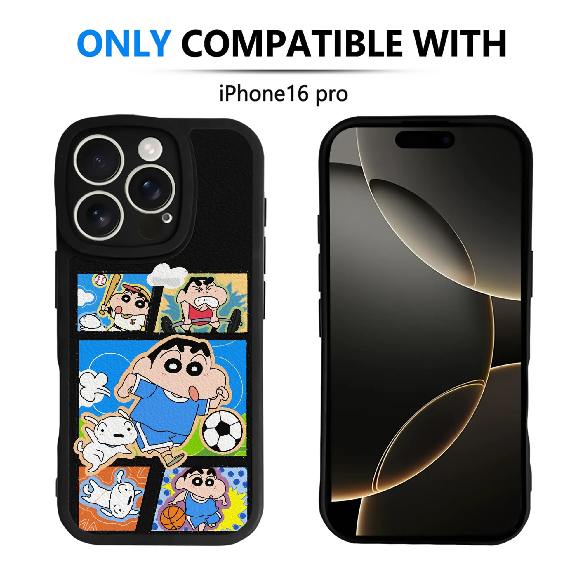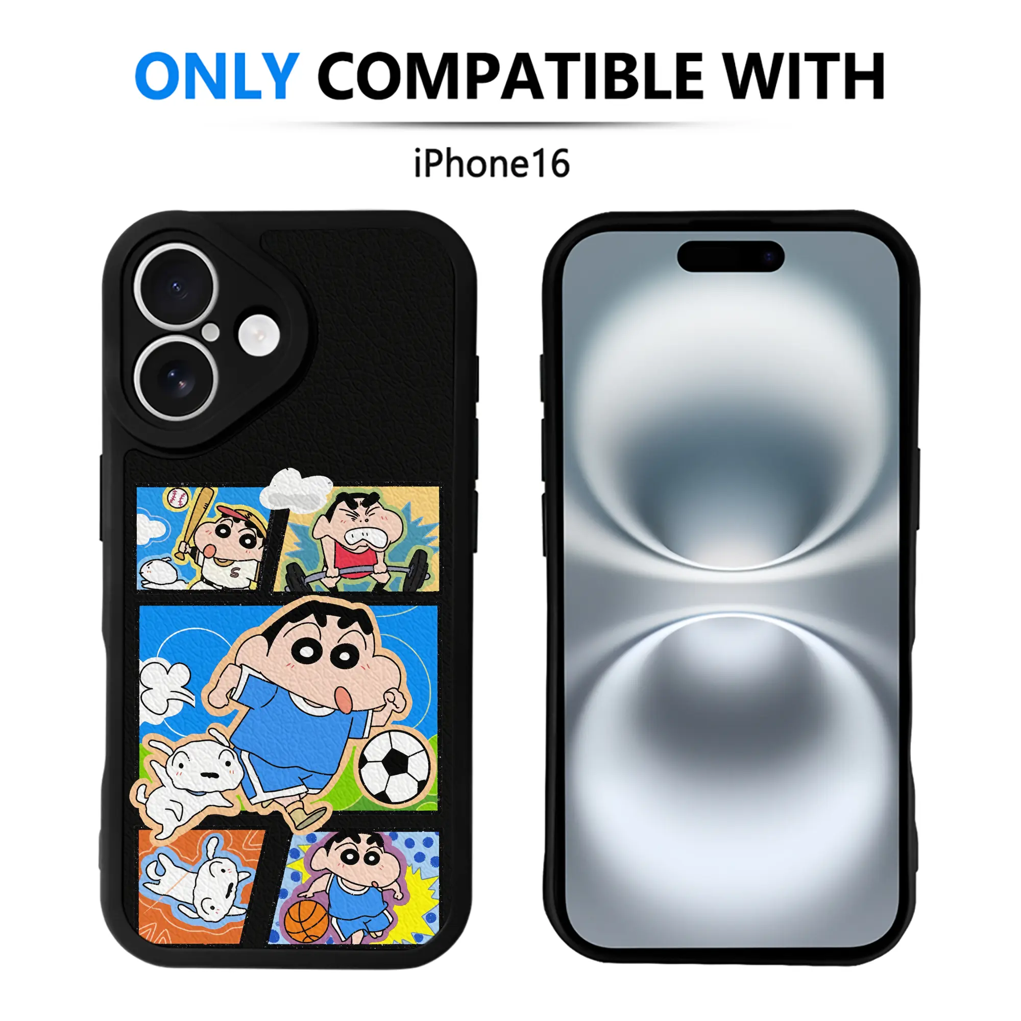 クレヨンしんちゃん グッズ 野原 しんのすけ - IPhone 16シリーズ対応 ・ シリコンスマホケース ・ レザー調 ・ 高精度フィット ・ 耐衝撃 ・ ワイヤレス充電対応 ・ 精密カット