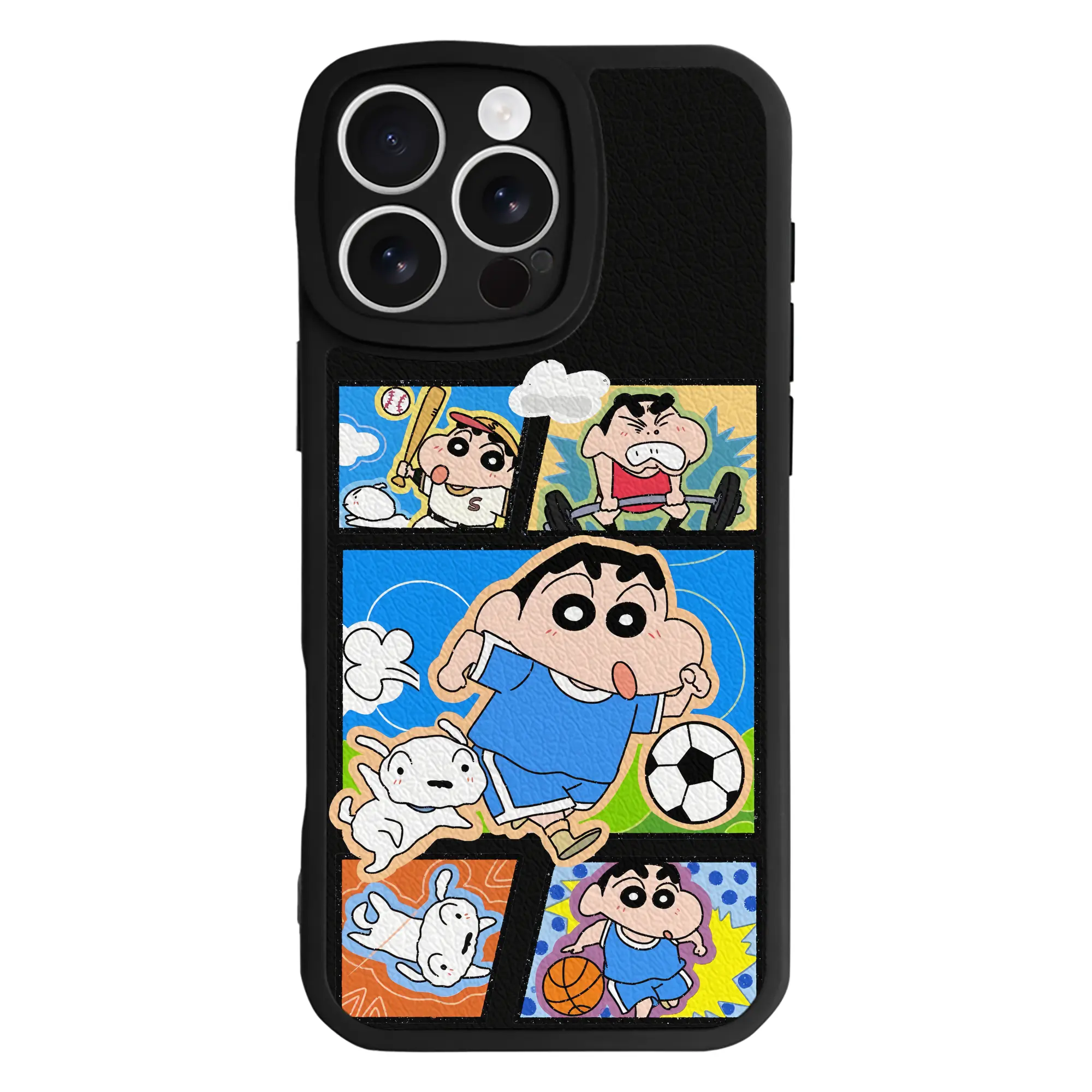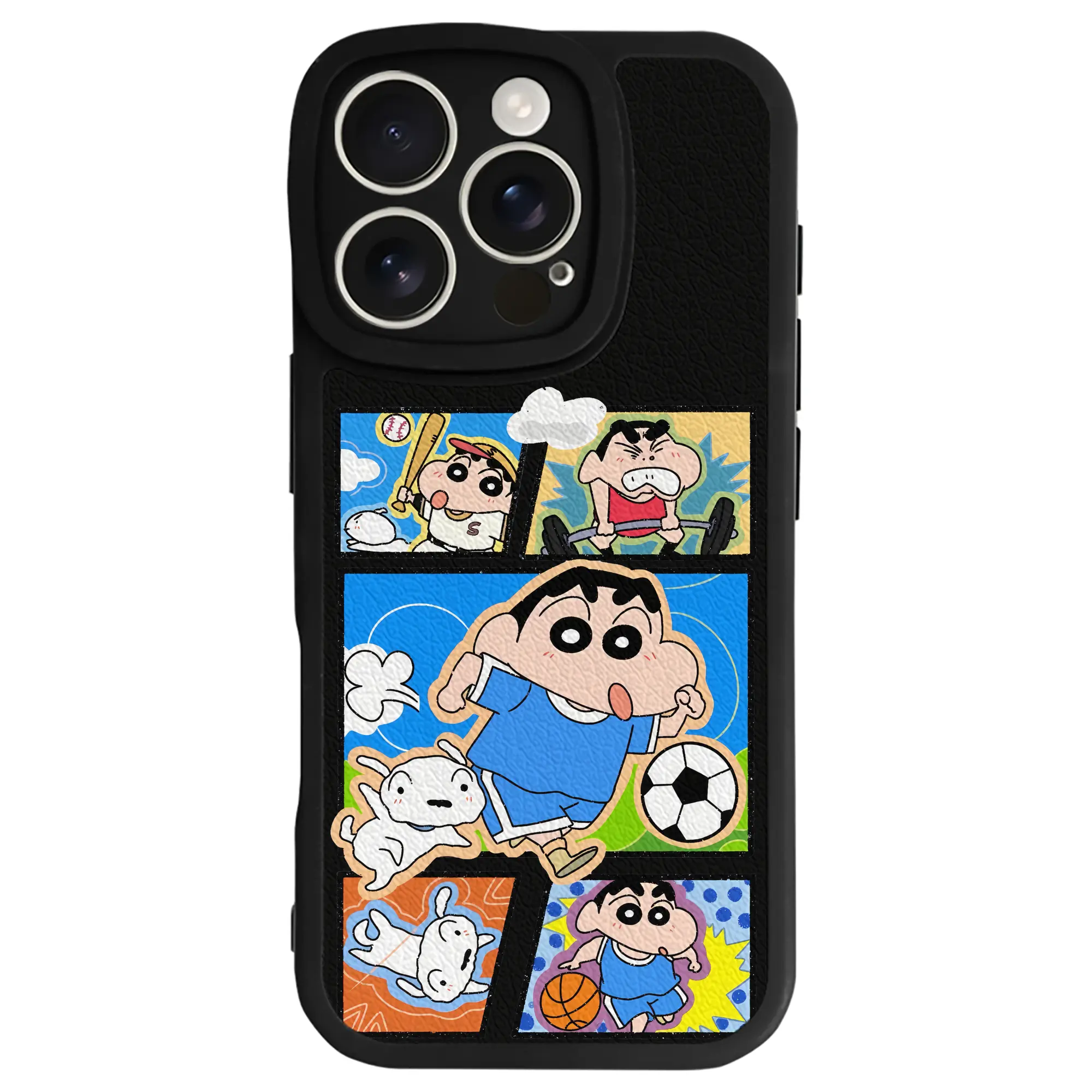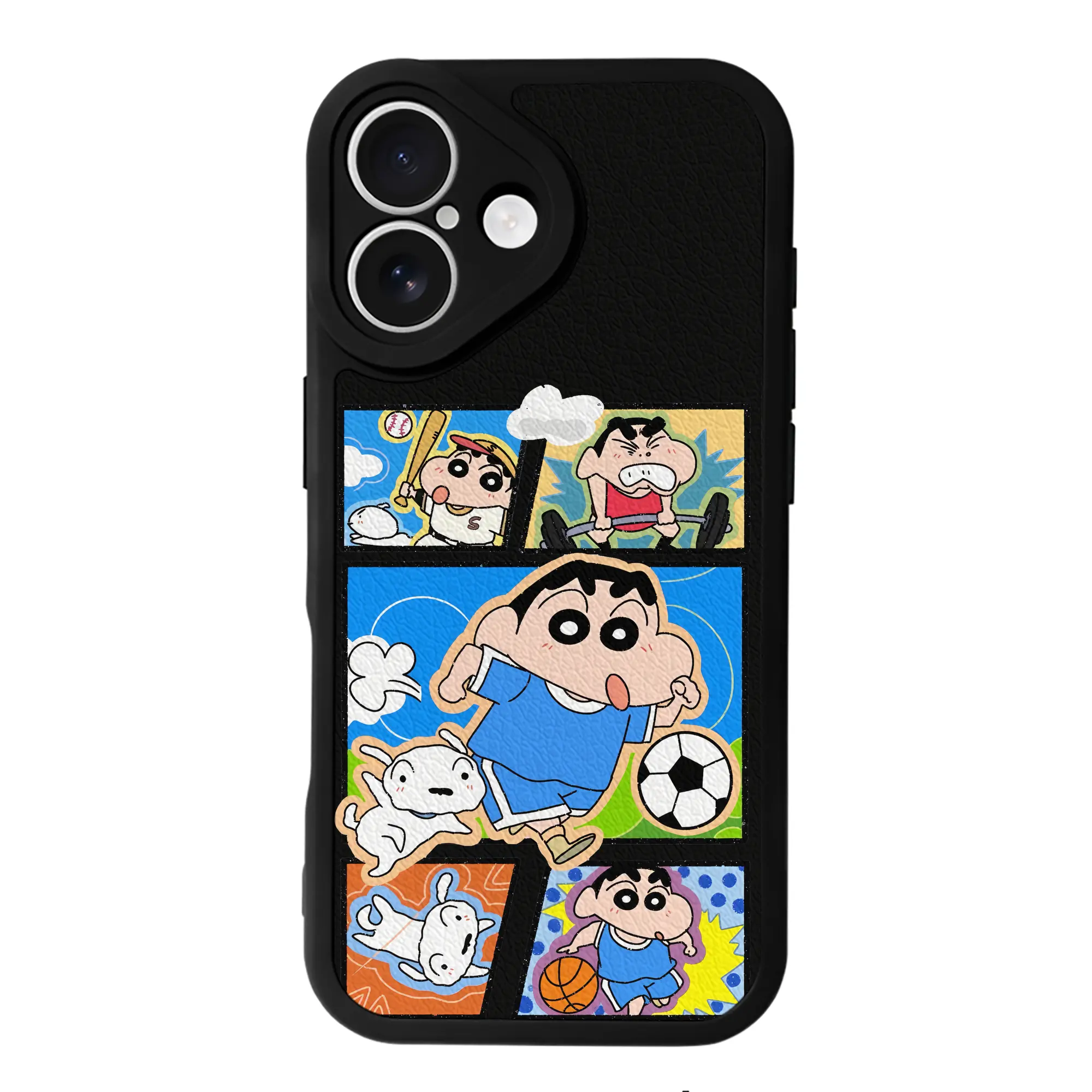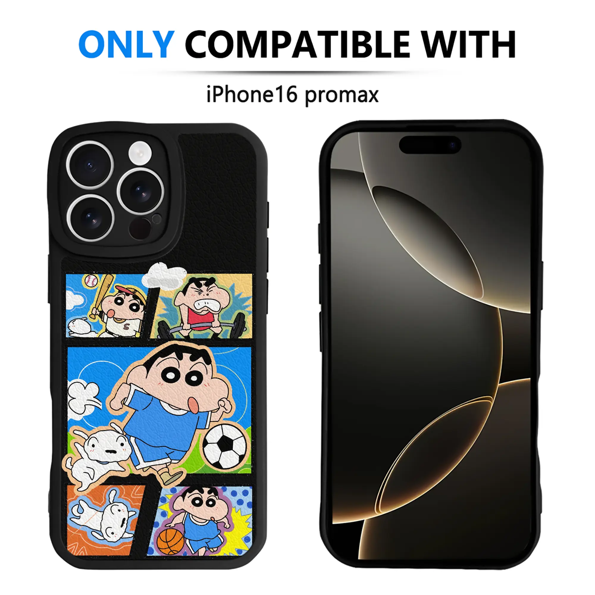 クレヨンしんちゃん グッズ 野原 しんのすけ - IPhone 16シリーズ対応 ・ シリコンスマホケース ・ レザー調 ・ 高精度フィット ・ 耐衝撃 ・ ワイヤレス充電対応 ・ 精密カット