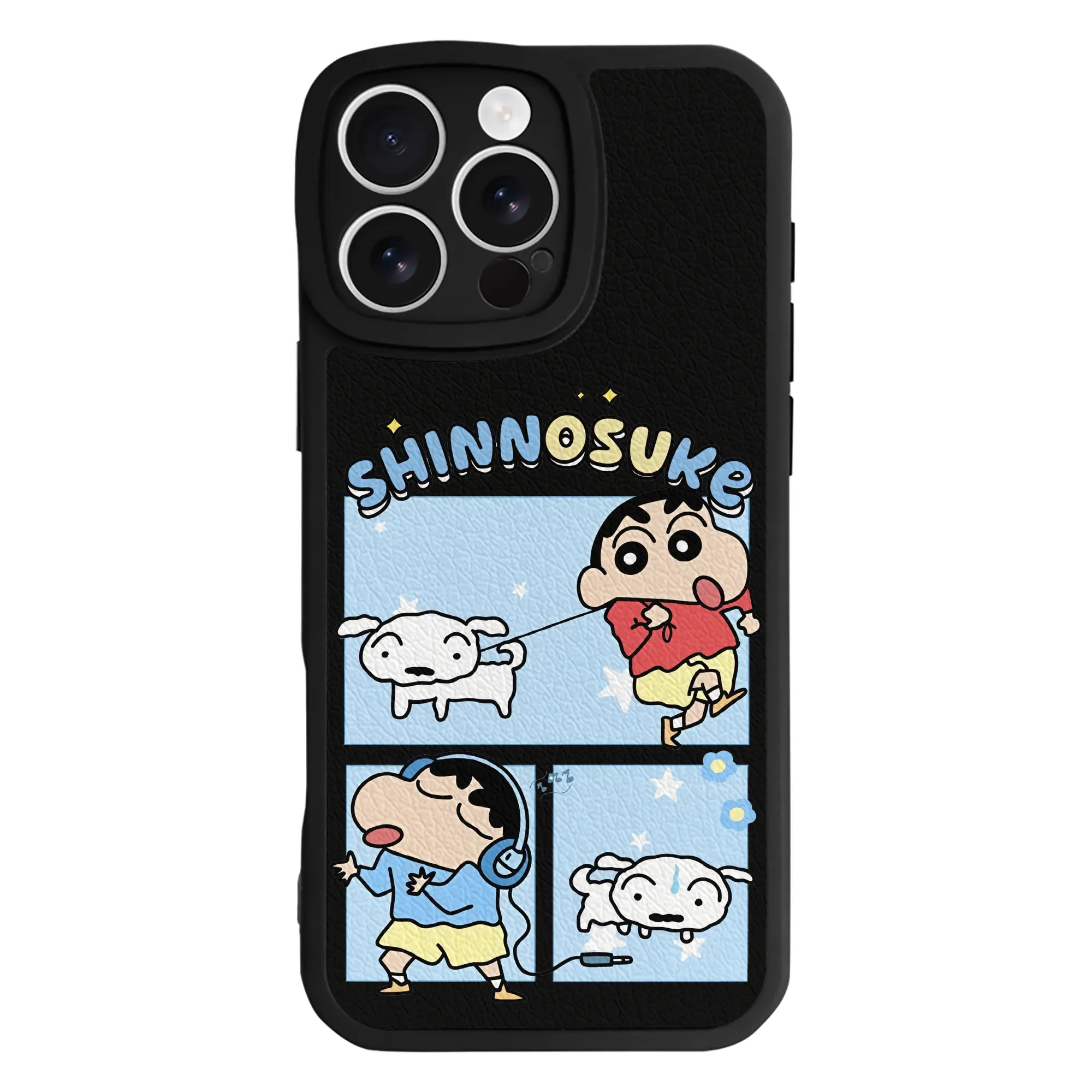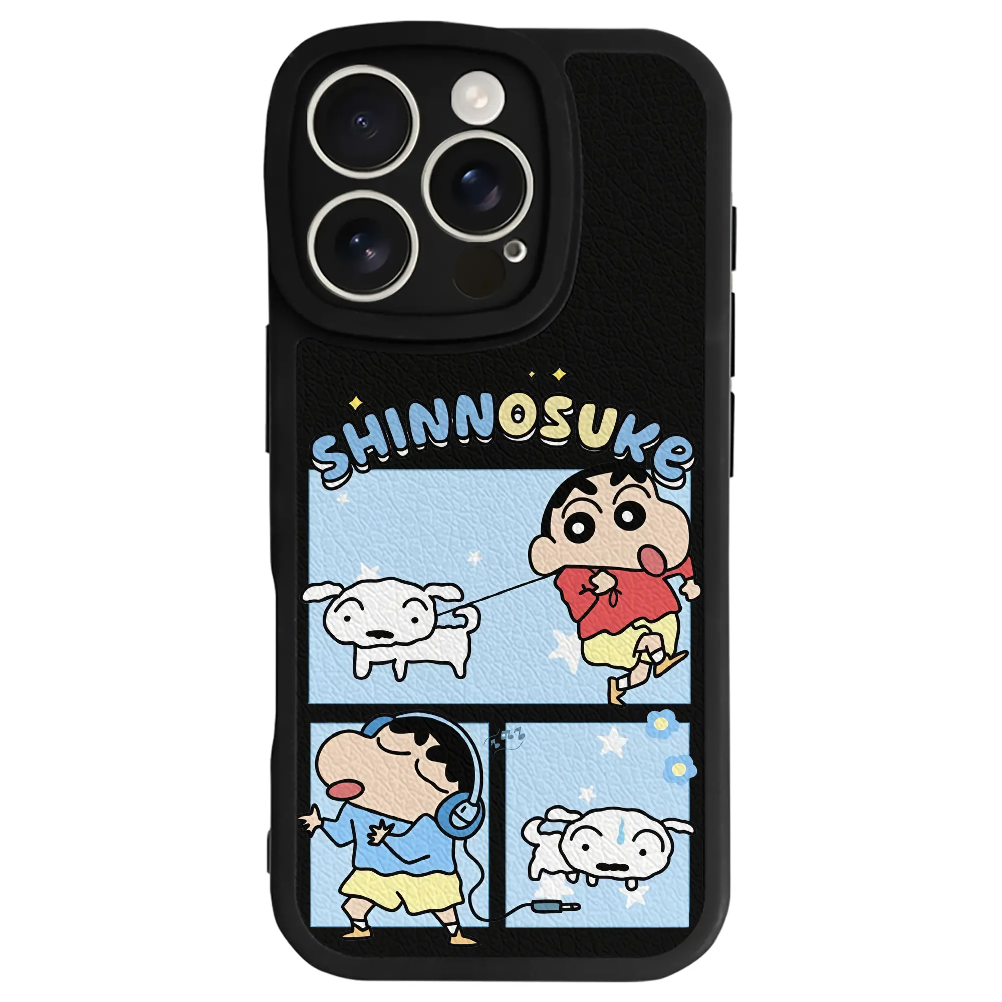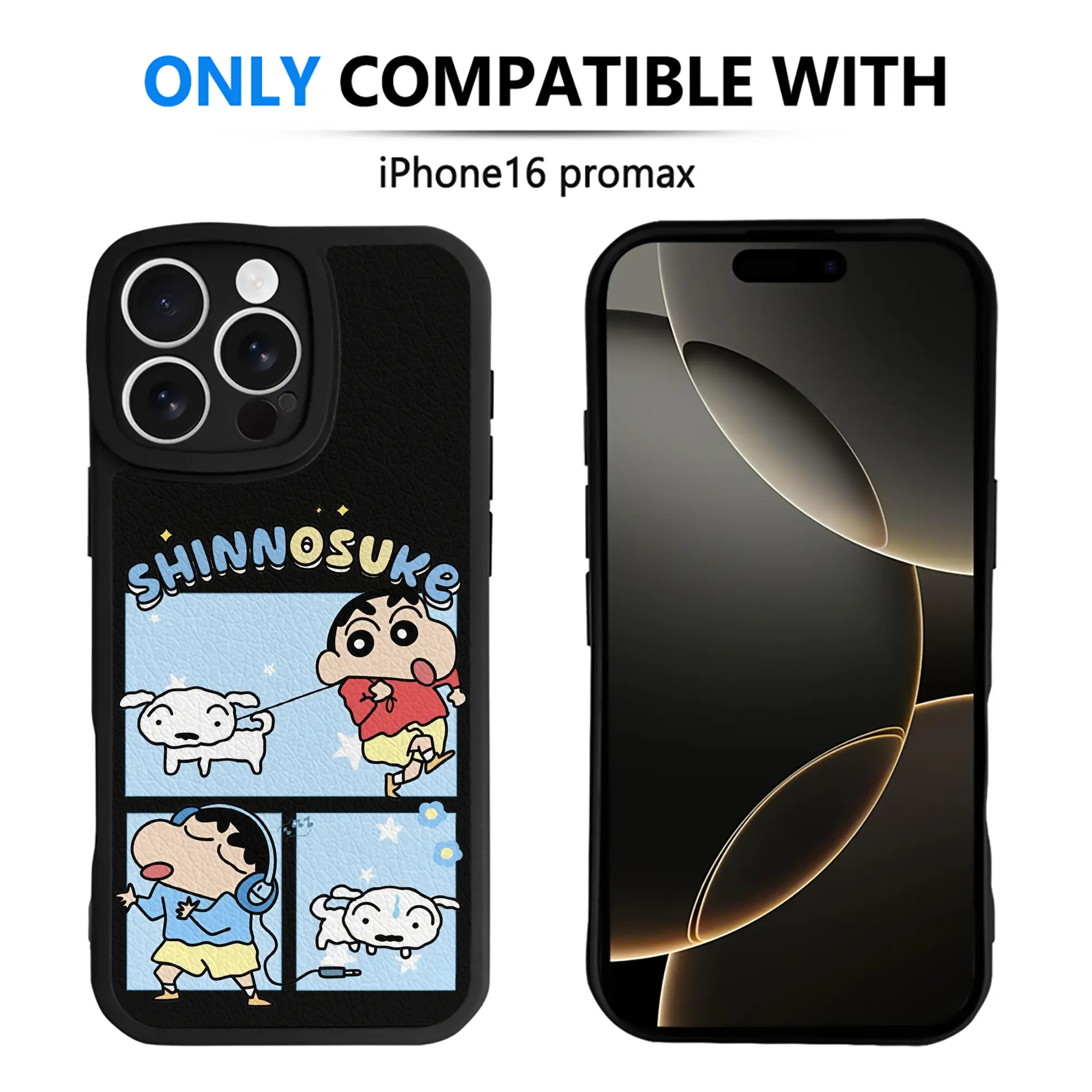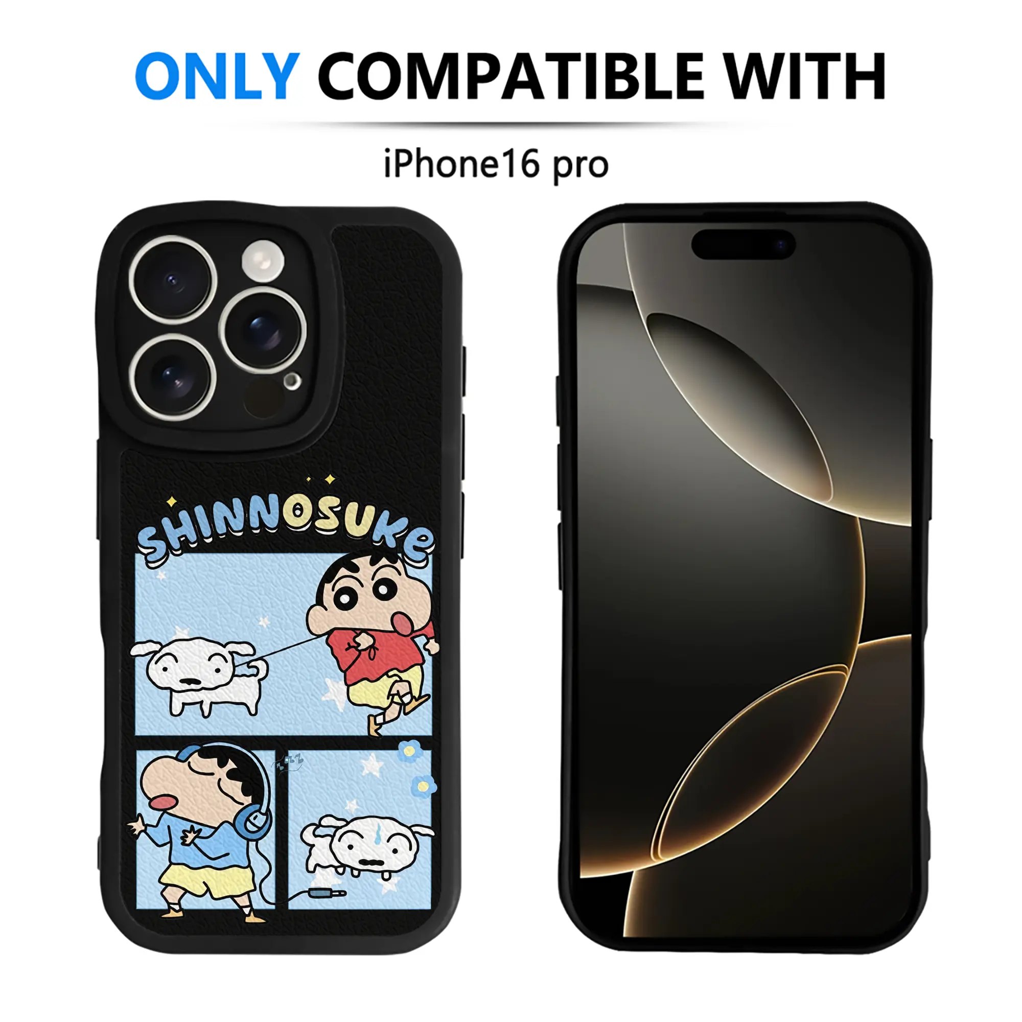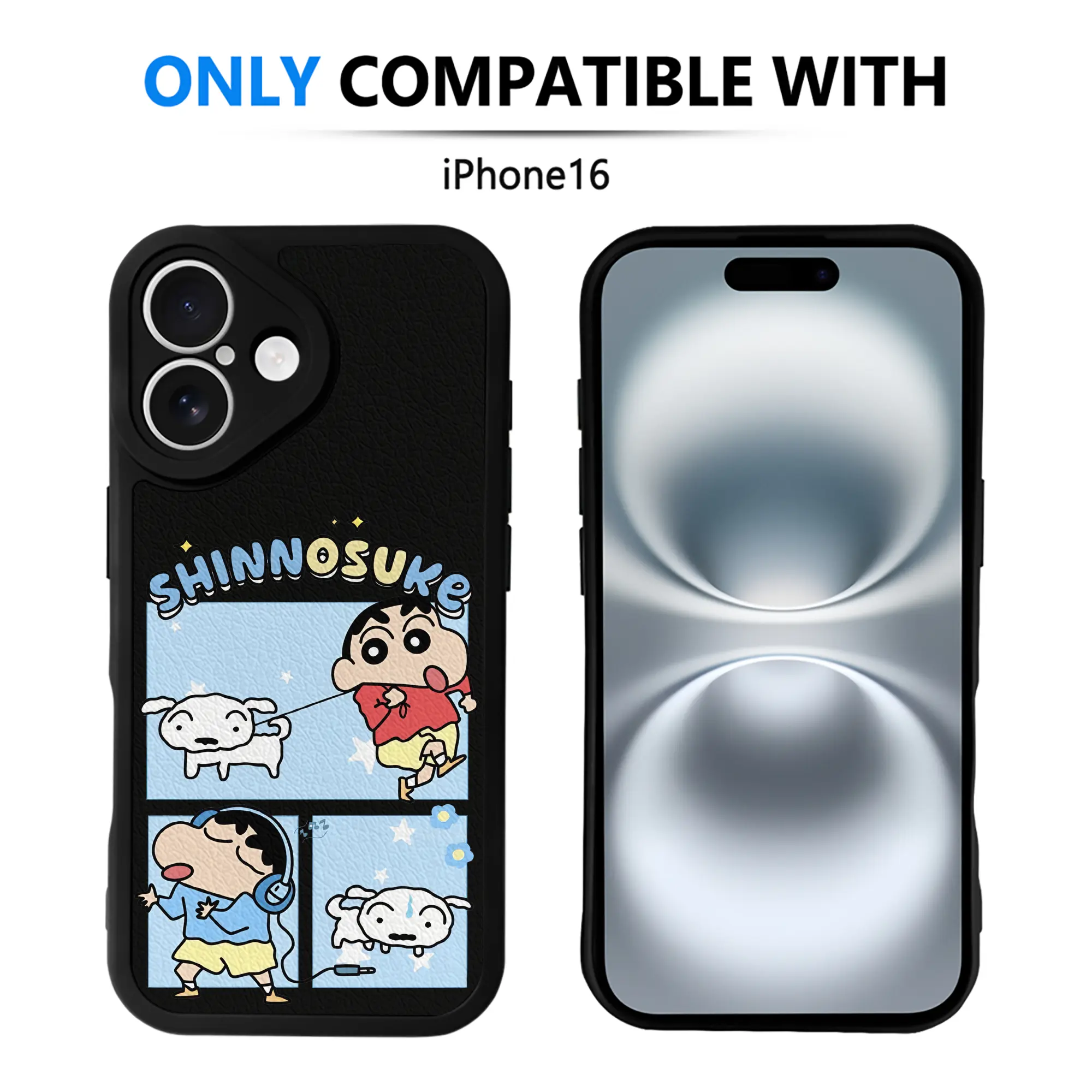 クレヨンしんちゃん グッズ 野原 しんのすけ - IPhone 16シリーズ対応 ・ シリコンスマホケース ・ レザー調 ・ 高精度フィット ・ 耐衝撃 ・ ワイヤレス充電対応 ・ 精密カット