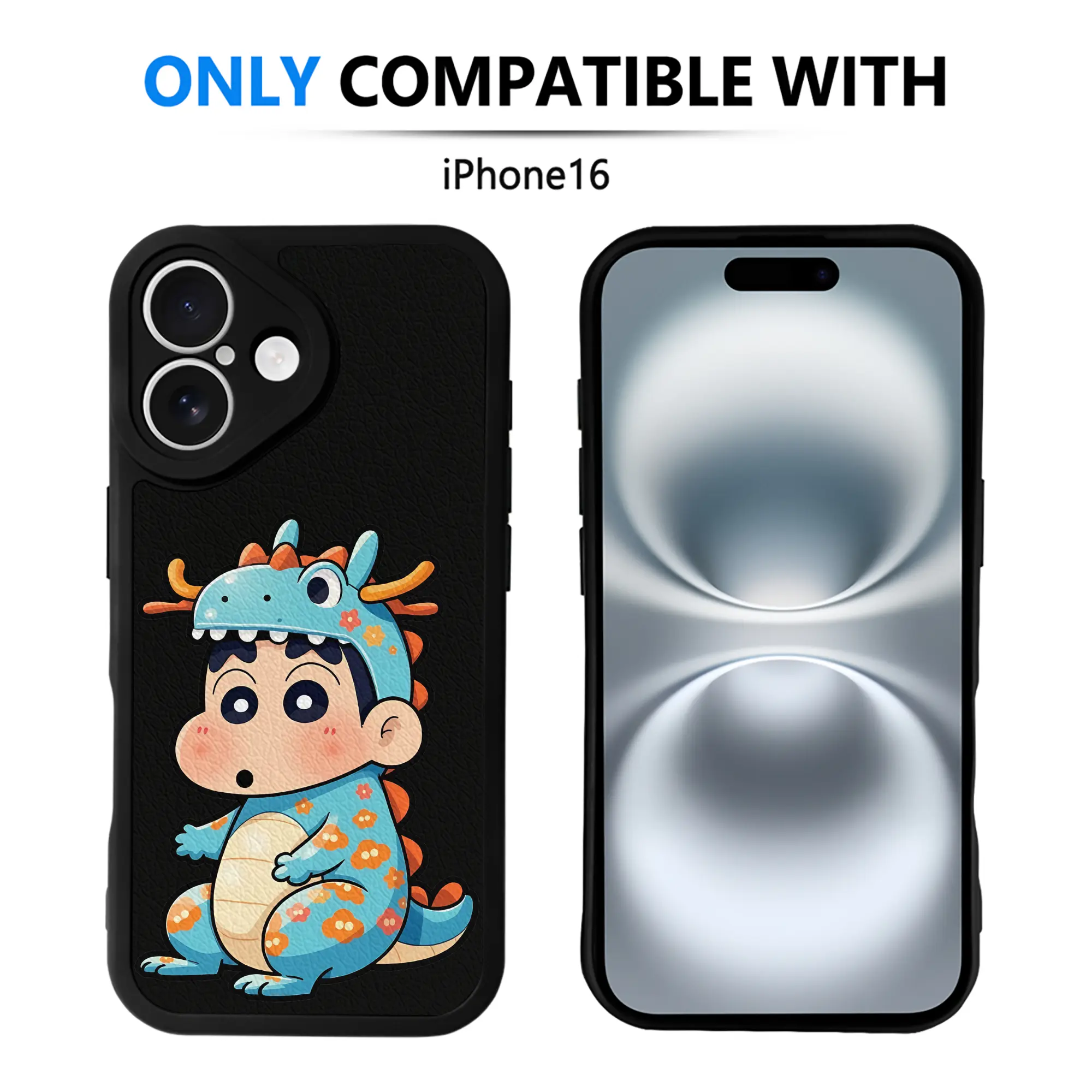 クレヨンしんちゃん グッズ 野原 しんのすけ - IPhone 16シリーズ対応 ・ シリコンスマホケース ・ レザー調 ・ 高精度フィット ・ 耐衝撃 ・ ワイヤレス充電対応 ・ 精密カット