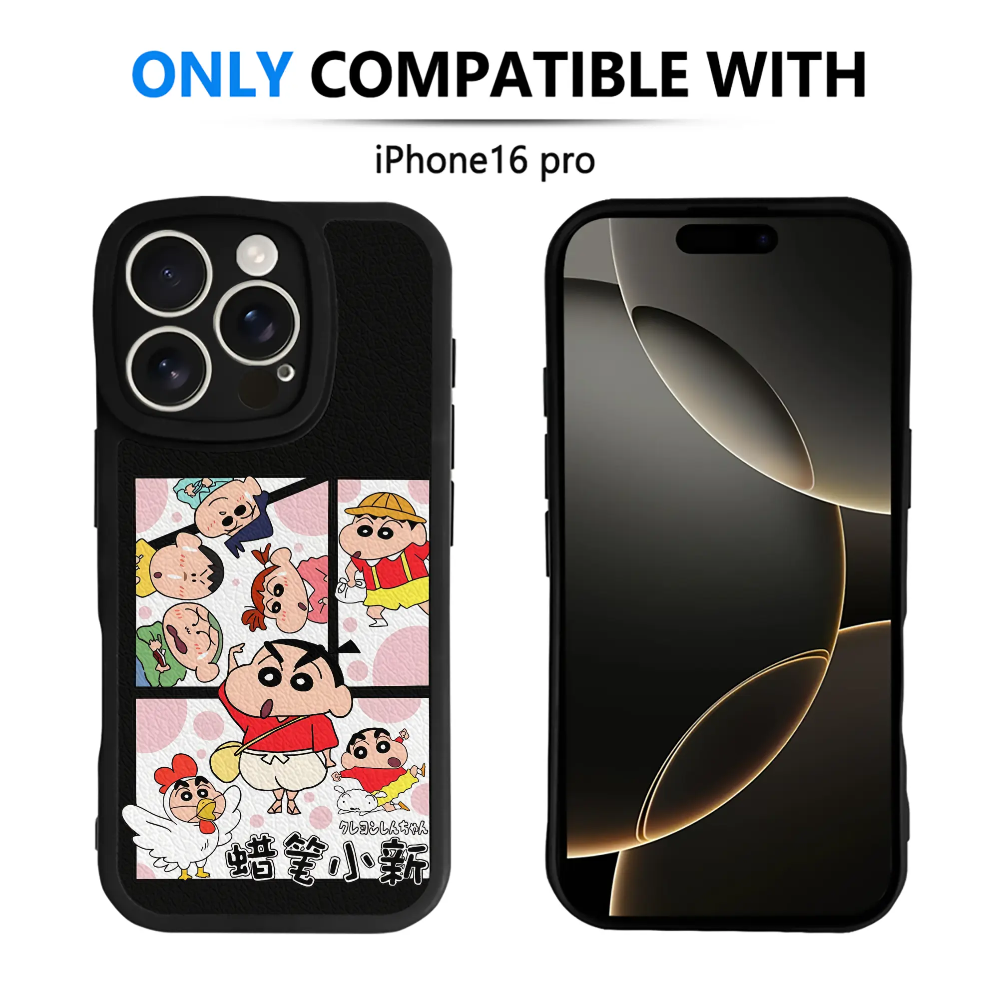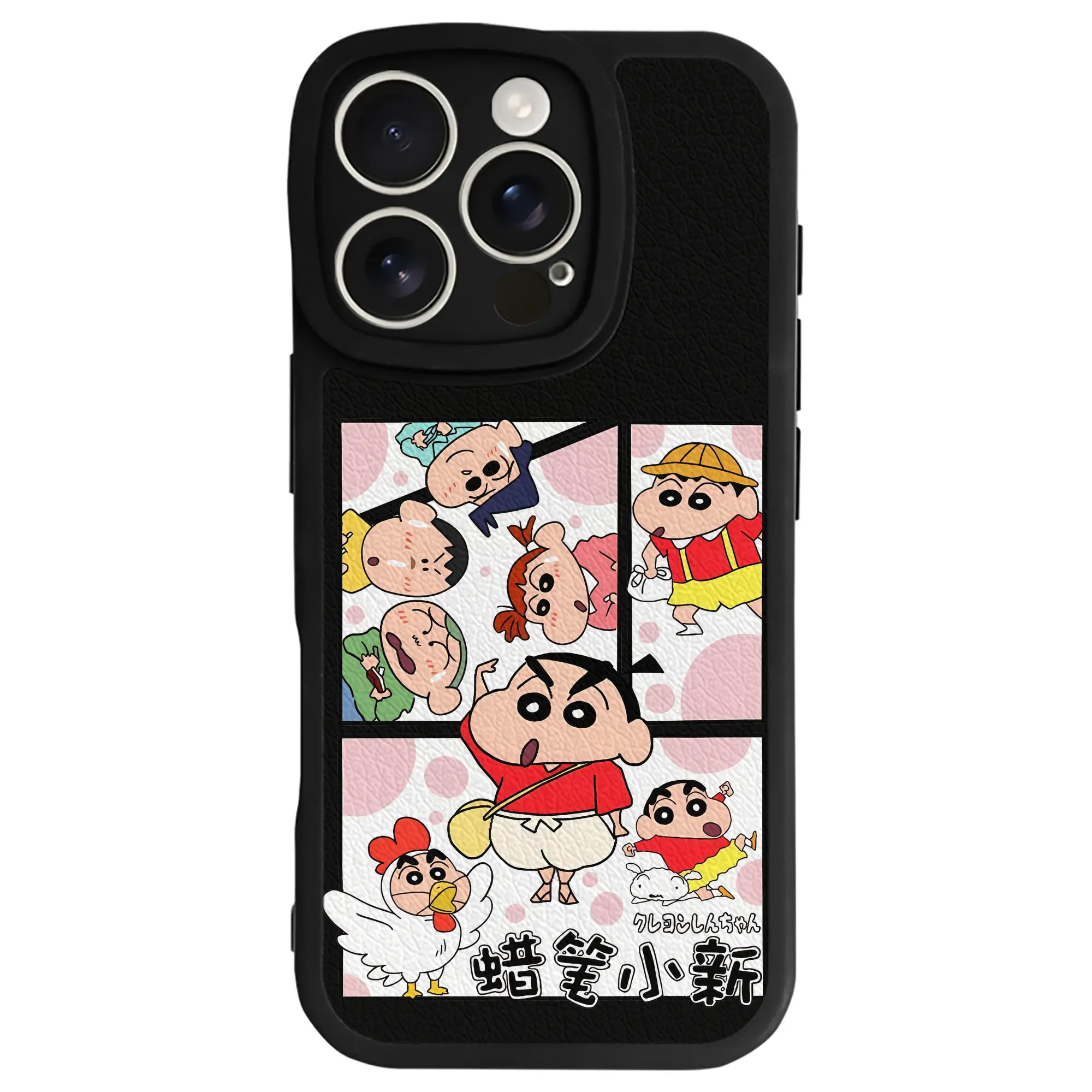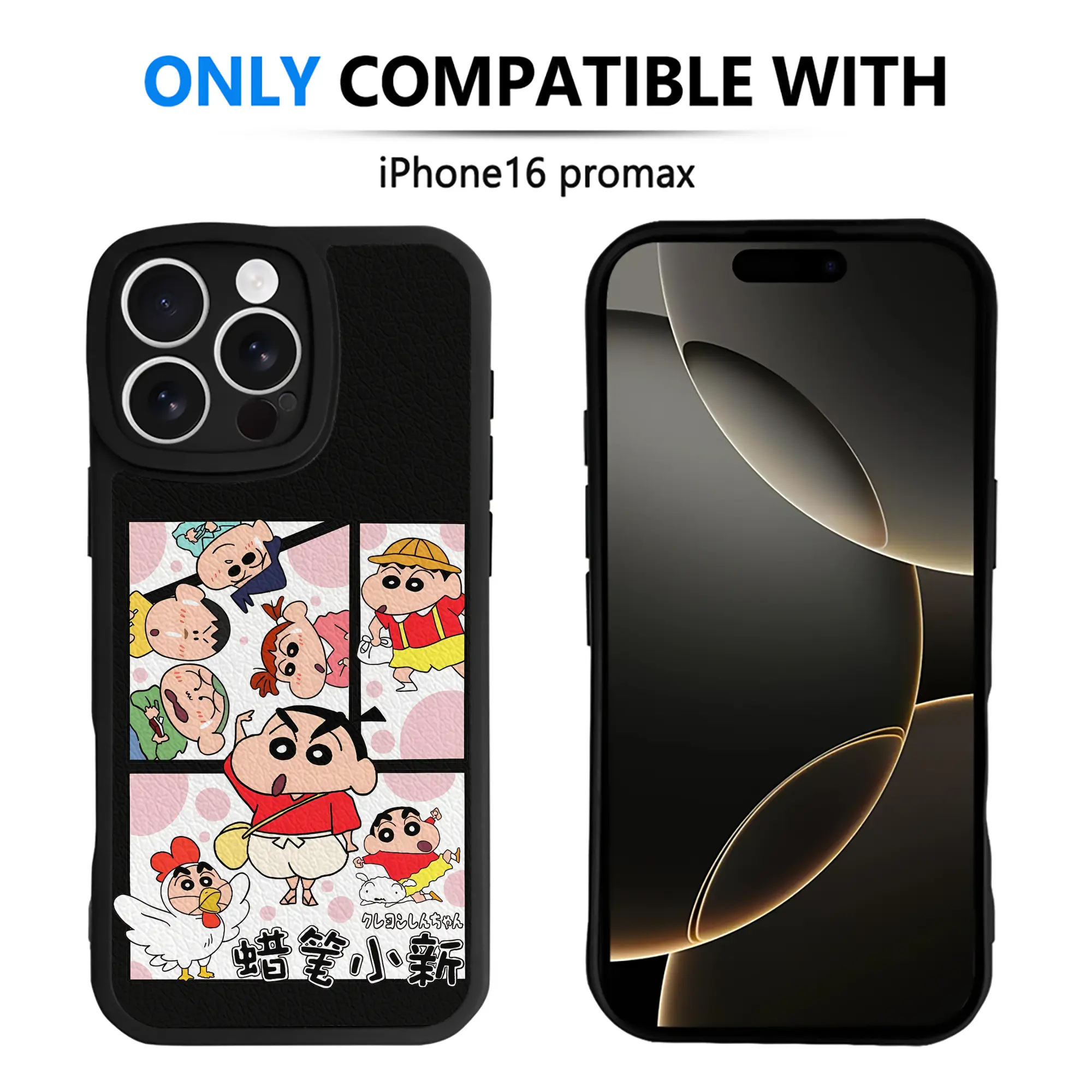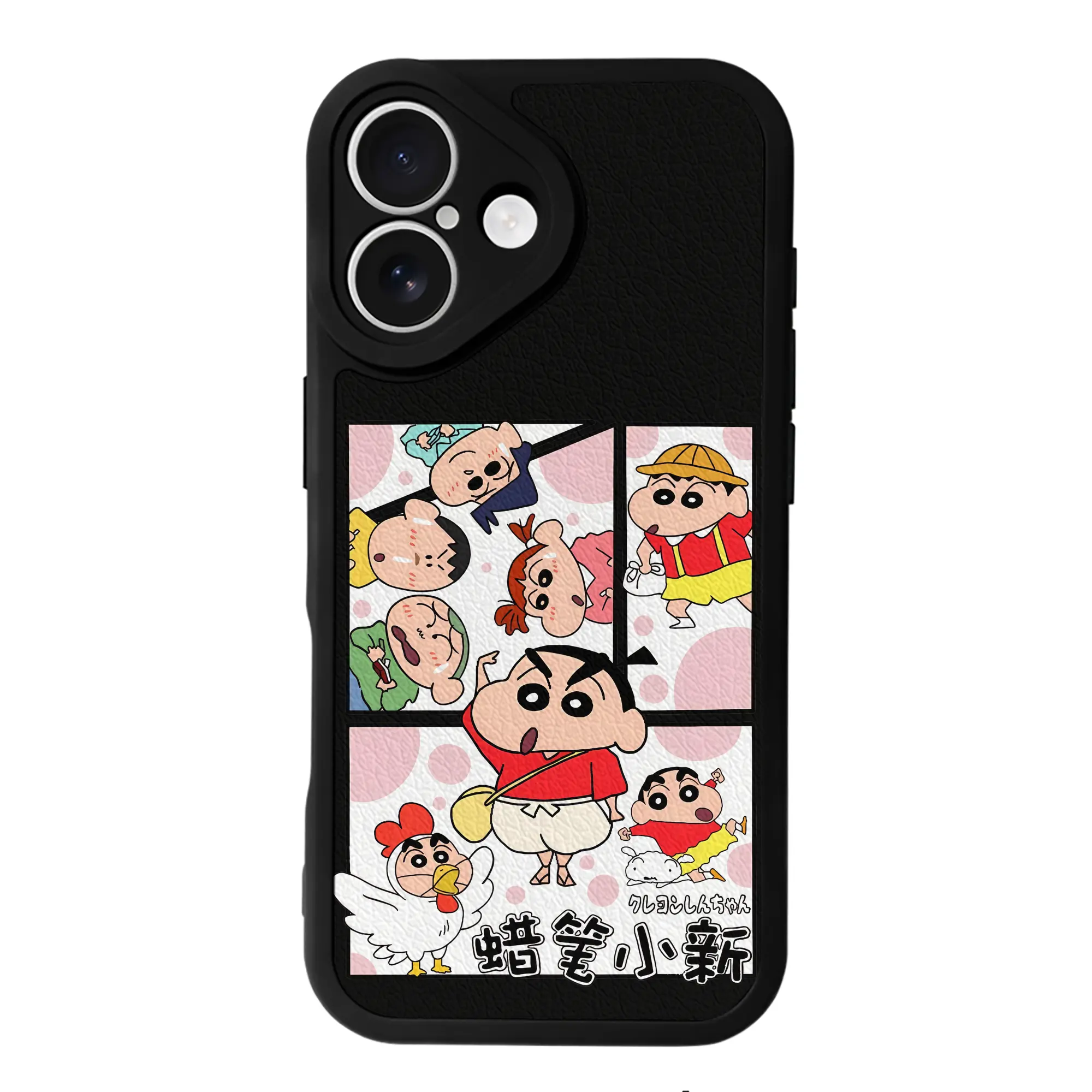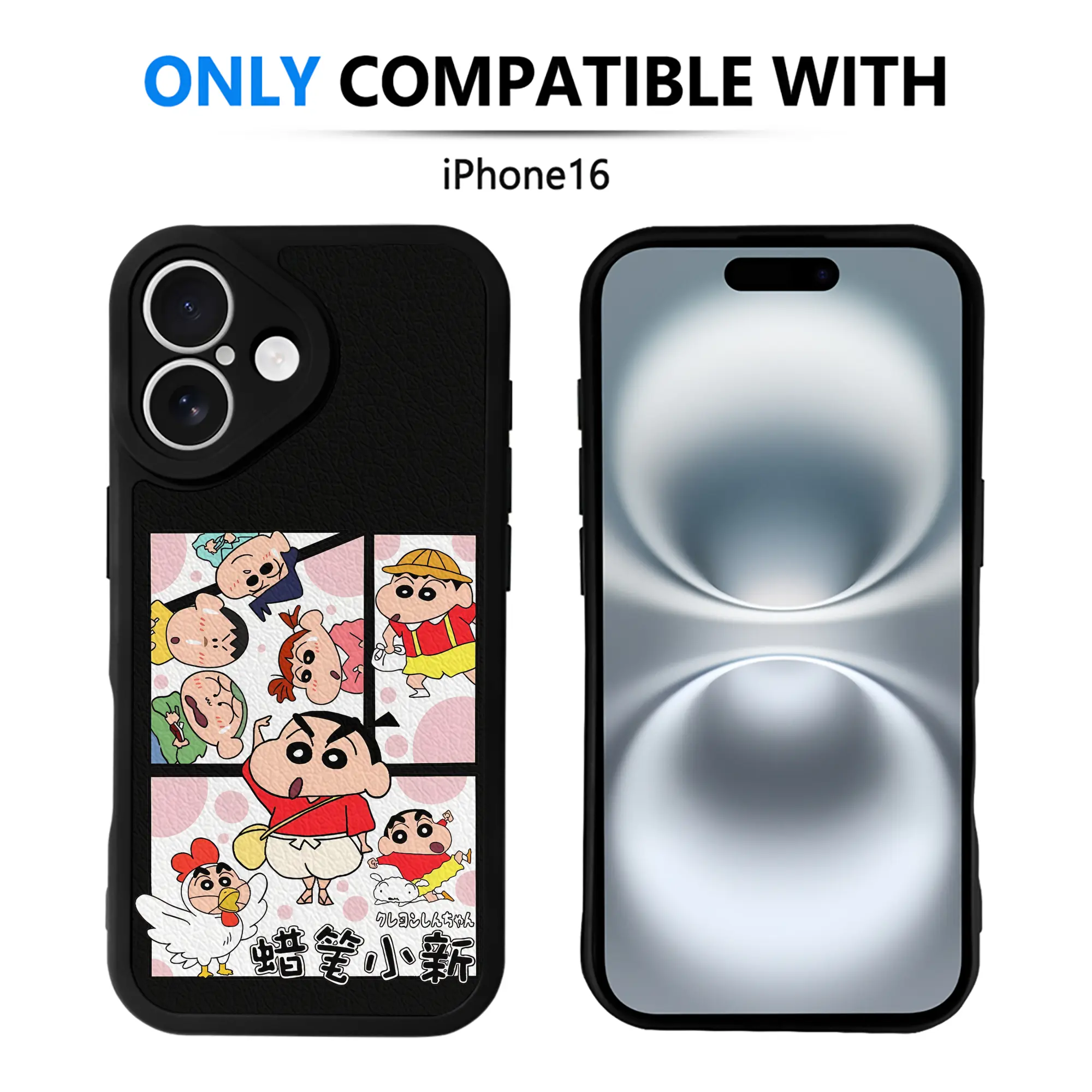 クレヨンしんちゃん グッズ 野原 しんのすけ - IPhone 16シリーズ対応 ・ シリコンスマホケース ・ レザー調 ・ 高精度フィット ・ 耐衝撃 ・ ワイヤレス充電対応 ・ 精密カット