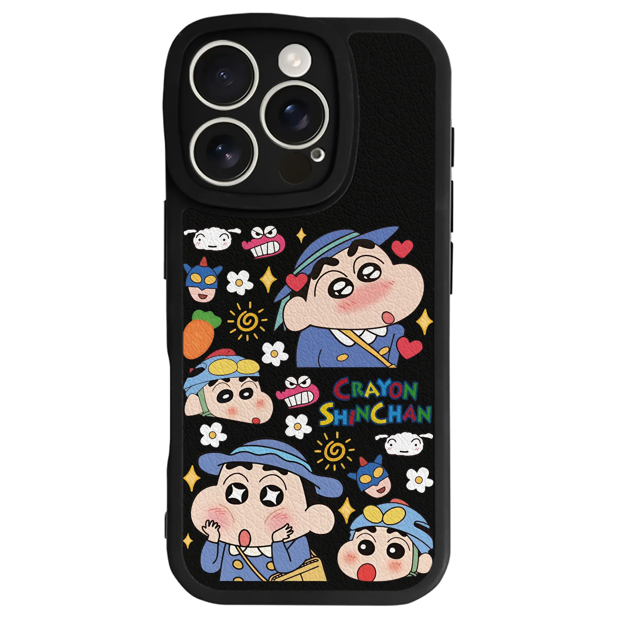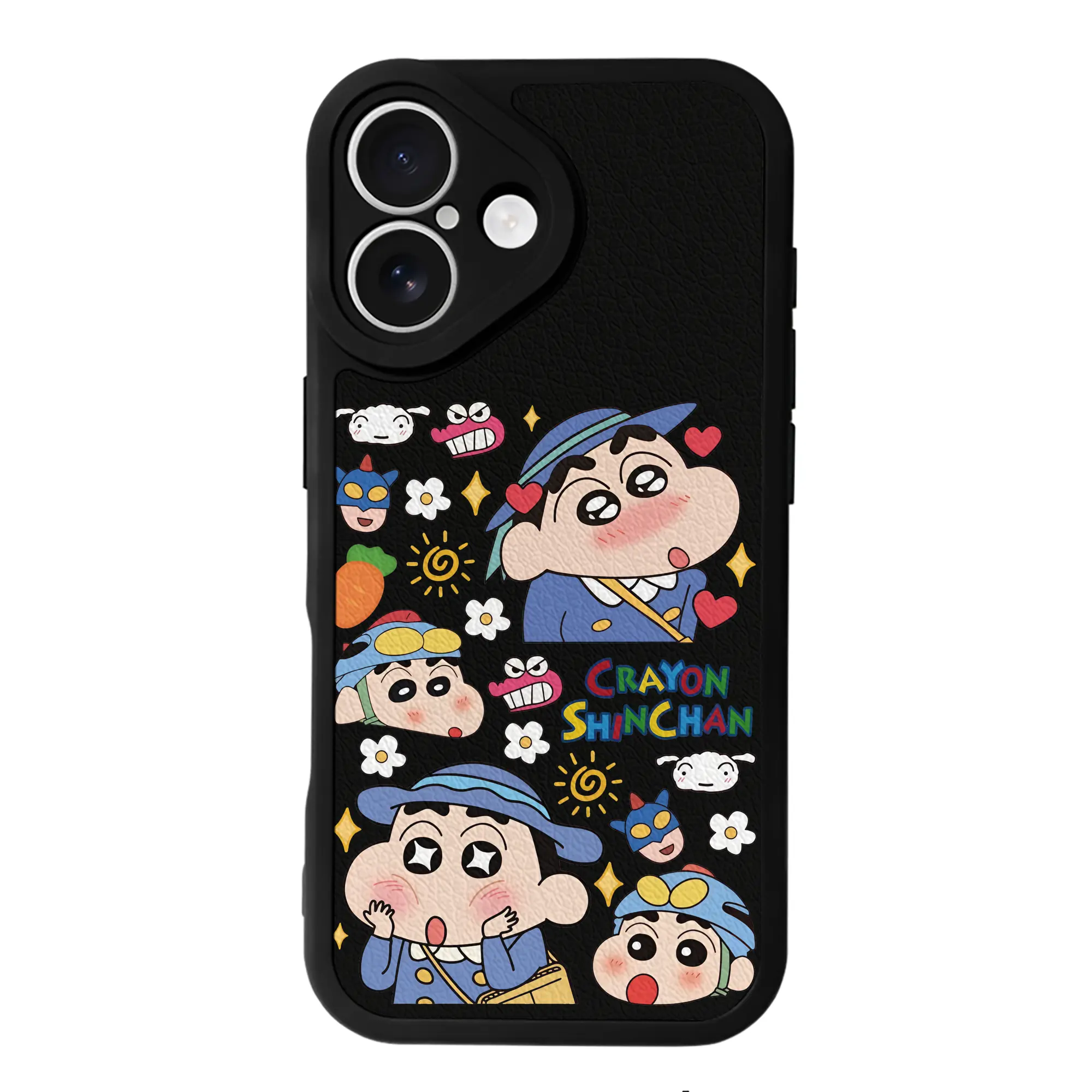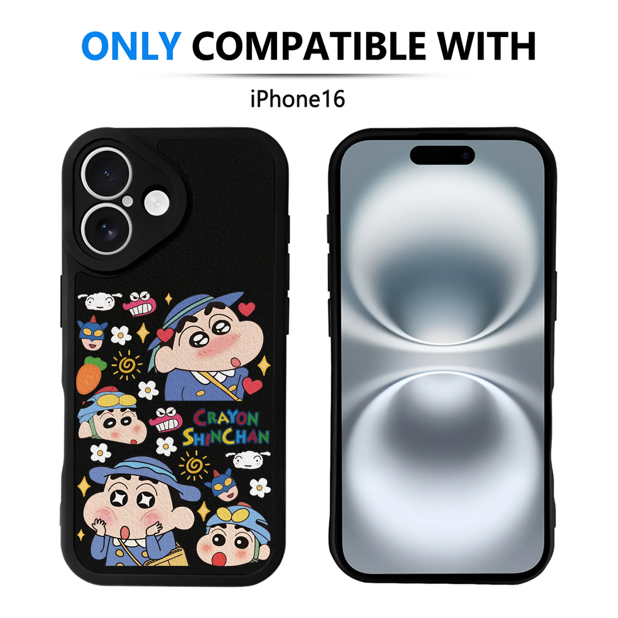 クレヨンしんちゃん グッズ 野原 しんのすけ - IPhone 16シリーズ対応 ・ シリコンスマホケース ・ レザー調 ・ 高精度フィット ・ 耐衝撃 ・ ワイヤレス充電対応 ・ 精密カット
