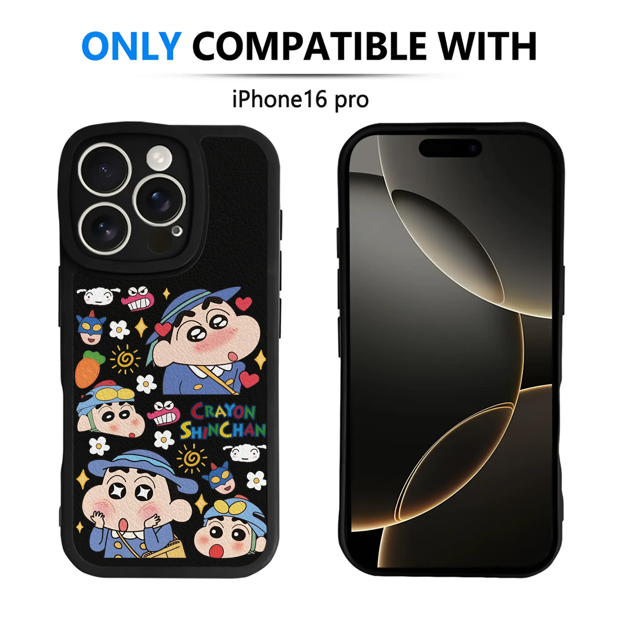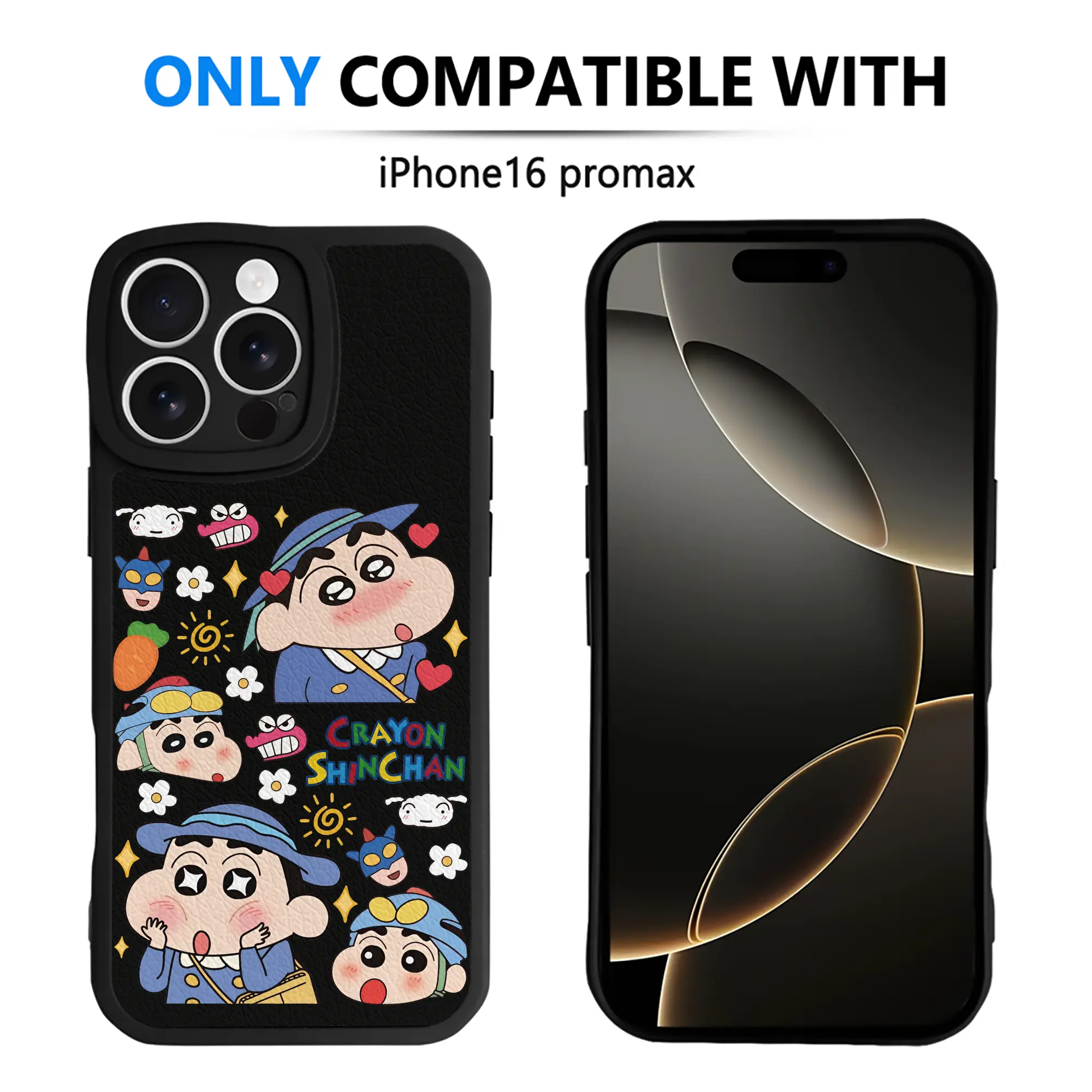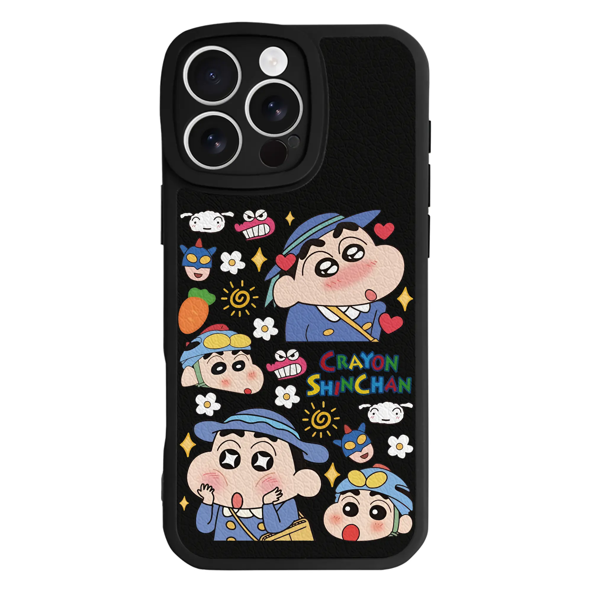 クレヨンしんちゃん グッズ 野原 しんのすけ - IPhone 16シリーズ対応 ・ シリコンスマホケース ・ レザー調 ・ 高精度フィット ・ 耐衝撃 ・ ワイヤレス充電対応 ・ 精密カット