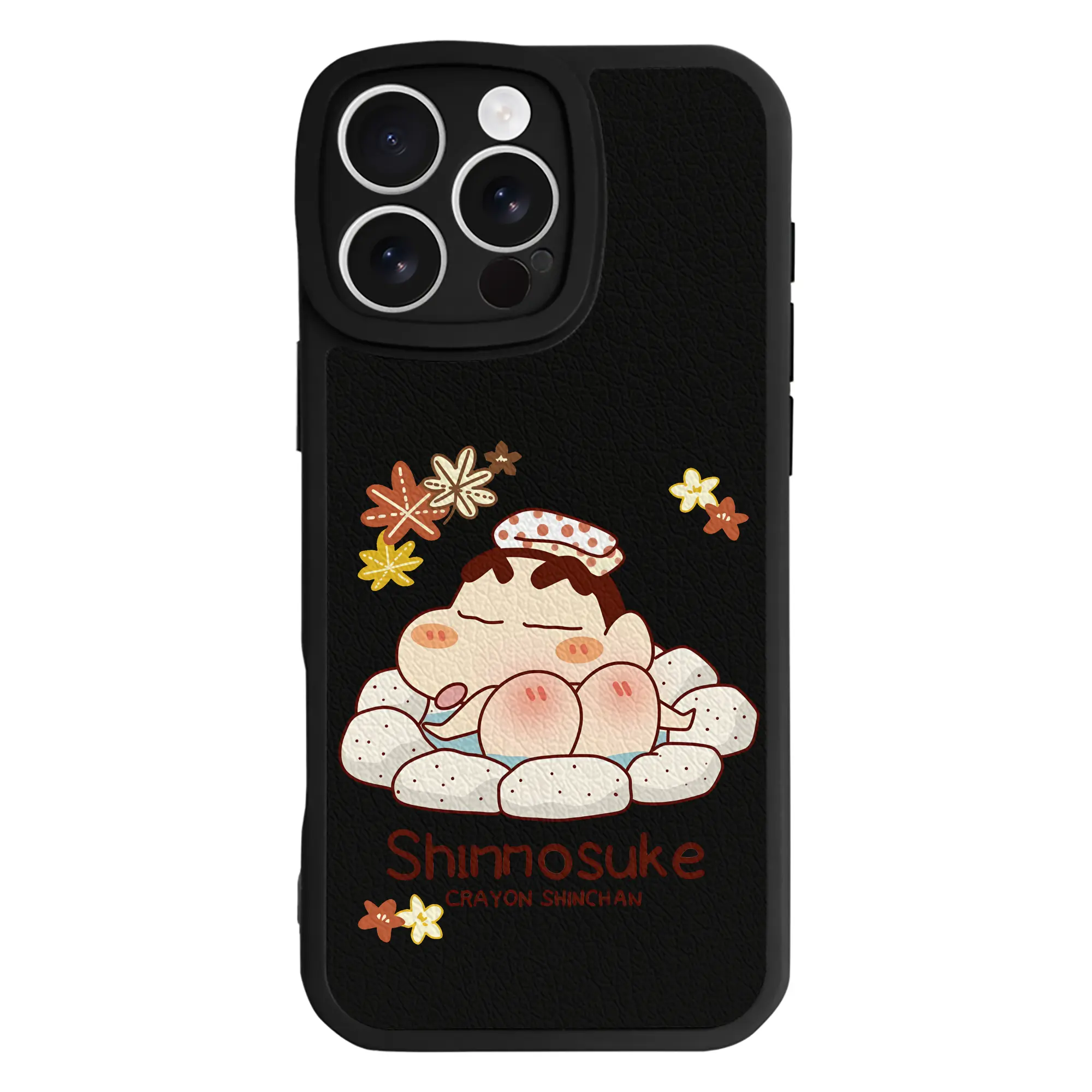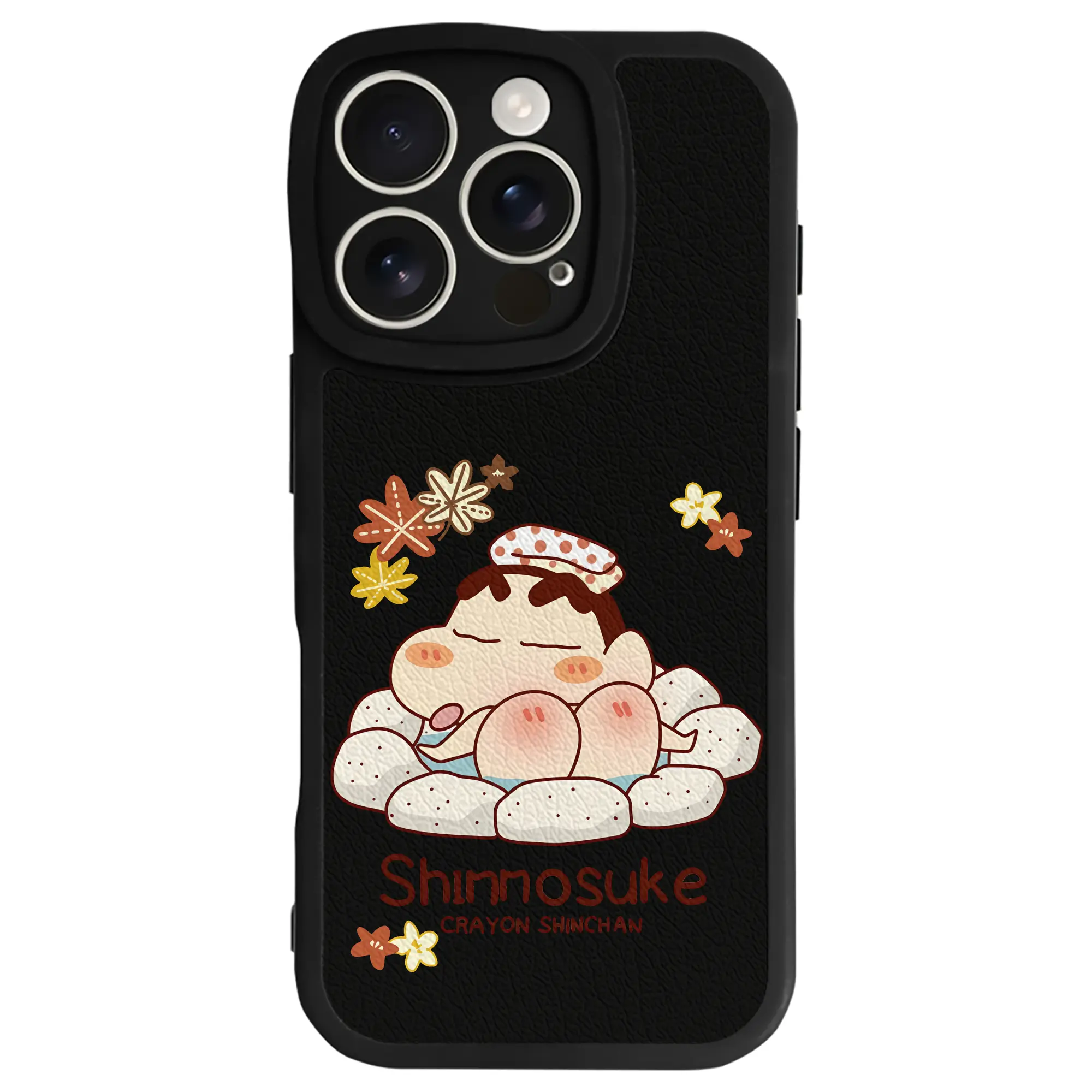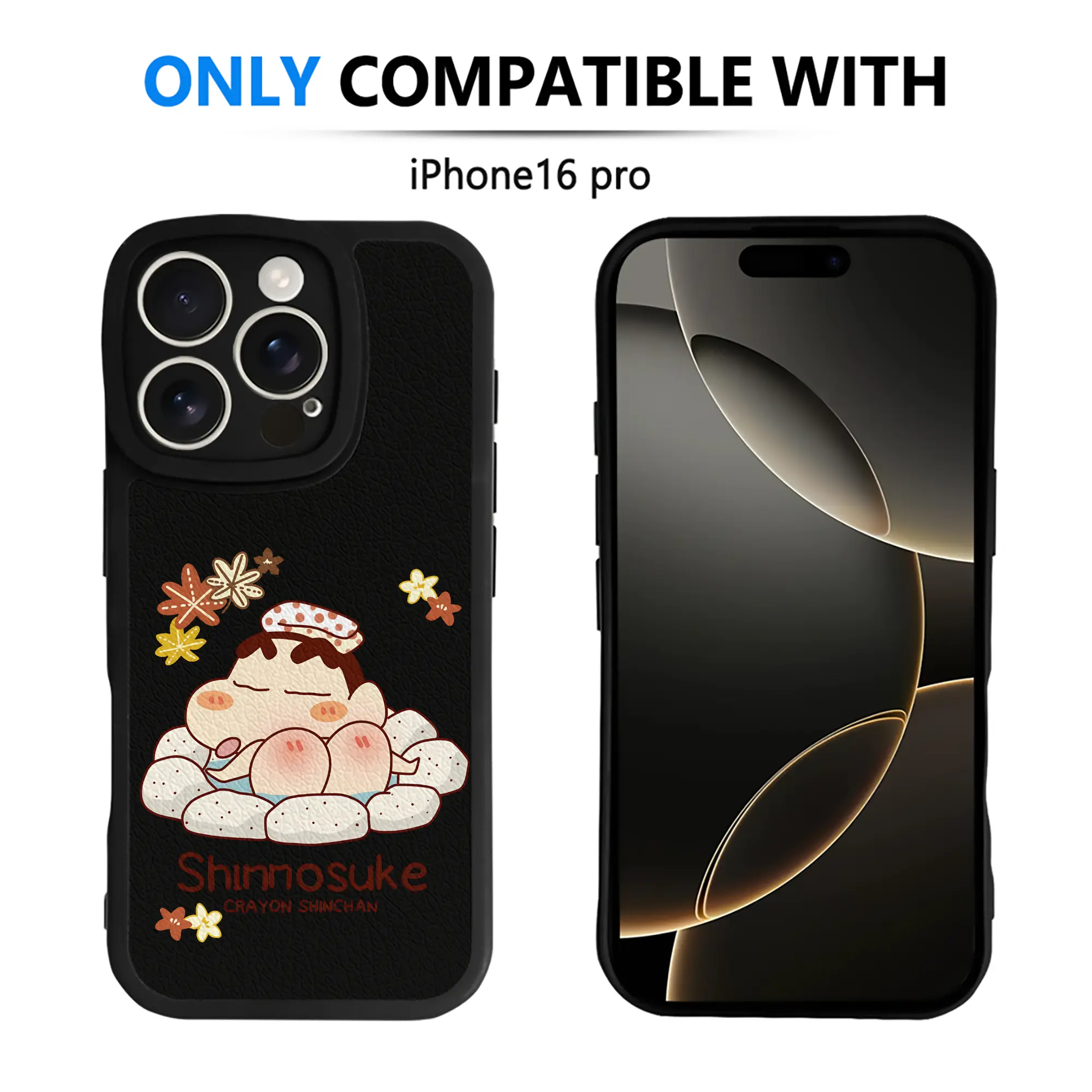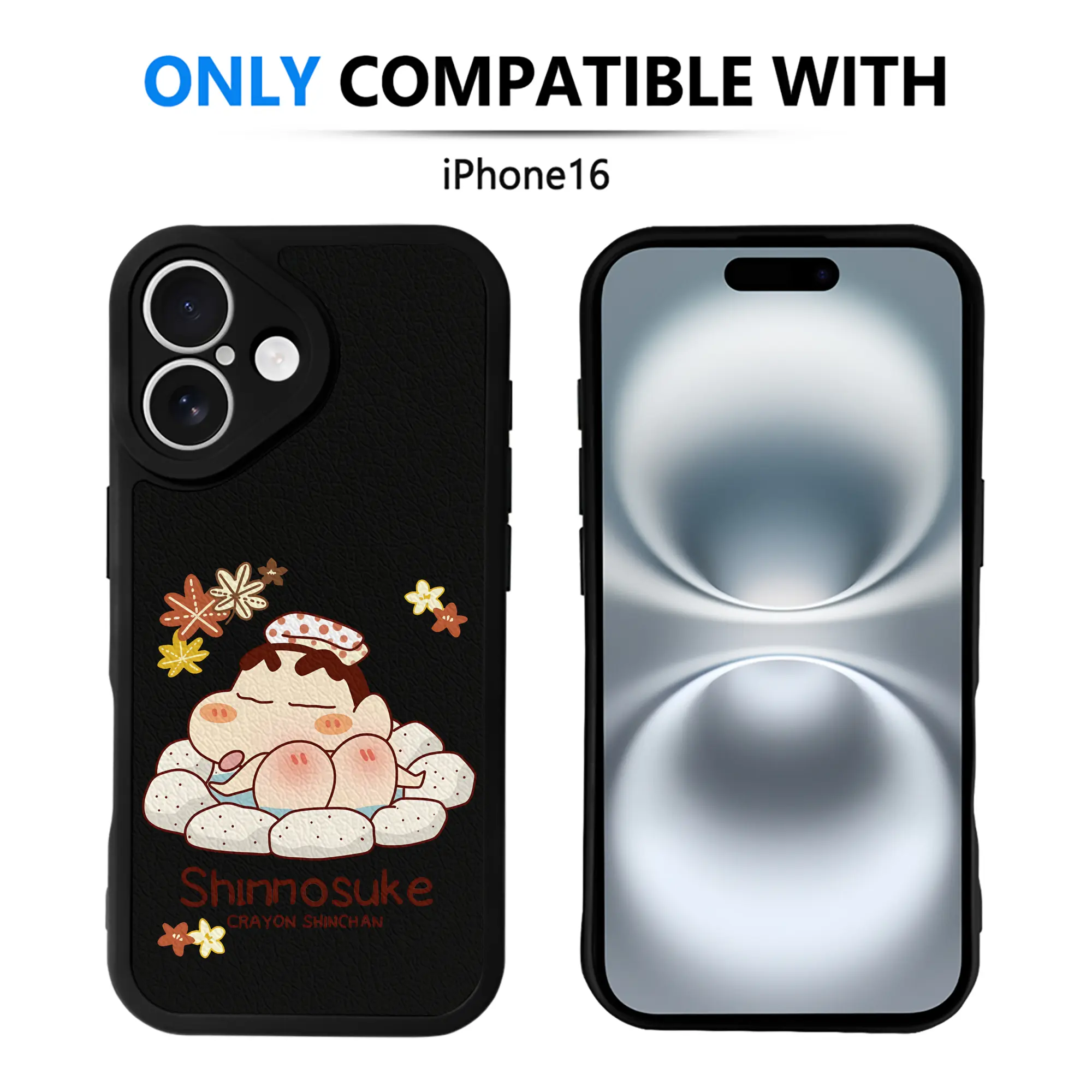 クレヨンしんちゃん グッズ 野原 しんのすけ - IPhone 16シリーズ対応 ・ シリコンスマホケース ・ レザー調 ・ 高精度フィット ・ 耐衝撃 ・ ワイヤレス充電対応 ・ 精密カット