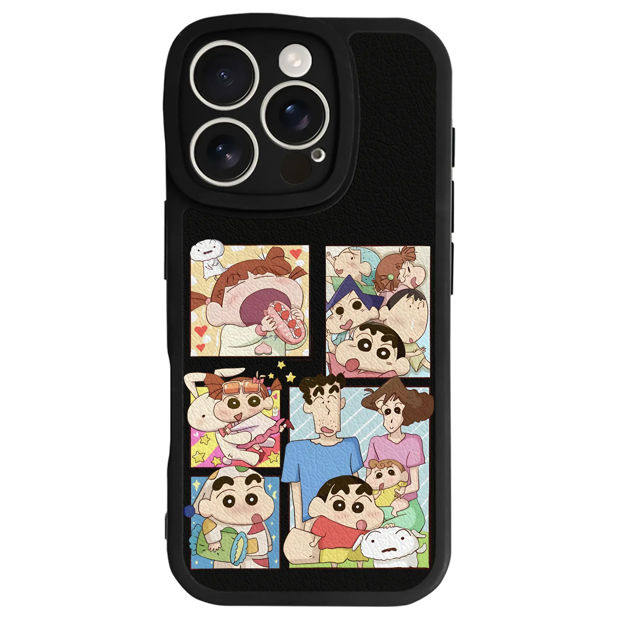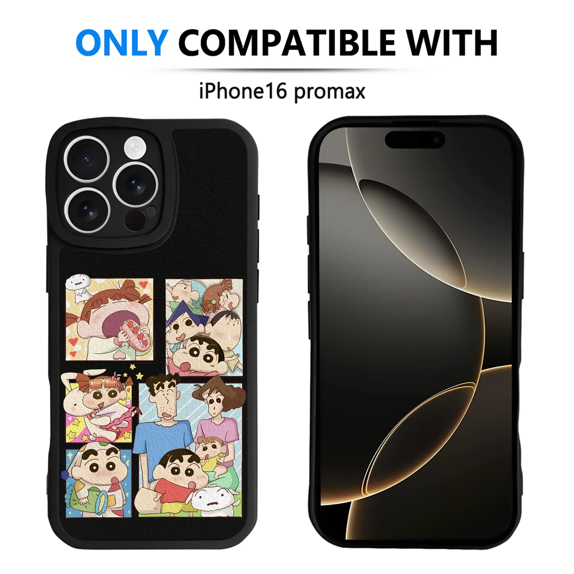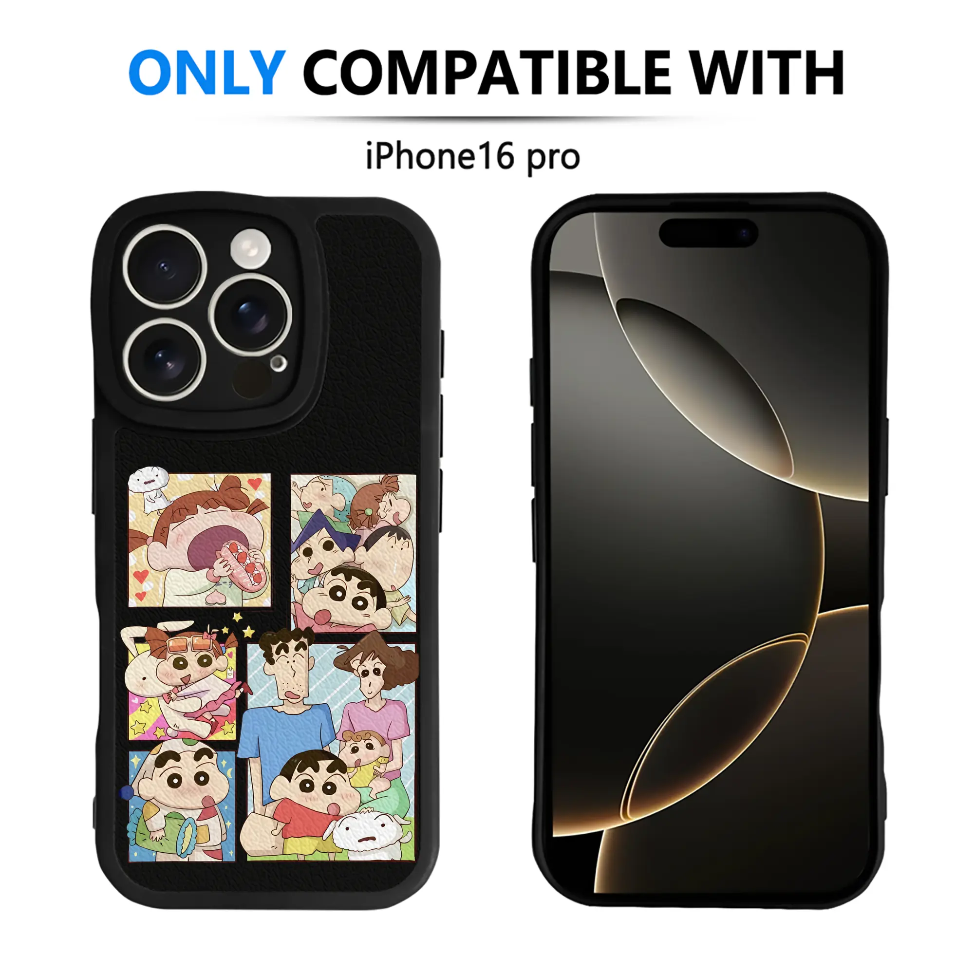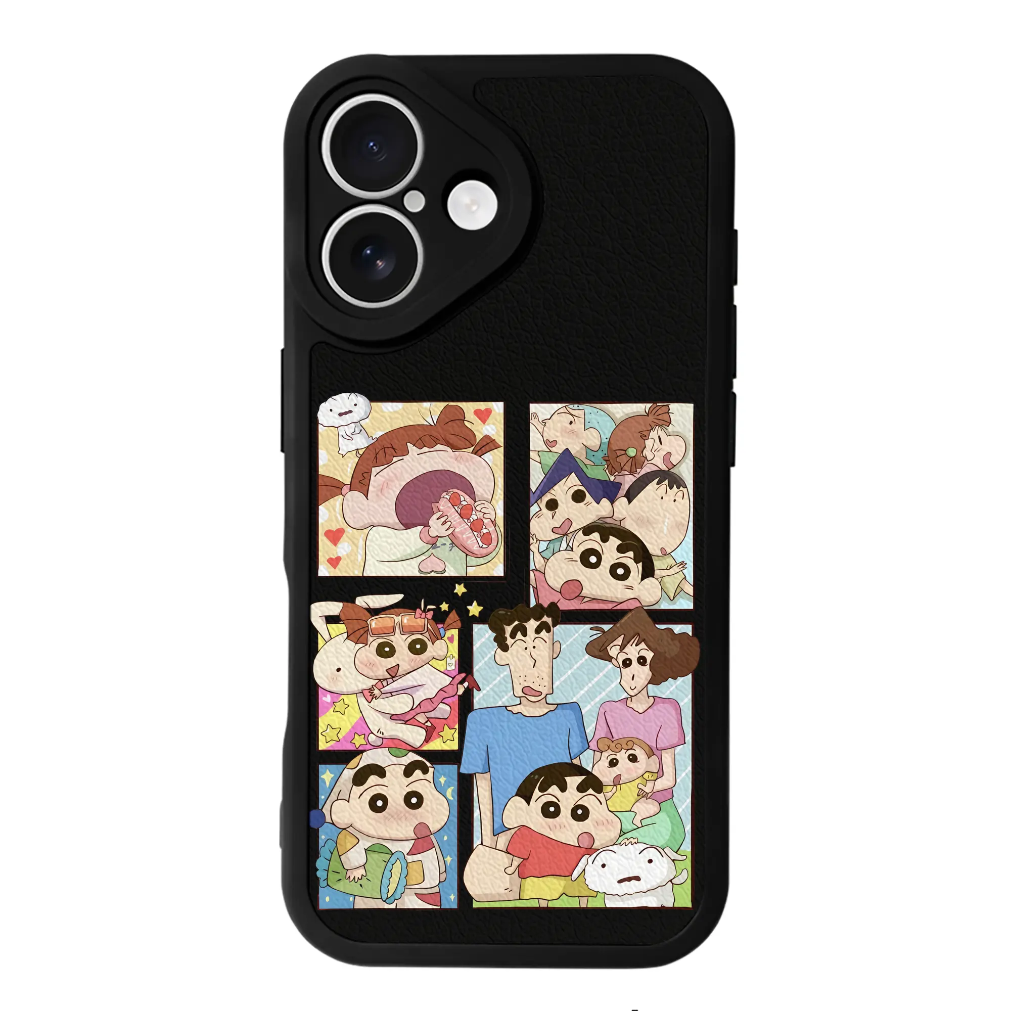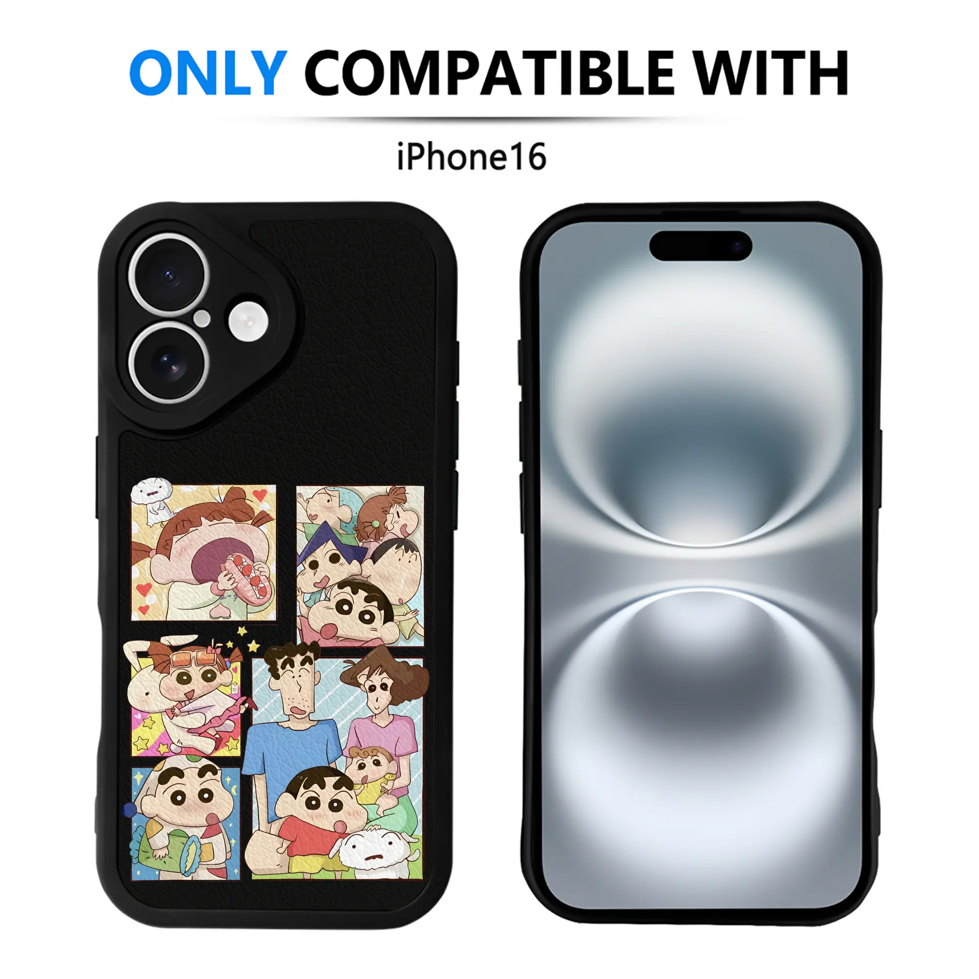 クレヨンしんちゃん グッズ 野原 しんのすけ - IPhone 16シリーズ対応 ・ シリコンスマホケース ・ レザー調 ・ 高精度フィット ・ 耐衝撃 ・ ワイヤレス充電対応 ・ 精密カット
