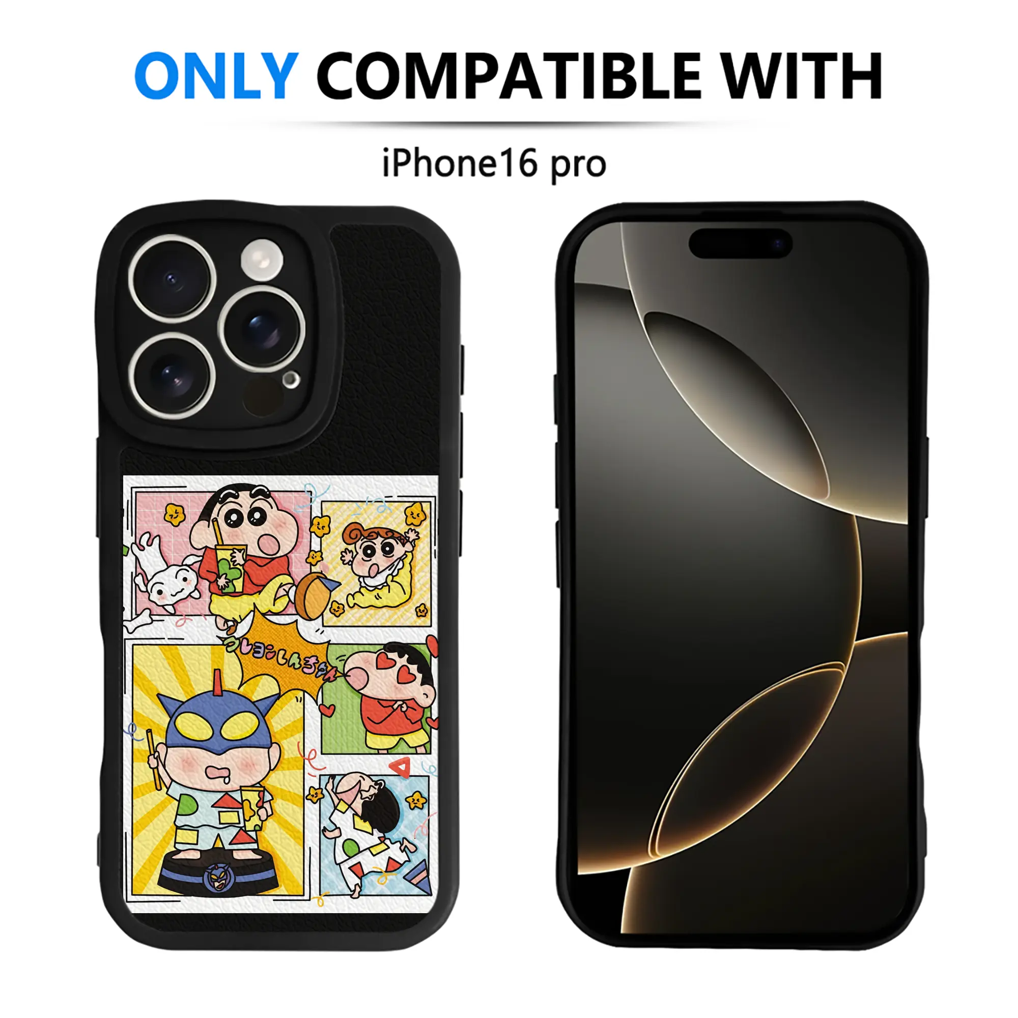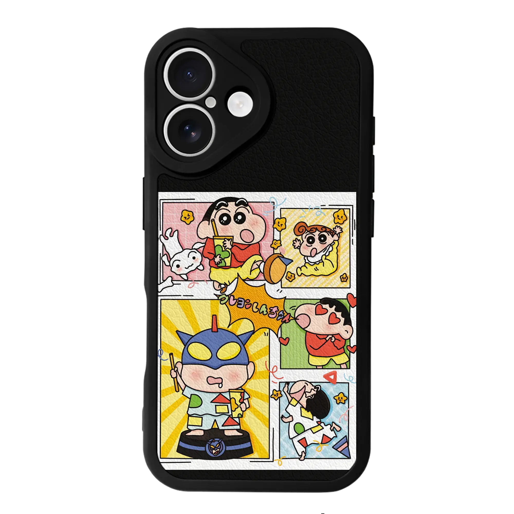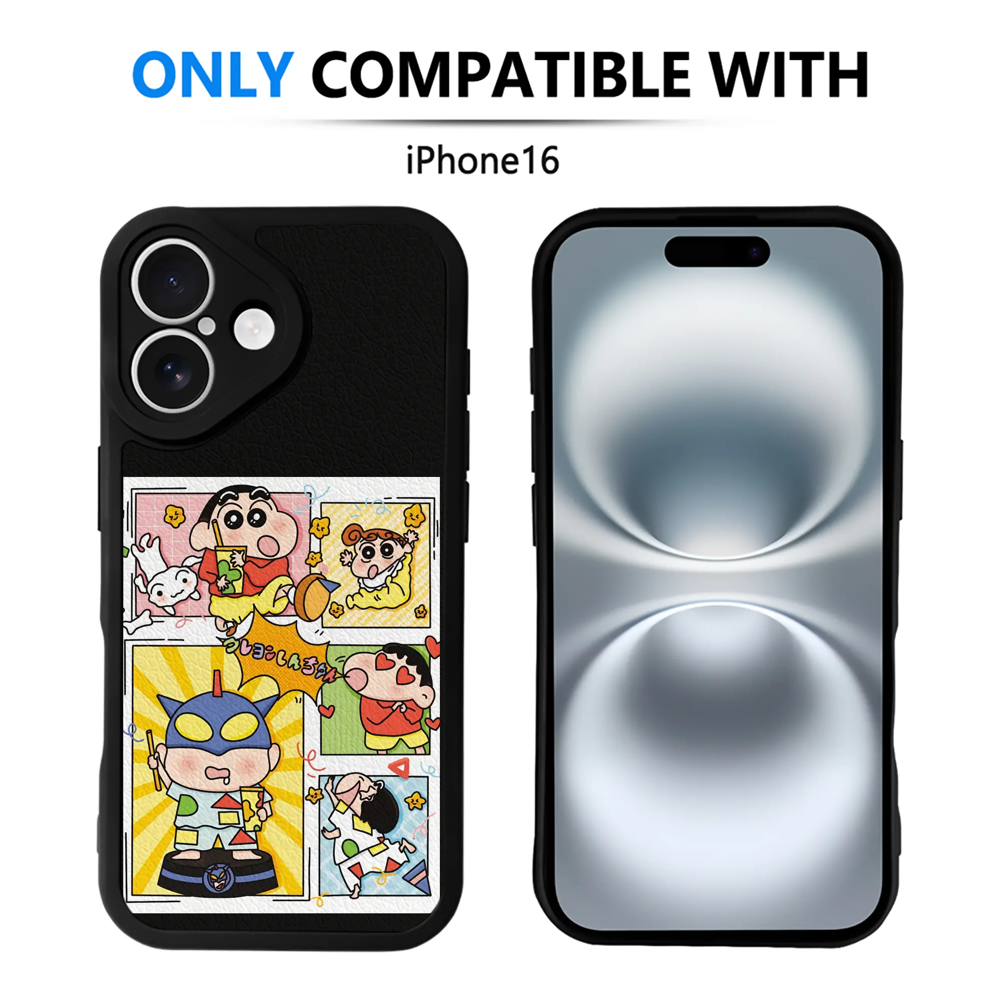 クレヨンしんちゃん グッズ 野原 しんのすけ - IPhone 16シリーズ対応 ・ シリコンスマホケース ・ レザー調 ・ 高精度フィット ・ 耐衝撃 ・ ワイヤレス充電対応 ・ 精密カット
