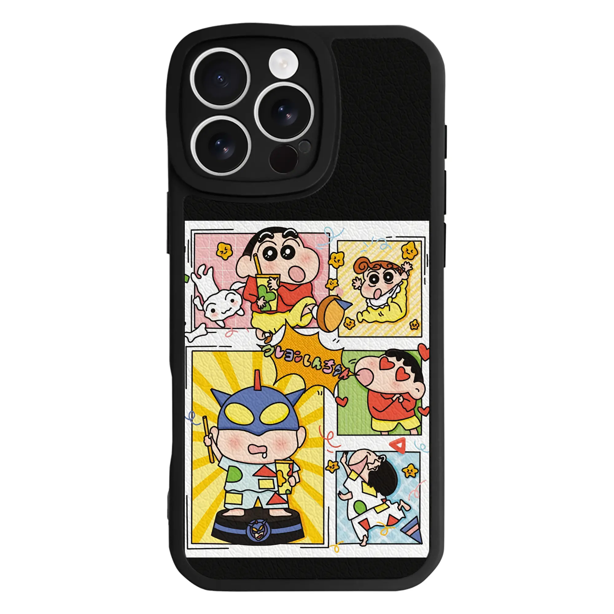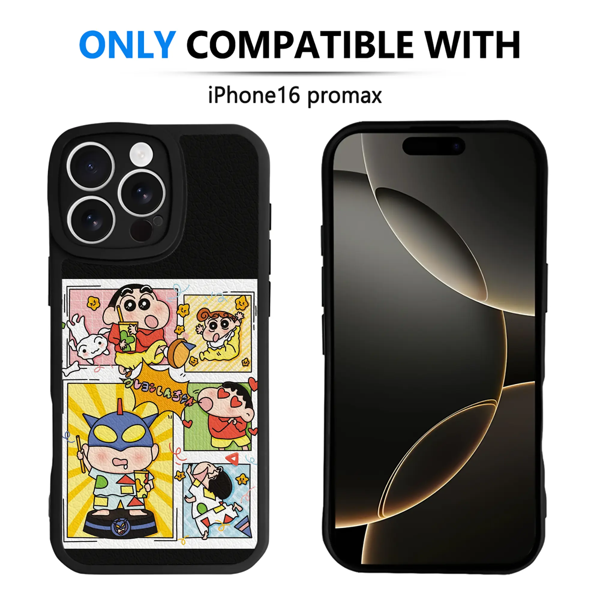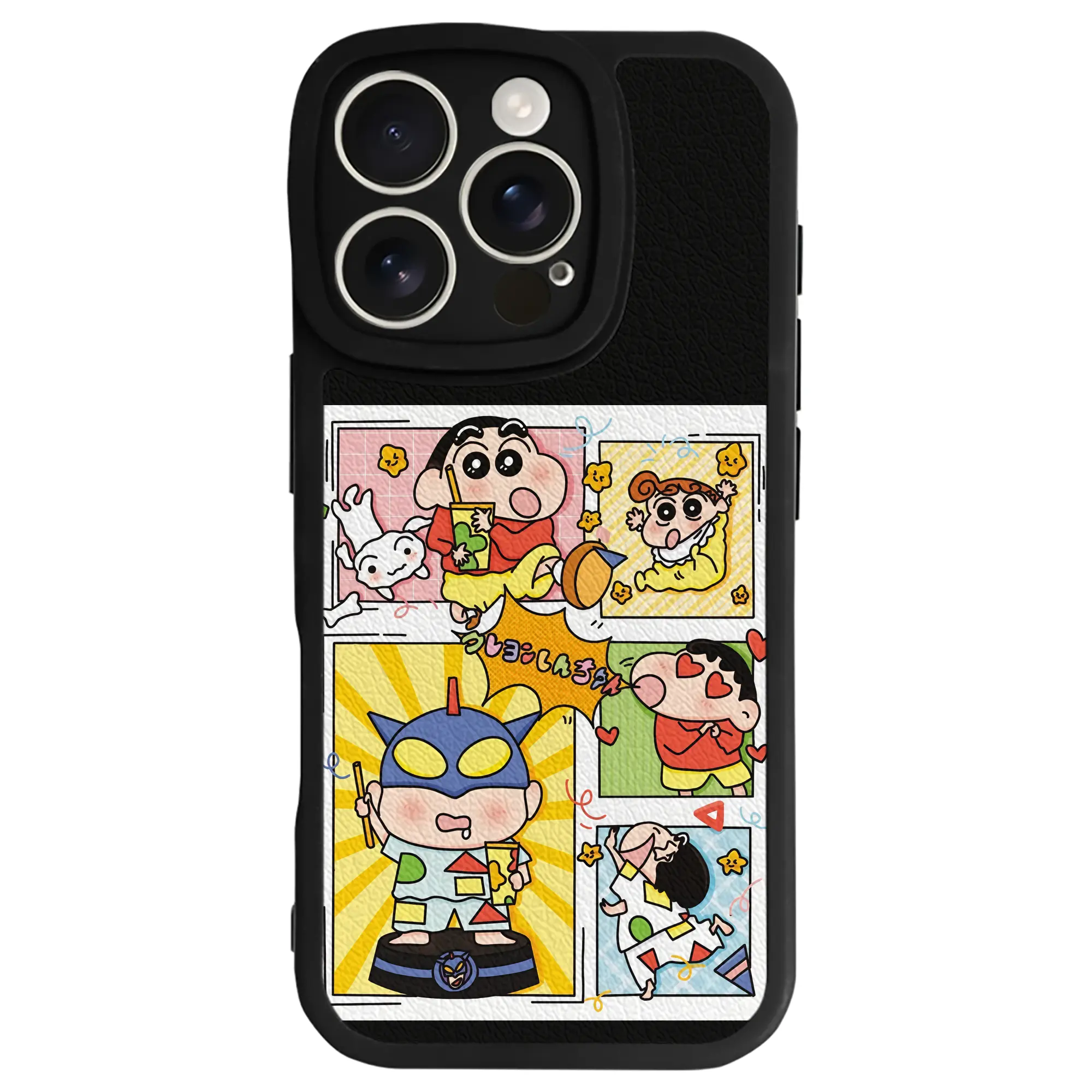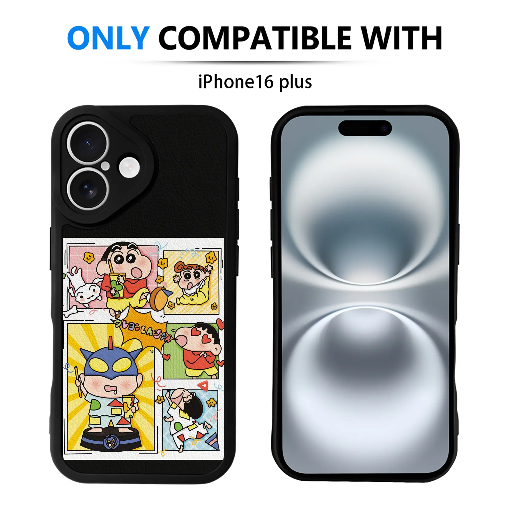 クレヨンしんちゃん グッズ 野原 しんのすけ - IPhone 16シリーズ対応 ・ シリコンスマホケース ・ レザー調 ・ 高精度フィット ・ 耐衝撃 ・ ワイヤレス充電対応 ・ 精密カット
