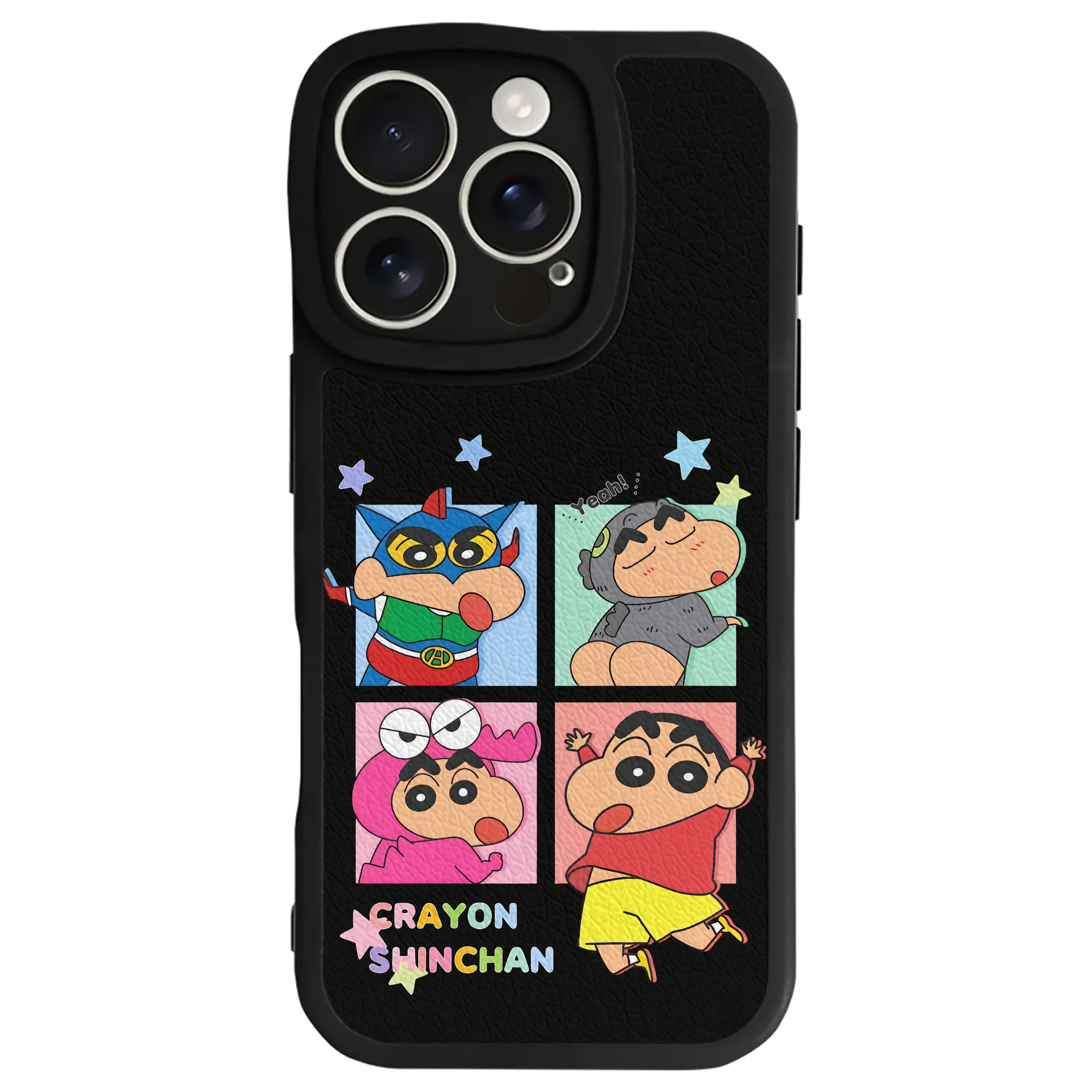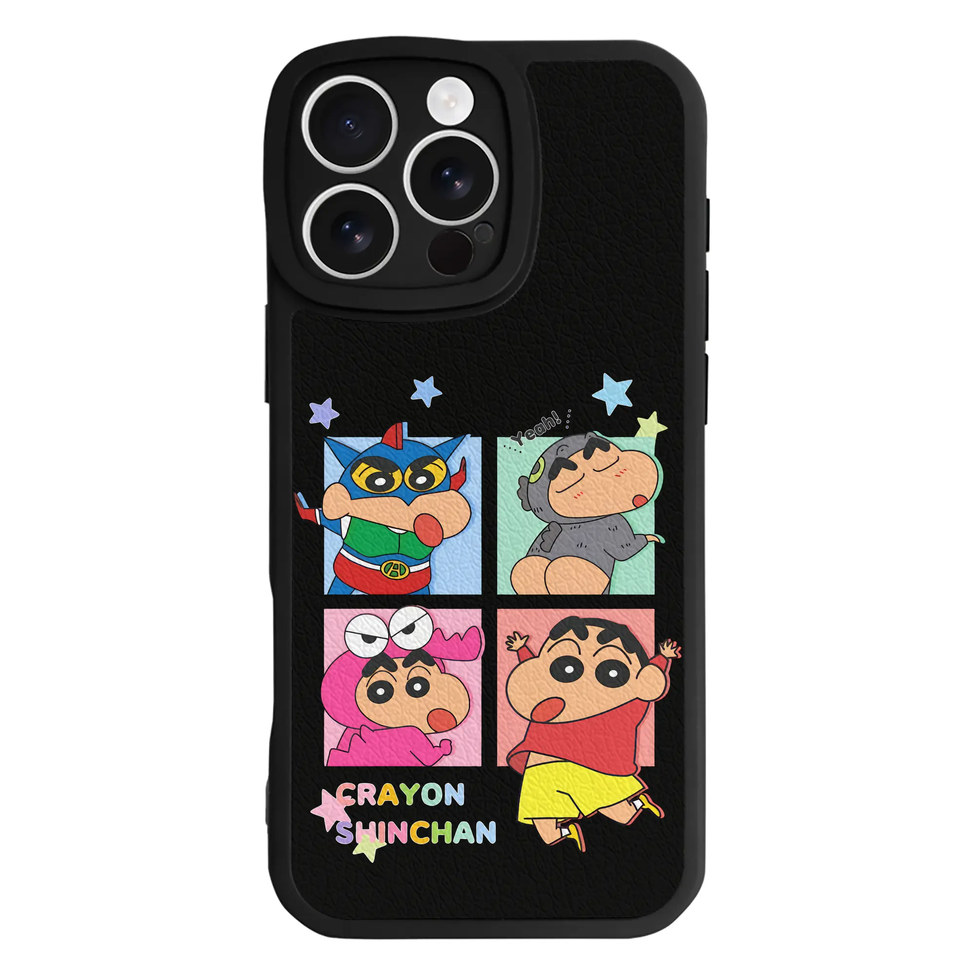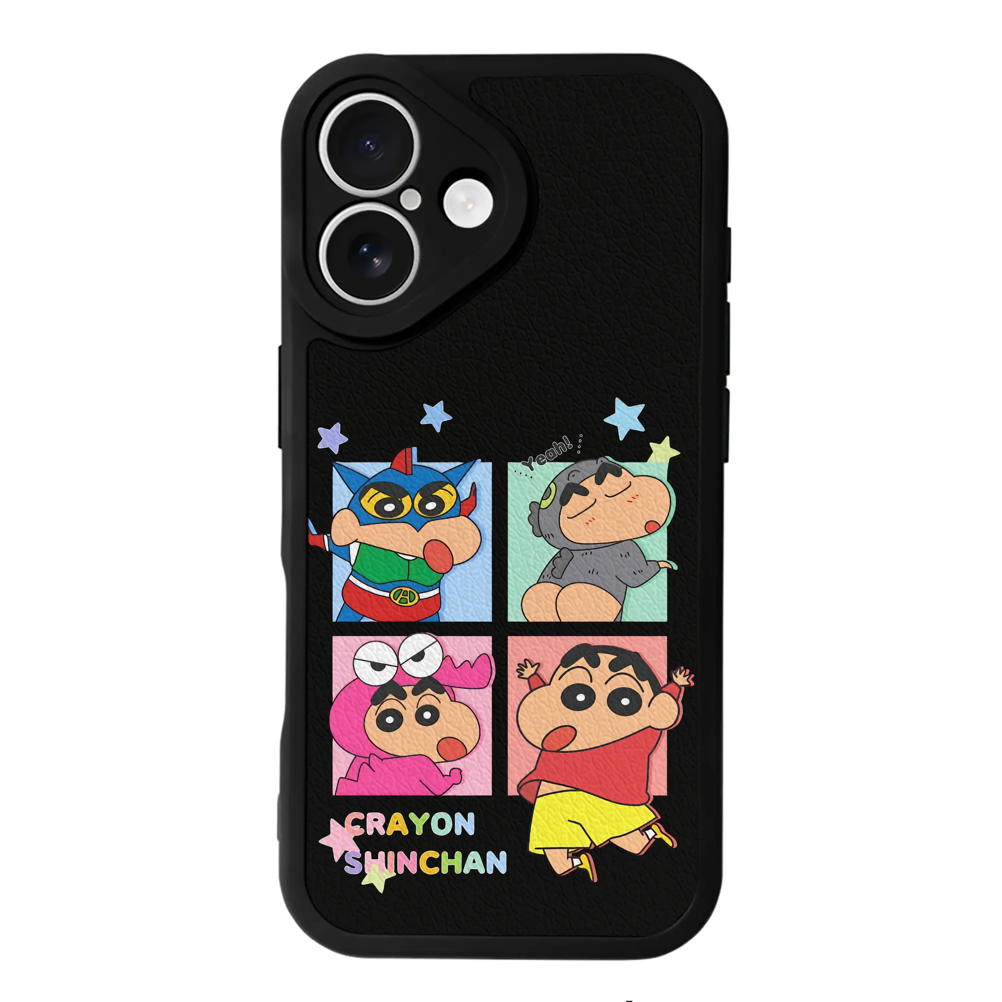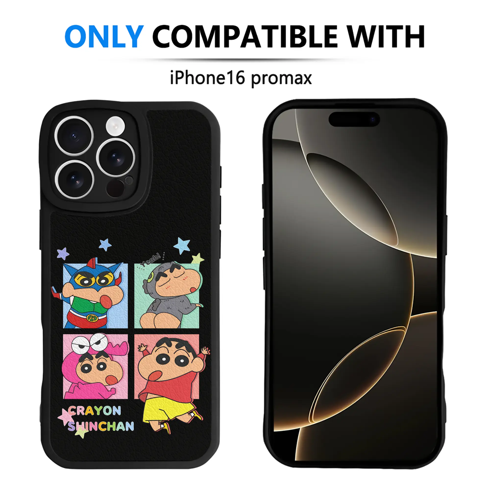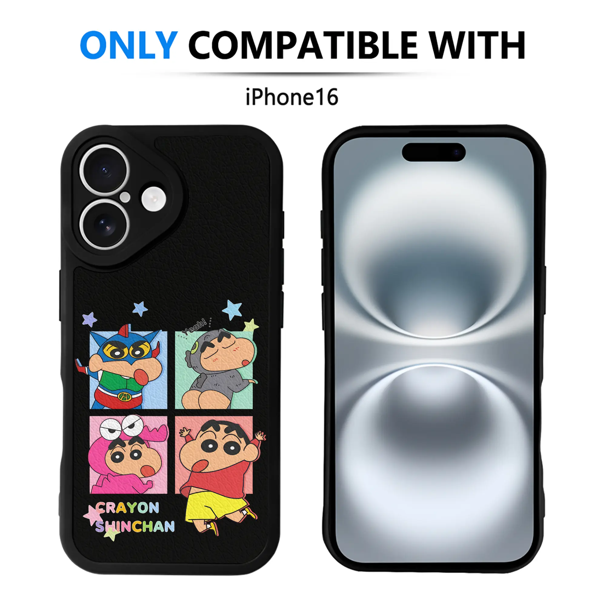 クレヨンしんちゃん グッズ 野原 しんのすけ - IPhone 16シリーズ対応 ・ シリコンスマホケース ・ レザー調 ・ 高精度フィット ・ 耐衝撃 ・ ワイヤレス充電対応 ・ 精密カット
