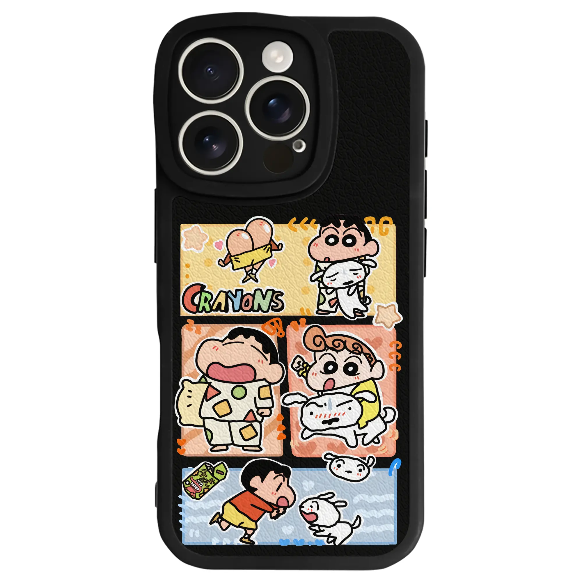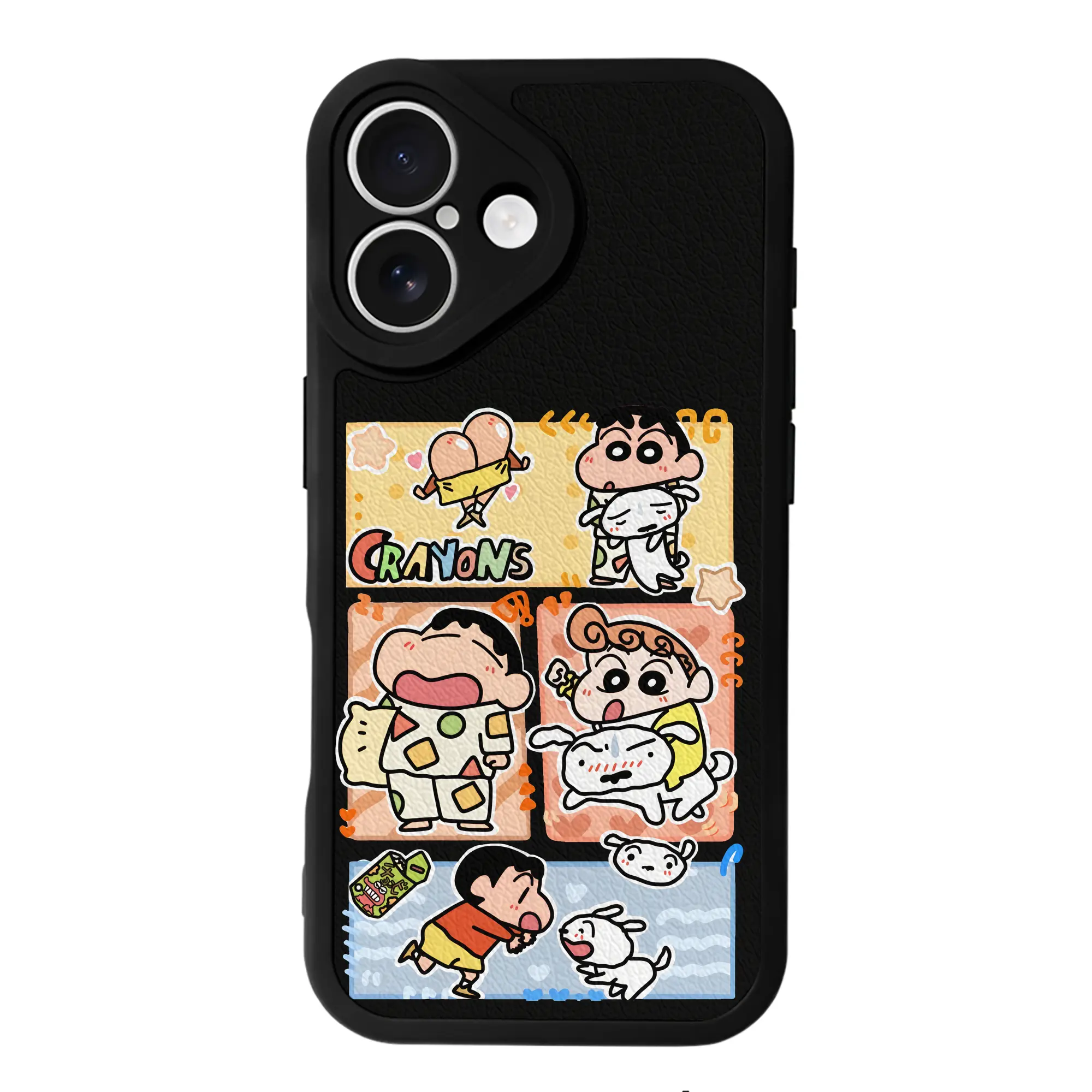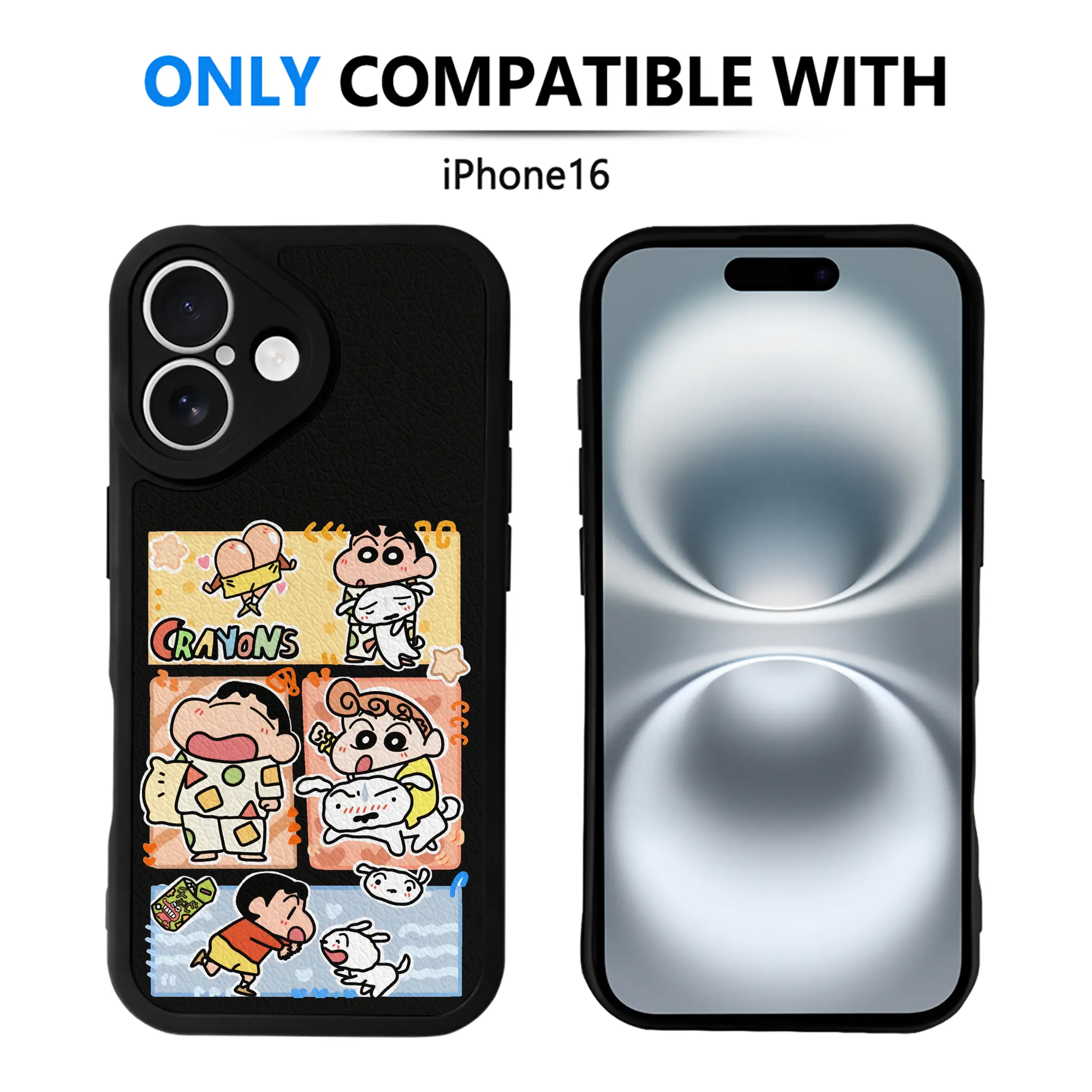クレヨンしんちゃん グッズ 野原 ひまわり - IPhone 16シリーズ対応 ・ シリコンスマホケース ・ レザー調 ・ 高精度フィット ・ 耐衝撃 ・ ワイヤレス充電対応 ・ 精密カット