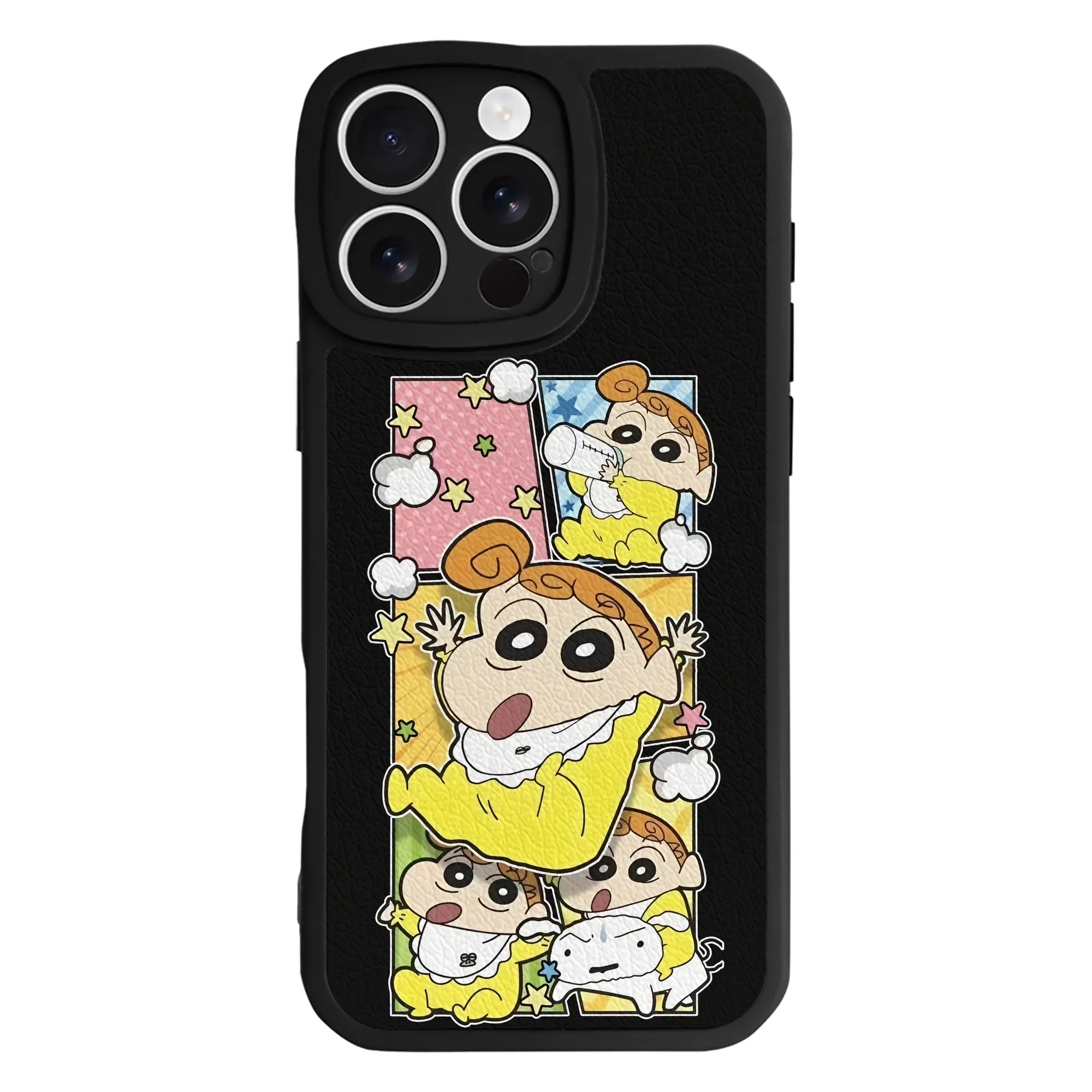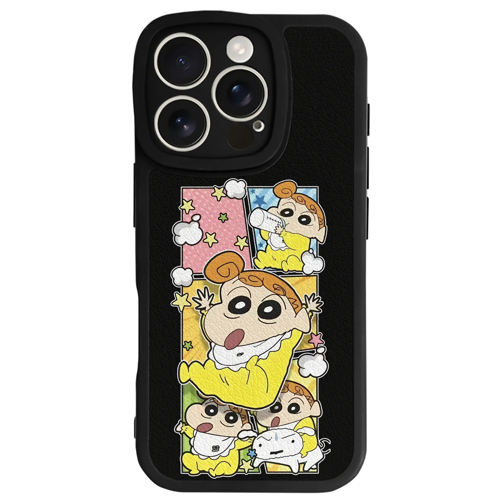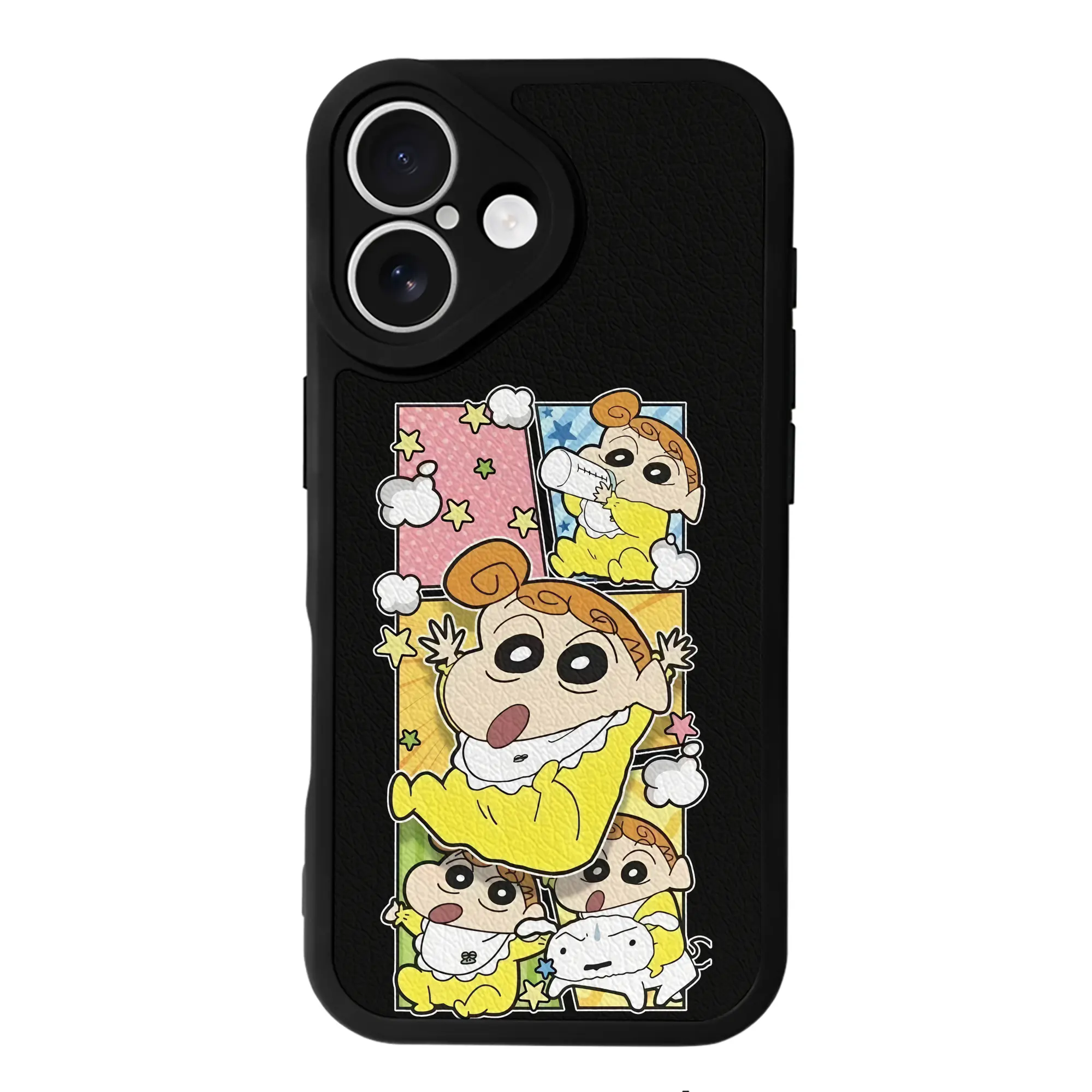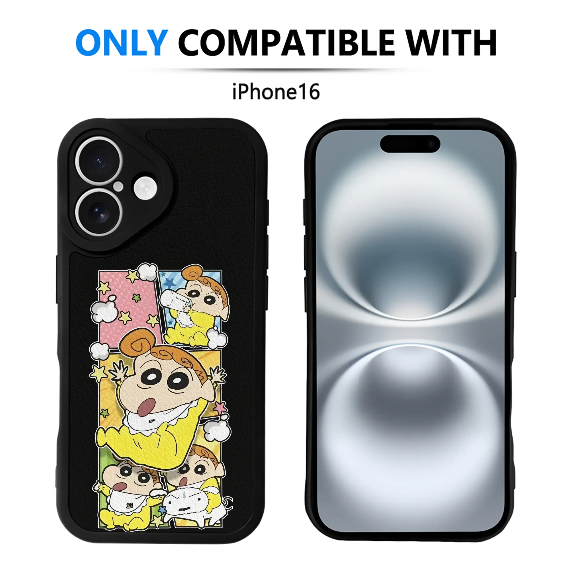 クレヨンしんちゃん グッズ 野原 ひまわり - IPhone 16シリーズ対応 ・ シリコンスマホケース ・ レザー調 ・ 高精度フィット ・ 耐衝撃 ・ ワイヤレス充電対応 ・ 精密カット