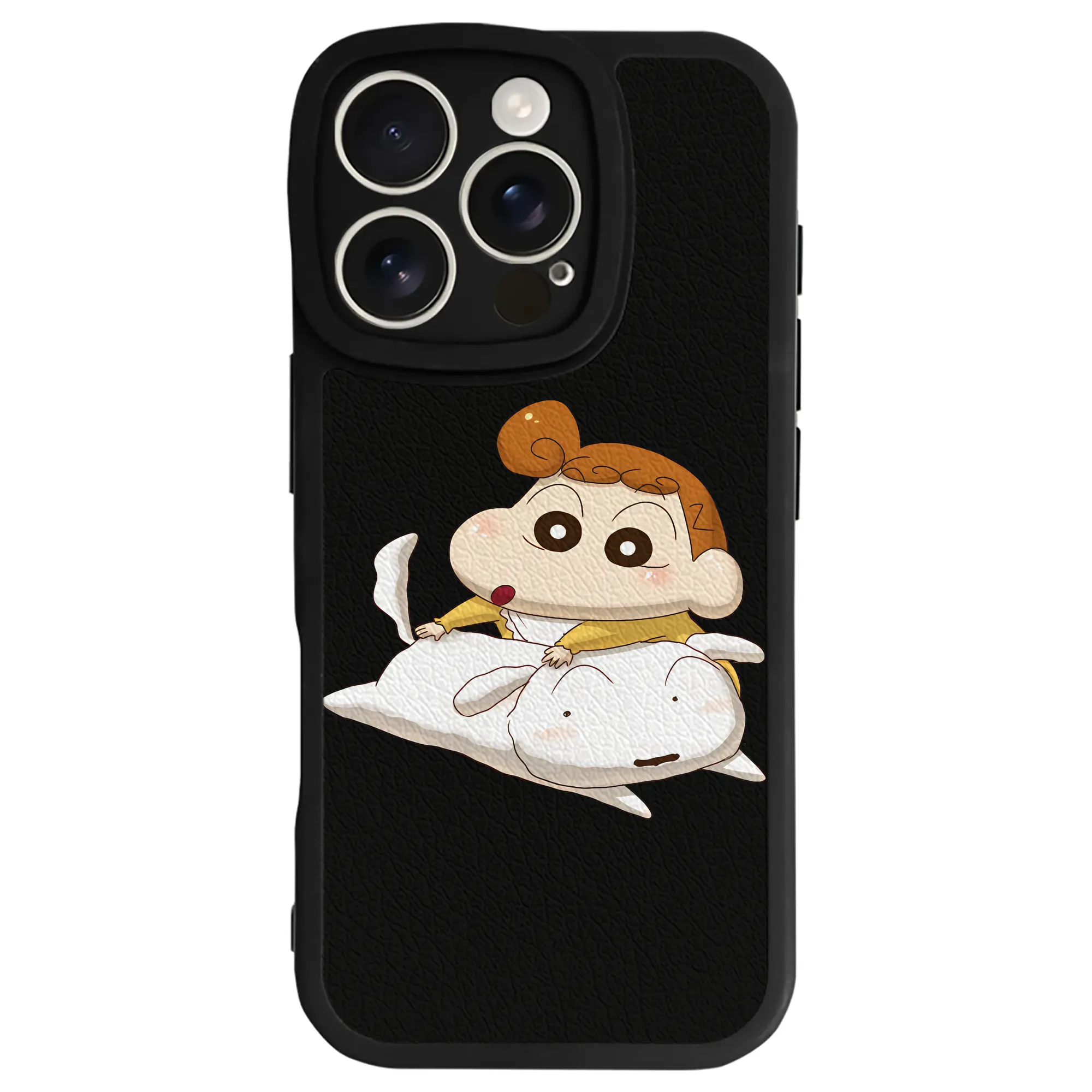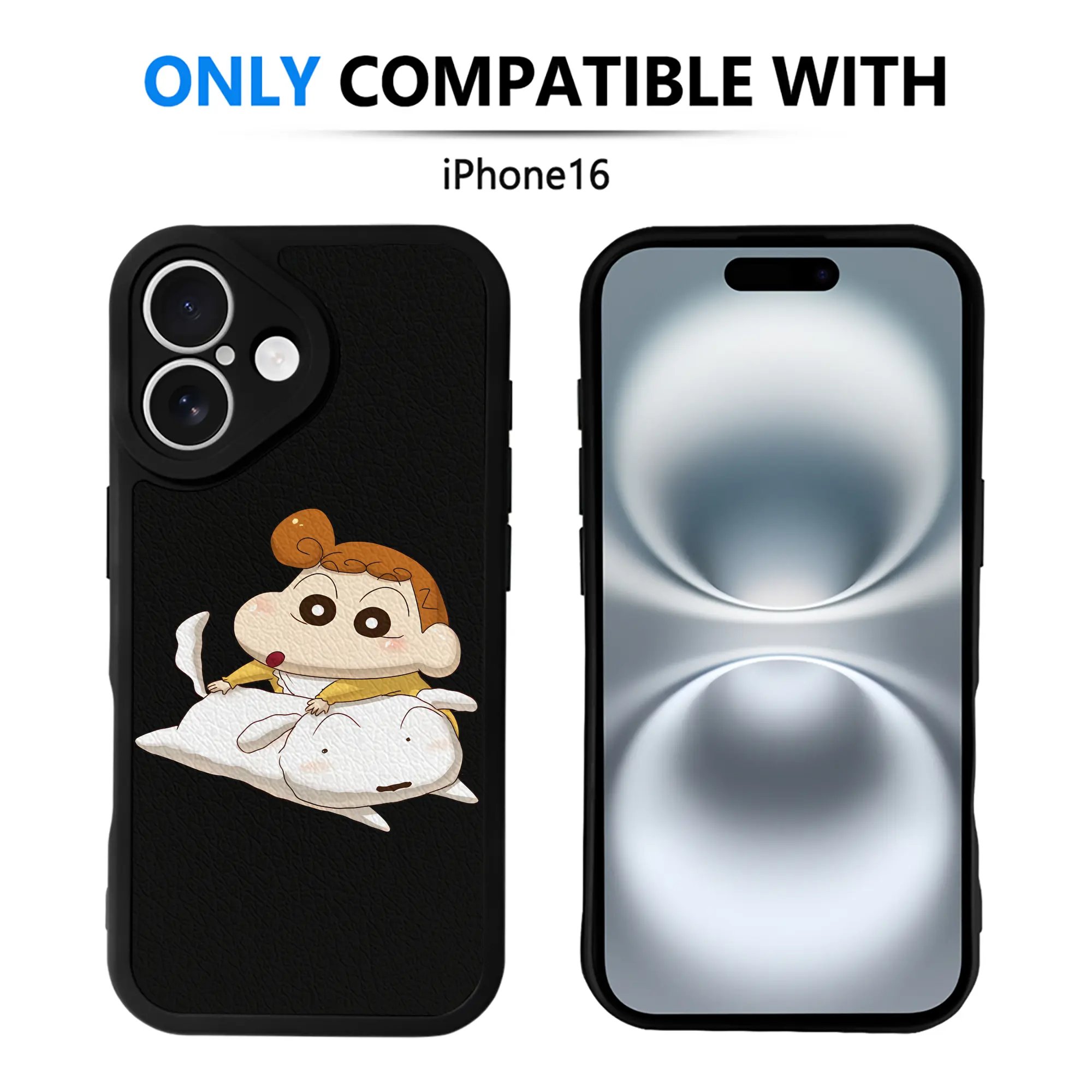 クレヨンしんちゃん グッズ シロ - IPhone 16シリーズ対応 ・ シリコンスマホケース ・ レザー調 ・ 高精度フィット ・ 耐衝撃 ・ ワイヤレス充電対応 ・ 精密カット