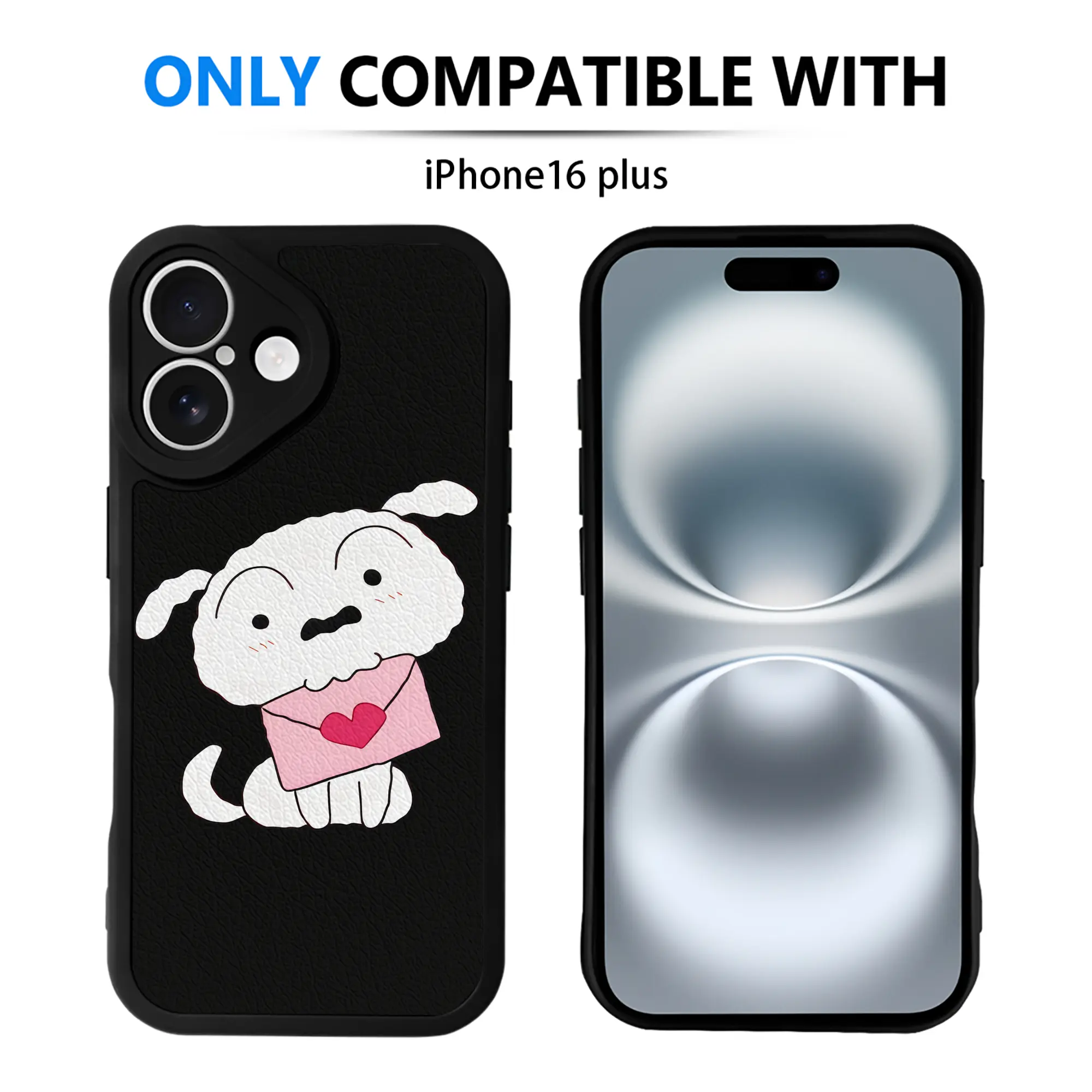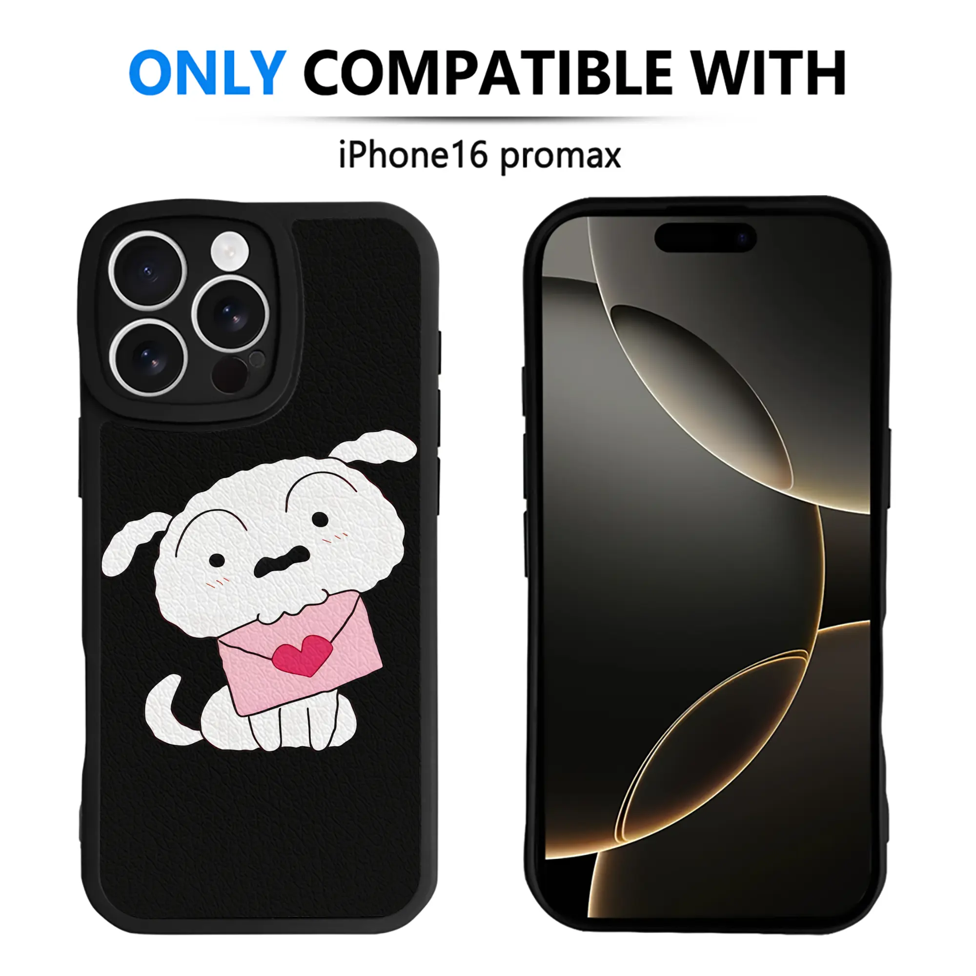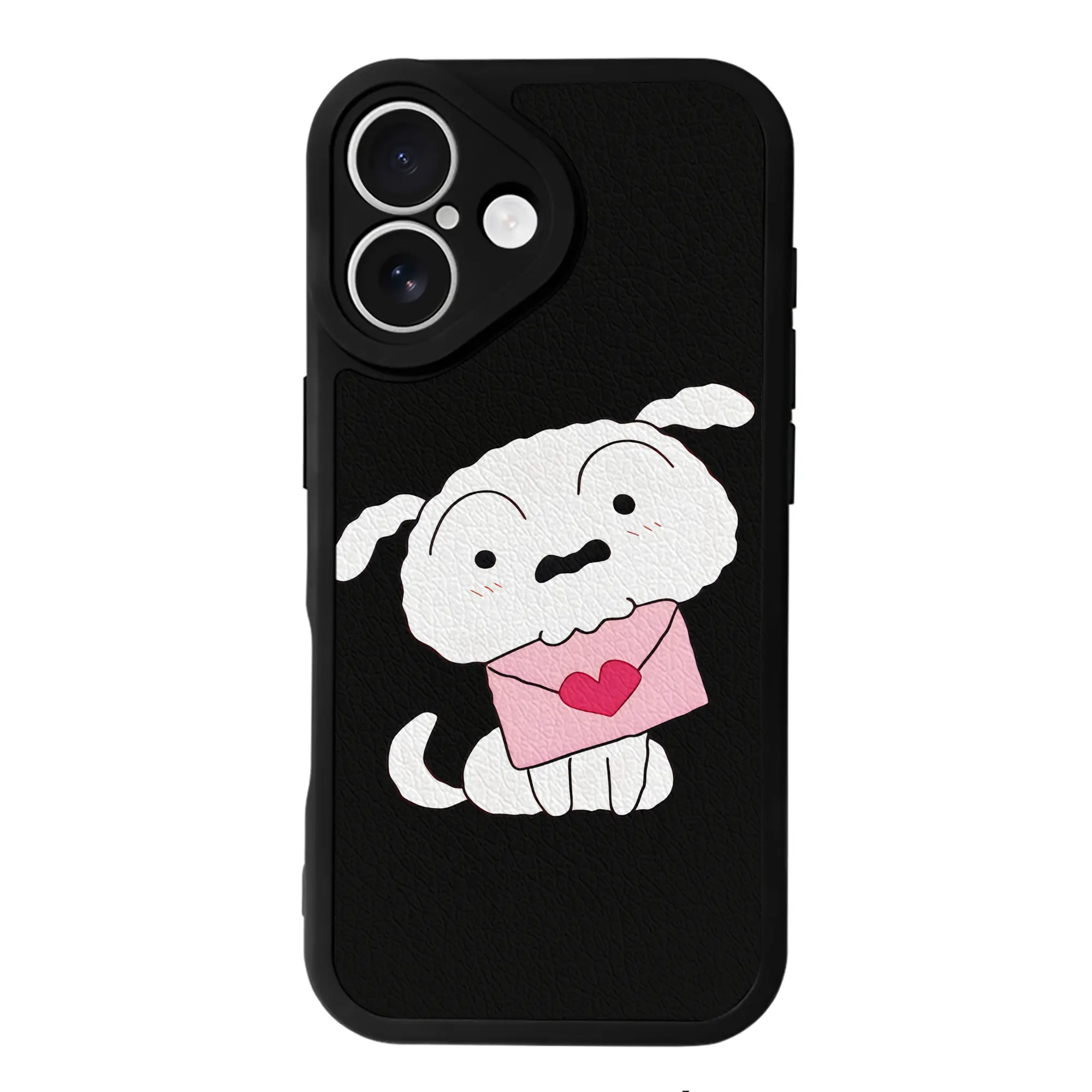 クレヨンしんちゃん グッズ シロ - IPhone 16シリーズ対応 ・ シリコンスマホケース ・ レザー調 ・ 高精度フィット ・ 耐衝撃 ・ ワイヤレス充電対応 ・ 精密カット