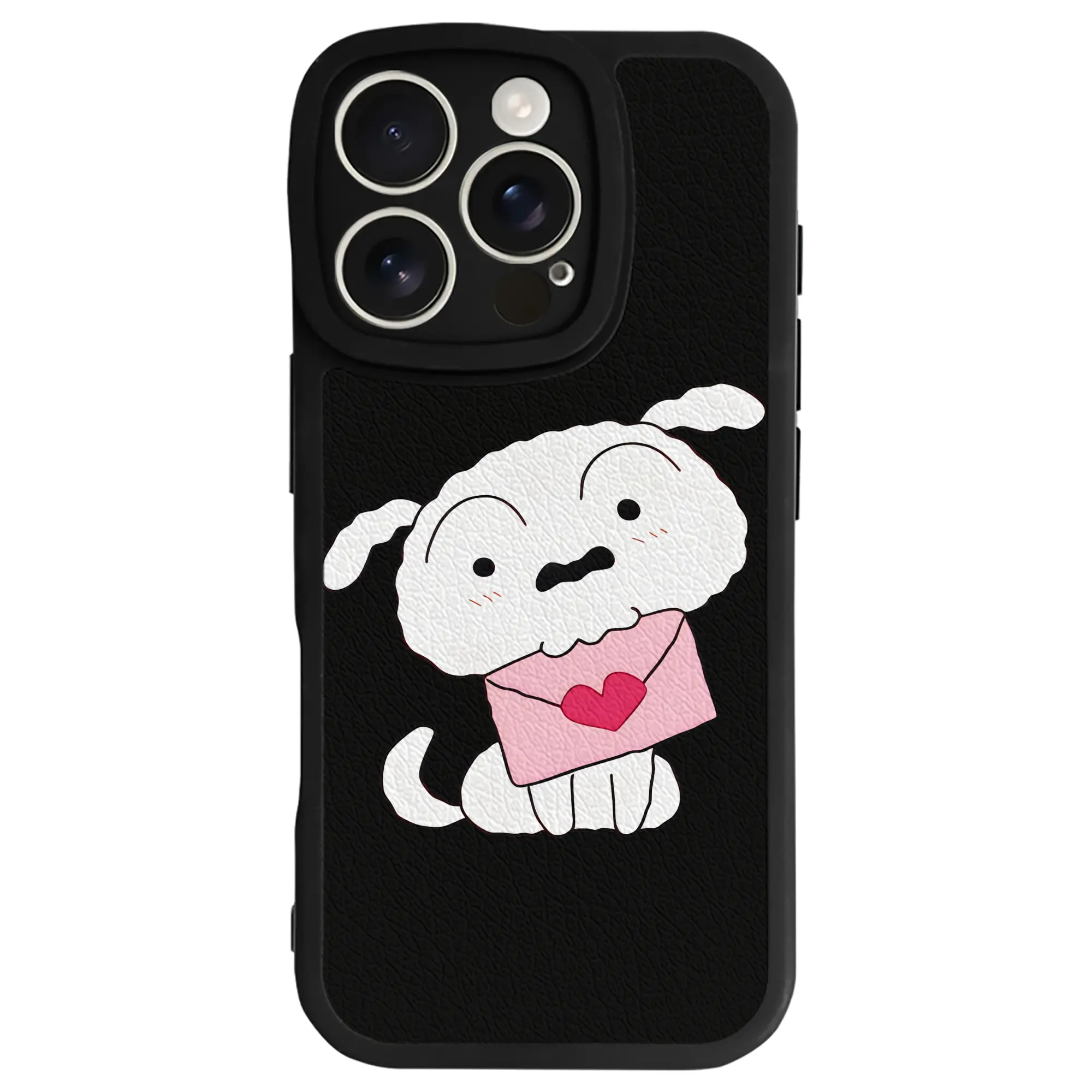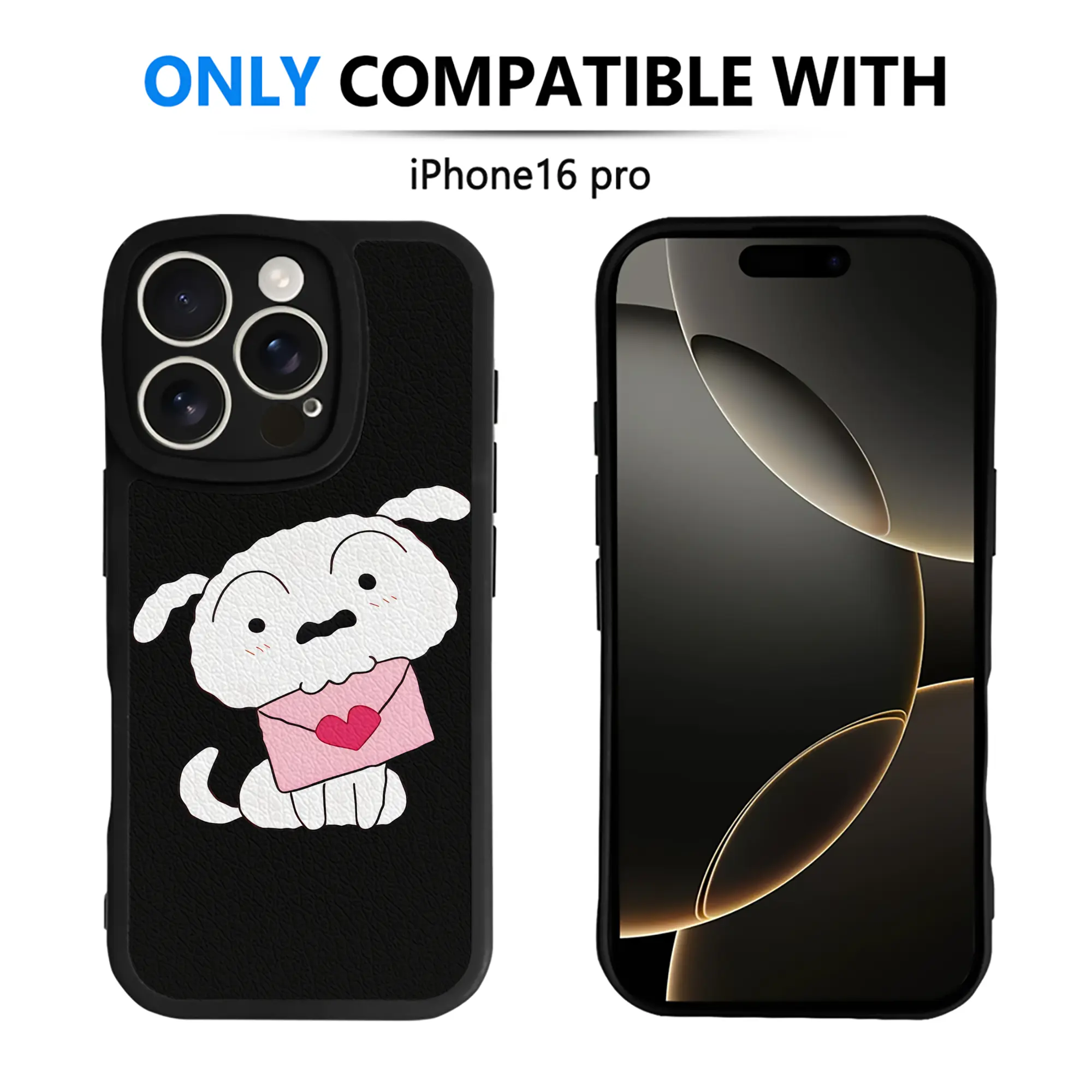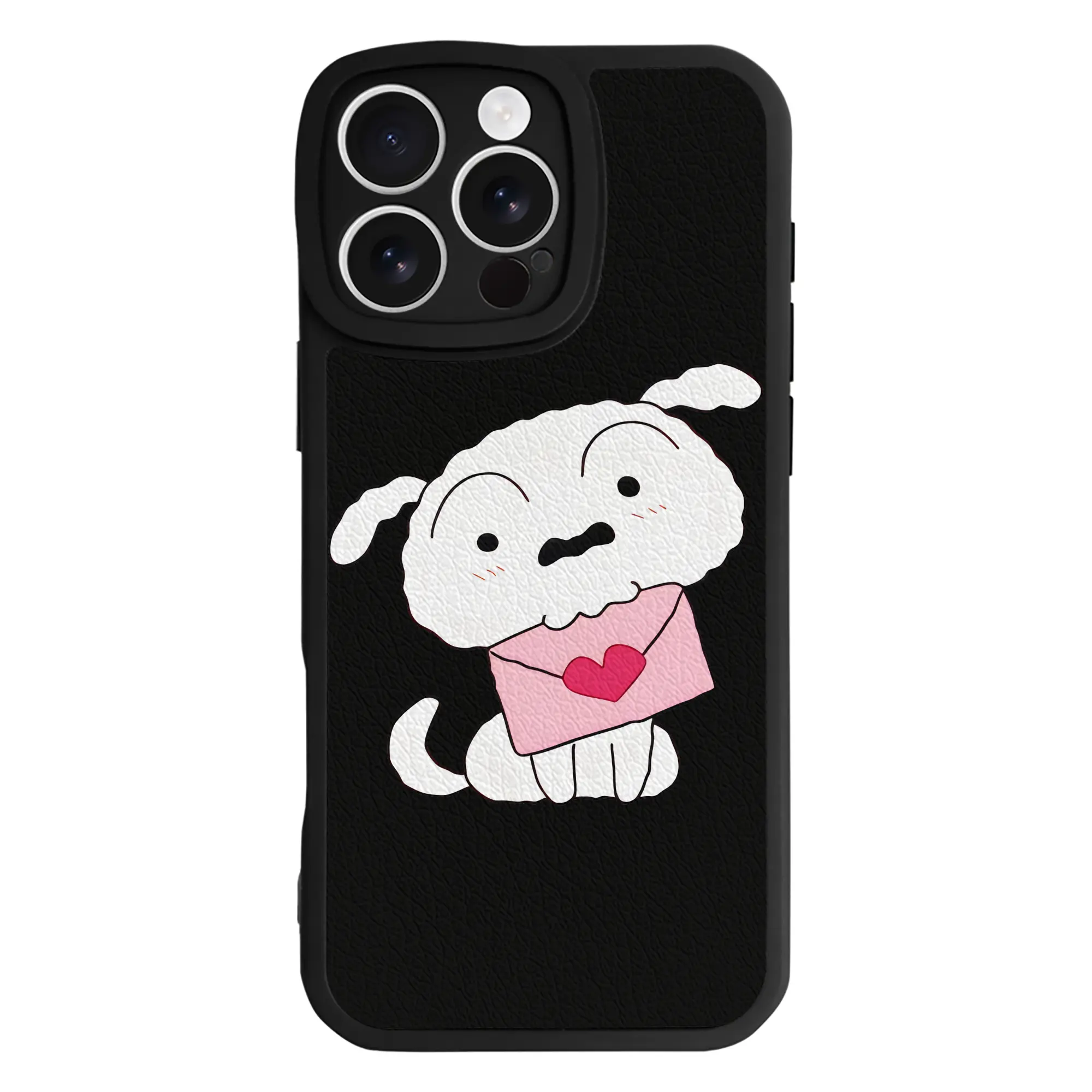 クレヨンしんちゃん グッズ シロ - IPhone 16シリーズ対応 ・ シリコンスマホケース ・ レザー調 ・ 高精度フィット ・ 耐衝撃 ・ ワイヤレス充電対応 ・ 精密カット