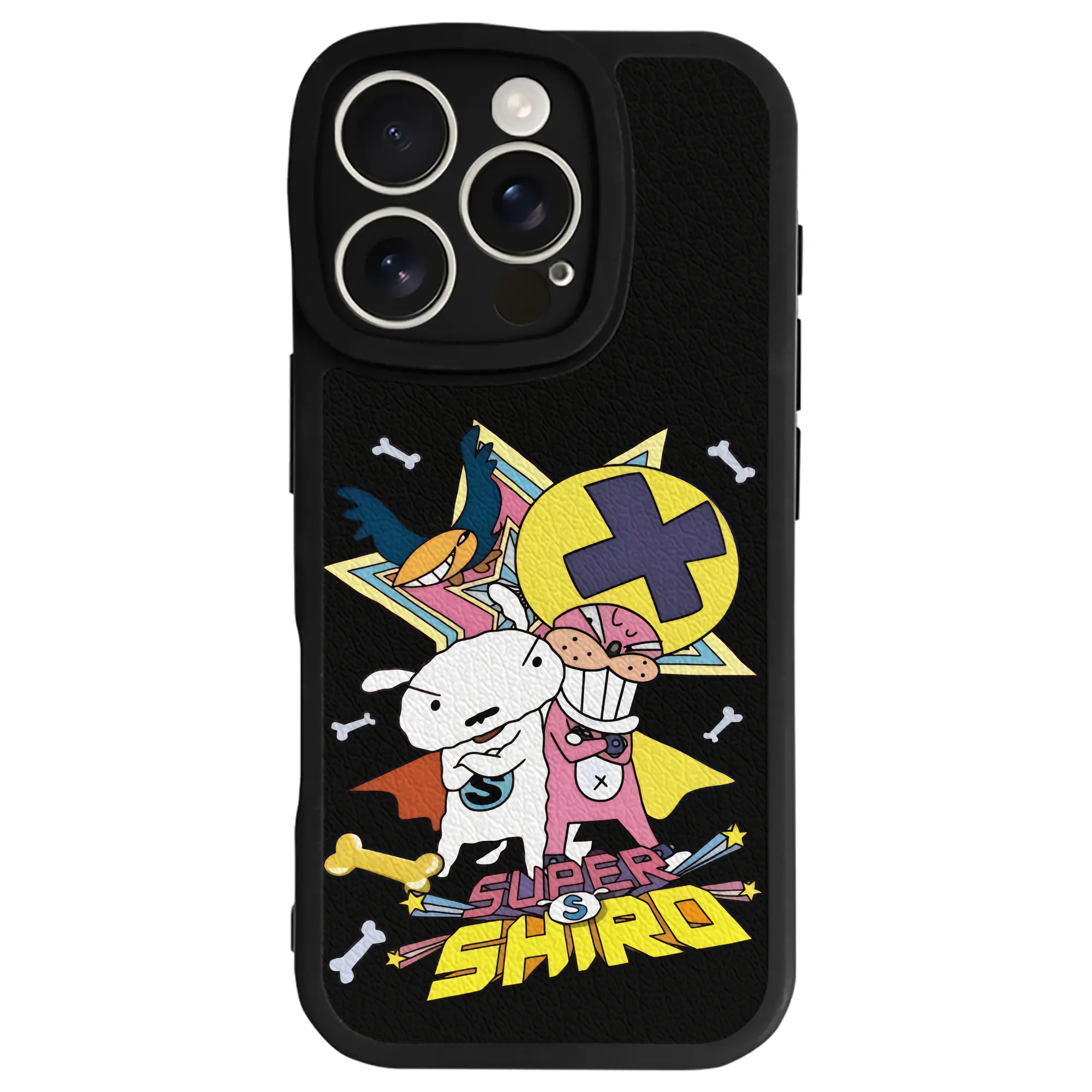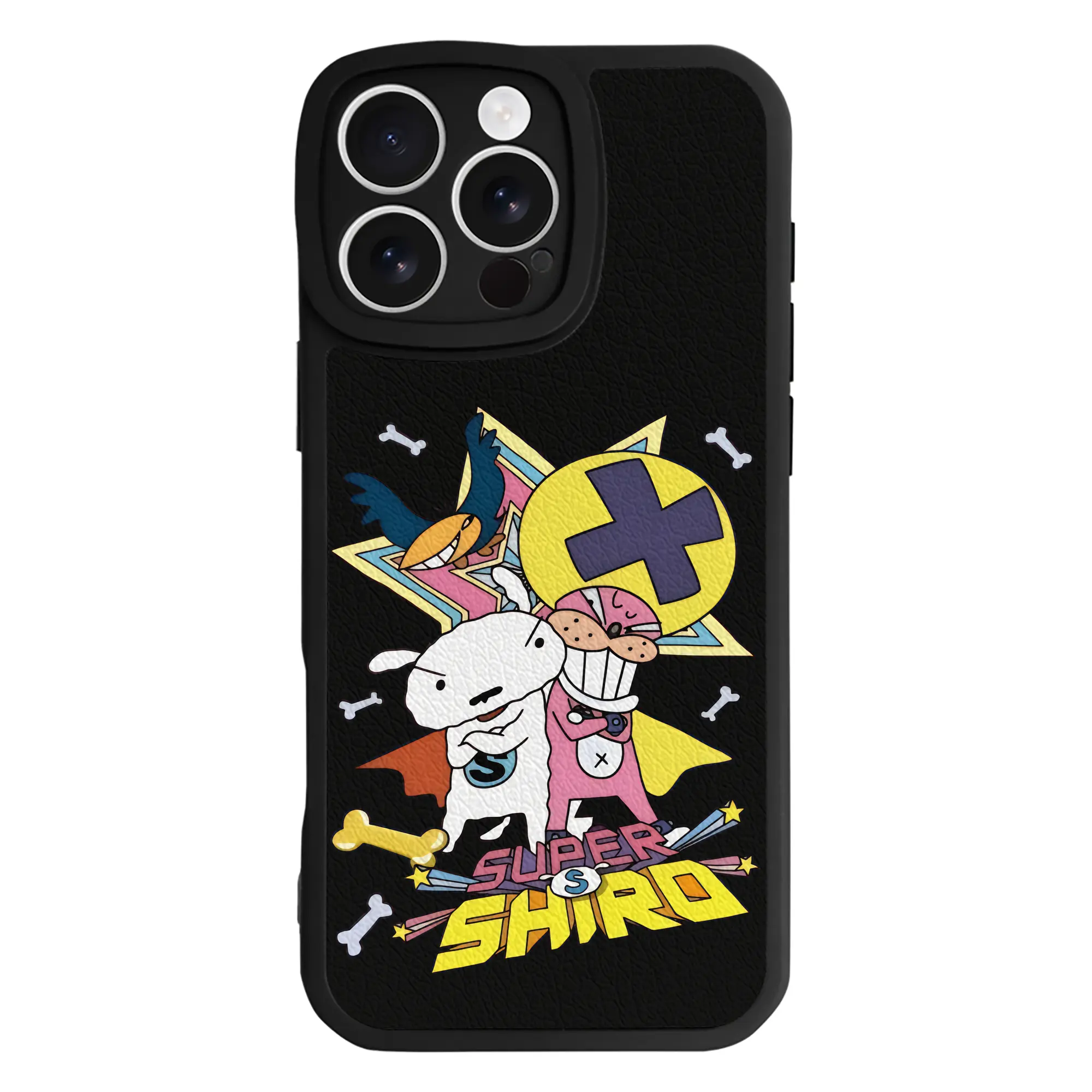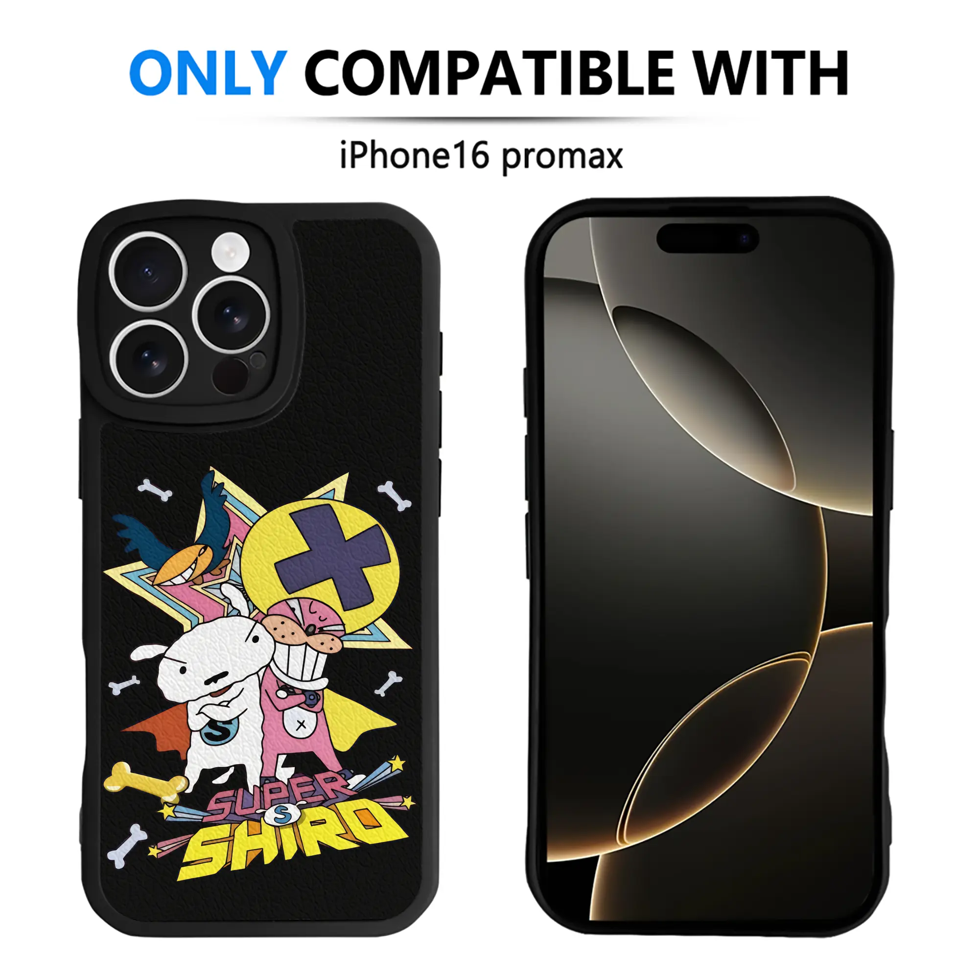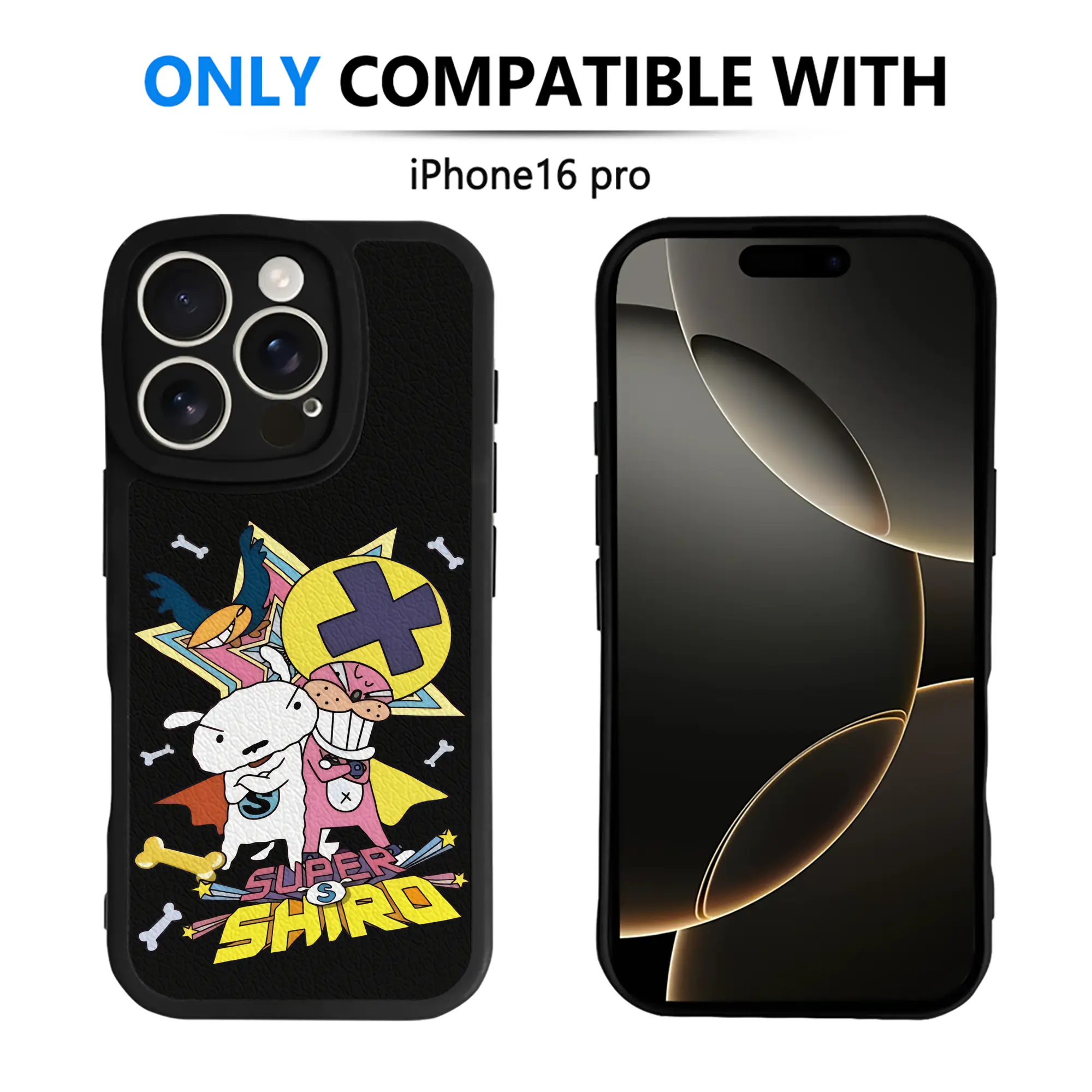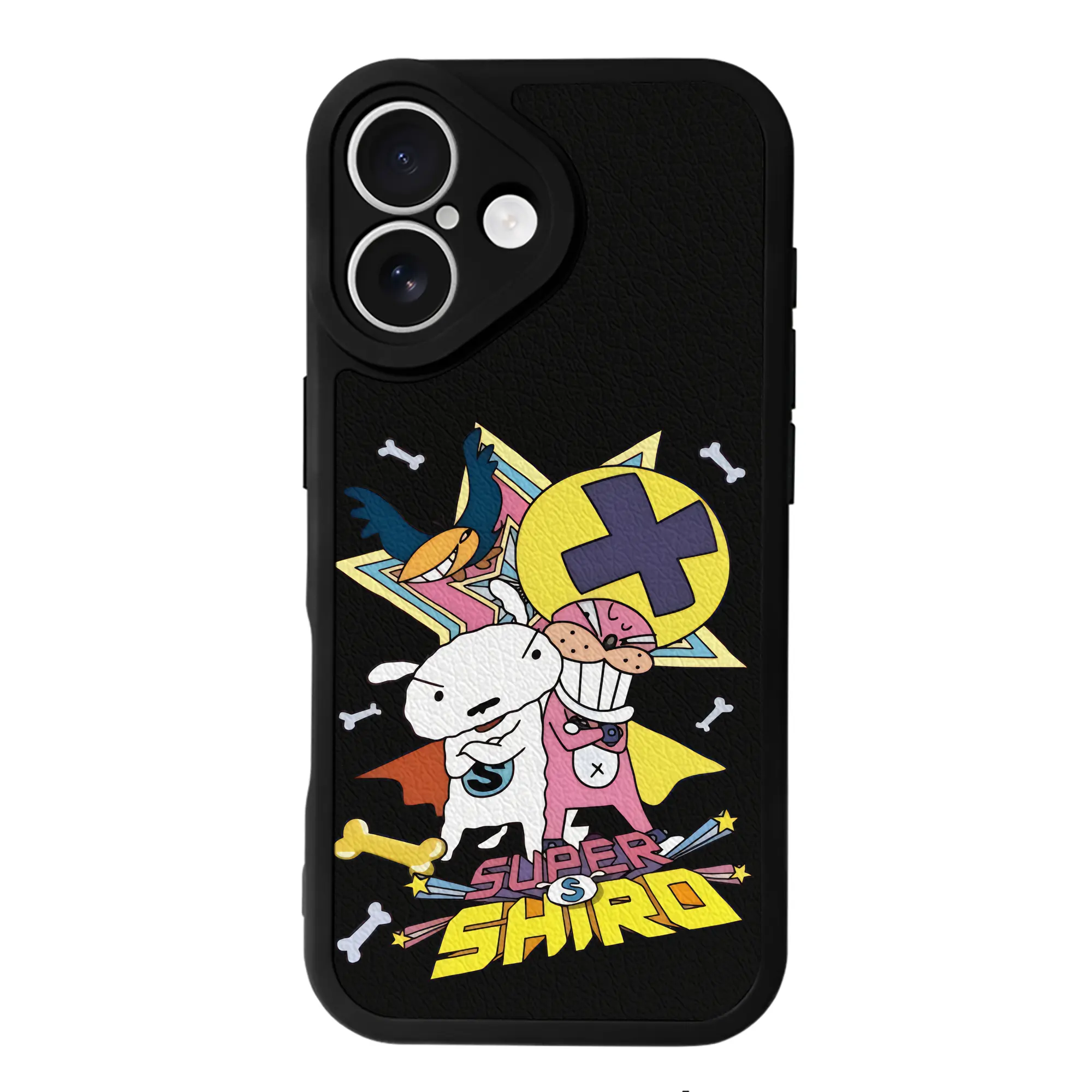 クレヨンしんちゃん グッズ シロ - IPhone 16シリーズ対応 ・ シリコンスマホケース ・ レザー調 ・ 高精度フィット ・ 耐衝撃 ・ ワイヤレス充電対応 ・ 精密カット