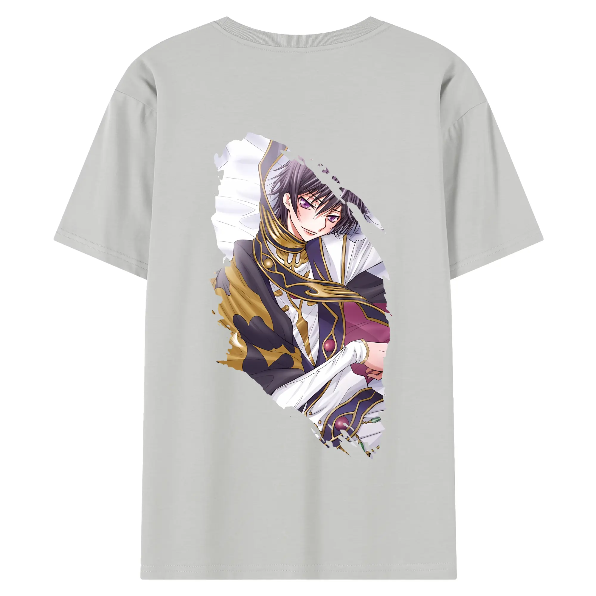 コードギアス 反逆のルルーシュ グッズ ルルーシュ・ランペルージ - 綿100% ヴィンテージ風 半袖Tシャツ ・ 背面プリント ・ 柔らか肌触り ・ 通気性 快適 ・ スポーツ カジュアル 外出用