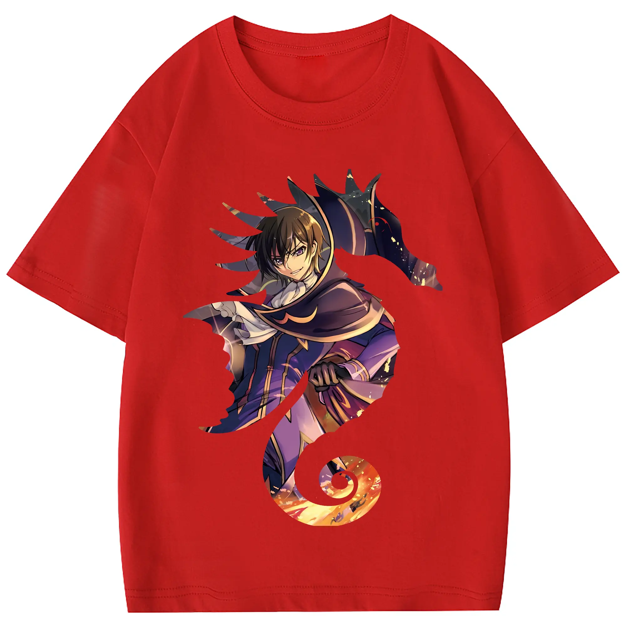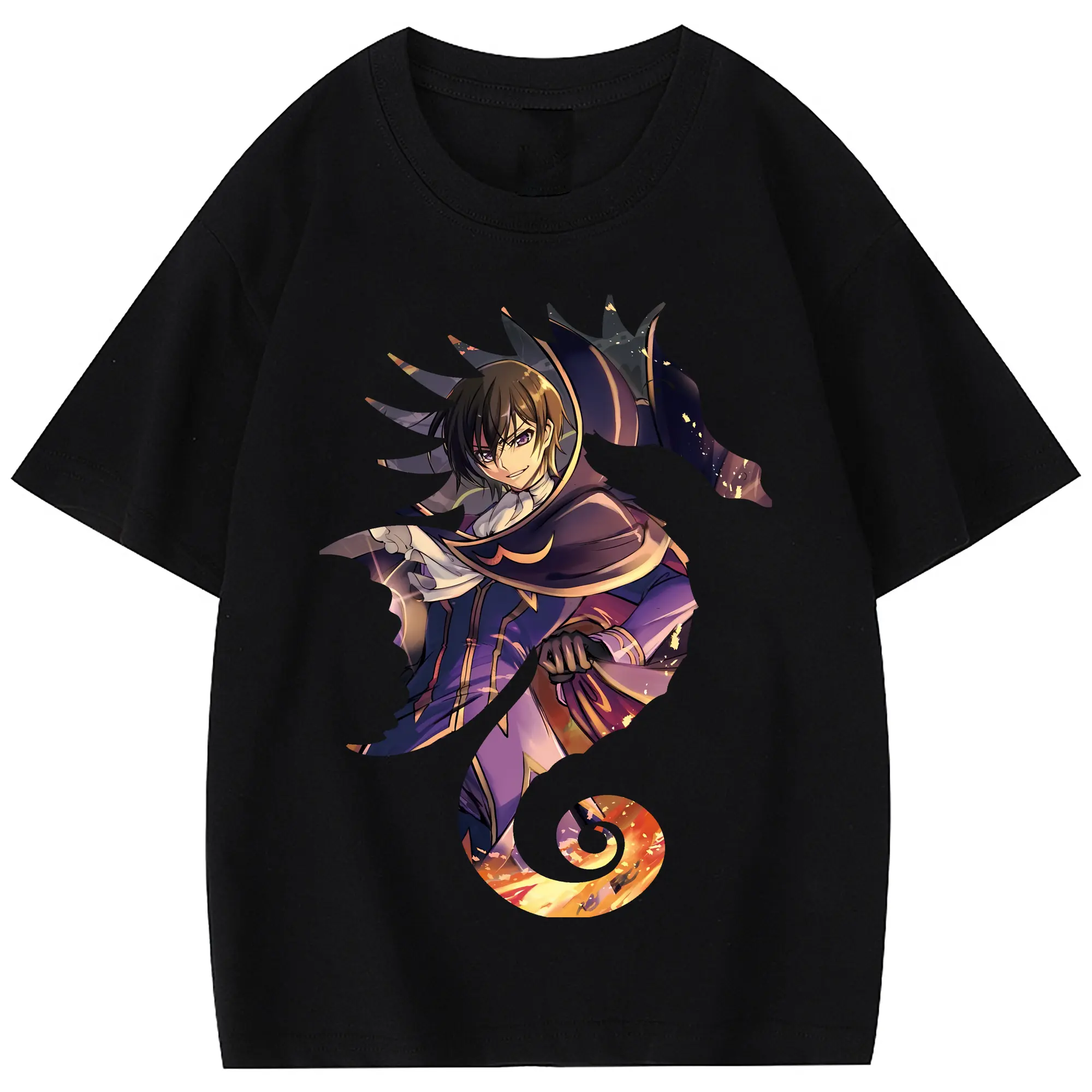 コードギアス 反逆のルルーシュ グッズ ルルーシュ・ランペルージ - 綿100% 半袖Tシャツ ・ フロントプリント ・ 快適 通気性 ・ 日常使い 散歩 スポーツ用