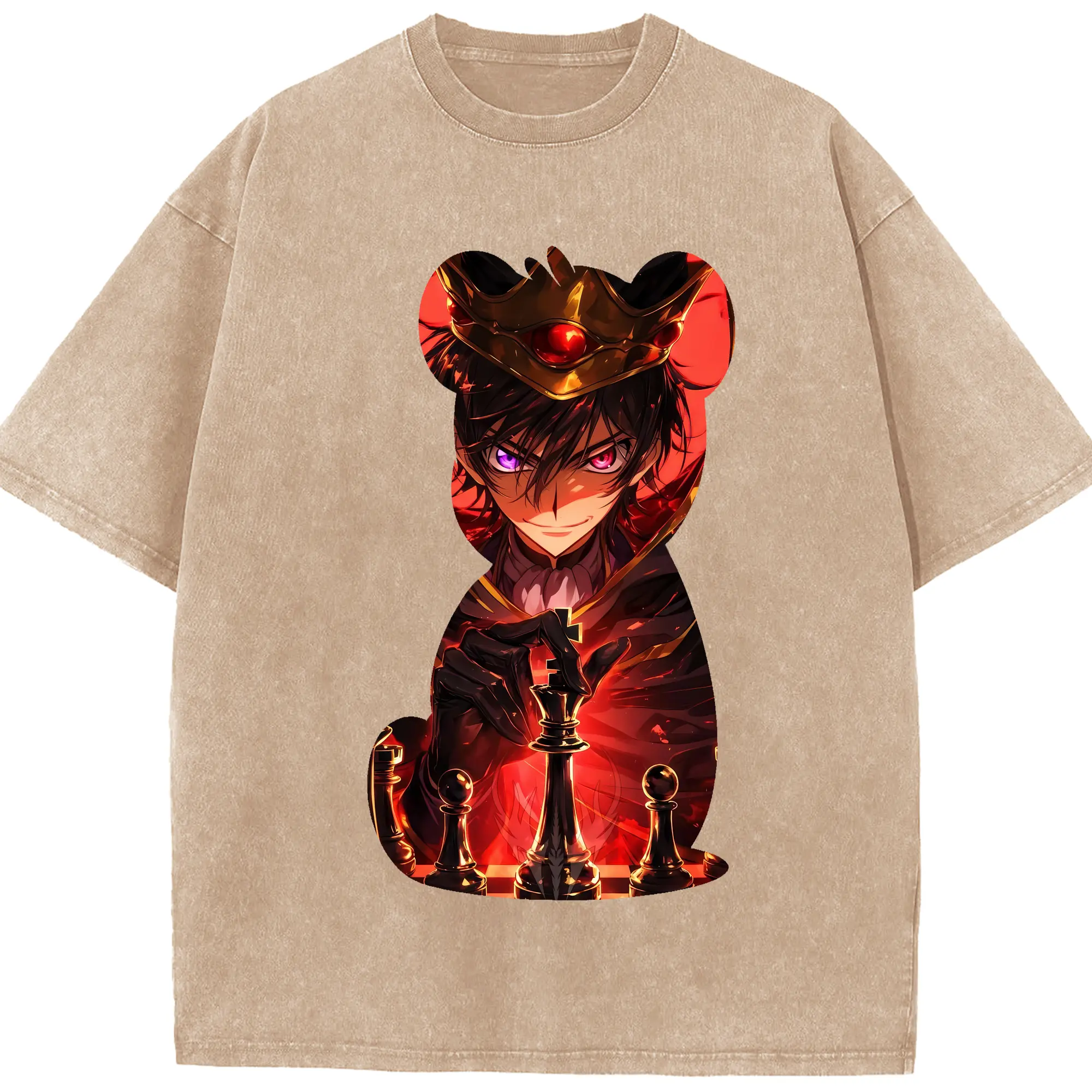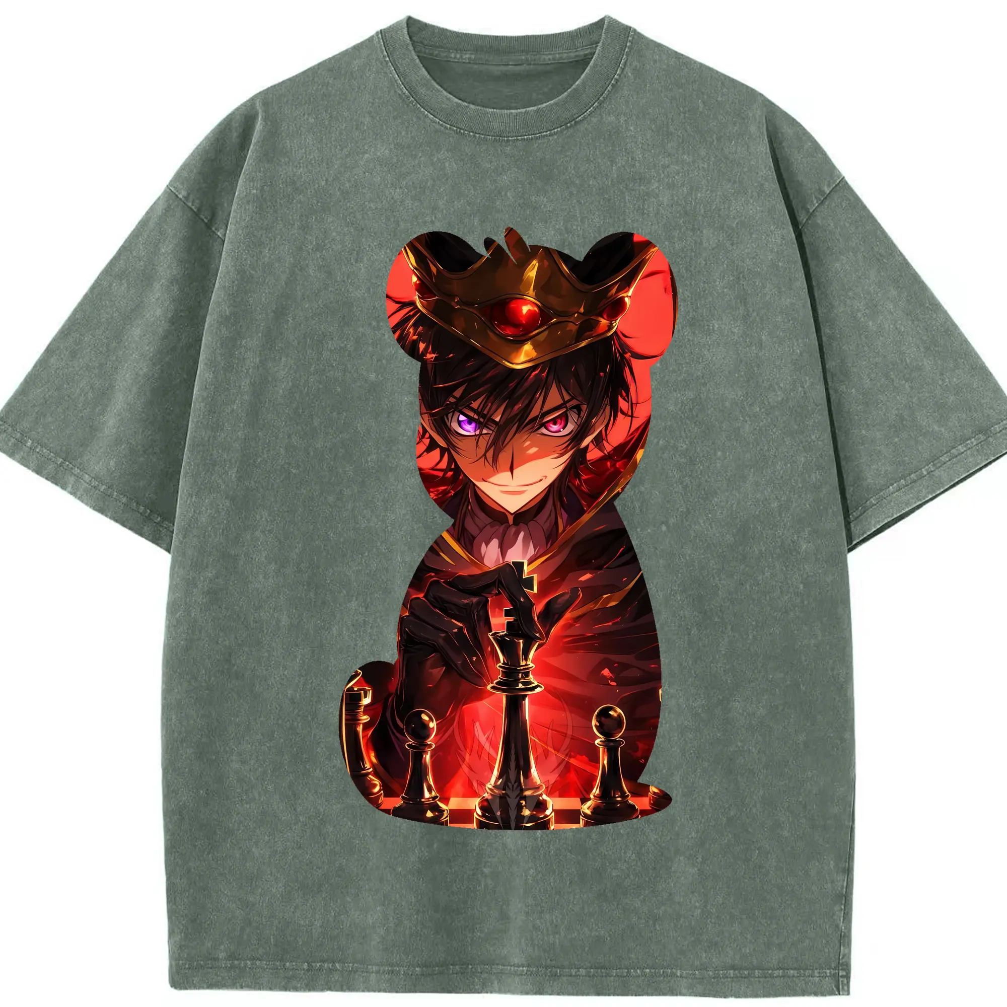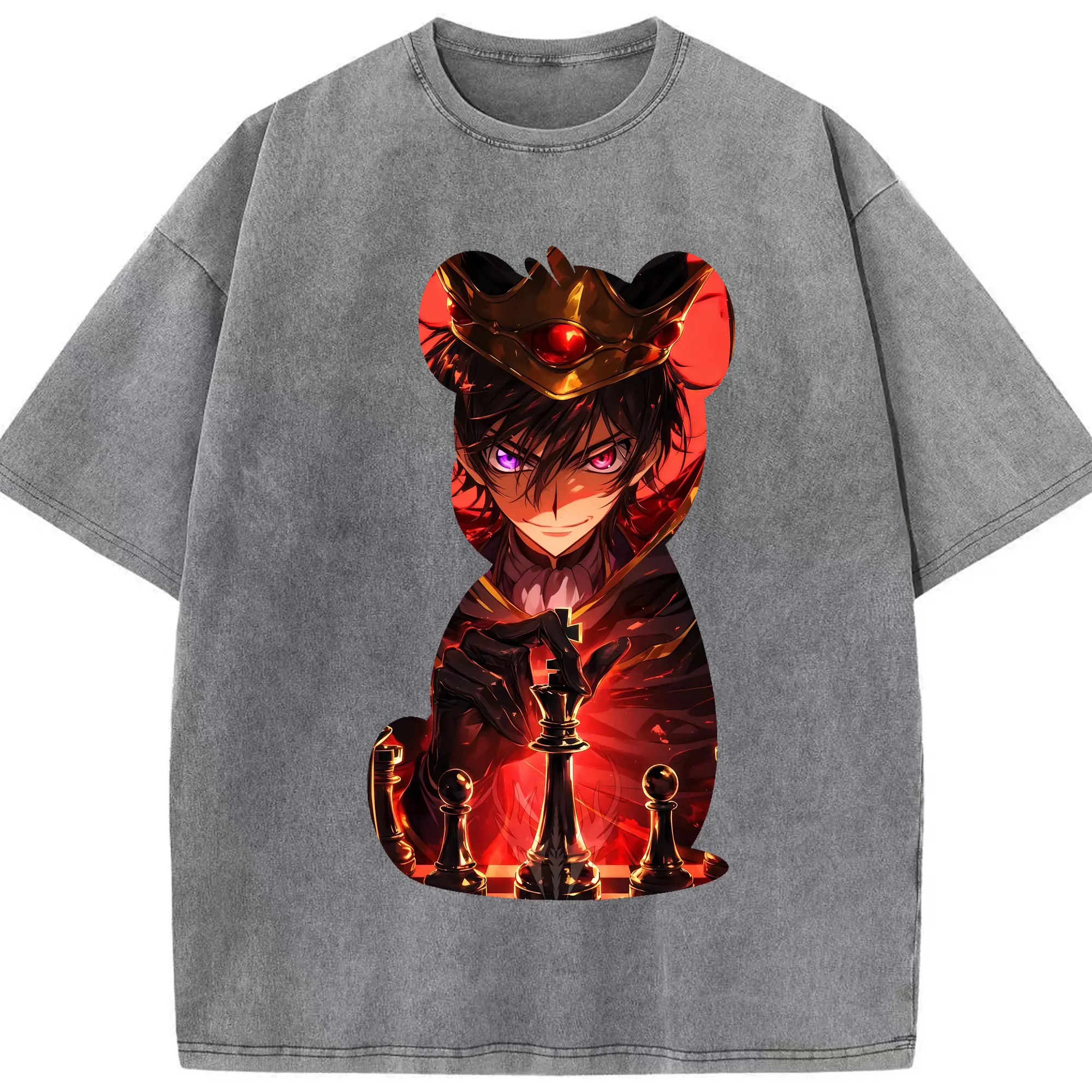 コードギアス 反逆のルルーシュ グッズ ルルーシュ・ランペルージ - 綿100% ヴィンテージ風 半袖Tシャツ ・ 背面プリント ・ 柔らか肌触り ・ 通気性 快適 ・ スポーツ カジュアル 外出用