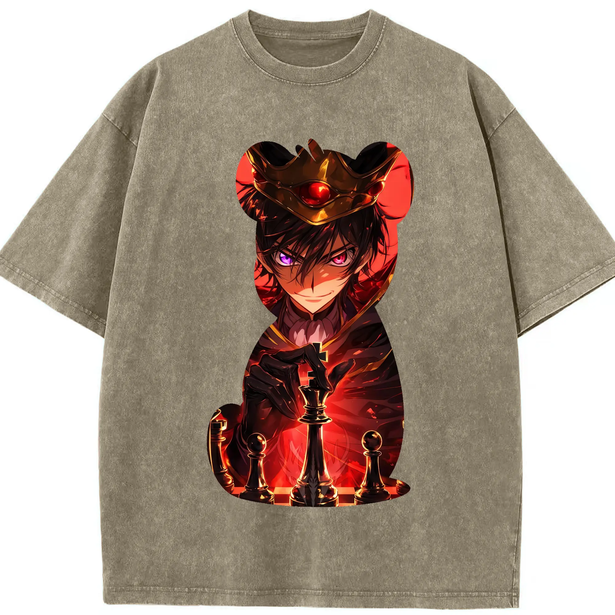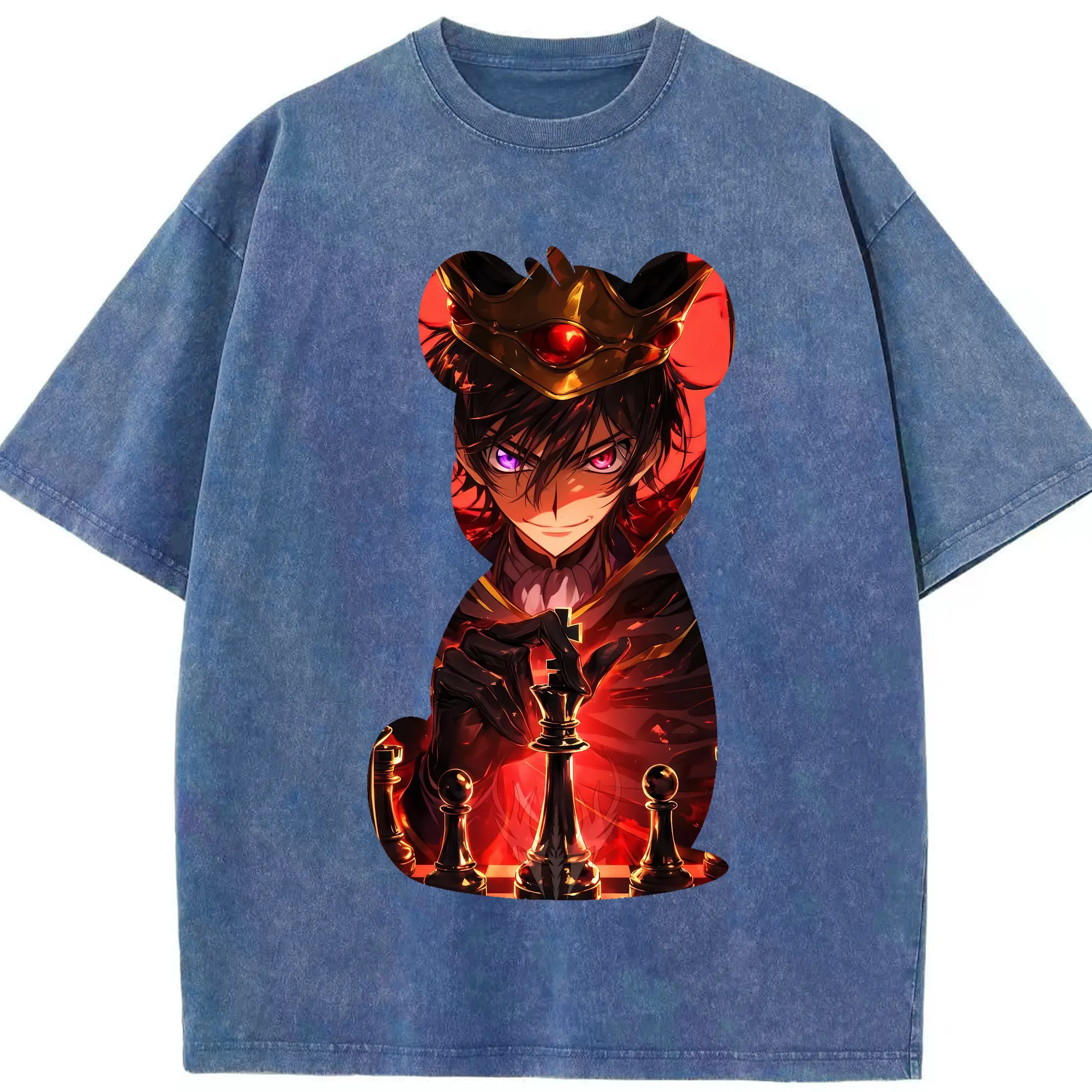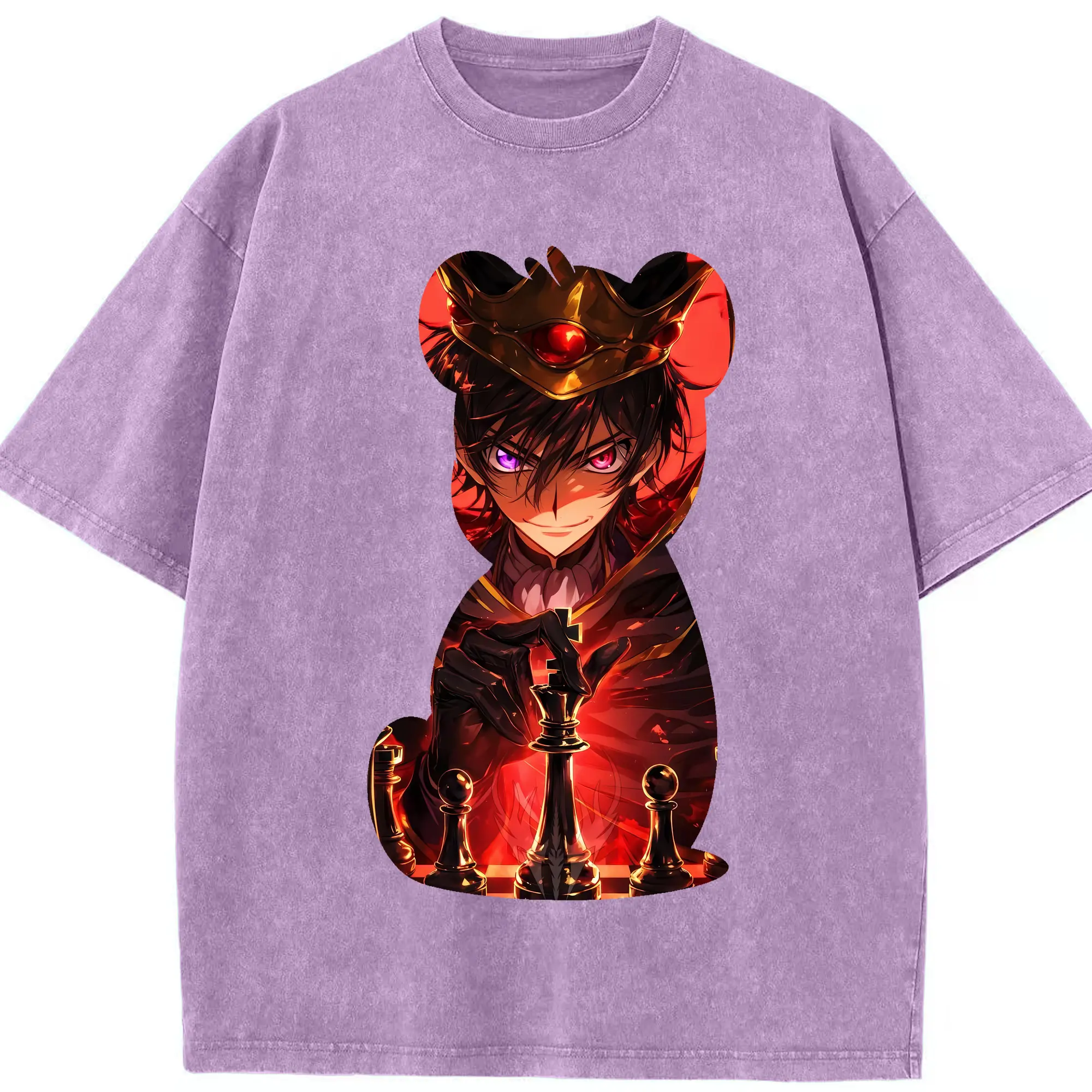 コードギアス 反逆のルルーシュ グッズ ルルーシュ・ランペルージ - 綿100% ヴィンテージ風 半袖Tシャツ ・ 背面プリント ・ 柔らか肌触り ・ 通気性 快適 ・ スポーツ カジュアル 外出用
