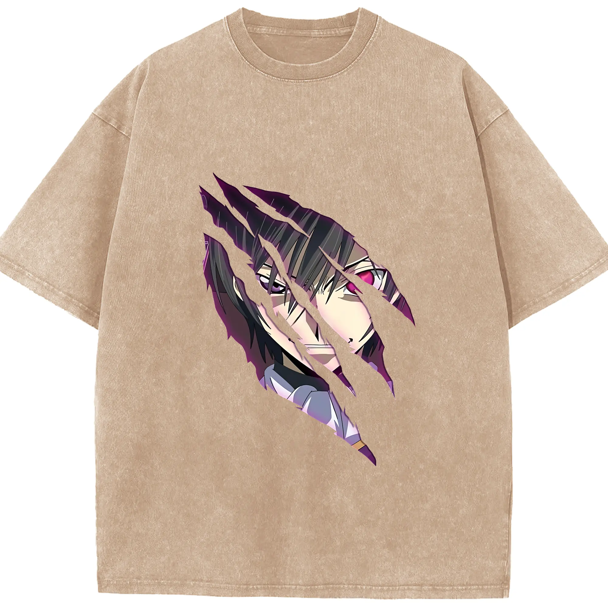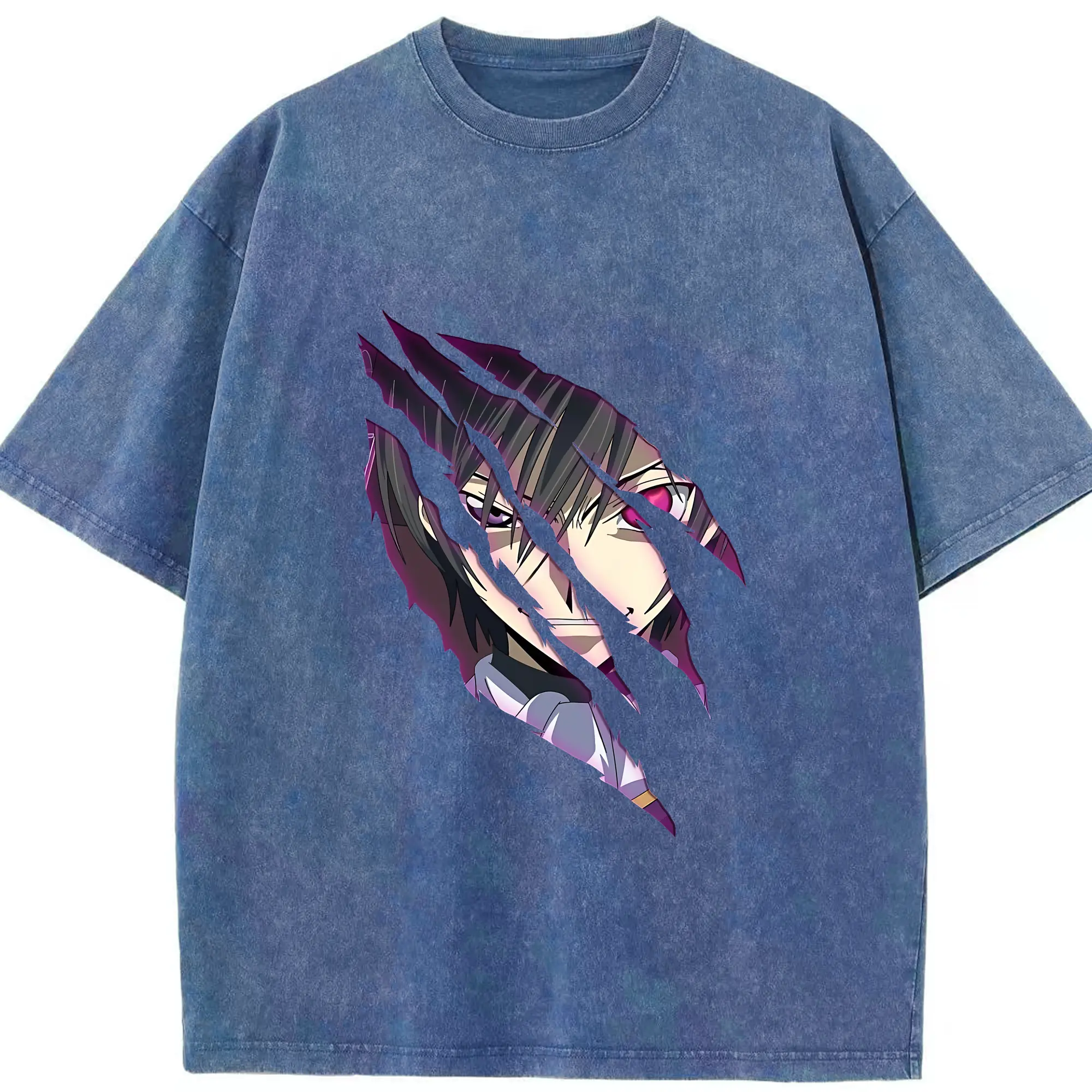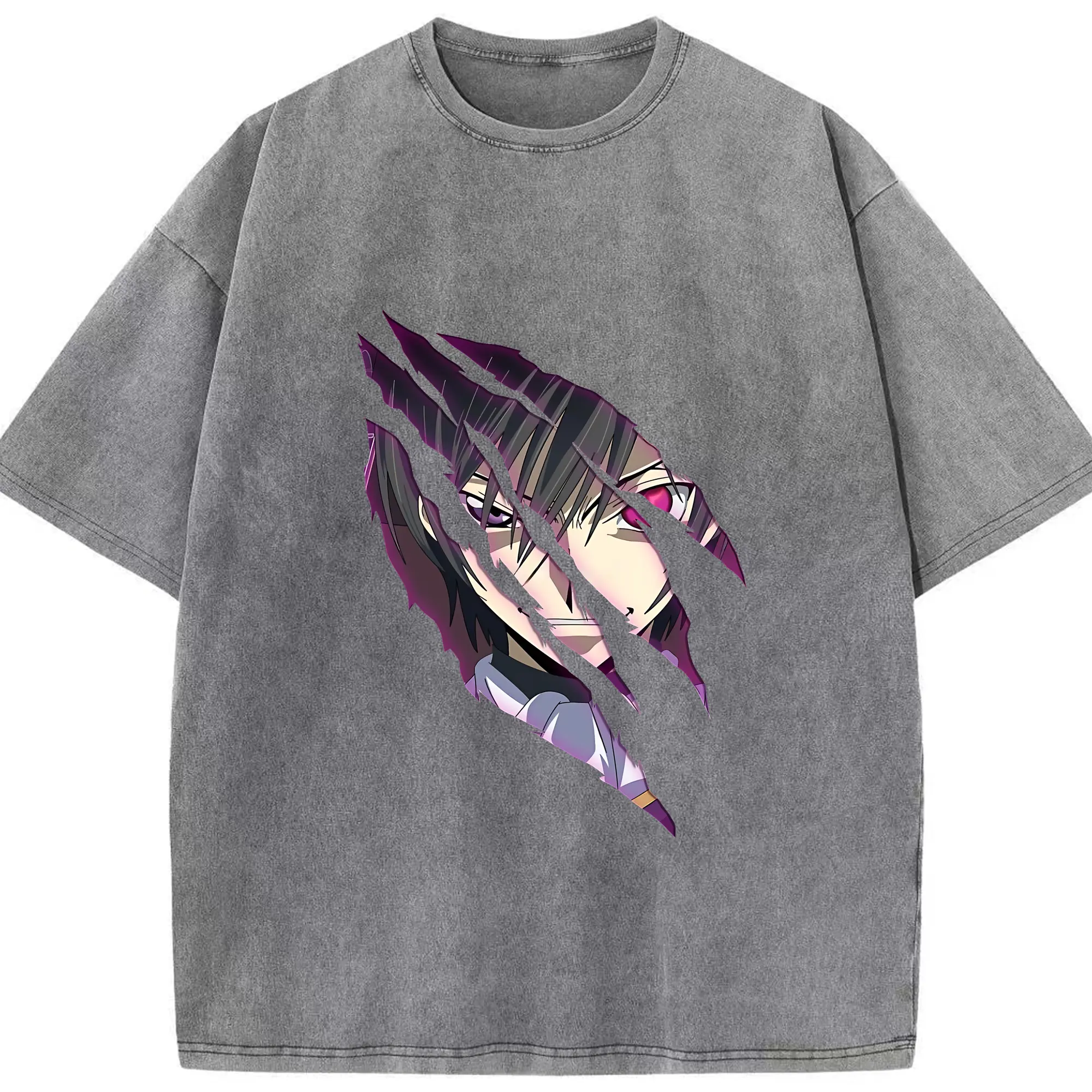 コードギアス 反逆のルルーシュ グッズ ルルーシュ・ランペルージ - 綿100% ヴィンテージ風 半袖Tシャツ ・ 背面プリント ・ 柔らか肌触り ・ 通気性 快適 ・ スポーツ カジュアル 外出用