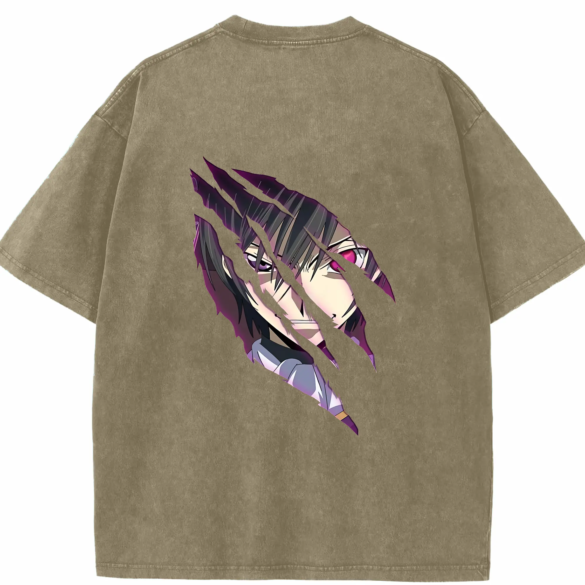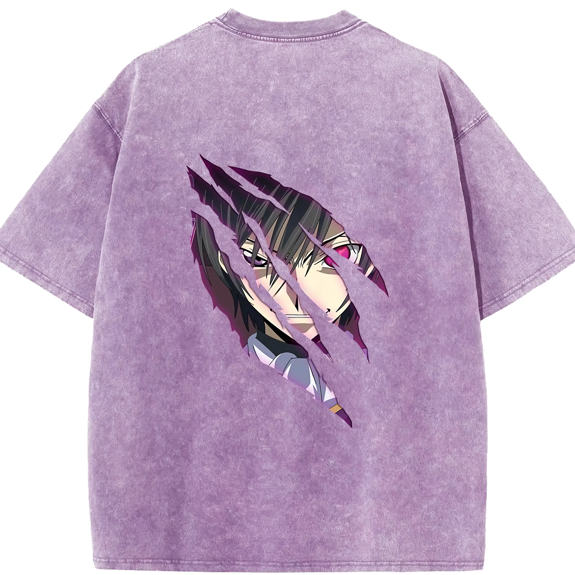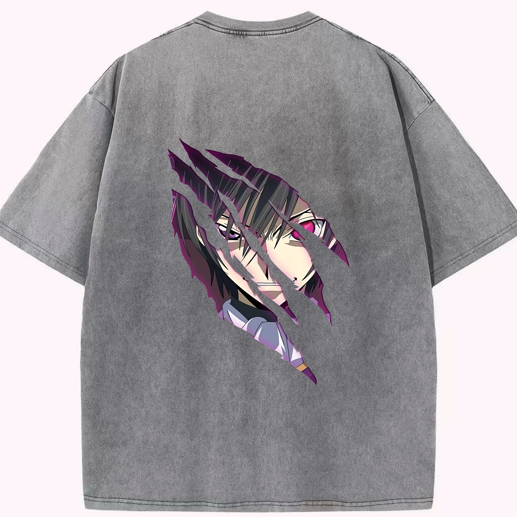 コードギアス 反逆のルルーシュ グッズ ルルーシュ・ランペルージ - 綿100% ヴィンテージ風 半袖Tシャツ ・ フロントプリント ・ 柔らか肌触り ・ 通気性 快適 ・ スポーツ カジュアル 外出用