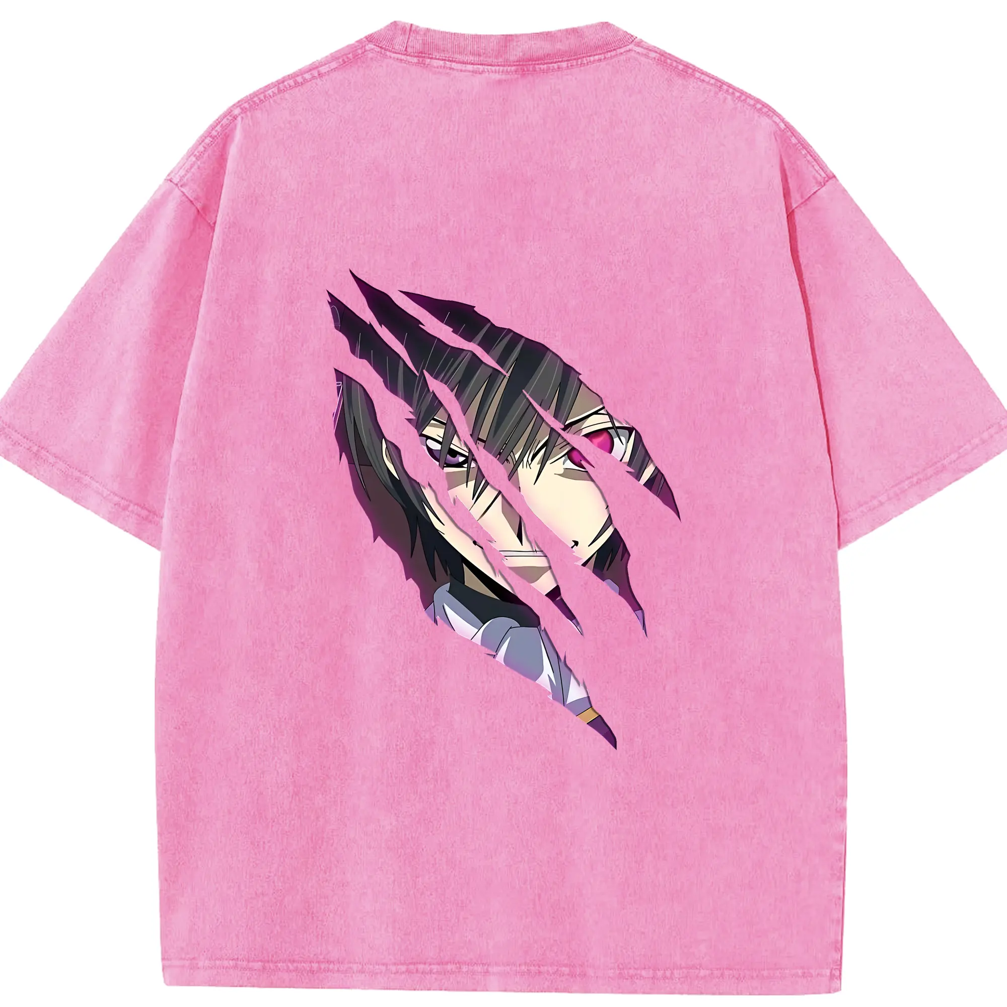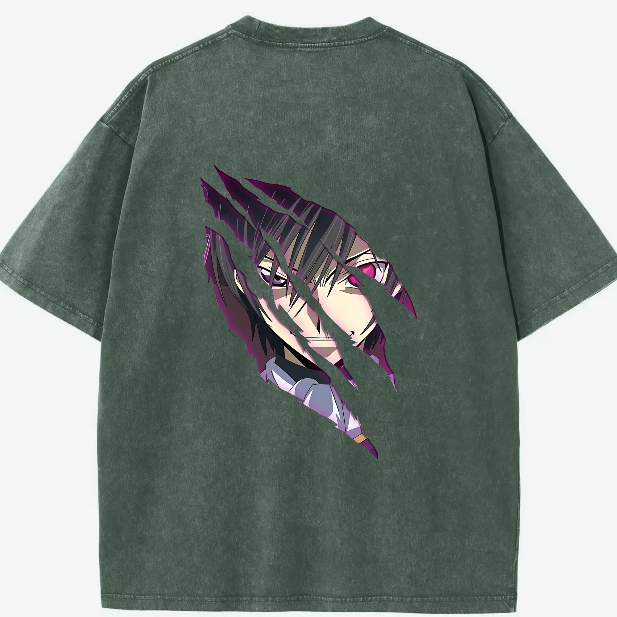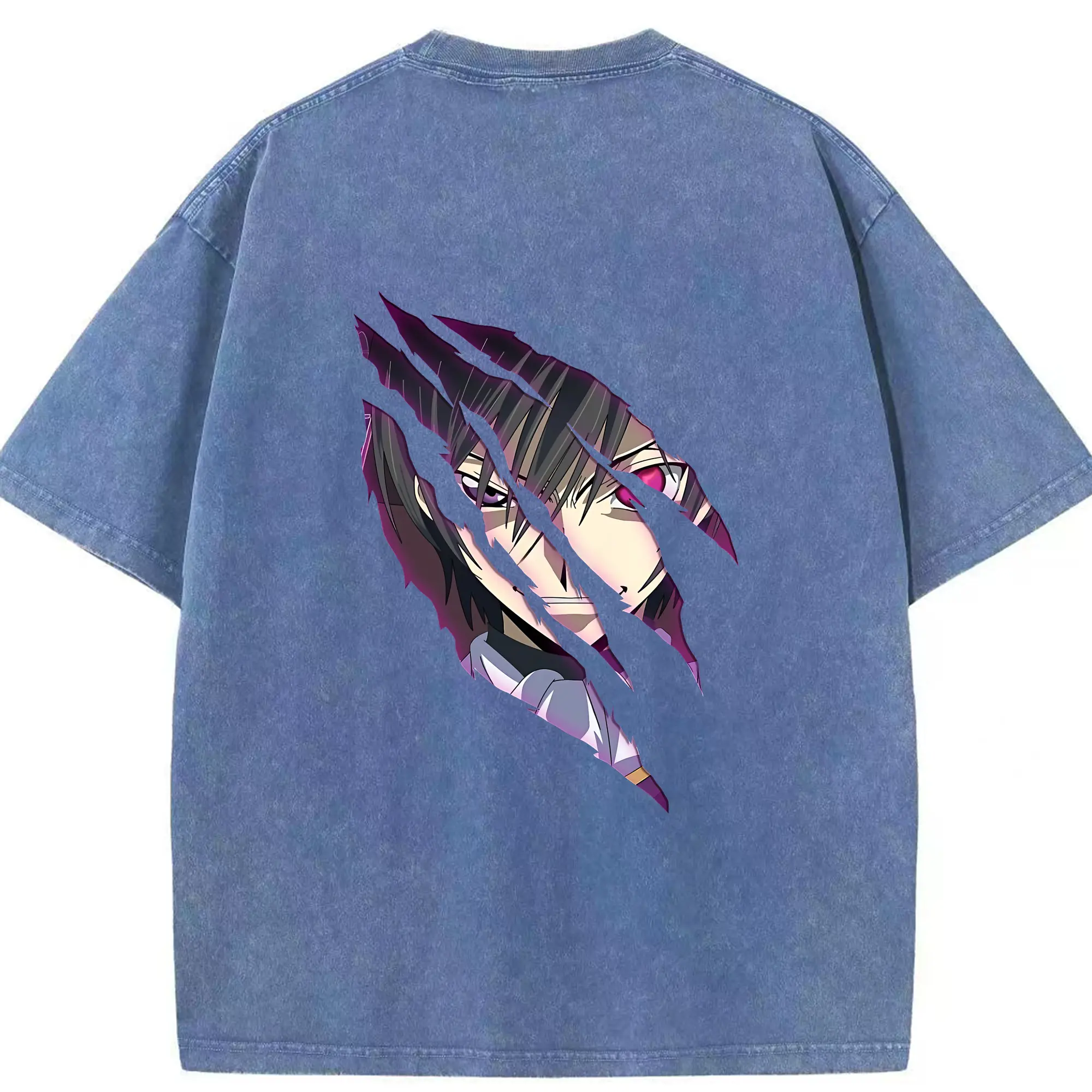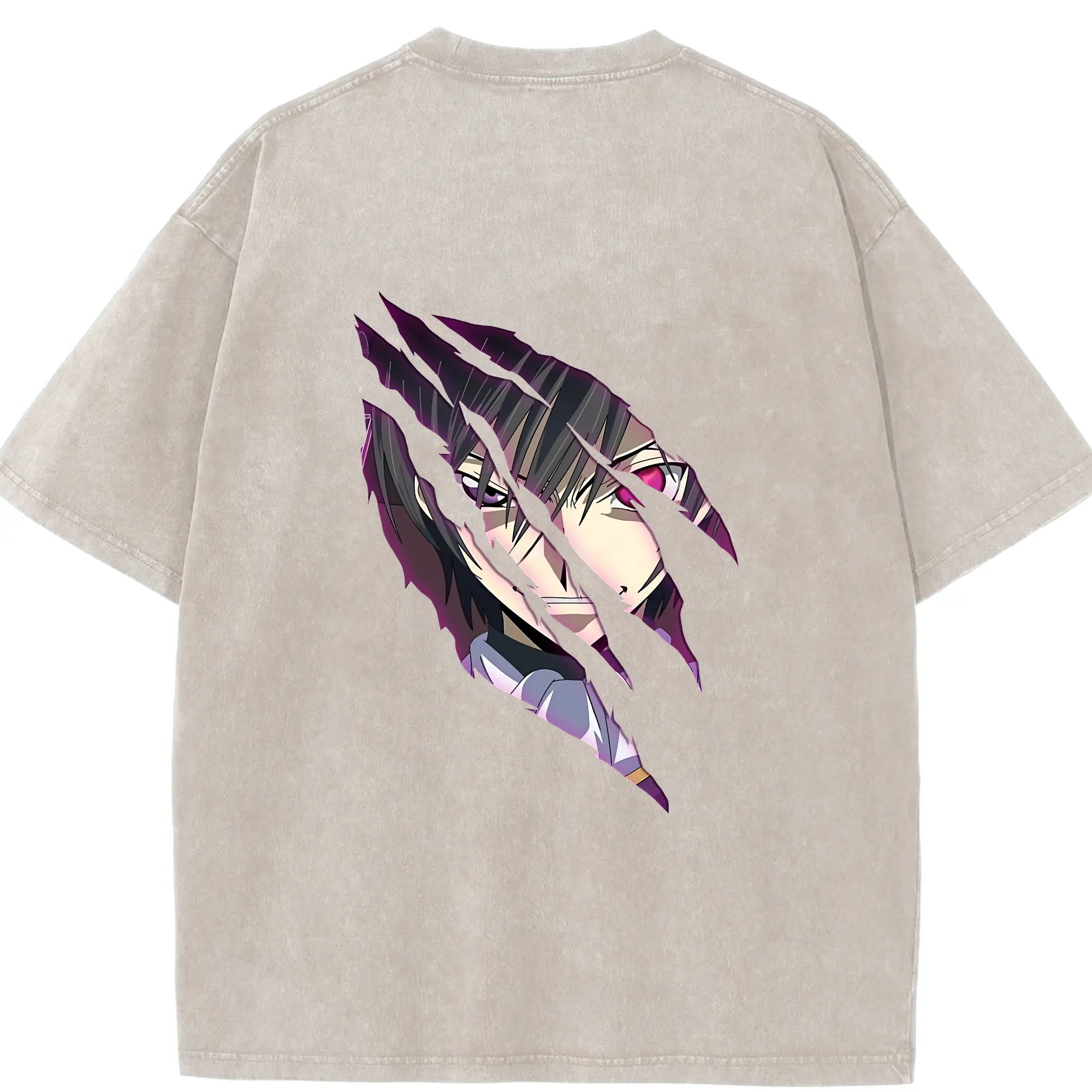 コードギアス 反逆のルルーシュ グッズ ルルーシュ・ランペルージ - 綿100% ヴィンテージ風 半袖Tシャツ ・ フロントプリント ・ 柔らか肌触り ・ 通気性 快適 ・ スポーツ カジュアル 外出用