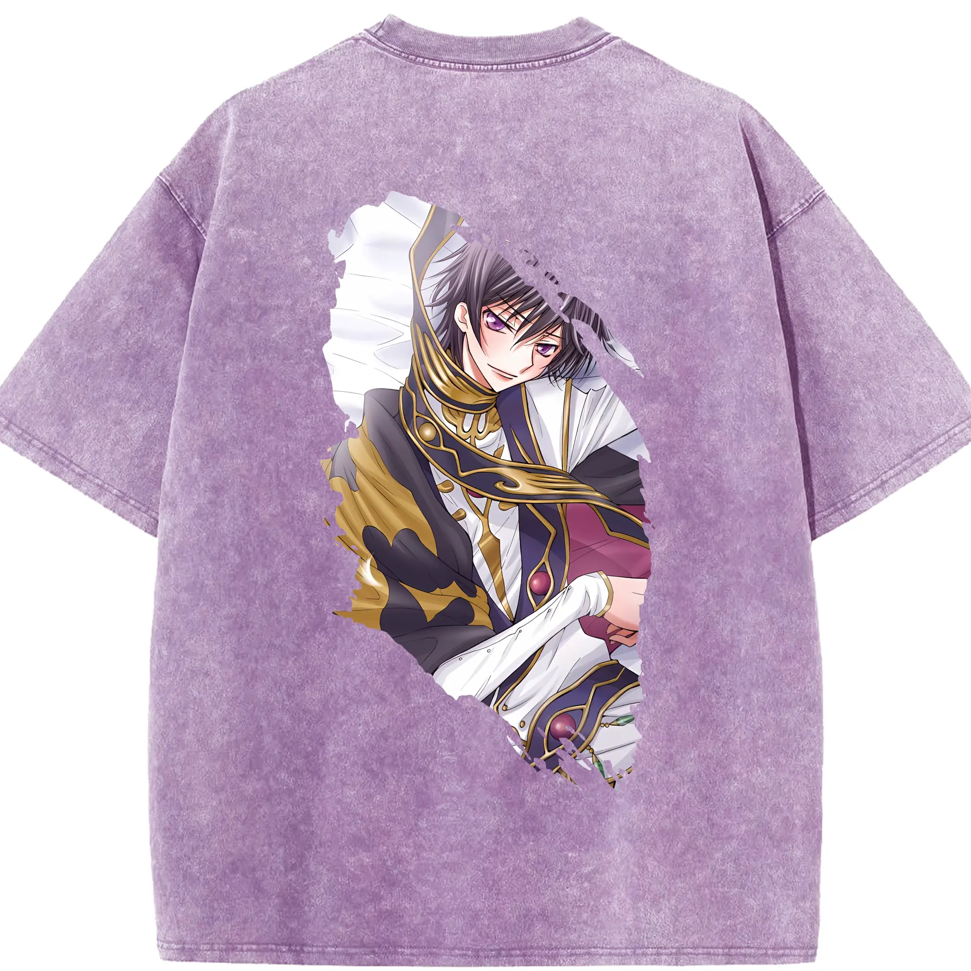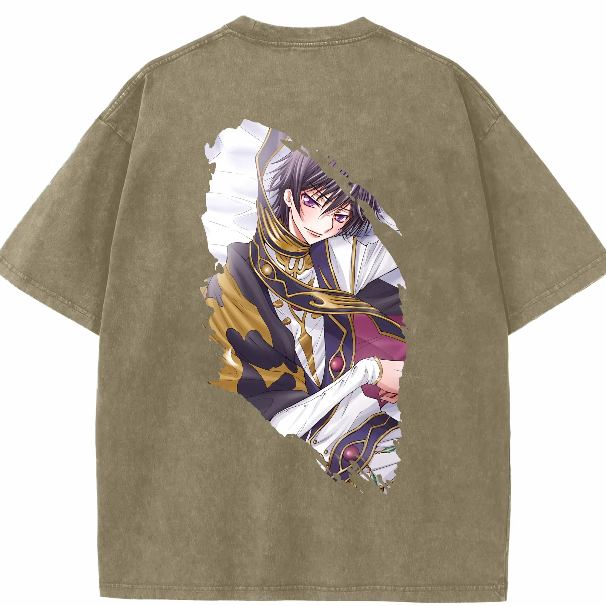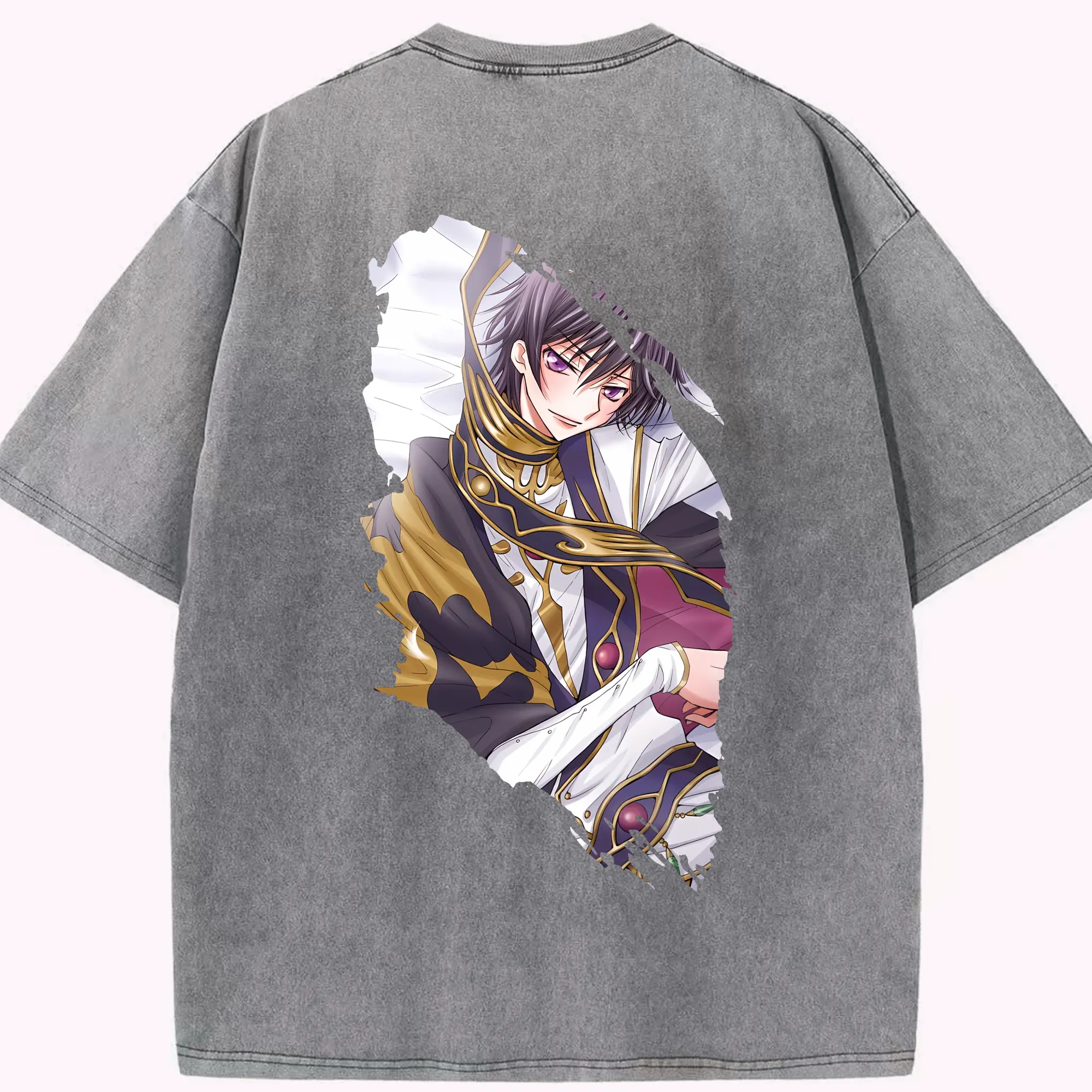 コードギアス 反逆のルルーシュ グッズ ルルーシュ・ランペルージ - 綿100% ヴィンテージ風 半袖Tシャツ ・ フロントプリント ・ 柔らか肌触り ・ 通気性 快適 ・ スポーツ カジュアル 外出用