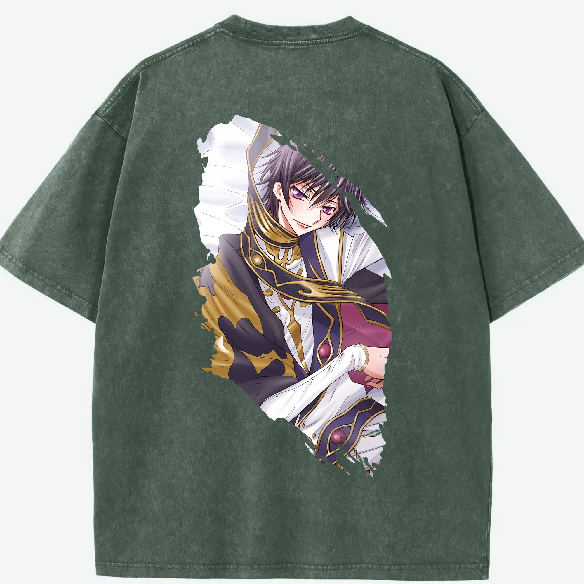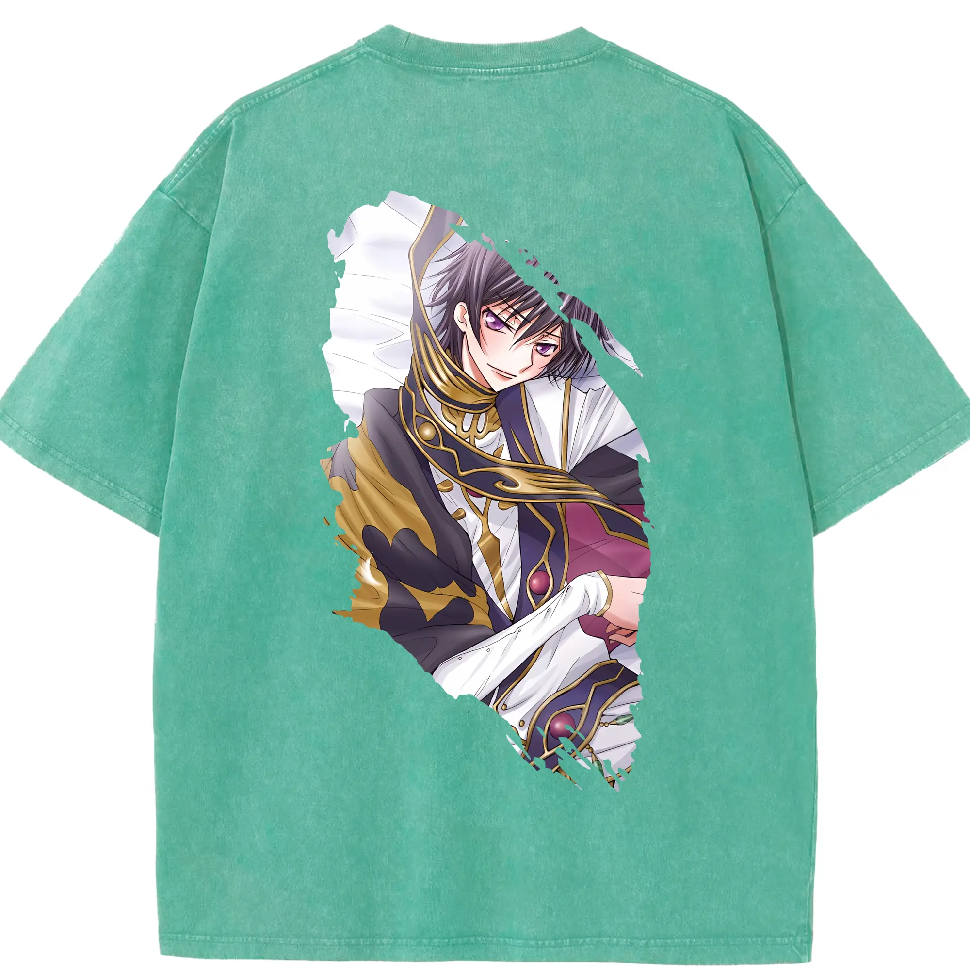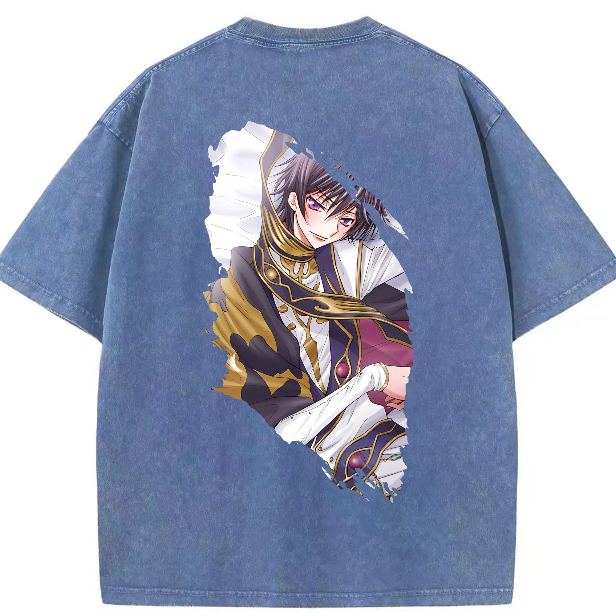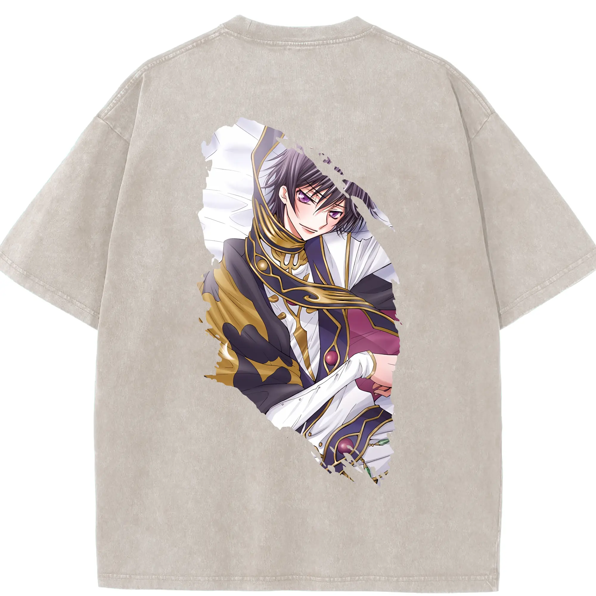コードギアス 反逆のルルーシュ グッズ ルルーシュ・ランペルージ - 綿100% ヴィンテージ風 半袖Tシャツ ・ フロントプリント ・ 柔らか肌触り ・ 通気性 快適 ・ スポーツ カジュアル 外出用