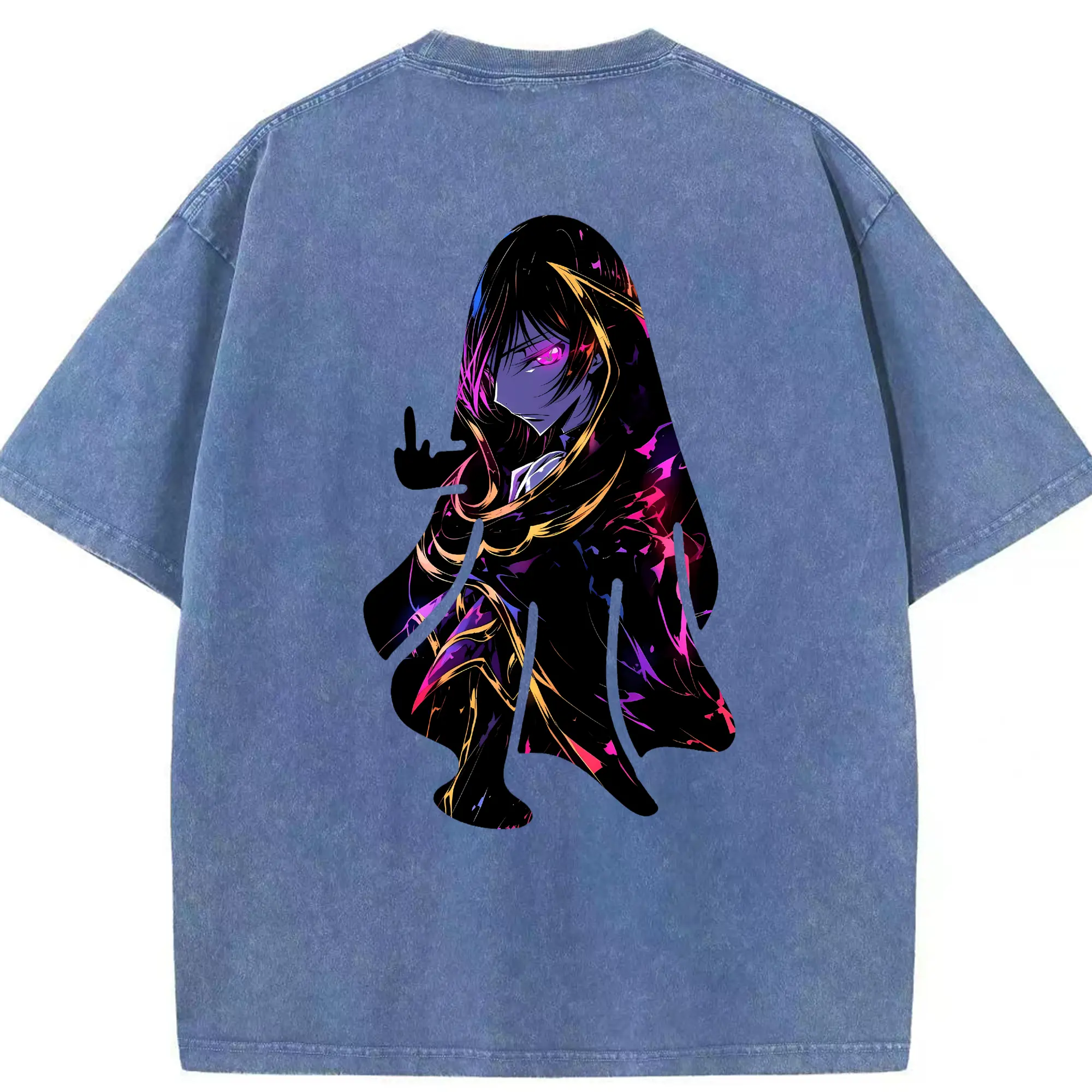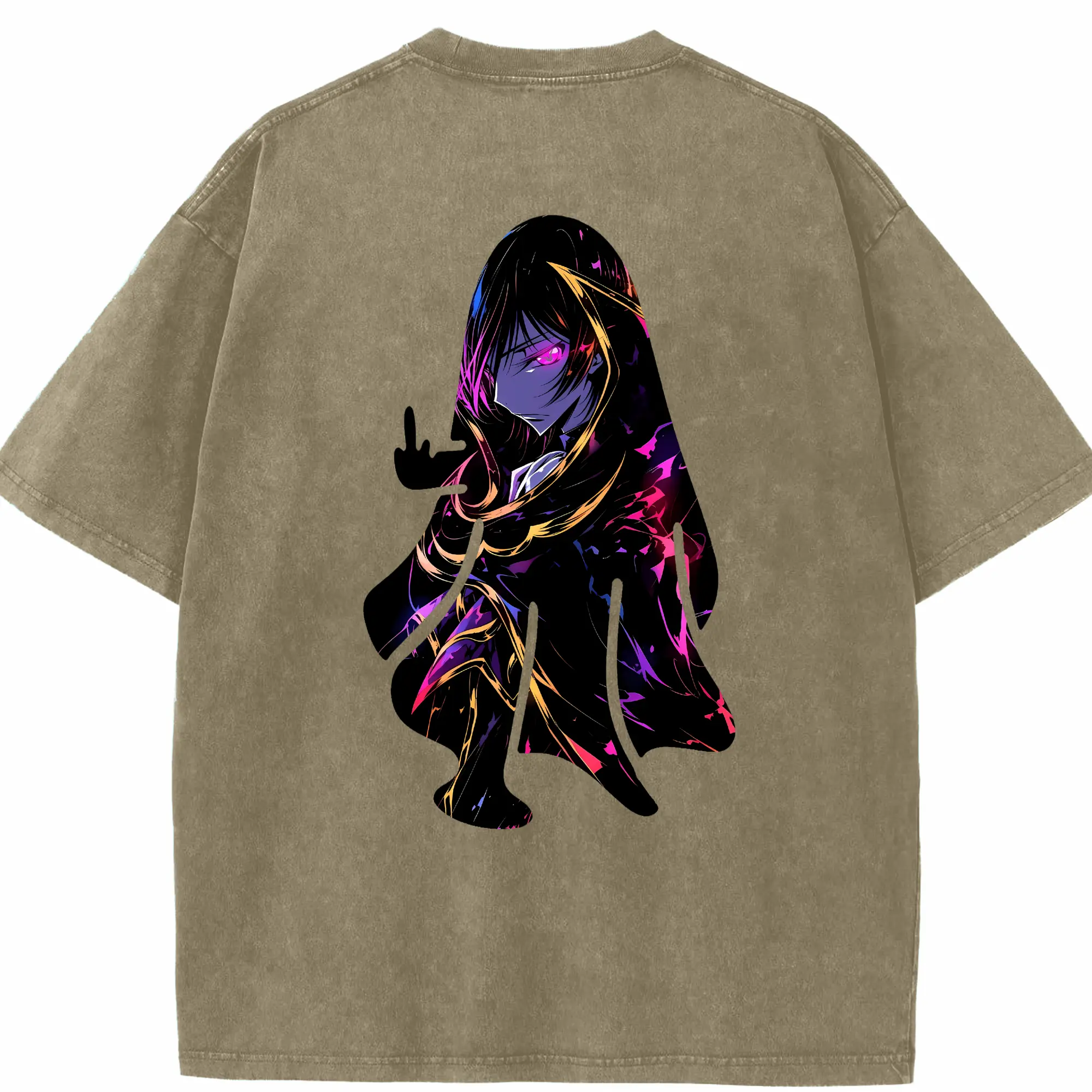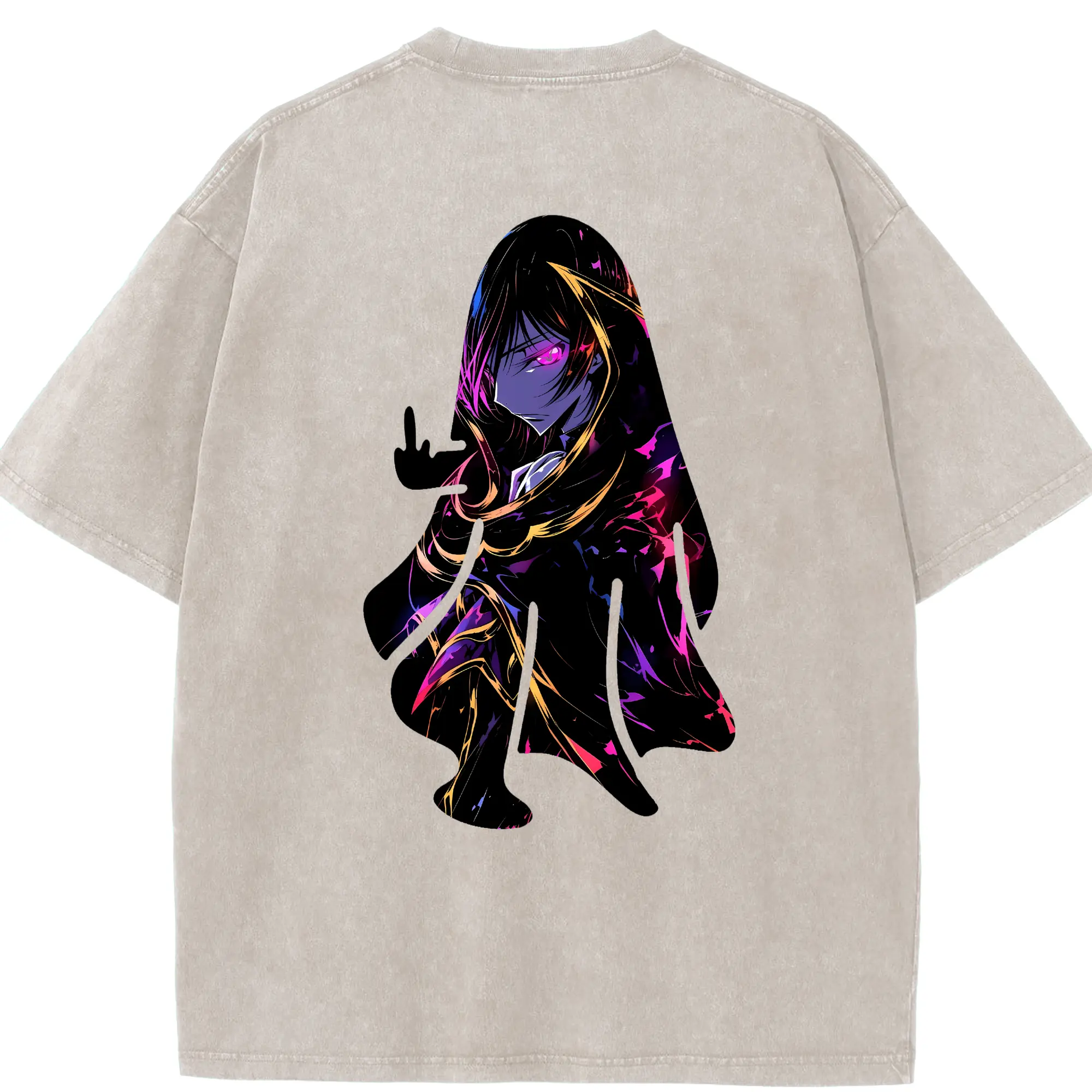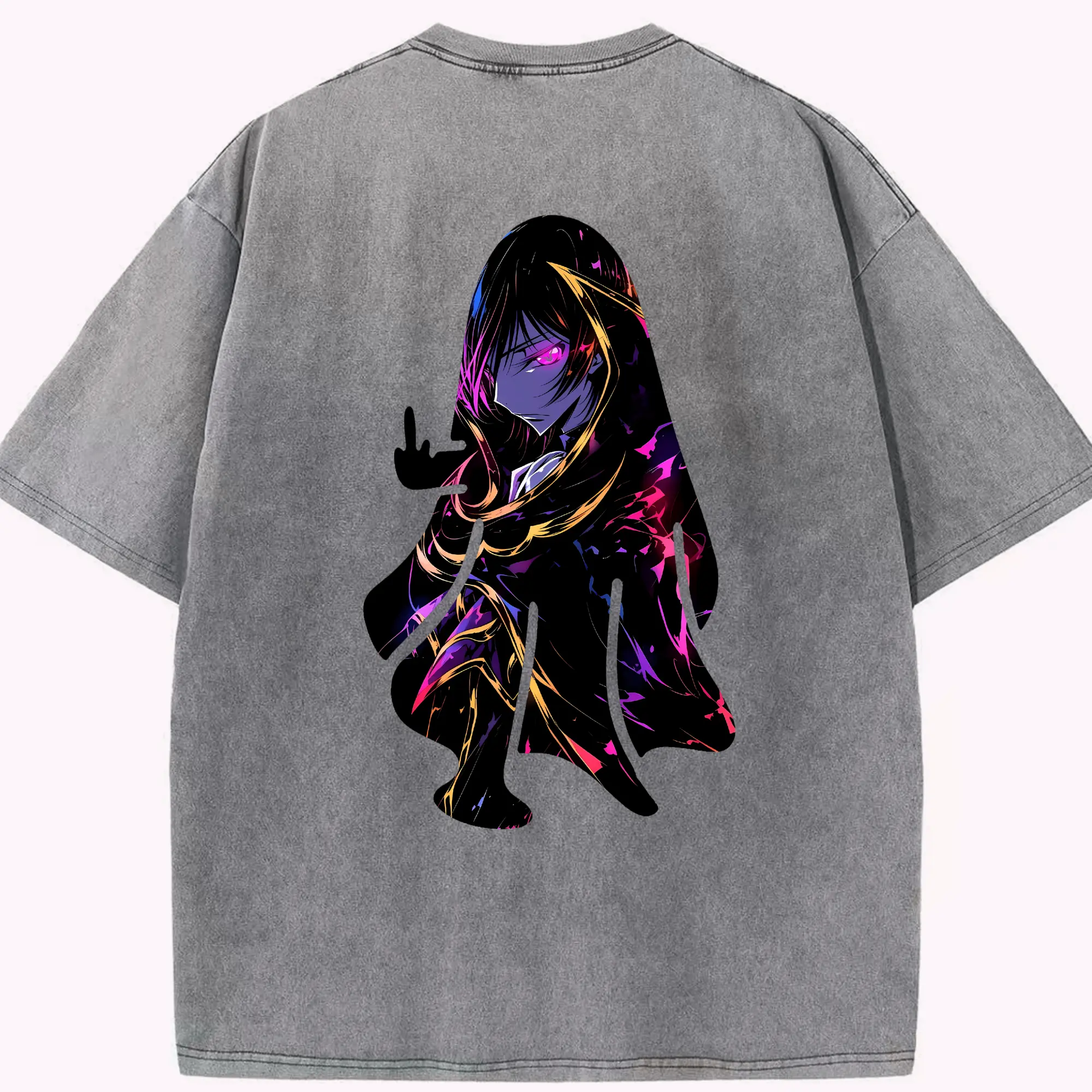 コードギアス 反逆のルルーシュ グッズ ルルーシュ・ランペルージ - 綿100% ヴィンテージ風 半袖Tシャツ ・ フロントプリント ・ 柔らか肌触り ・ 通気性 快適 ・ スポーツ カジュアル 外出用