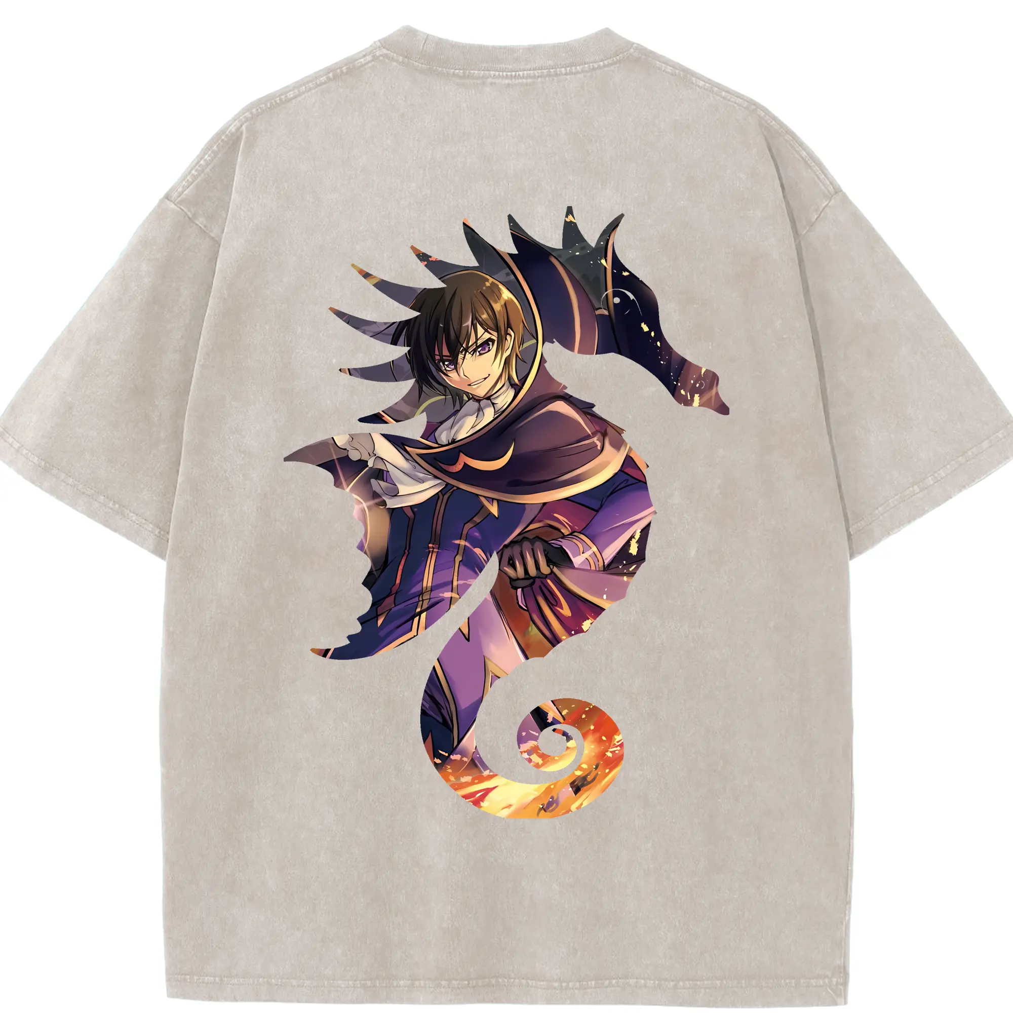 コードギアス 反逆のルルーシュ グッズ ルルーシュ・ランペルージ - 綿100% ヴィンテージ風 半袖Tシャツ ・ フロントプリント ・ 柔らか肌触り ・ 通気性 快適 ・ スポーツ カジュアル 外出用