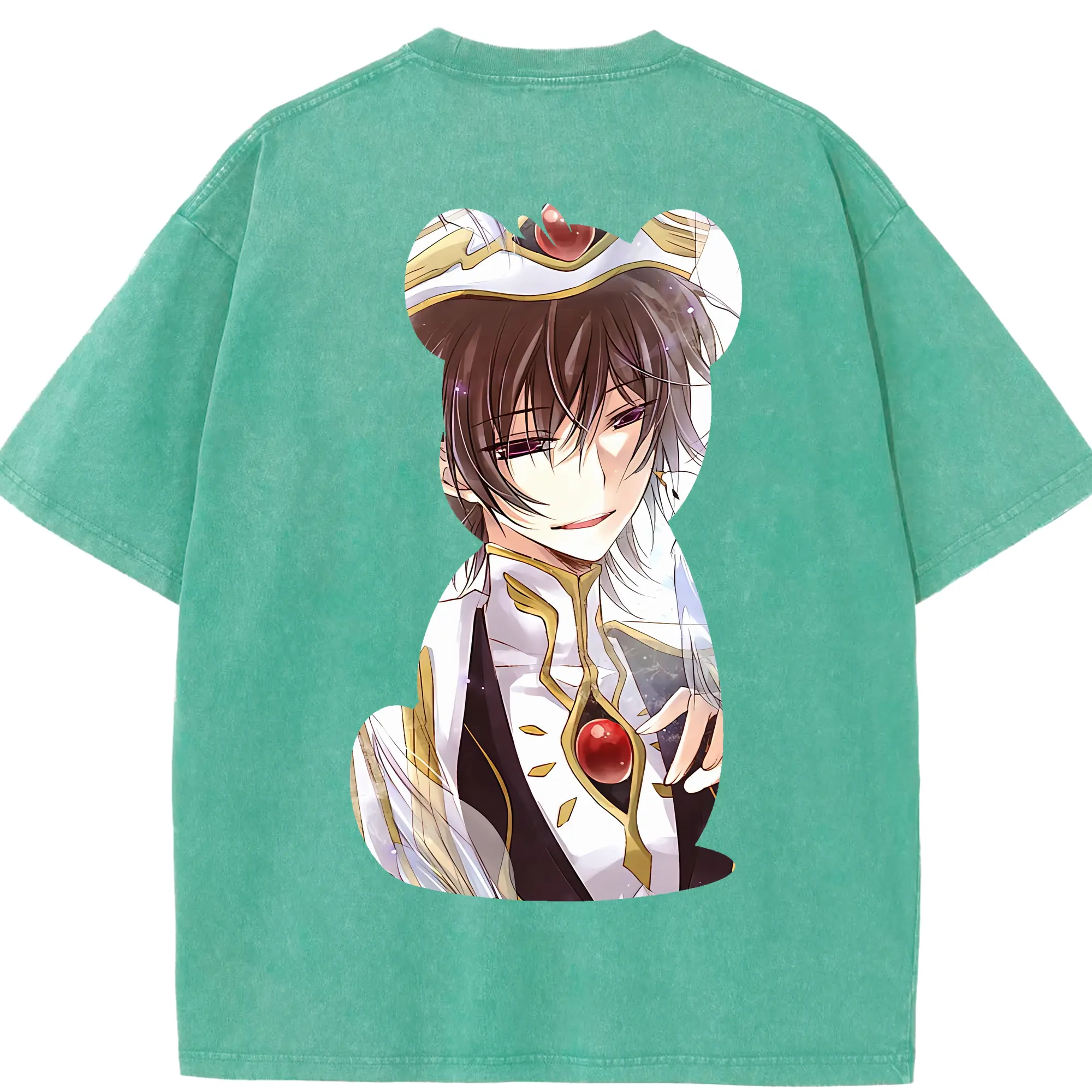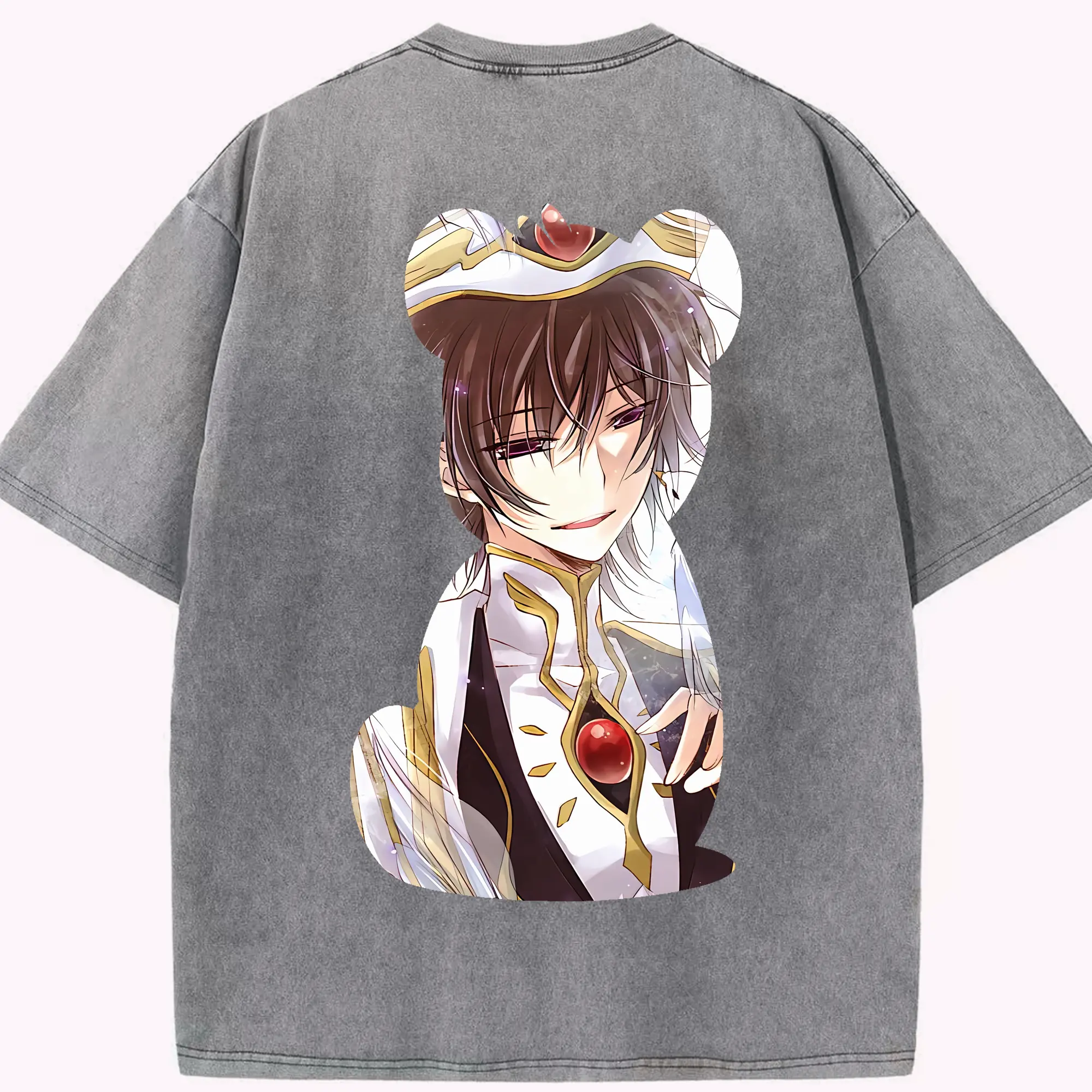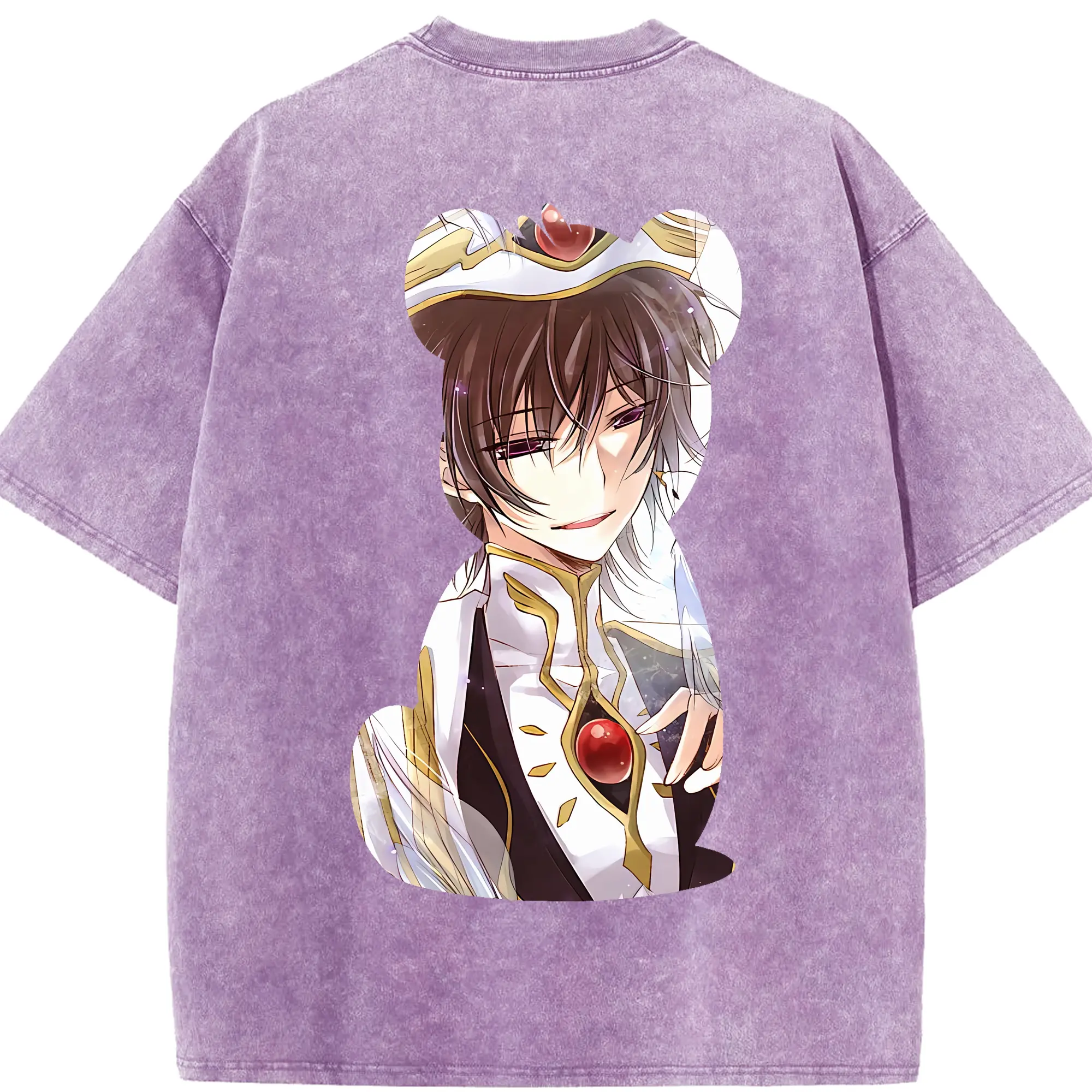 コードギアス 反逆のルルーシュ グッズ ルルーシュ・ランペルージ - 綿100% ヴィンテージ風 半袖Tシャツ ・ フロントプリント ・ 柔らか肌触り ・ 通気性 快適 ・ スポーツ カジュアル 外出用