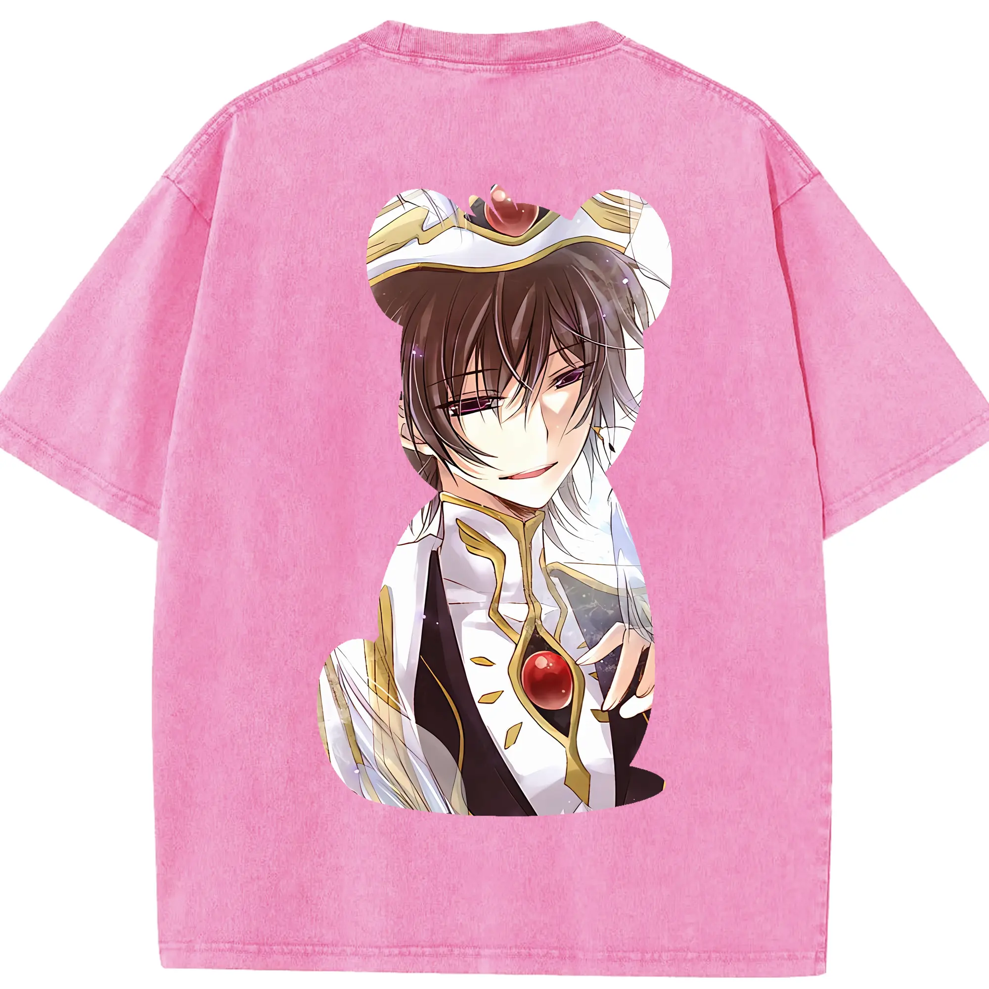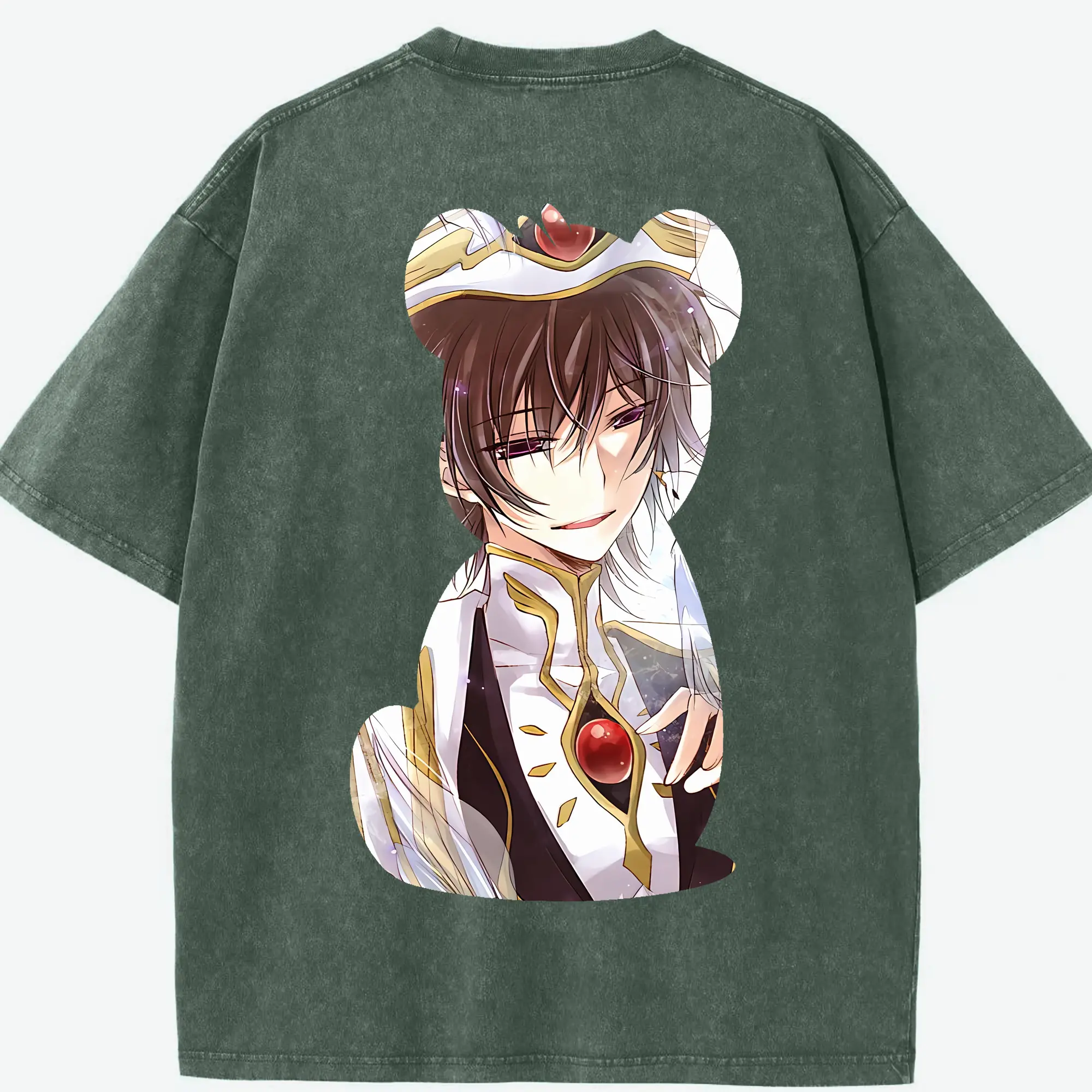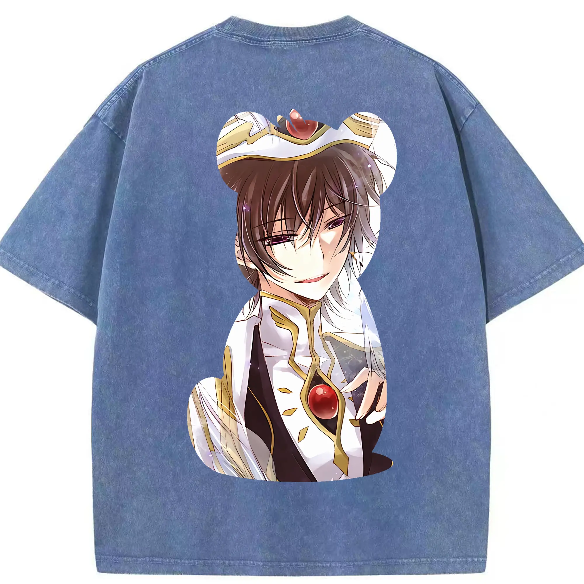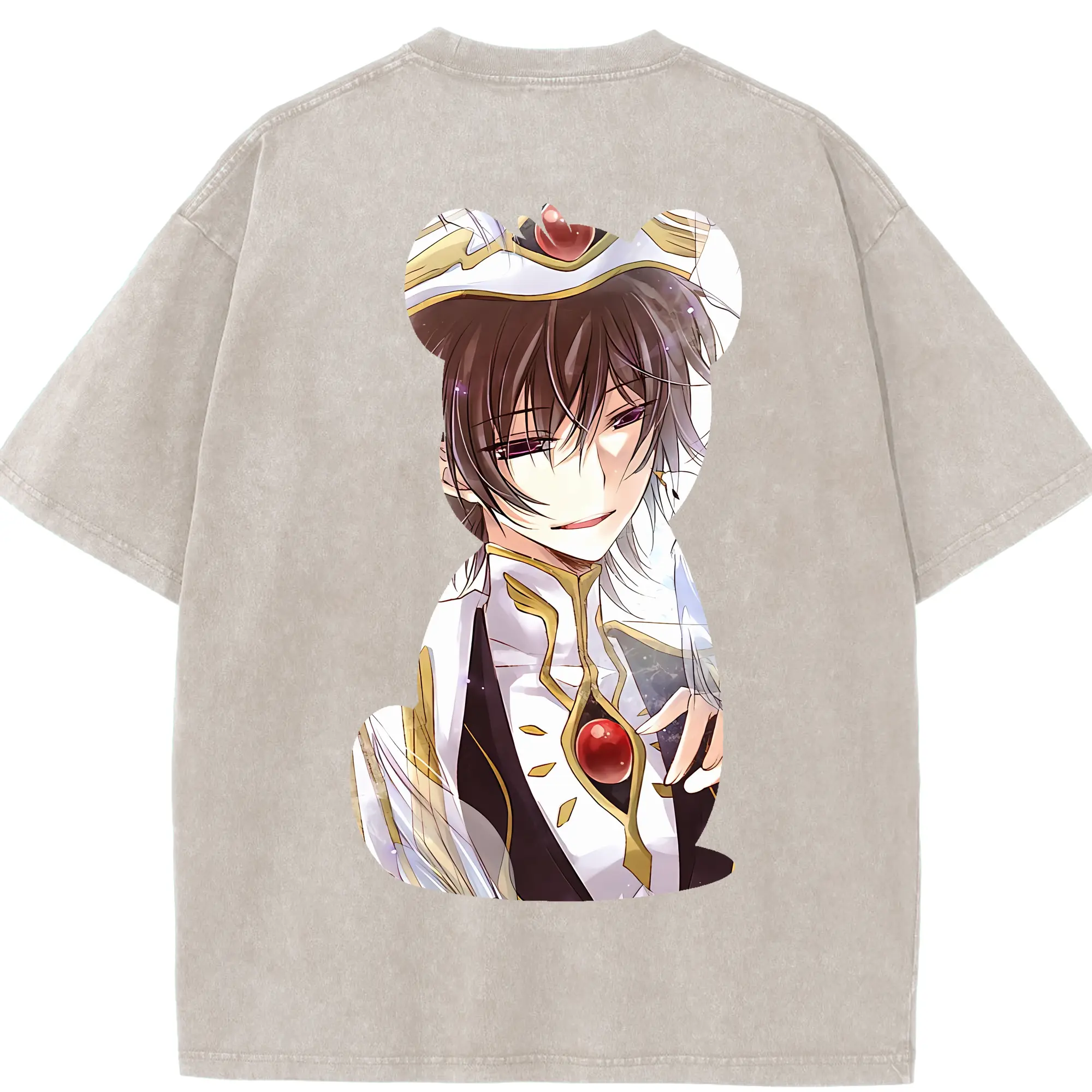 コードギアス 反逆のルルーシュ グッズ ルルーシュ・ランペルージ - 綿100% ヴィンテージ風 半袖Tシャツ ・ フロントプリント ・ 柔らか肌触り ・ 通気性 快適 ・ スポーツ カジュアル 外出用