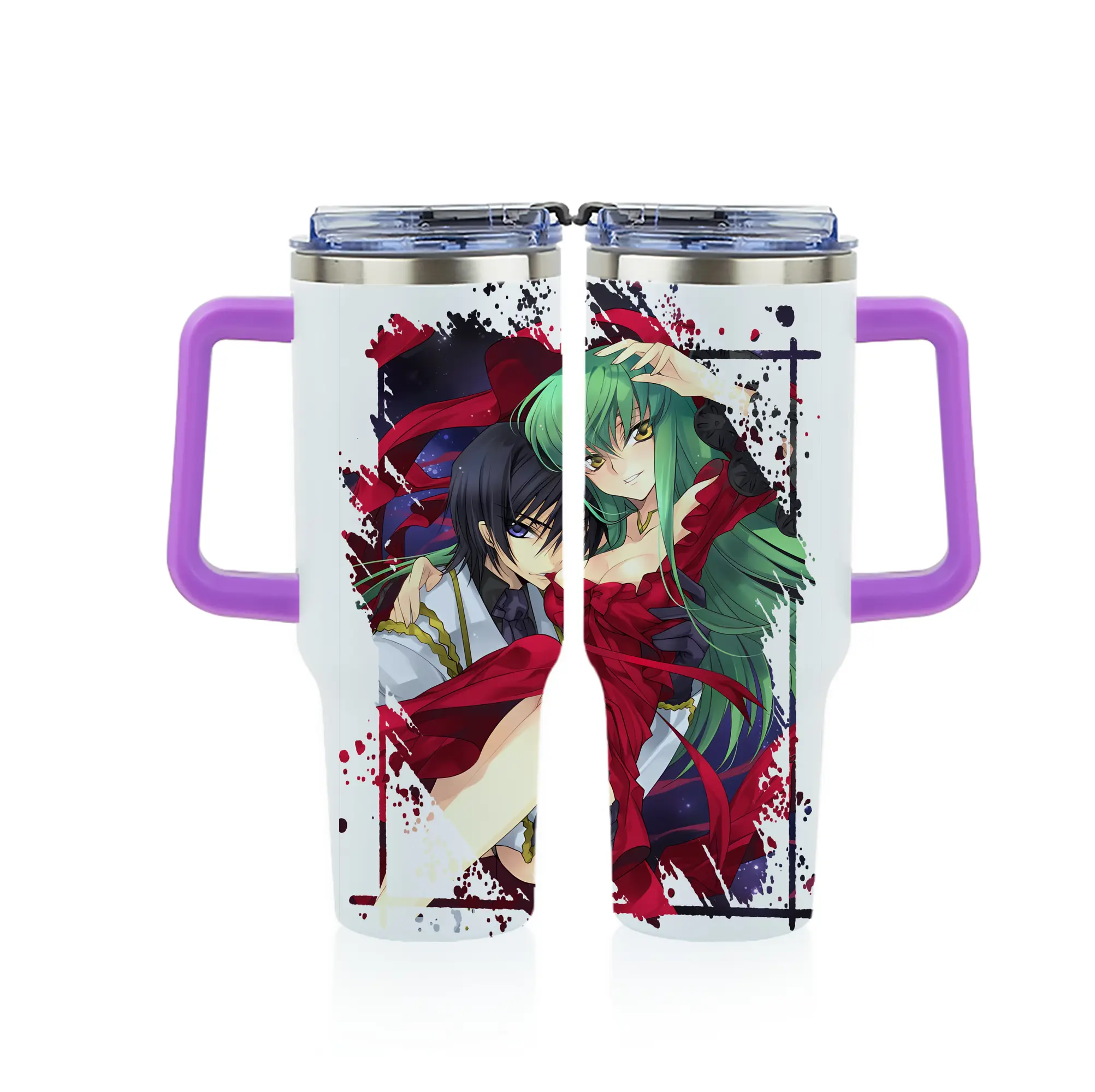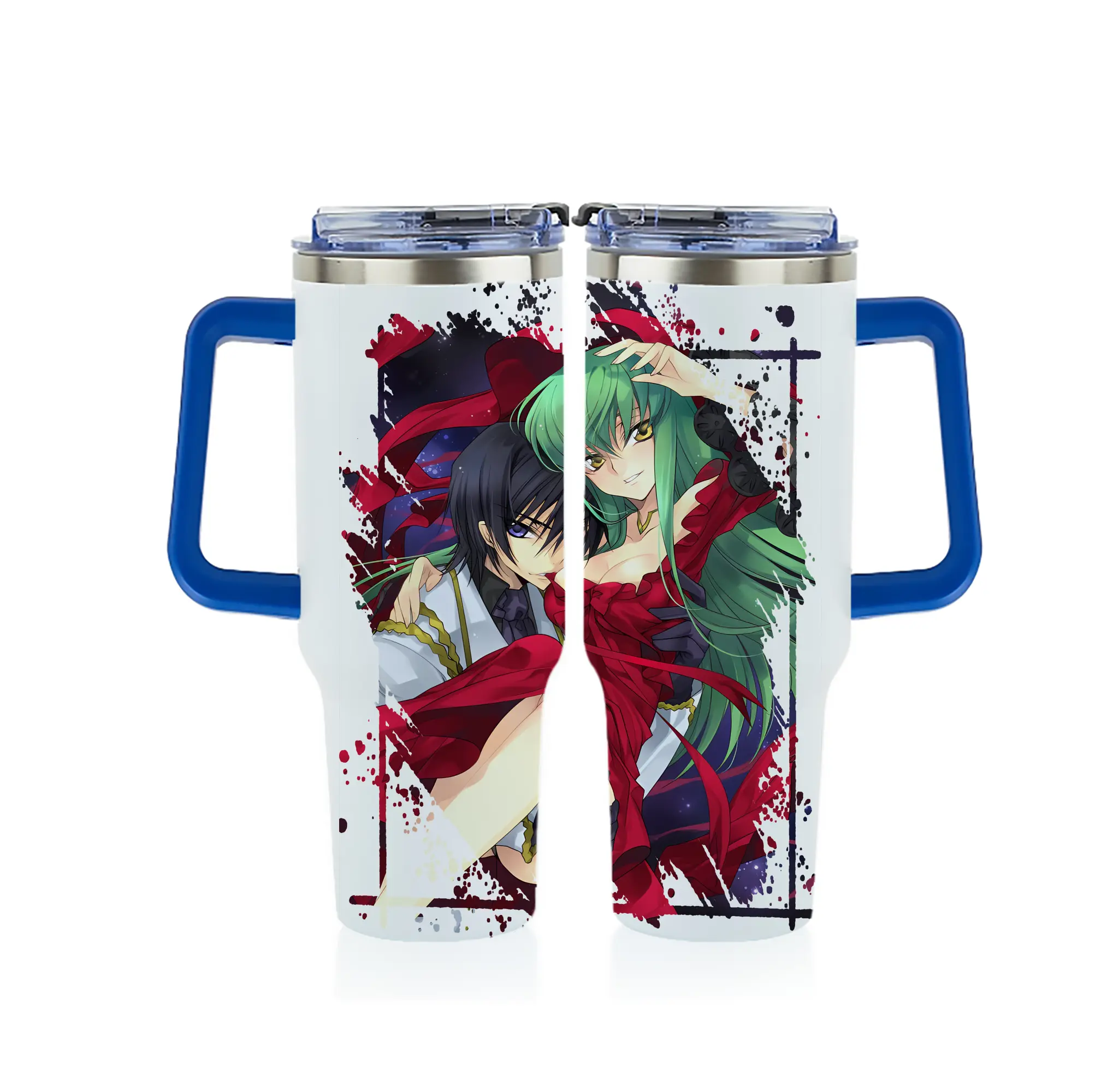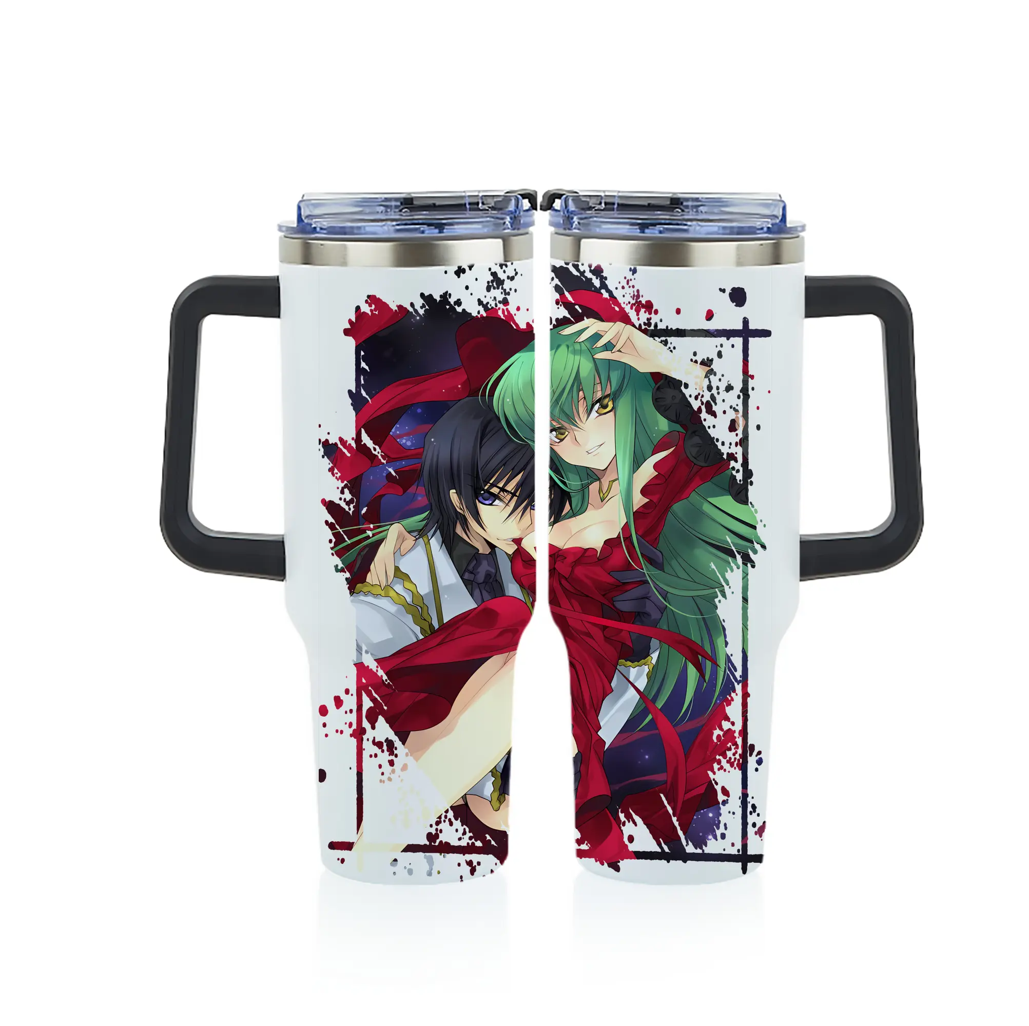 コードギアス 反逆のルルーシュ グッズ シーツー - 1200mL フルプリント車用タンブラー ・ 304ステンレス 内側 ・ 201ステンレス 外側 ・ 保温 保冷 ・ 通勤 ドライブ アウトドア用