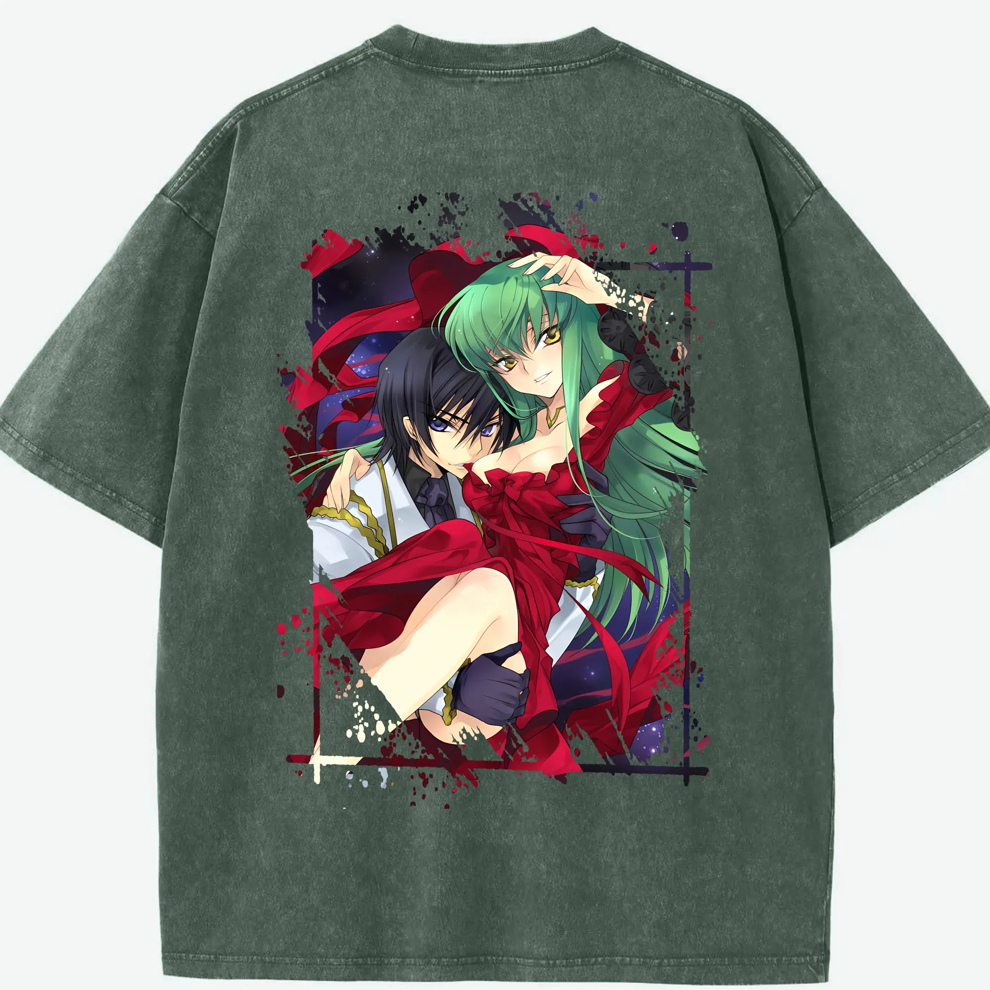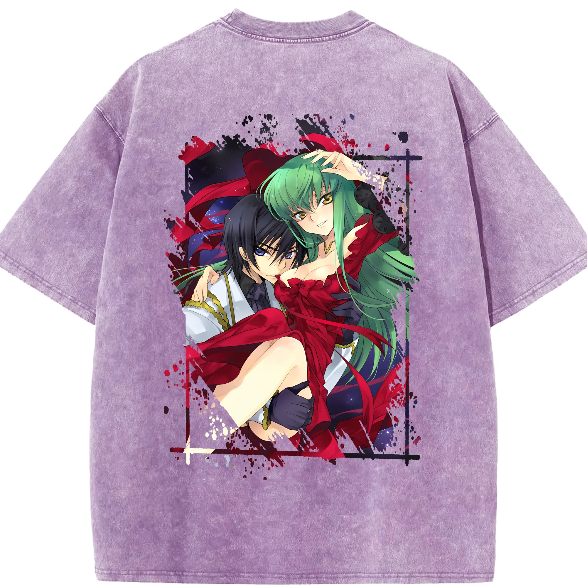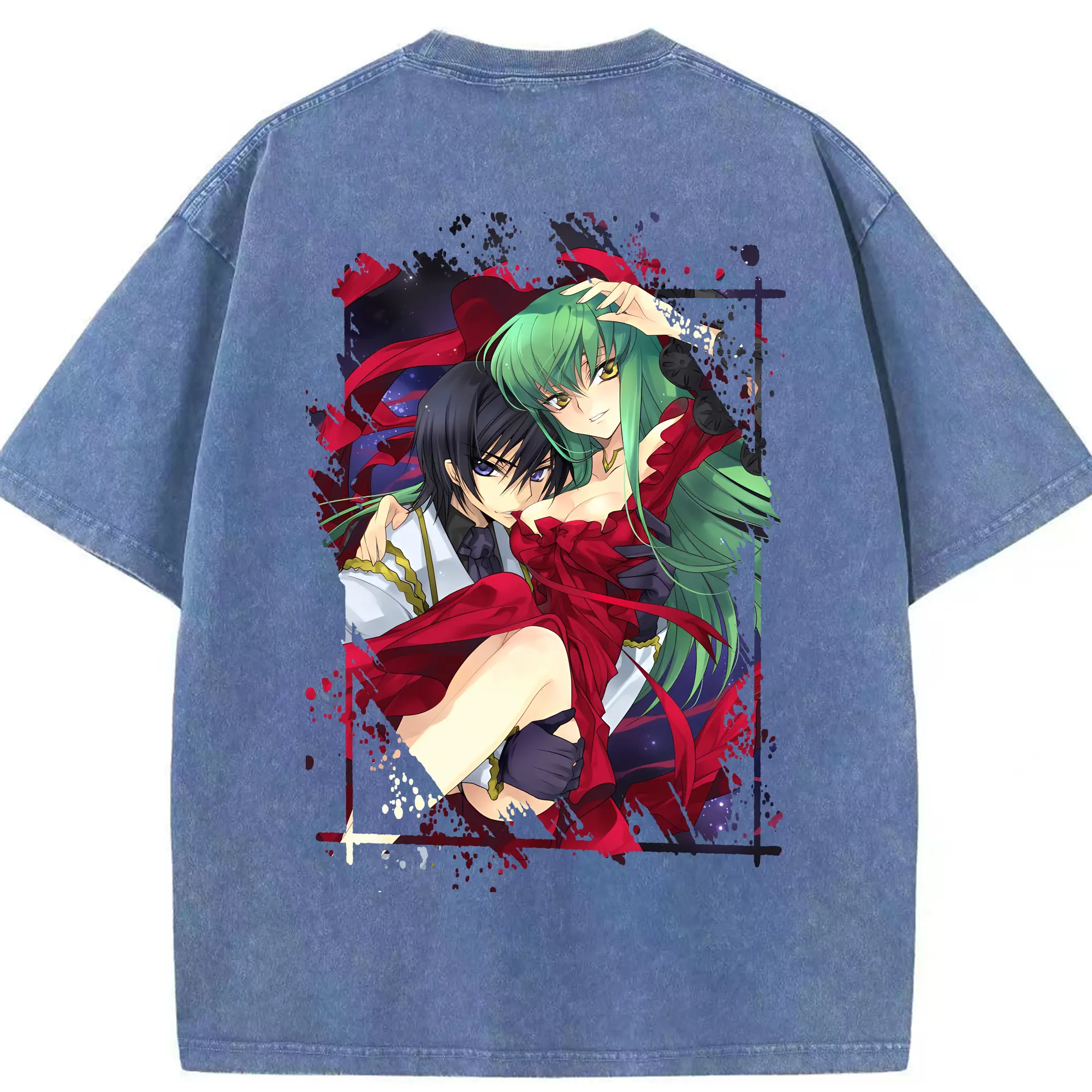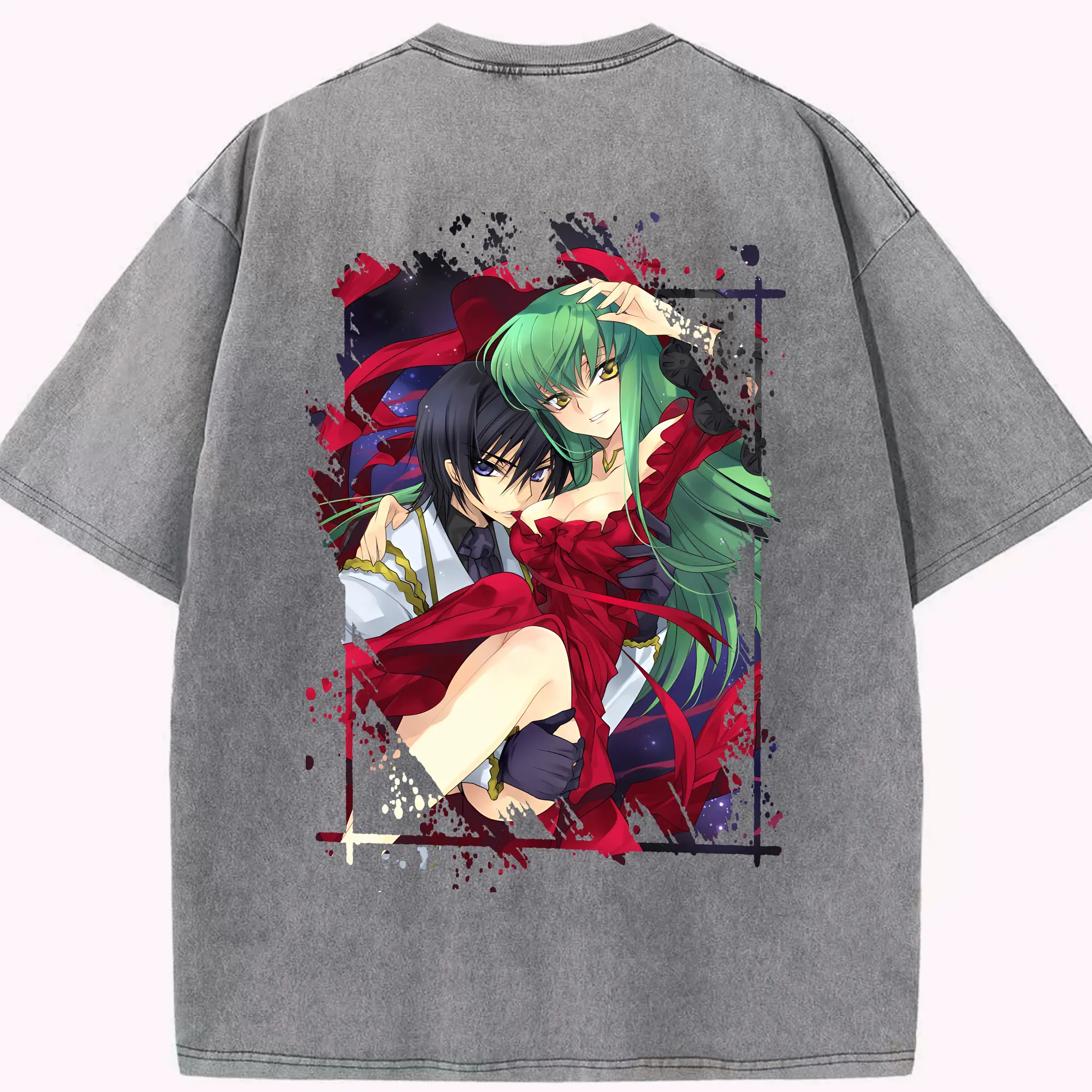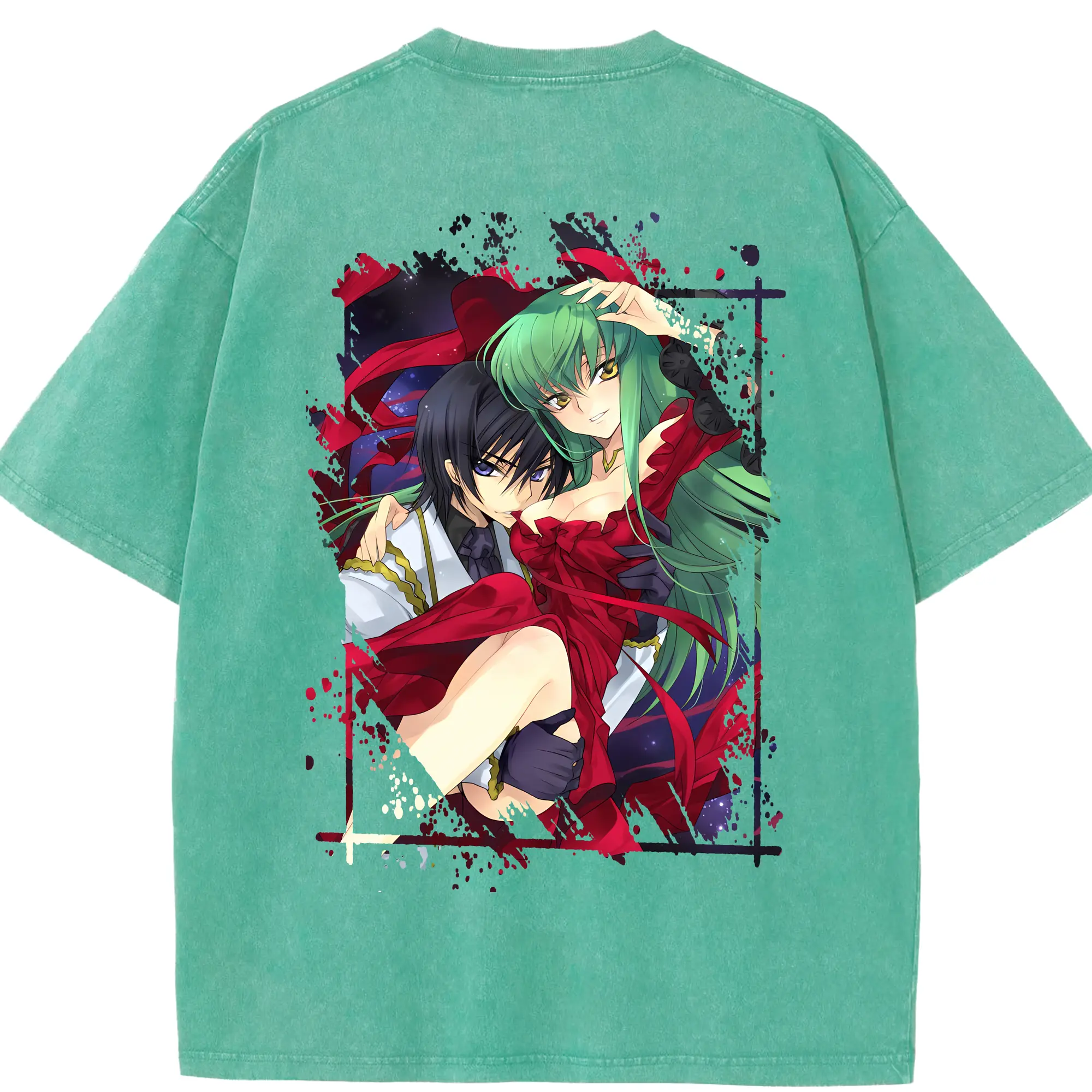 コードギアス 反逆のルルーシュ グッズ シーツー - 綿100% ヴィンテージ風 半袖Tシャツ ・ フロントプリント ・ 柔らか肌触り ・ 通気性 快適 ・ スポーツ カジュアル 外出用