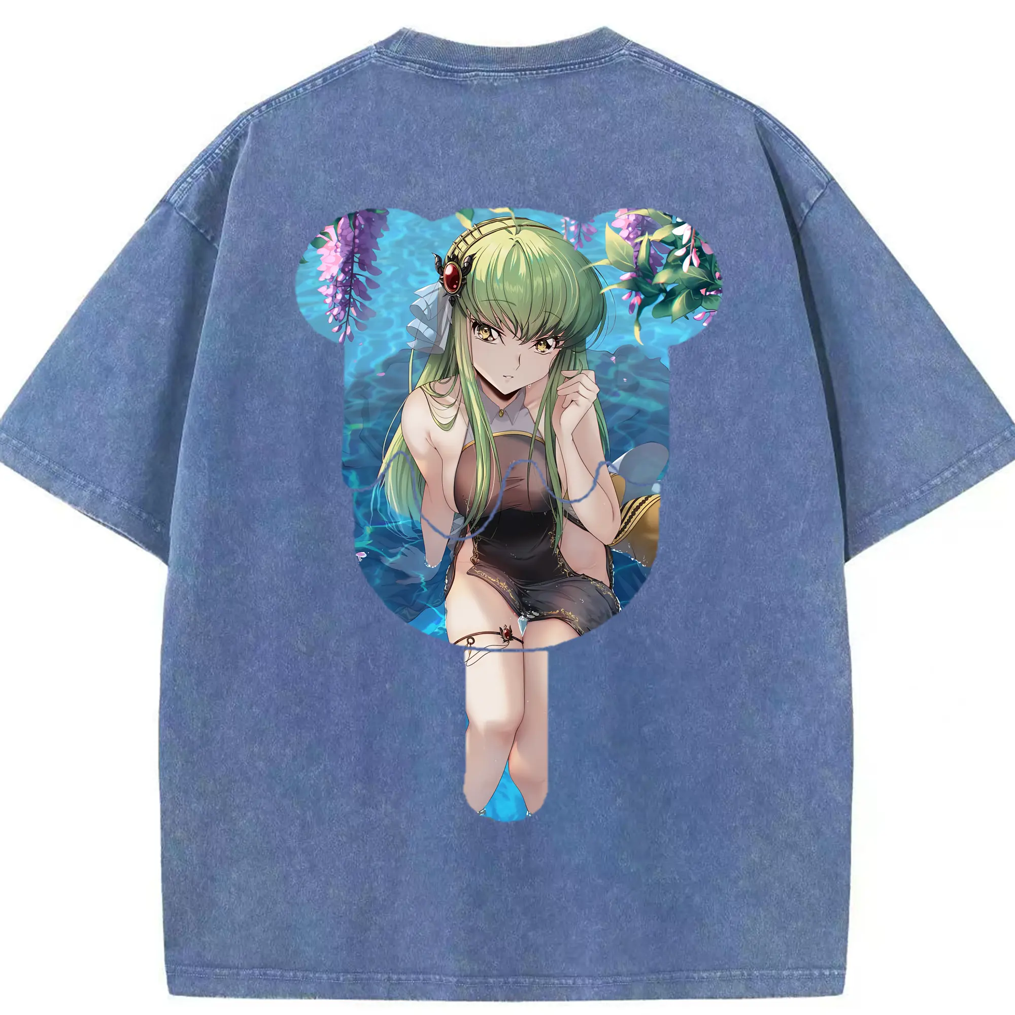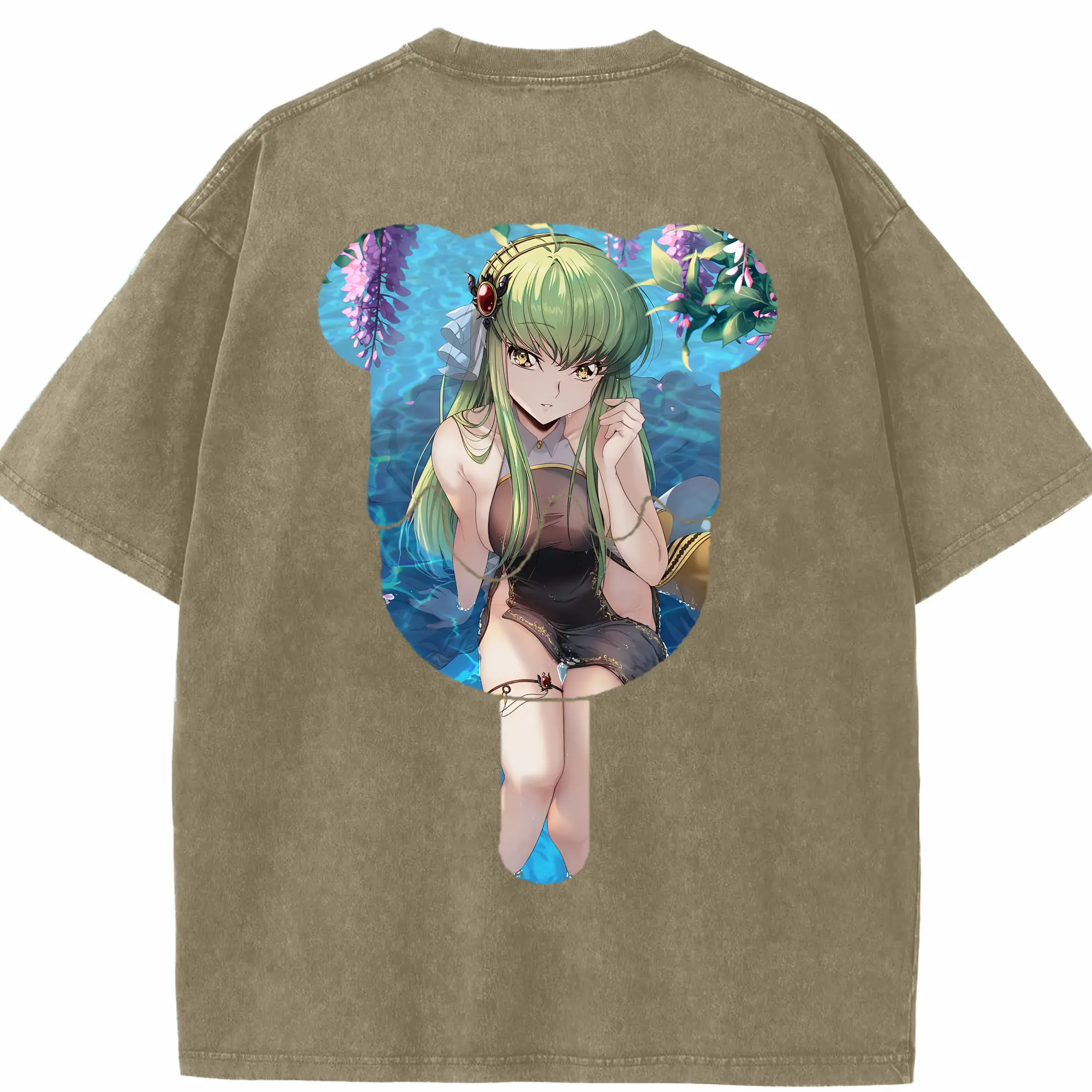 コードギアス 反逆のルルーシュ グッズ シーツー - 綿100% ヴィンテージ風 半袖Tシャツ ・ フロントプリント ・ 柔らか肌触り ・ 通気性 快適 ・ スポーツ カジュアル 外出用