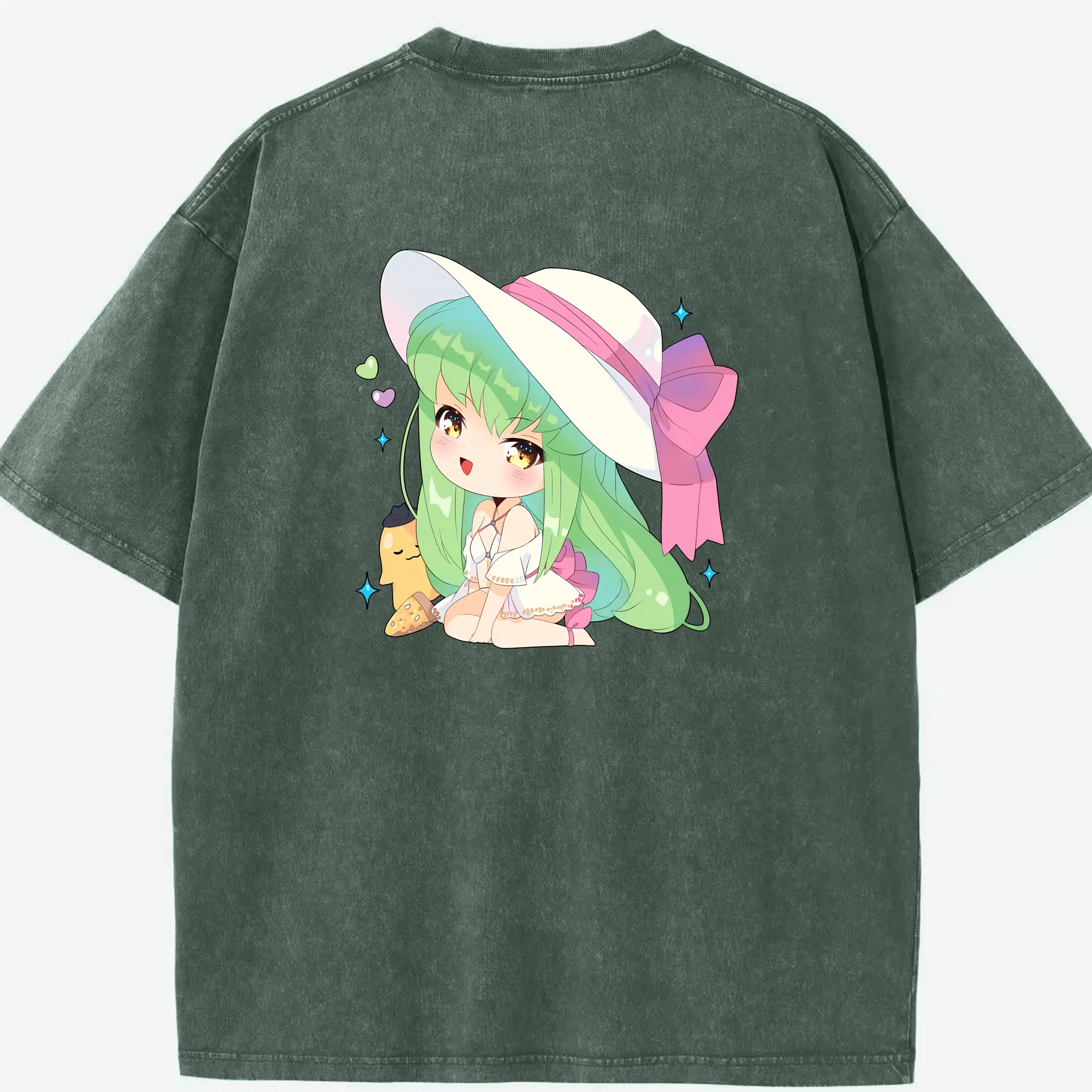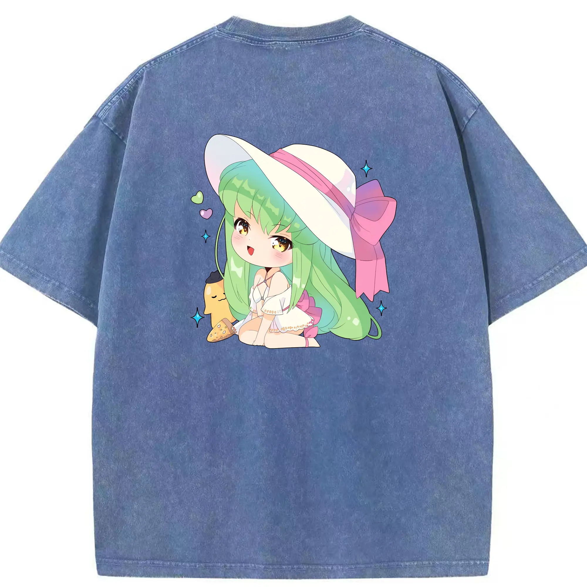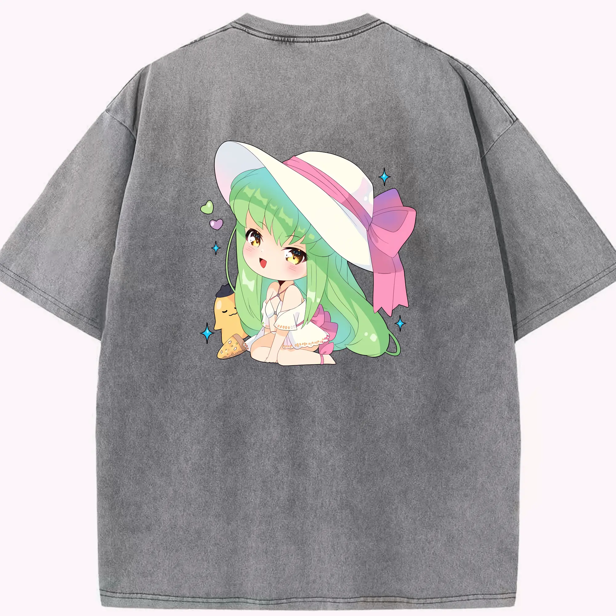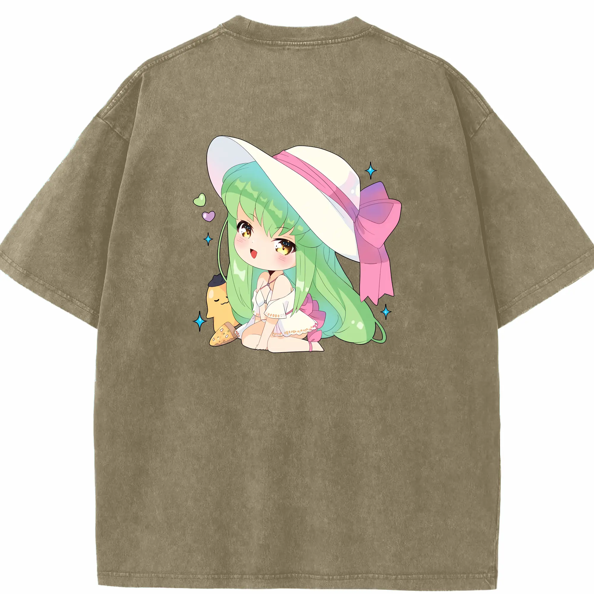鳴潮 グッズ カンタレラ - 綿100% ヴィンテージ風 半袖Tシャツ ・ 背面プリント ・ 柔らか肌触り ・ 通気性 快適 ・ スポーツ カジュアル 外出用