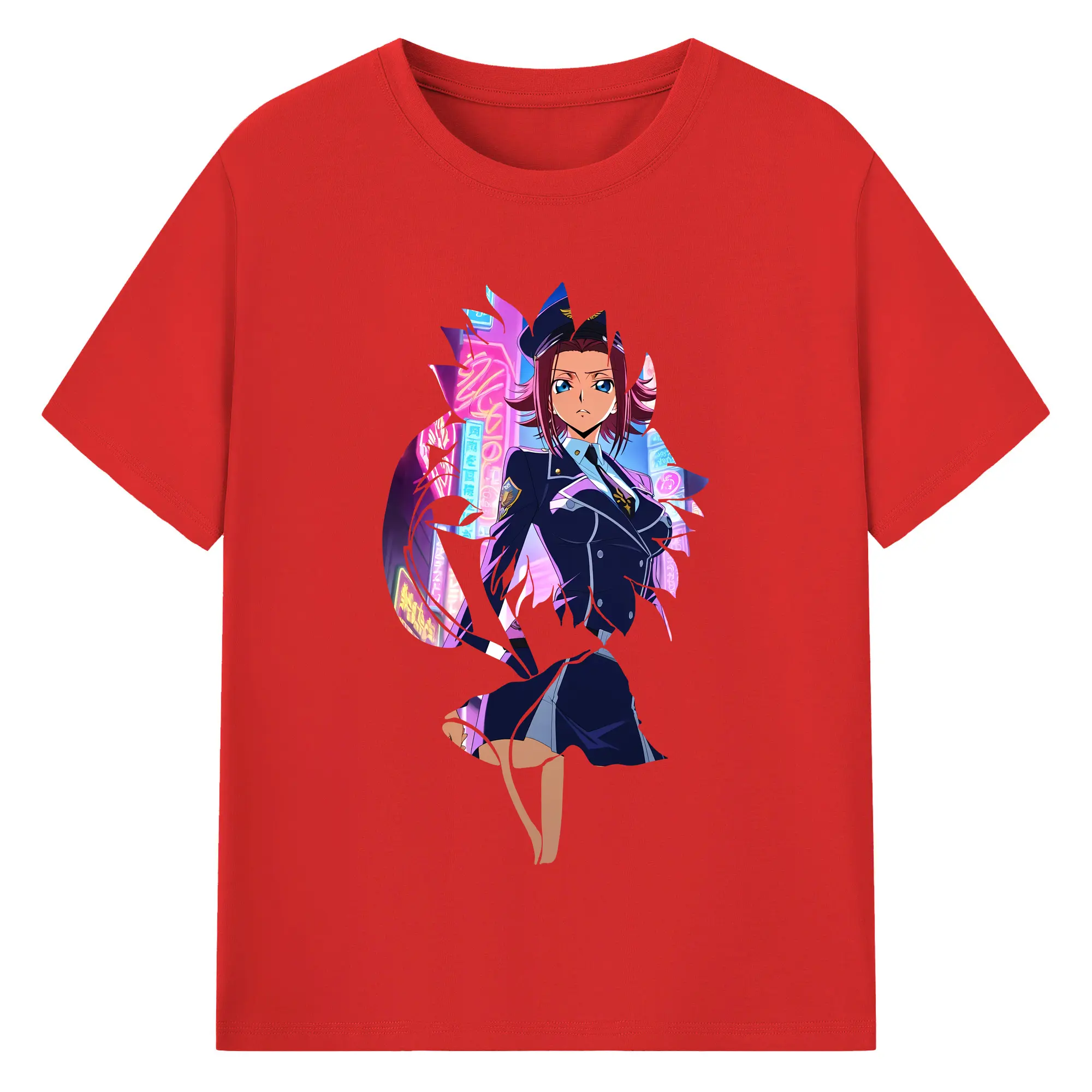 コードギアス 反逆のルルーシュ グッズ カレン・シュタットフェルト - 綿100% ヴィンテージ風 半袖Tシャツ ・ フロントプリント ・ 柔らか肌触り ・ 通気性 快適 ・ スポーツ カジュアル 外出用