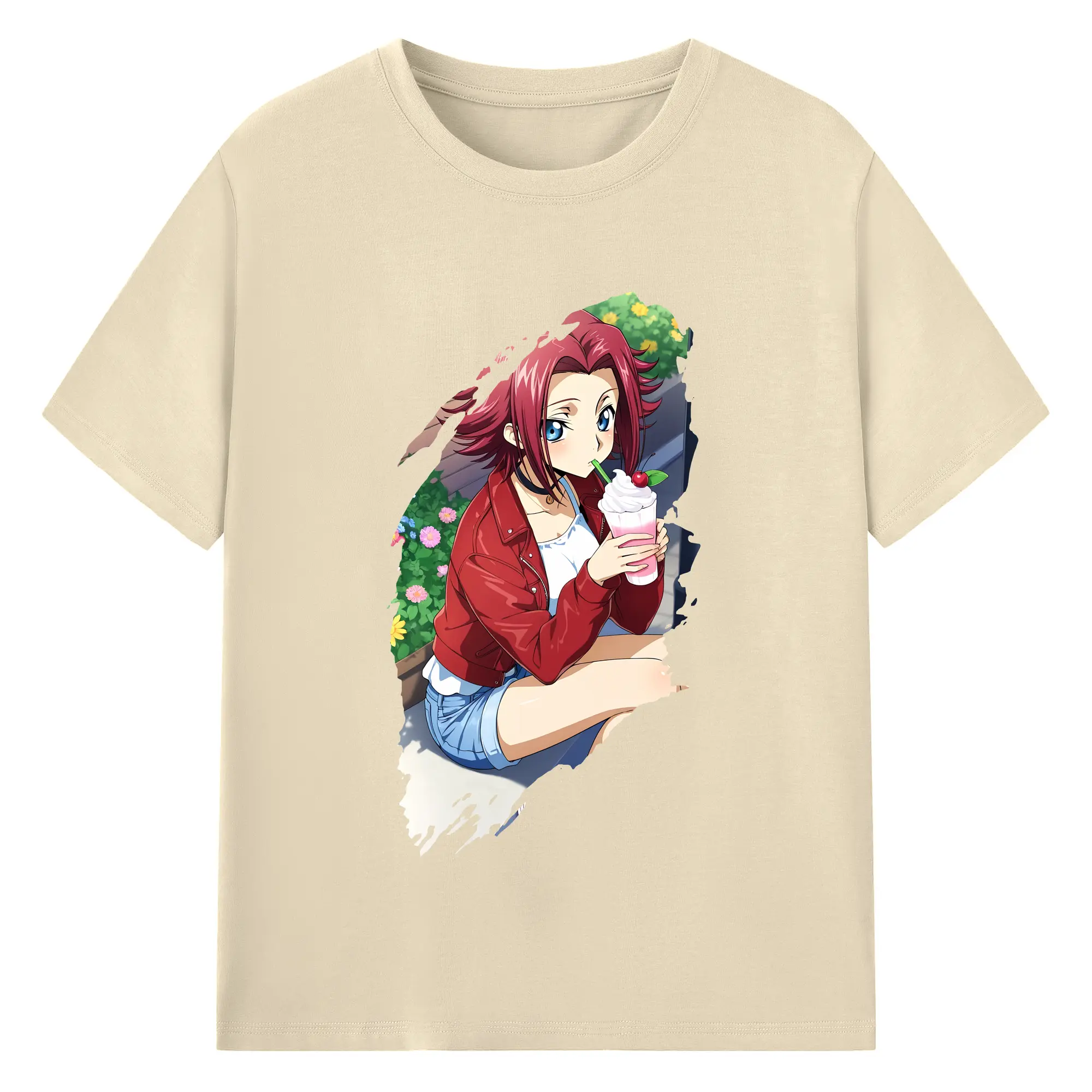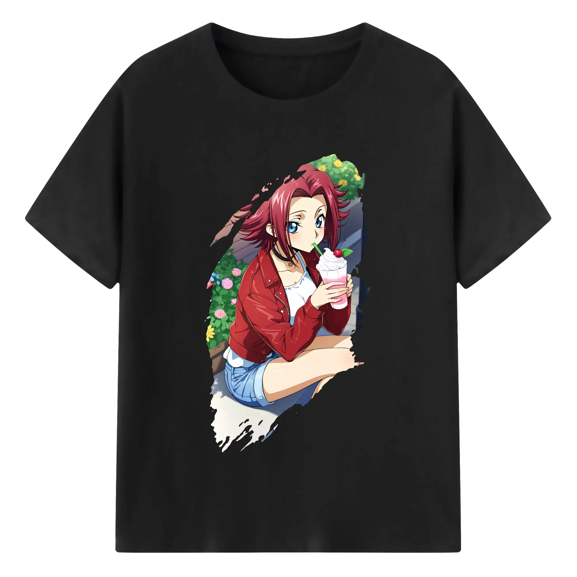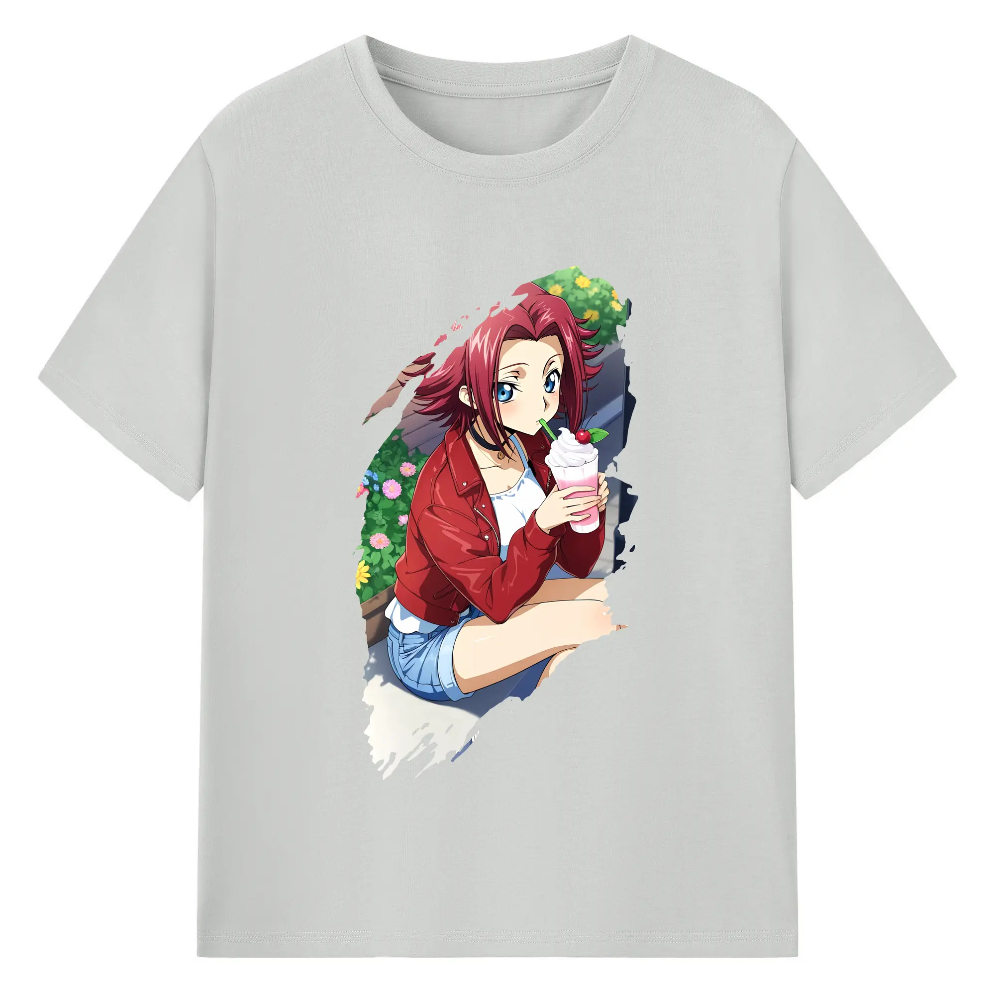 コードギアス 反逆のルルーシュ グッズ カレン・シュタットフェルト - 綿100% ヴィンテージ風 半袖Tシャツ ・ フロントプリント ・ 柔らか肌触り ・ 通気性 快適 ・ スポーツ カジュアル 外出用