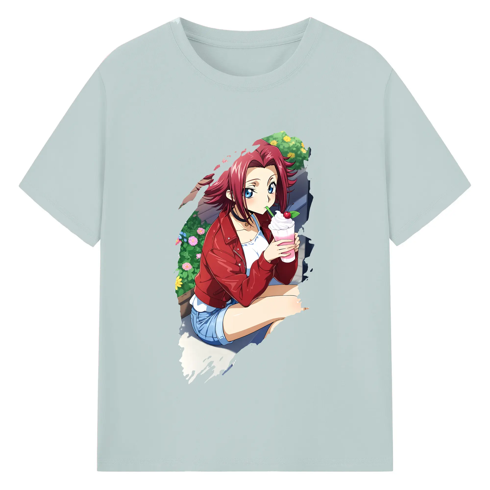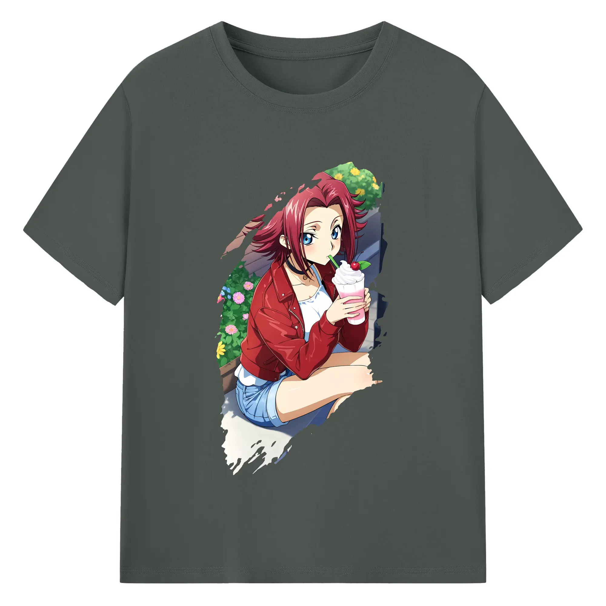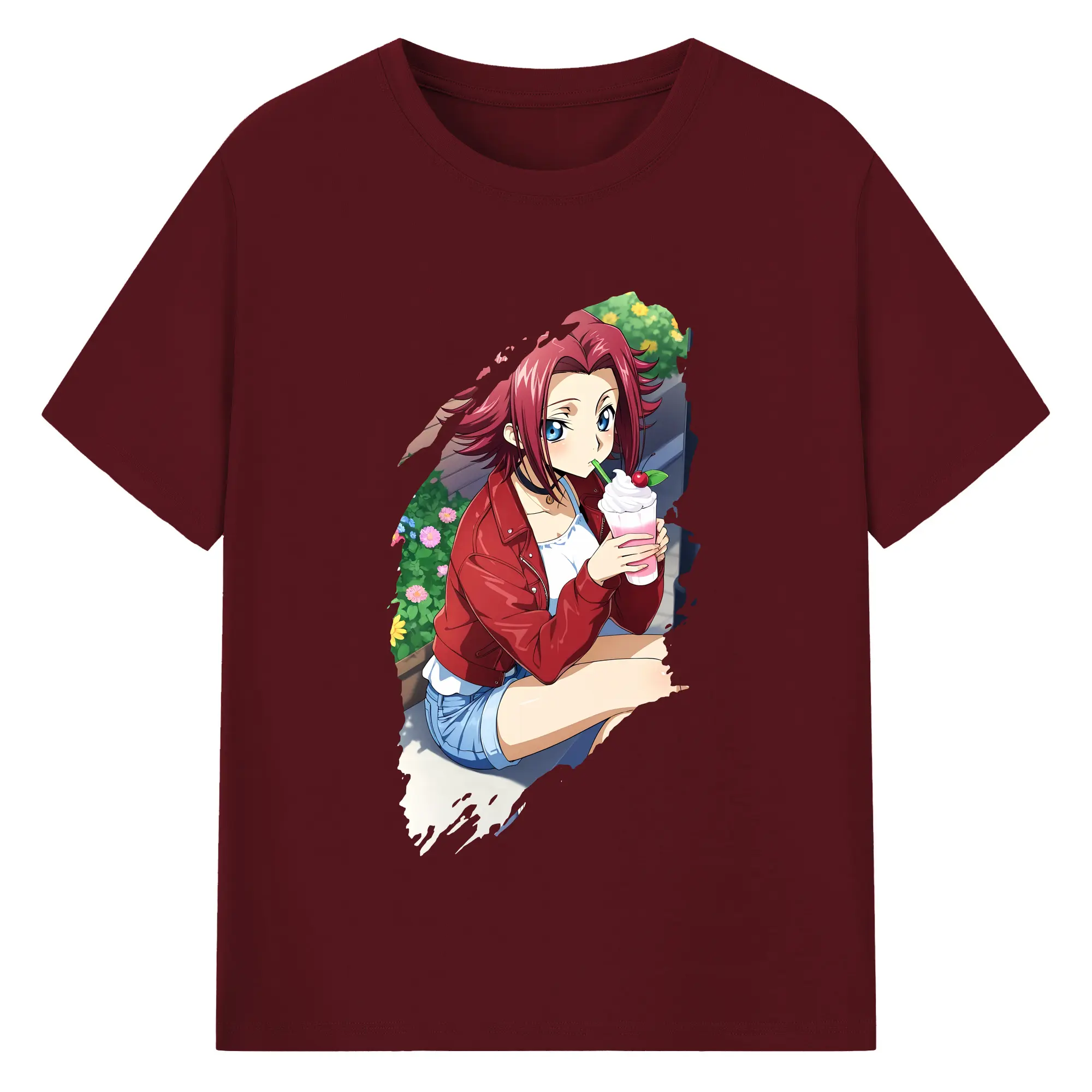 コードギアス 反逆のルルーシュ グッズ カレン・シュタットフェルト - 綿100% ヴィンテージ風 半袖Tシャツ ・ フロントプリント ・ 柔らか肌触り ・ 通気性 快適 ・ スポーツ カジュアル 外出用