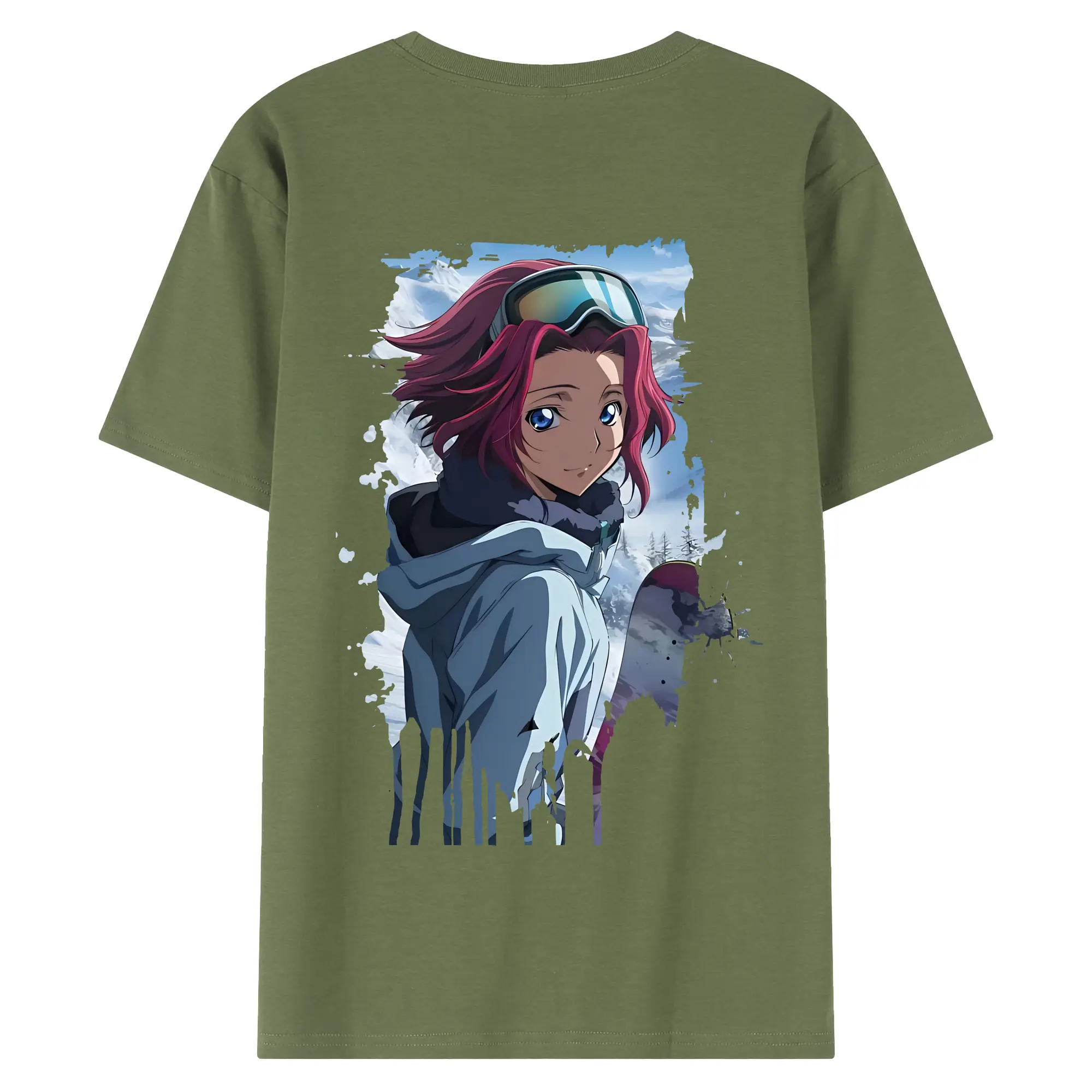 コードギアス 反逆のルルーシュ グッズ カレン・シュタットフェルト - 綿100% ヴィンテージ風 半袖Tシャツ ・ 背面プリント ・ 柔らか肌触り ・ 通気性 快適 ・ スポーツ カジュアル 外出用