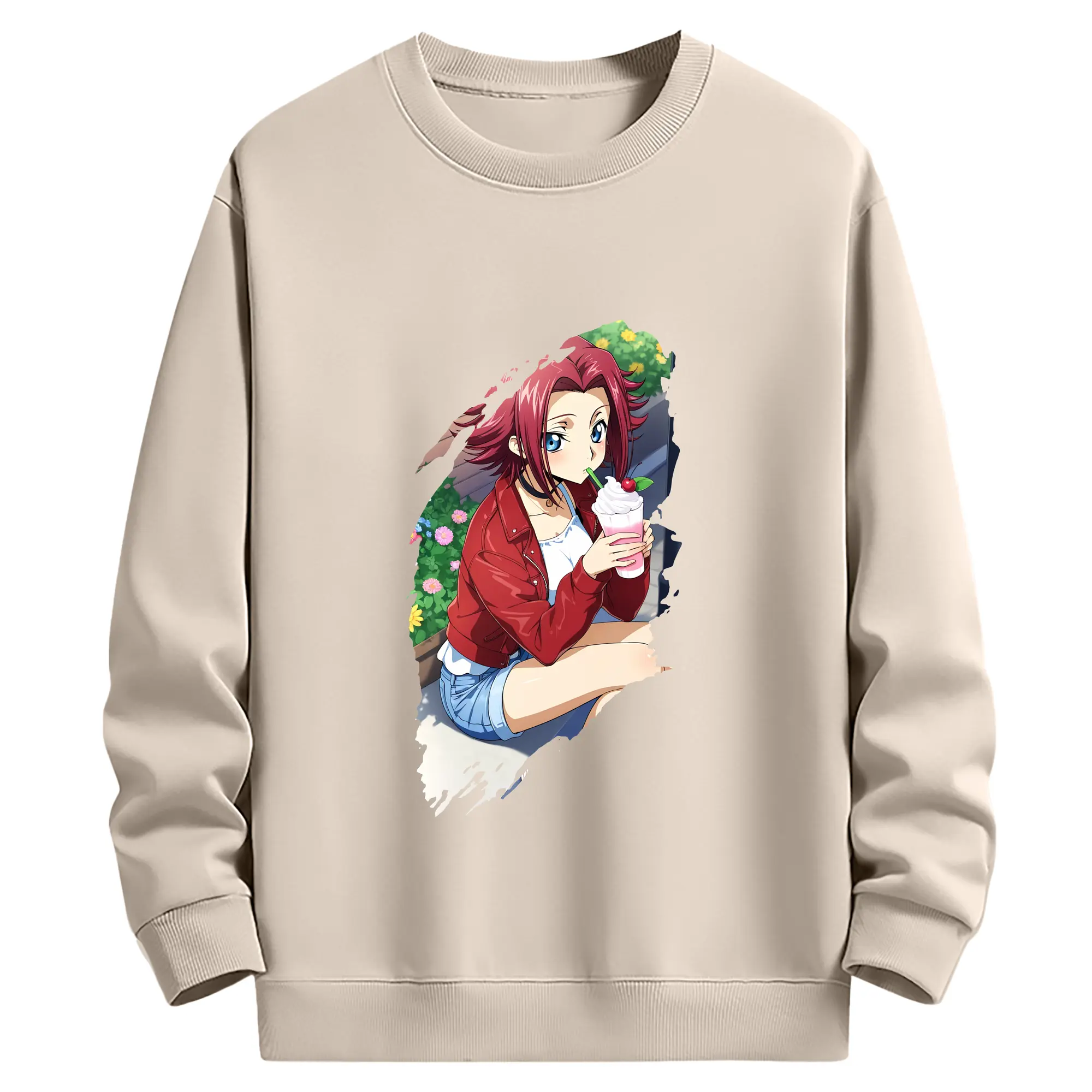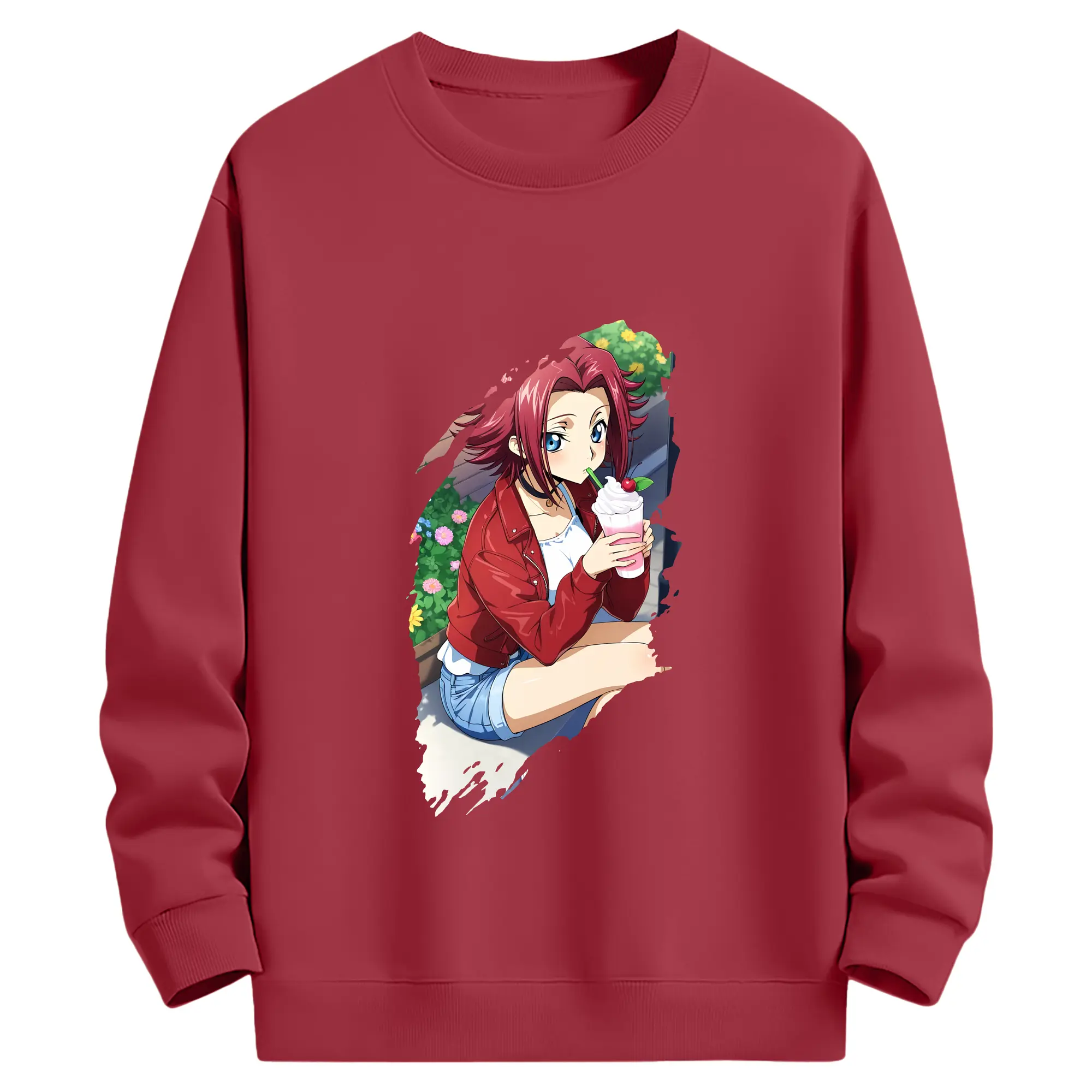 コードギアス 反逆のルルーシュ グッズ カレン・シュタットフェルト - 薄手 クルーネック スウェット 裏毛260g · ポリエステル 春秋向け カジュアル 男女兼用 · トレーナー デイリー スポーツ 散歩に最適