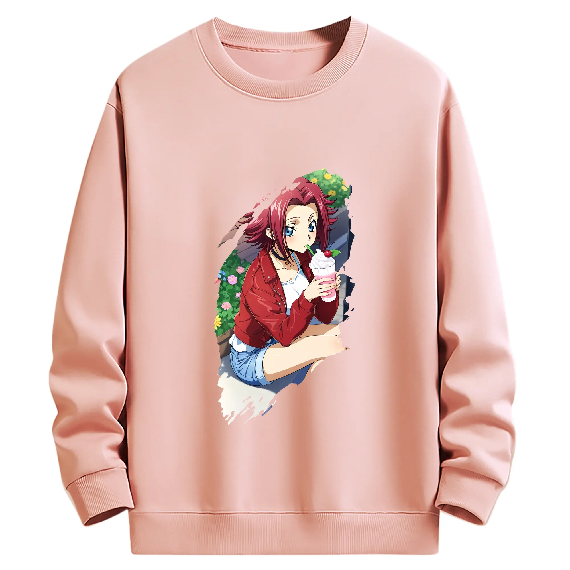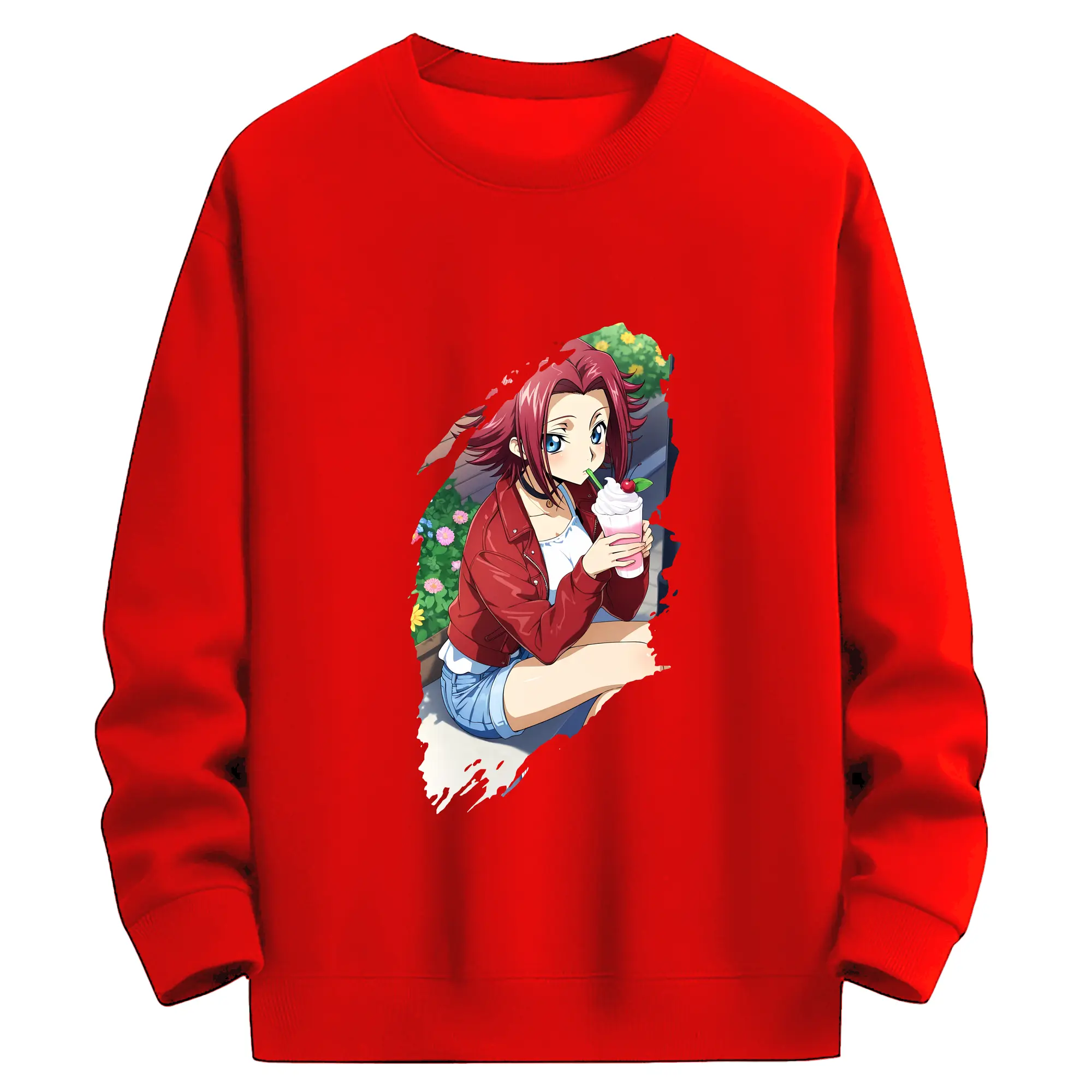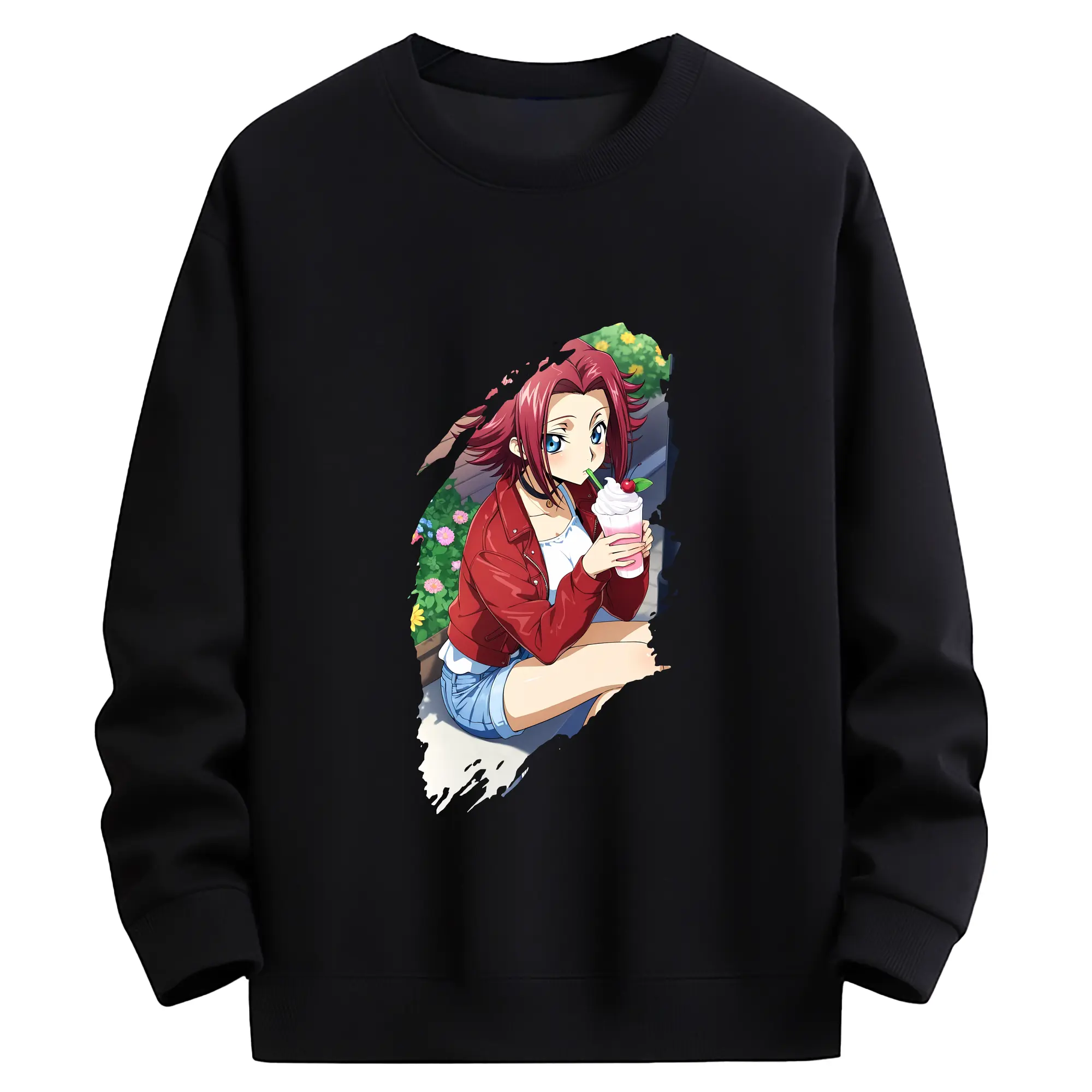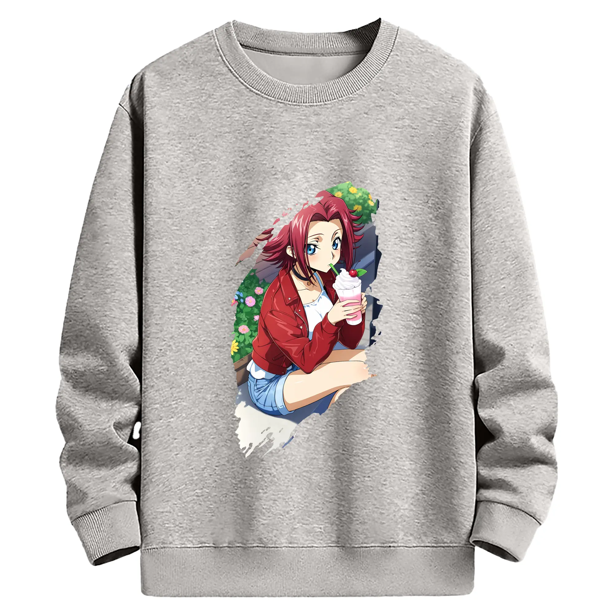 コードギアス 反逆のルルーシュ グッズ カレン・シュタットフェルト - 薄手 クルーネック スウェット 裏毛260g · ポリエステル 春秋向け カジュアル 男女兼用 · トレーナー デイリー スポーツ 散歩に最適