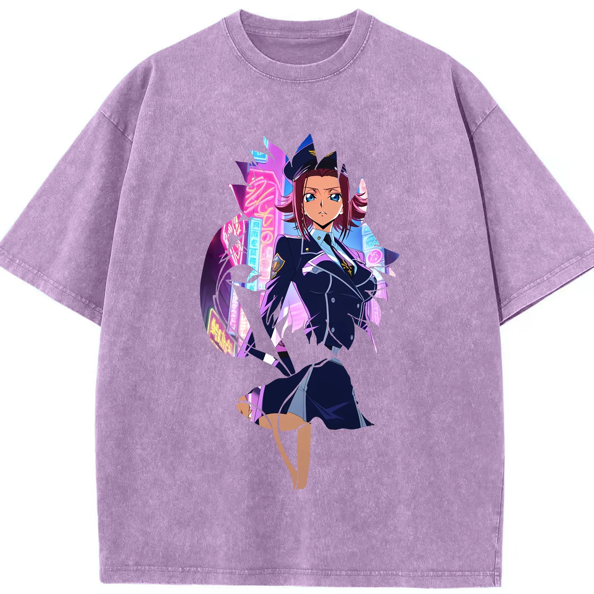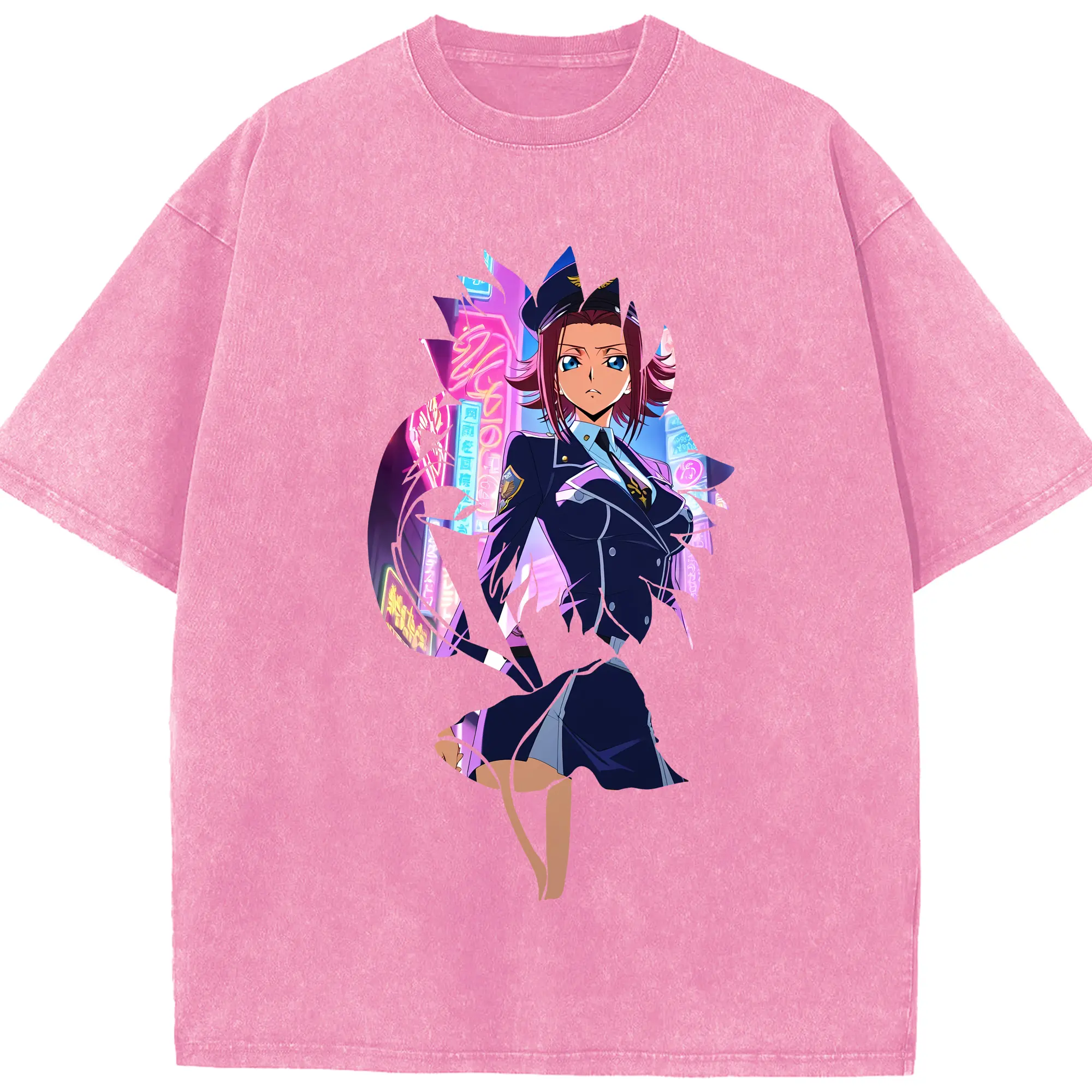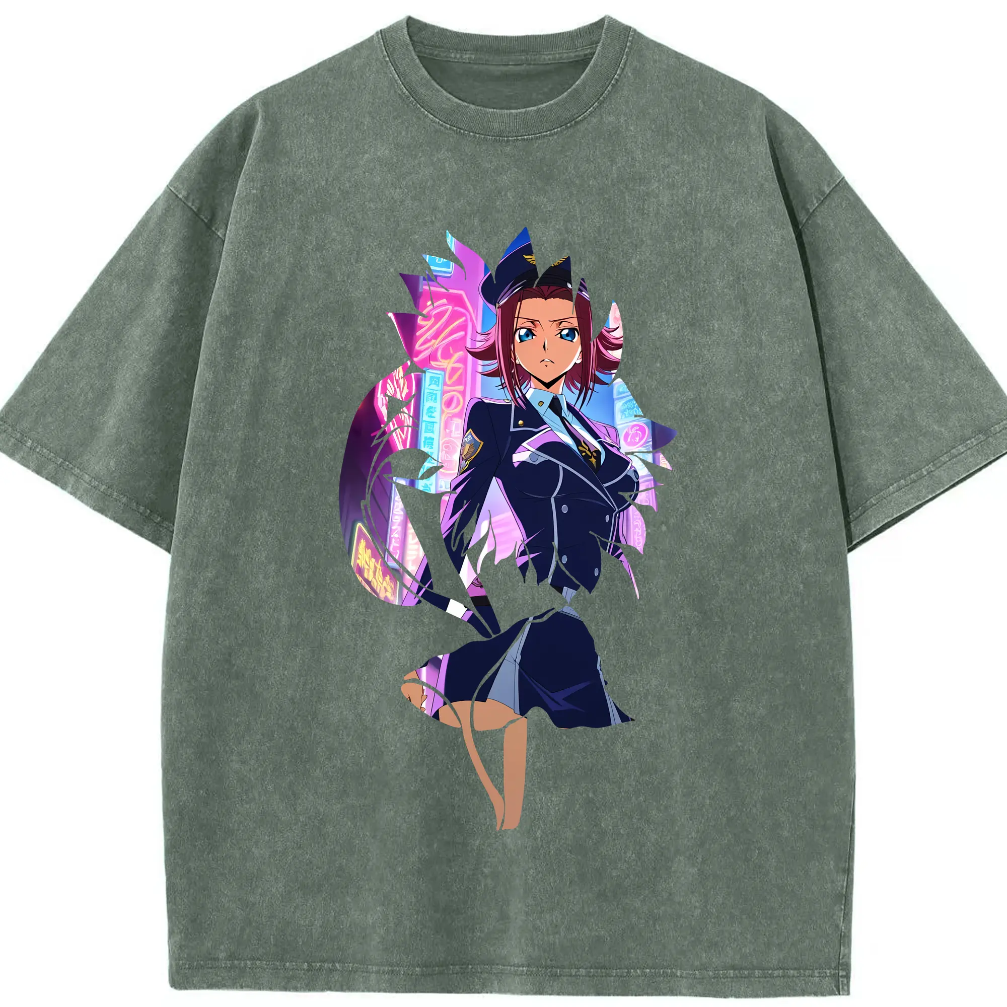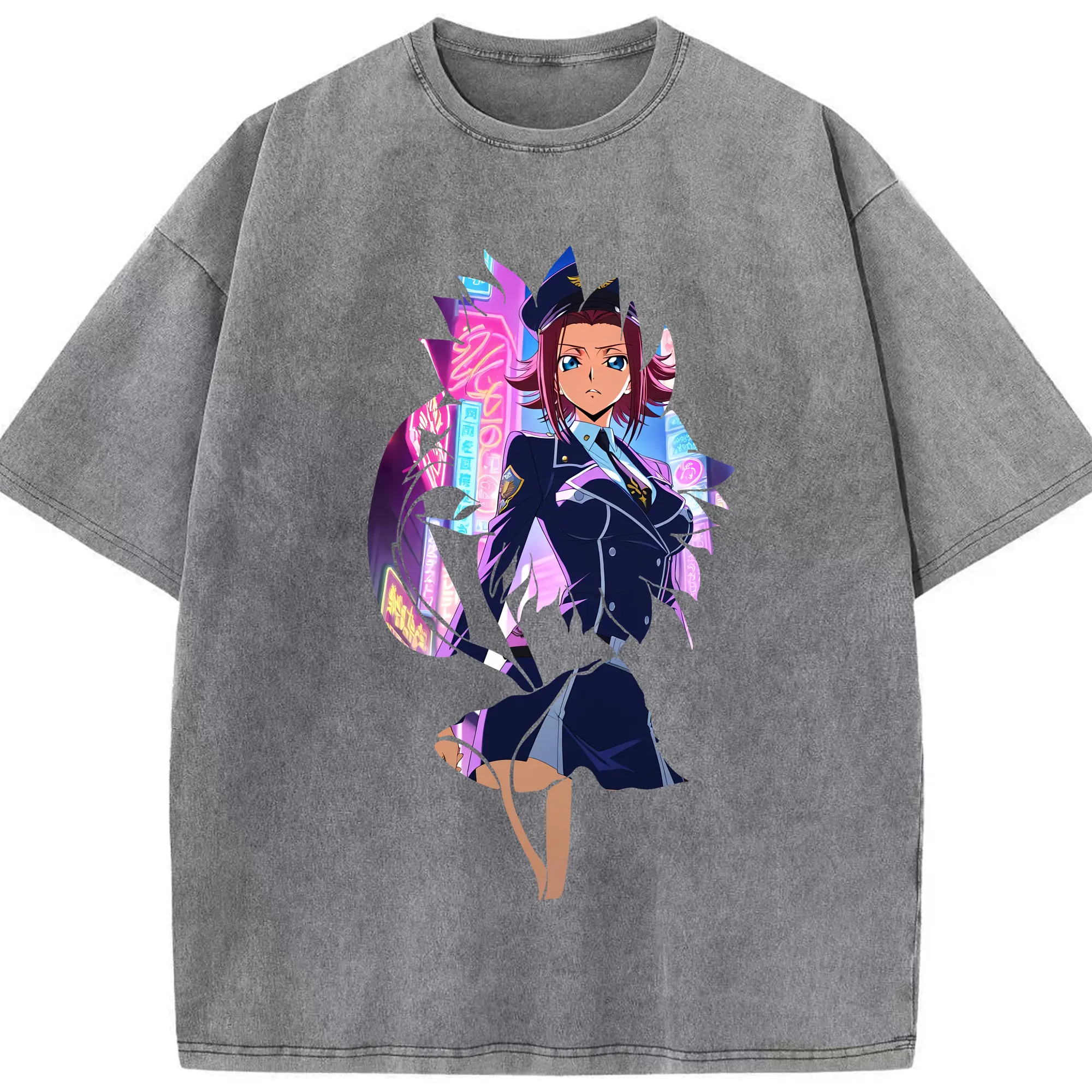 コードギアス 反逆のルルーシュ グッズ カレン・シュタットフェルト - 綿100% ヴィンテージ風 半袖Tシャツ ・ 背面プリント ・ 柔らか肌触り ・ 通気性 快適 ・ スポーツ カジュアル 外出用