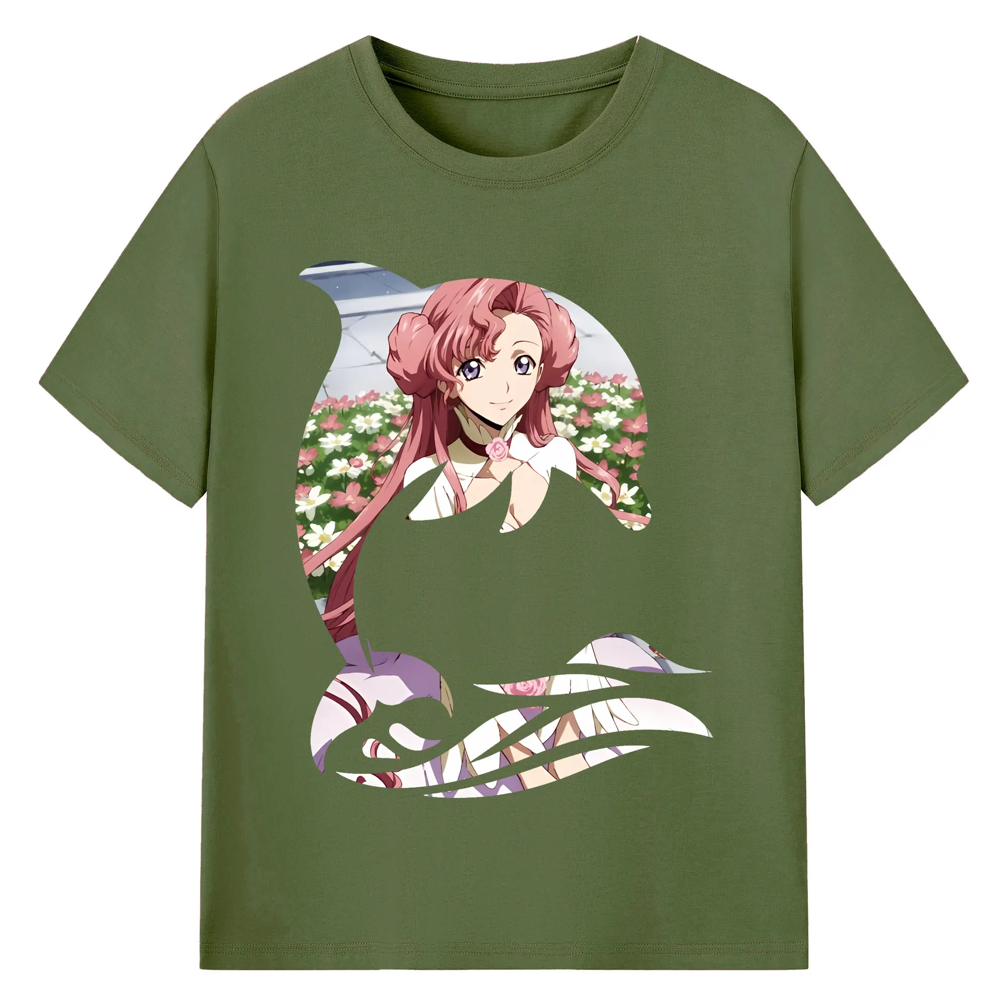 コードギアス 反逆のルルーシュ グッズ ユーフェミア・リ・ブリタニア - 綿100% ヴィンテージ風 半袖Tシャツ ・ フロントプリント ・ 柔らか肌触り ・ 通気性 快適 ・ スポーツ カジュアル 外出用
