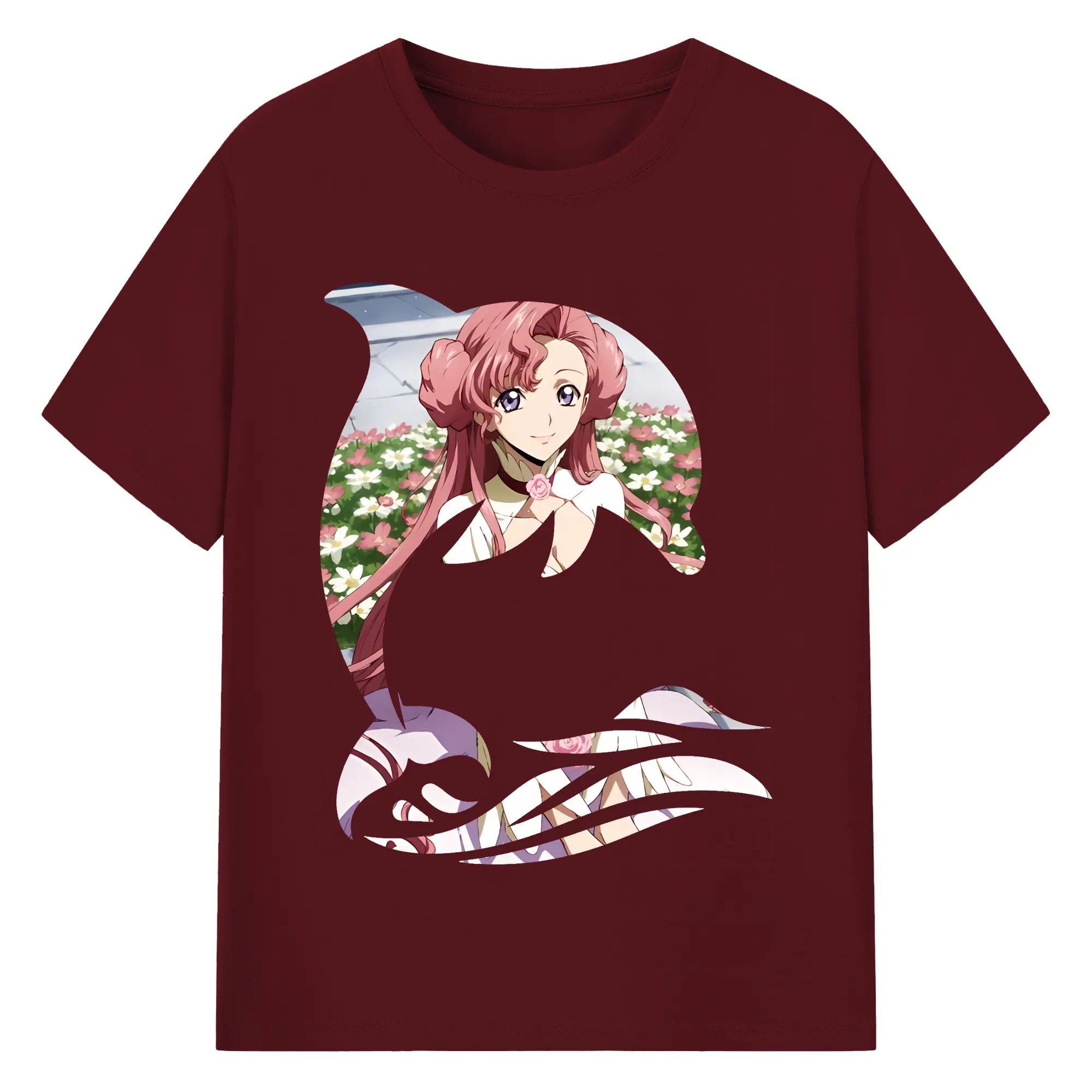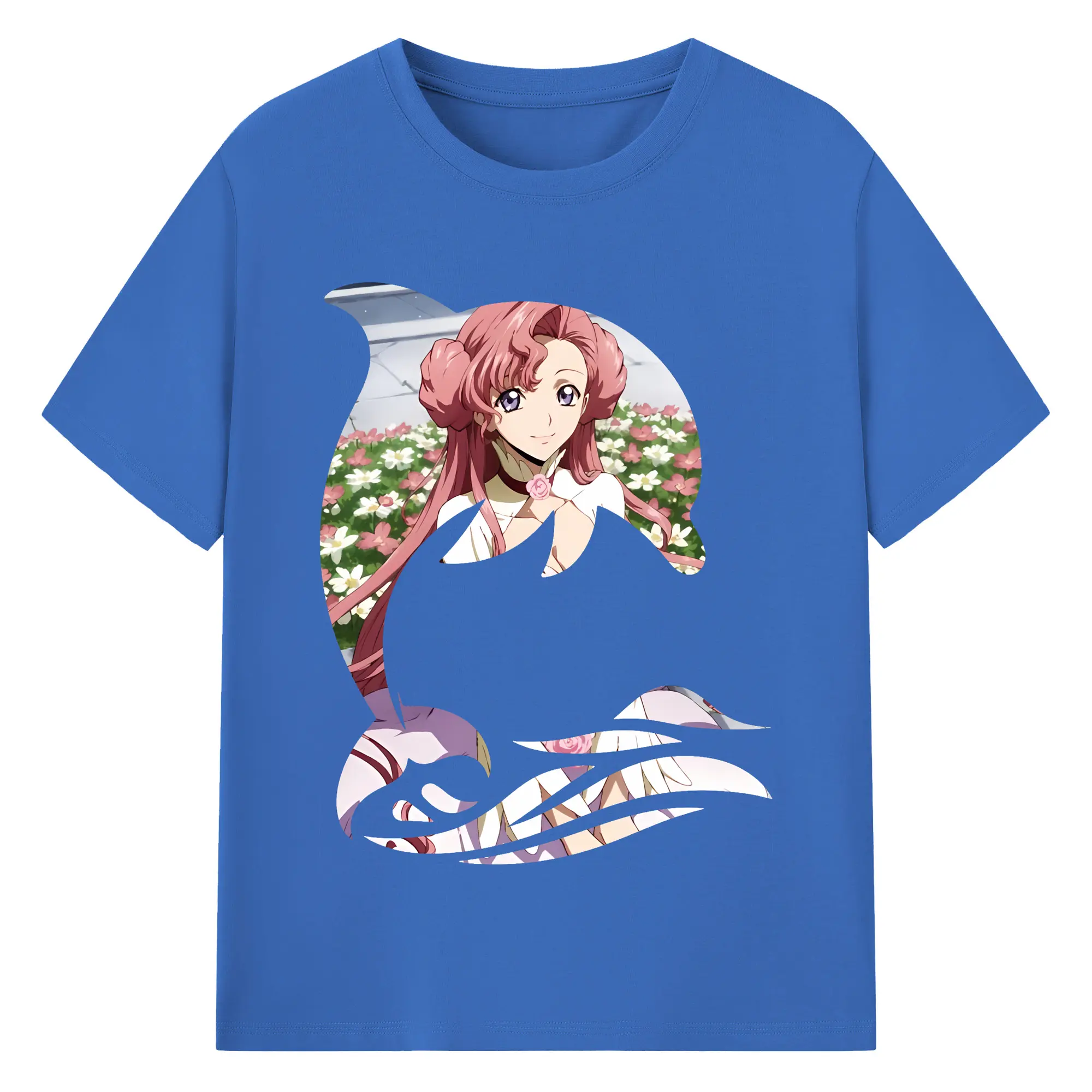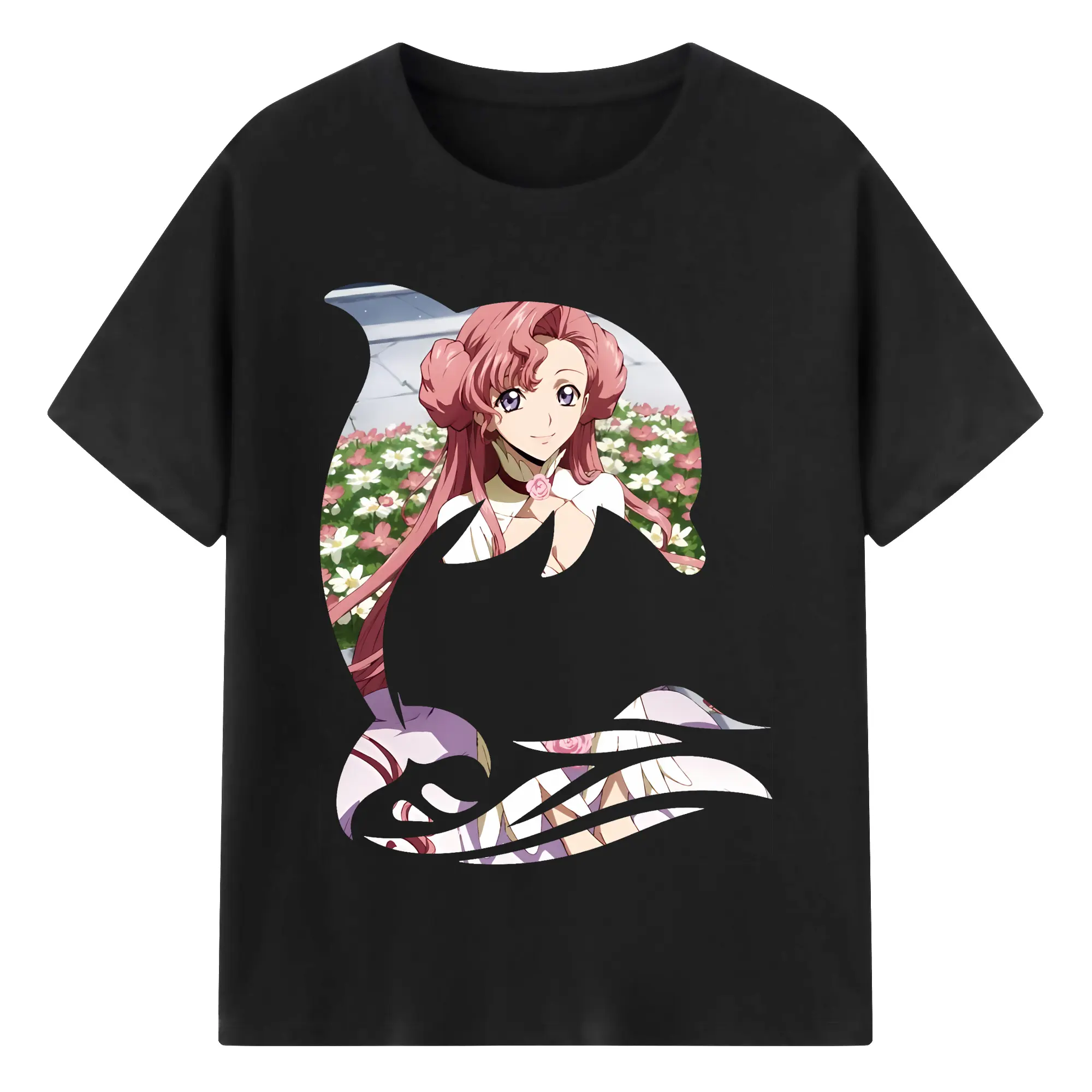 コードギアス 反逆のルルーシュ グッズ ユーフェミア・リ・ブリタニア - 綿100% 半袖Tシャツ ・ バックプリント ・ 快適 通気性 ・ 日常使い 散歩 スポーツ用
