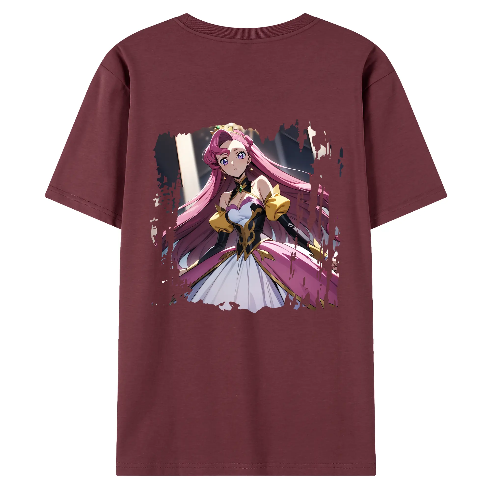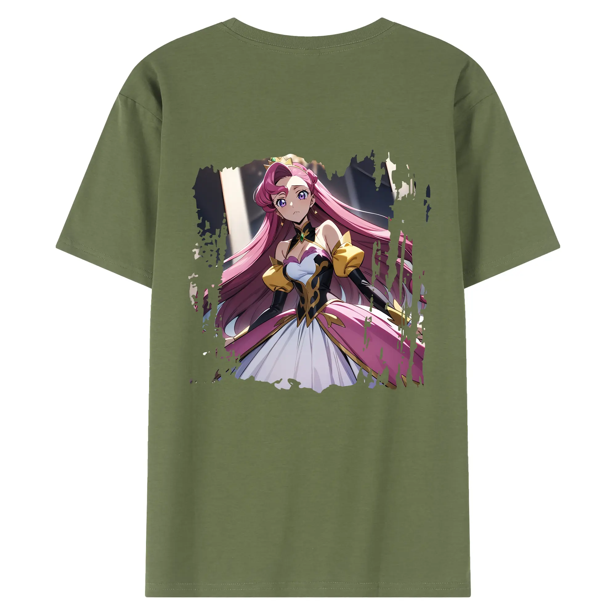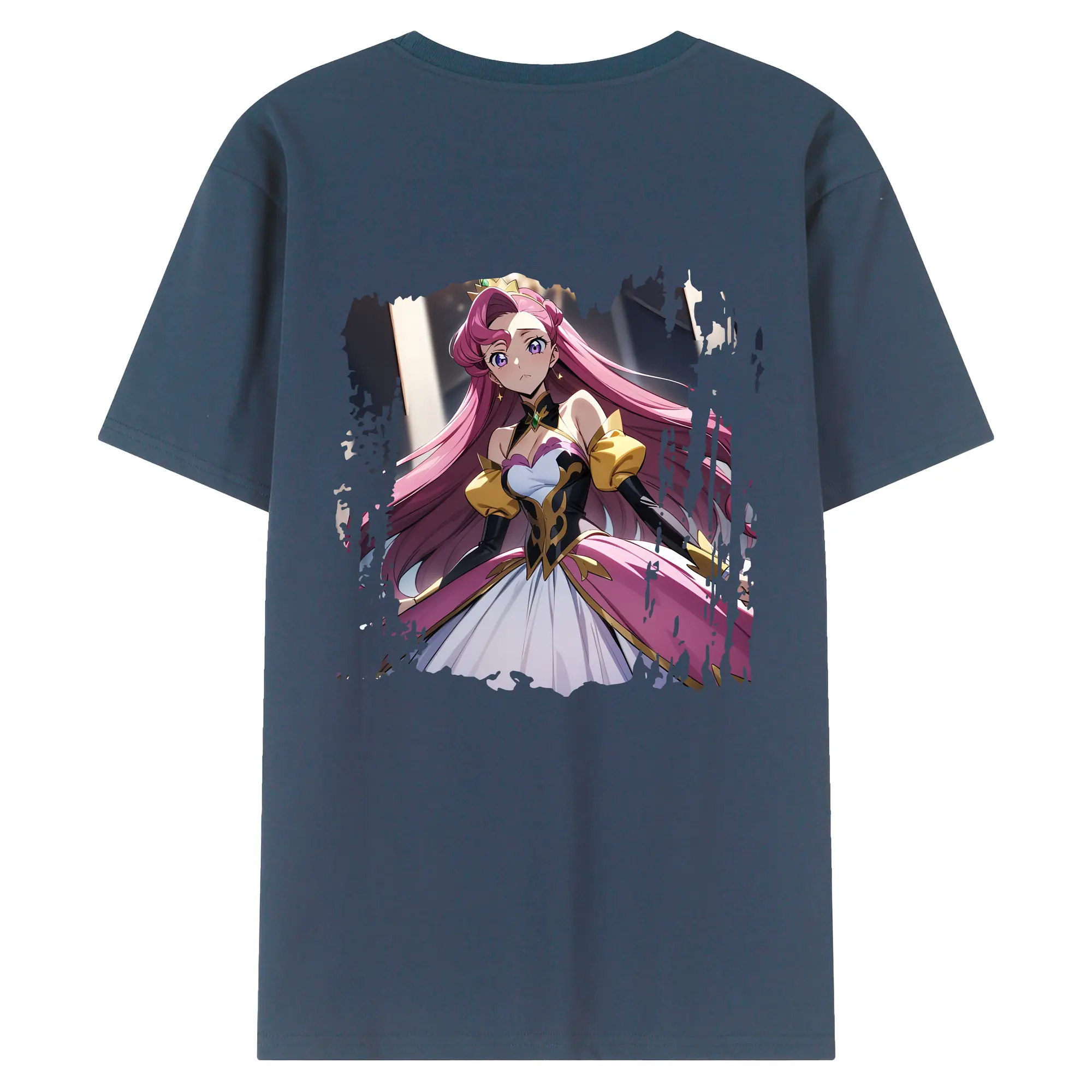 コードギアス 反逆のルルーシュ グッズ ユーフェミア・リ・ブリタニア - 綿100% ヴィンテージ風 半袖Tシャツ ・ 背面プリント ・ 柔らか肌触り ・ 通気性 快適 ・ スポーツ カジュアル 外出用