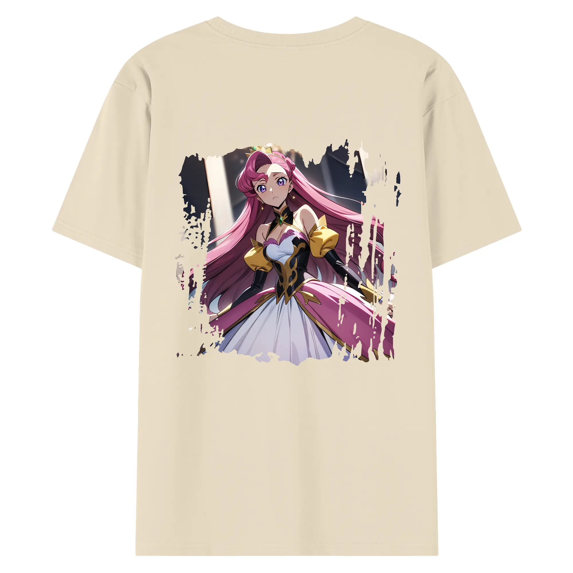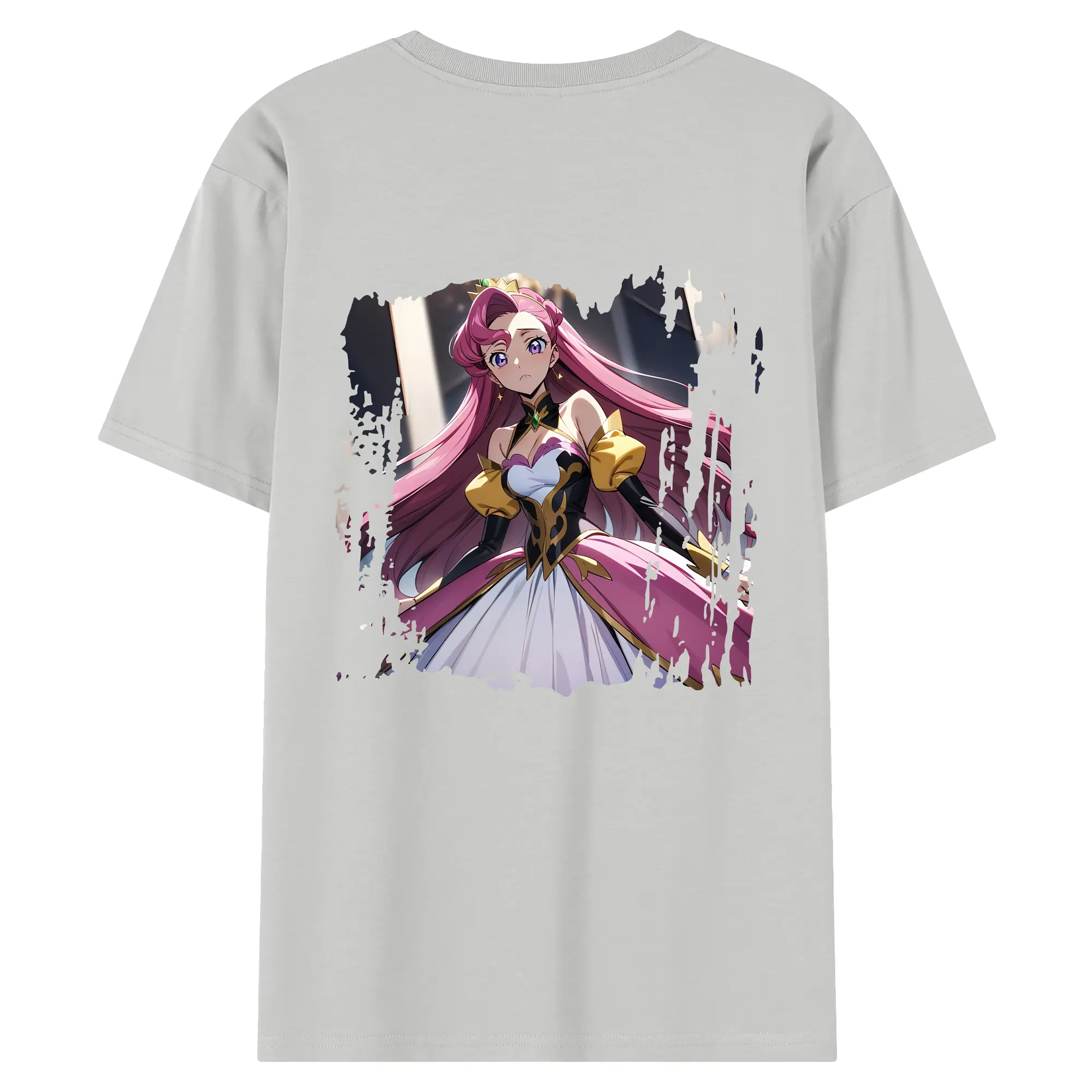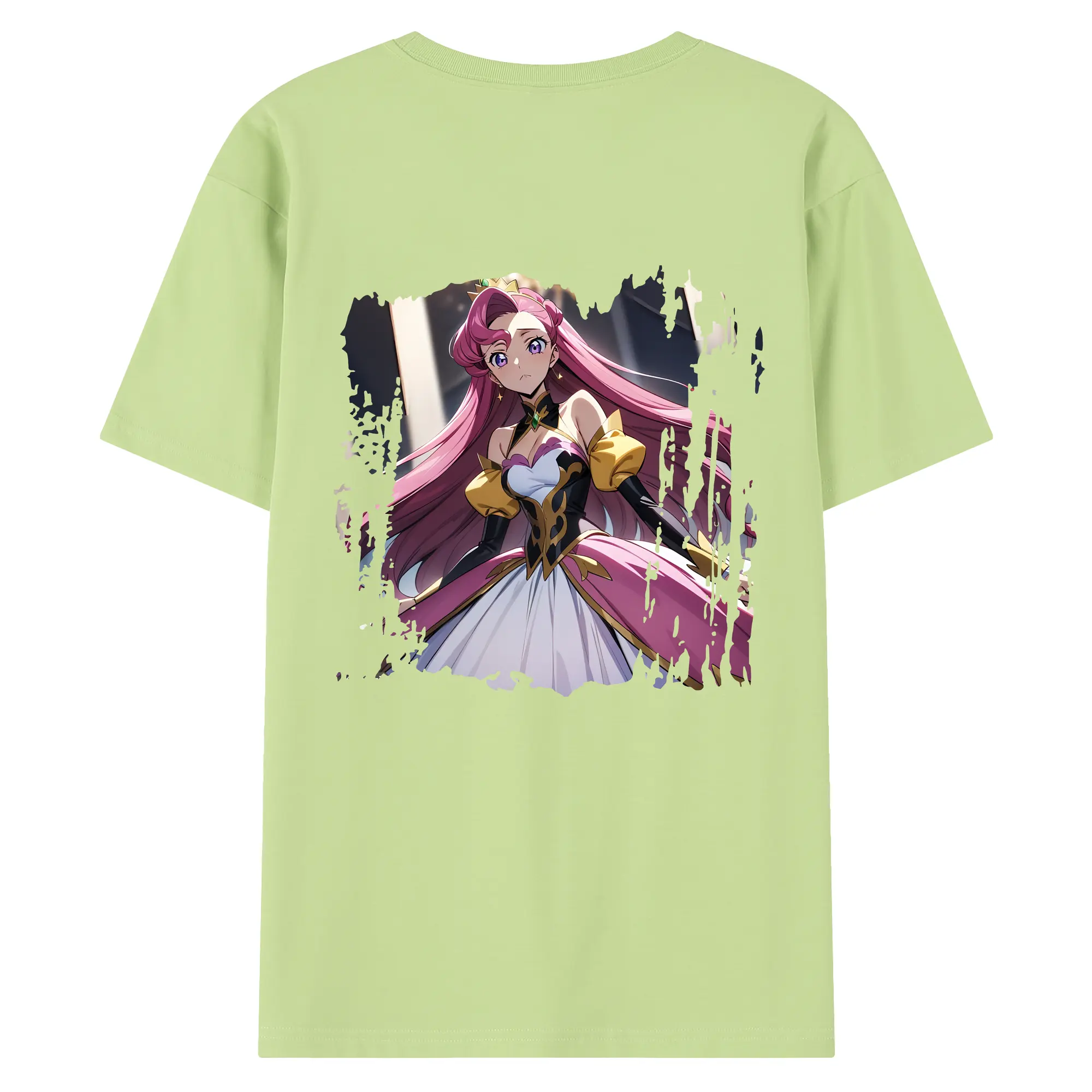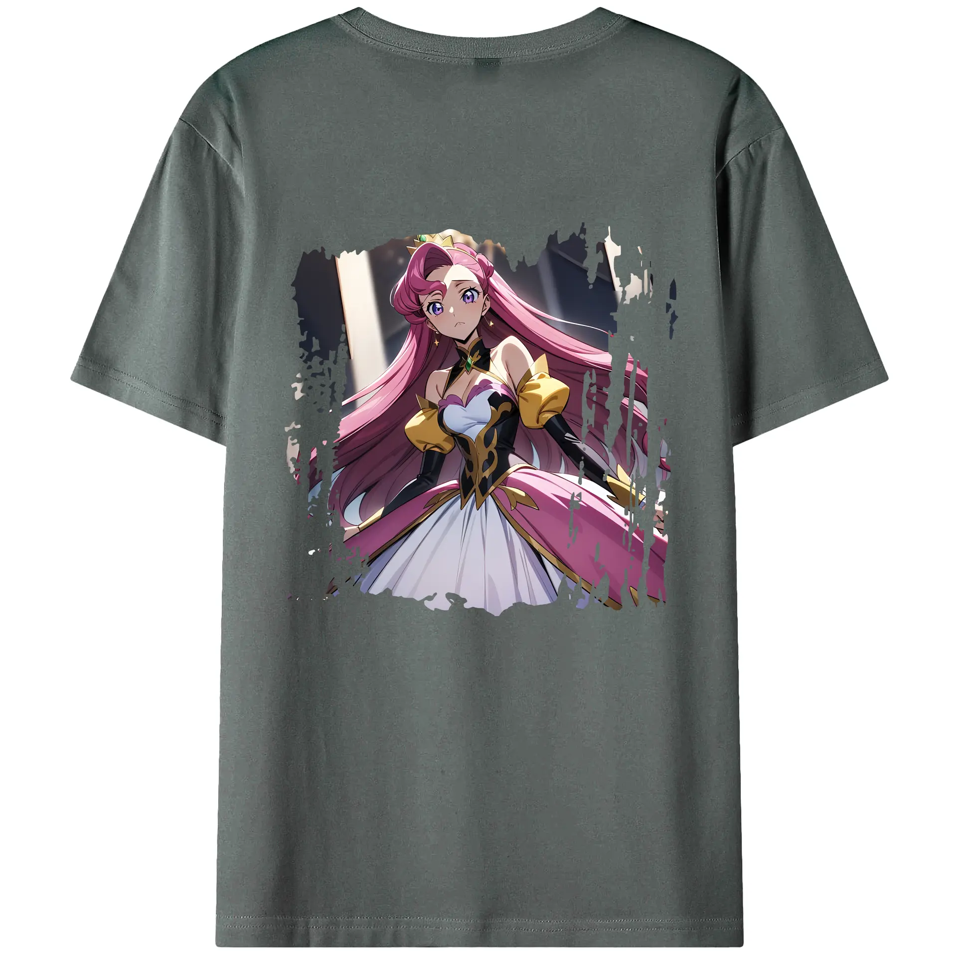コードギアス 反逆のルルーシュ グッズ ユーフェミア・リ・ブリタニア - 綿100% ヴィンテージ風 半袖Tシャツ ・ 背面プリント ・ 柔らか肌触り ・ 通気性 快適 ・ スポーツ カジュアル 外出用